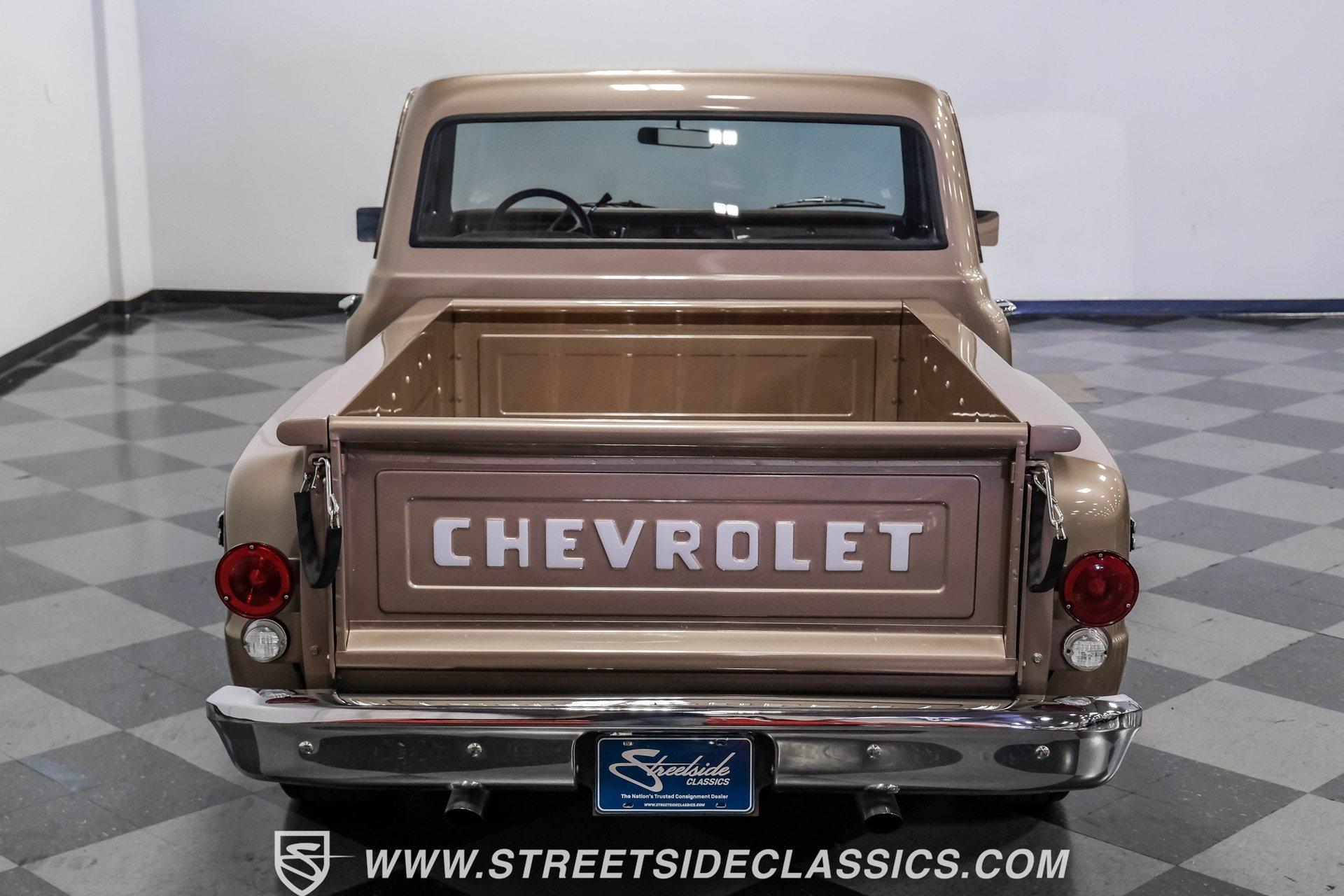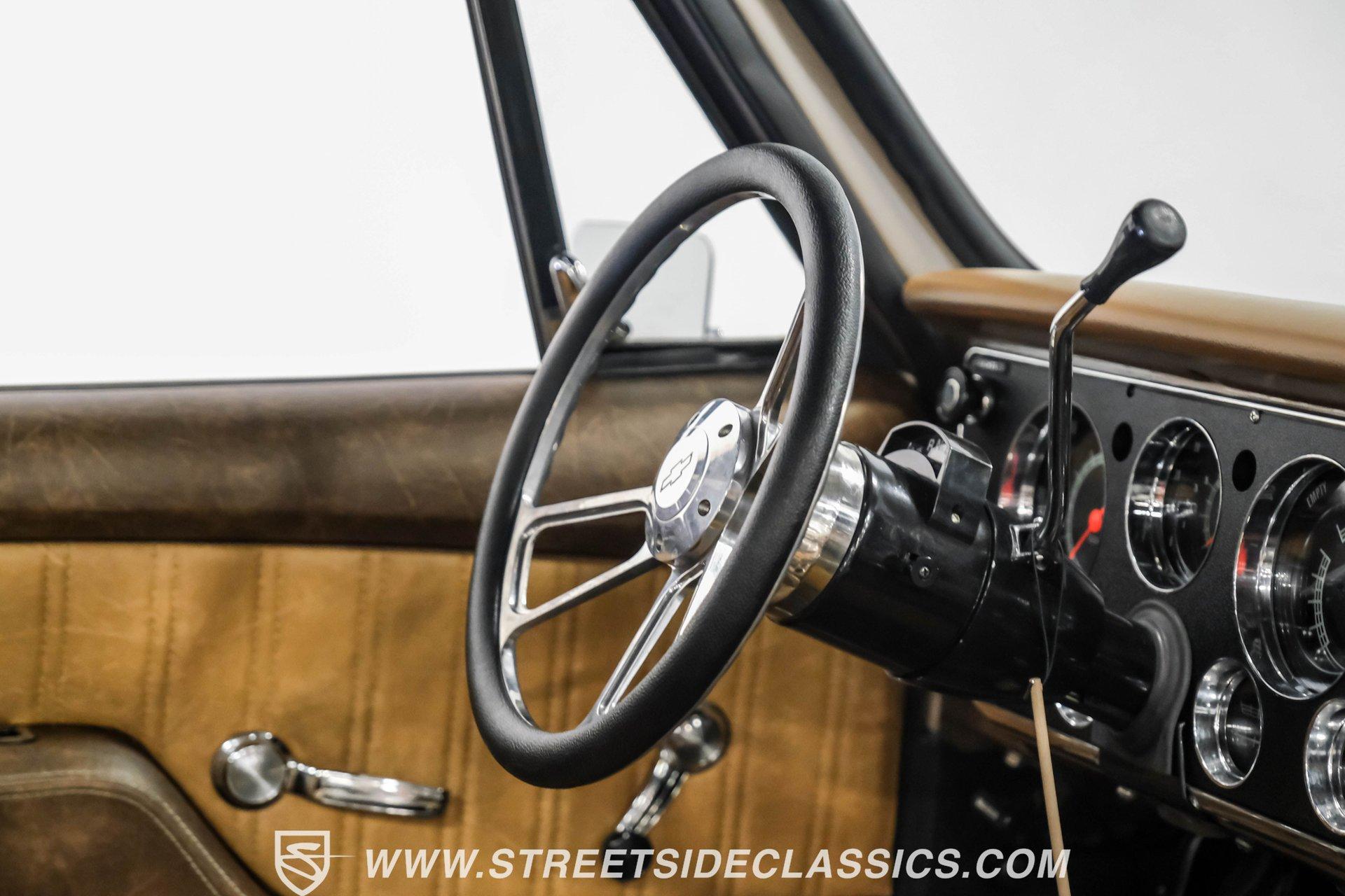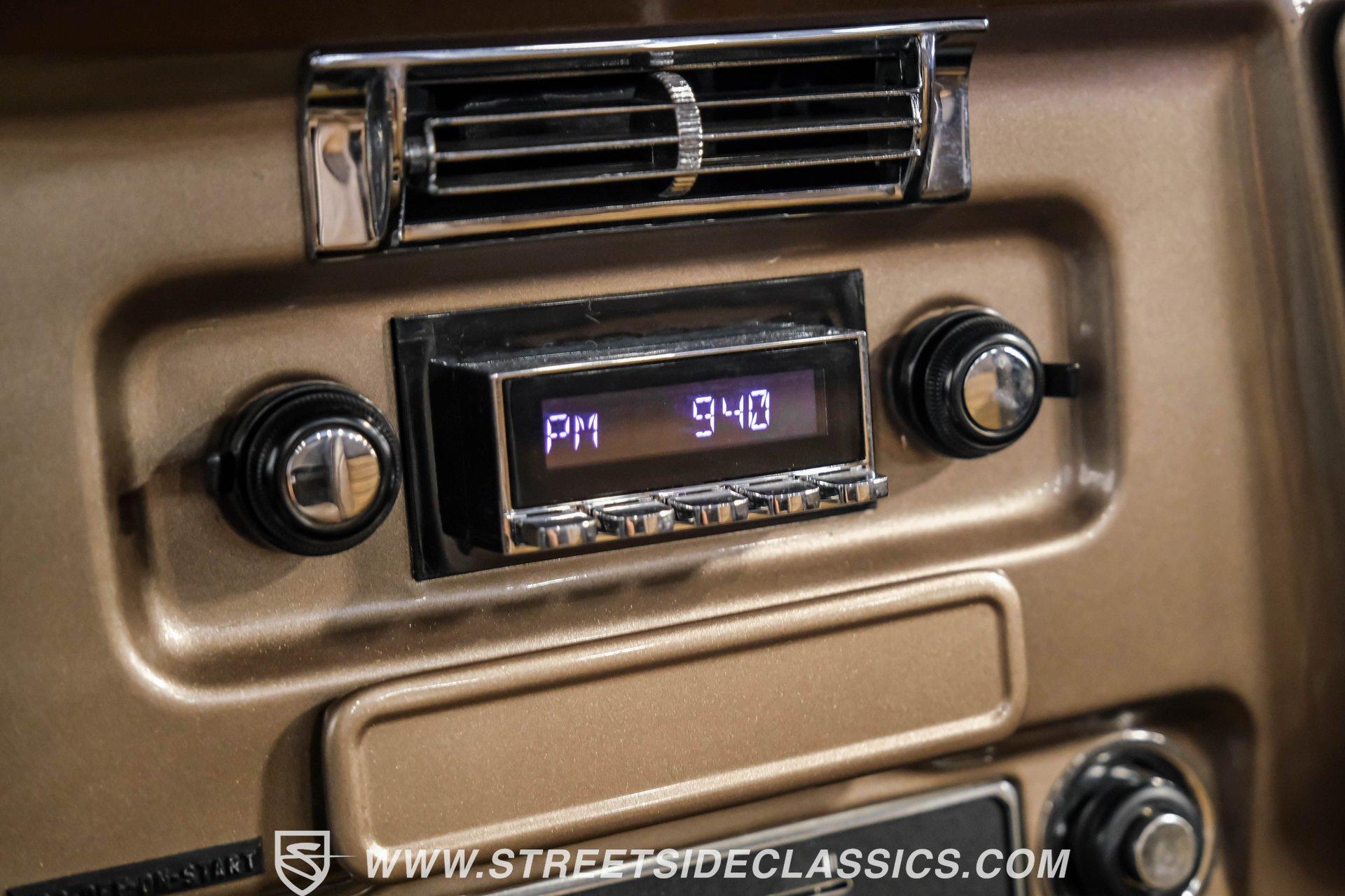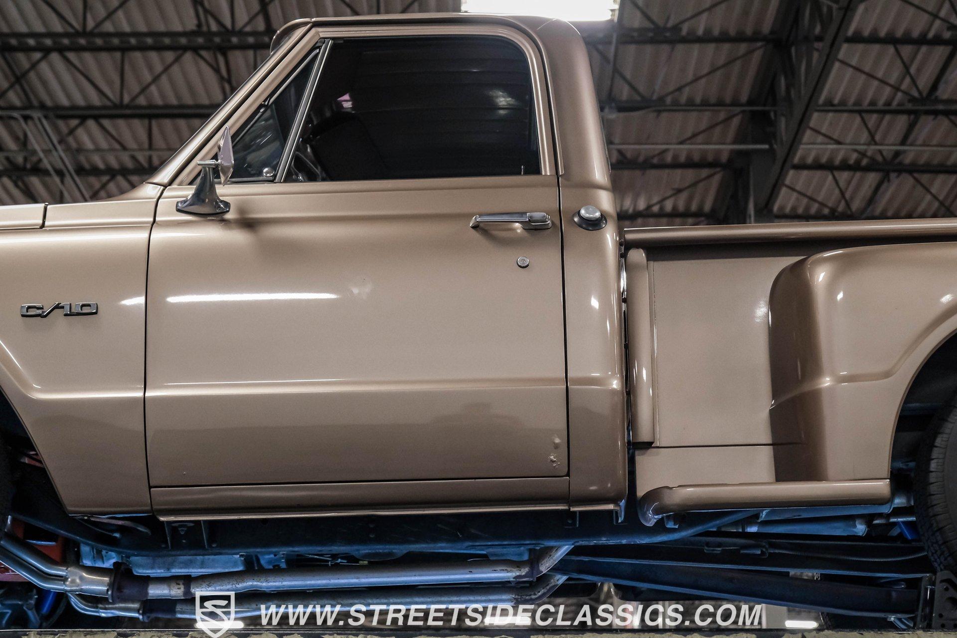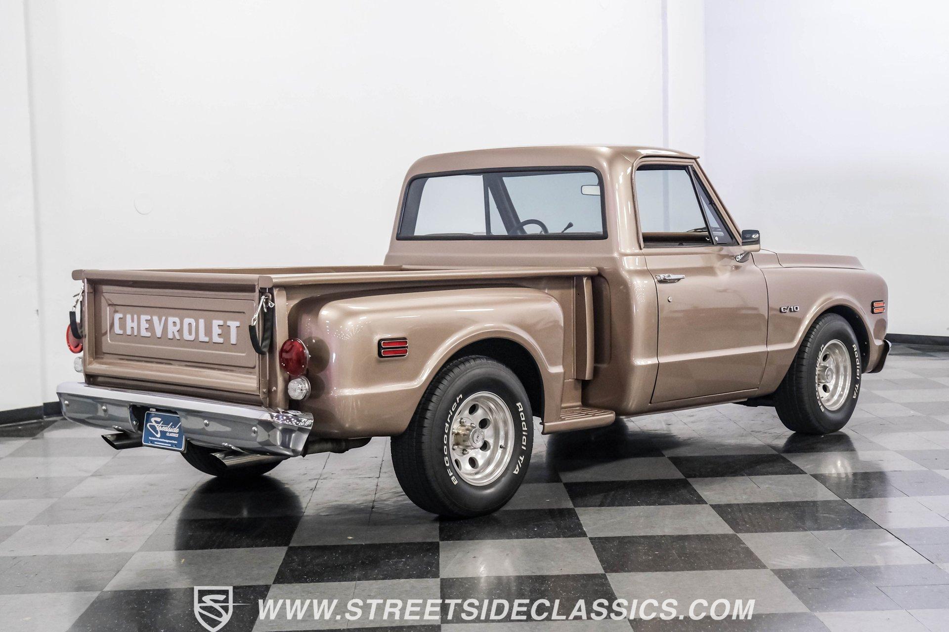A true workhorse with weekend cruiser style, the 1969 Chevrolet C10 Stepside combines utility and good looks in one package. Finished in Pewter Metallic paint that accentuates its classic truck proportions, this pickup features the distinctive stepside bed design that made these C10s so popular. The 15" Mickey Thompson wheels wrapped in 255/70R15 BFG tires give it a balanced stance, while the bright chrome trim adds a touch of flash against the subtle metallic finish. The short bed configuration adds to the overall visual appeal while maintaining excellent functionality. Inside, the brown and tan custom TMI interior offers both comfort and style. The high-end soft vinyl bucket seats include a folding armrest for long-distance comfort. A column shifter controls the transmission while maintaining an uncluttered floor area. Modern upgrades include air conditioning for summer driving comfort, a tilt steering wheel for improved driving position, and an AM/FM radio with auxiliary and Bluetooth connectivity. Pioneer kick panel speakers deliver clear audio throughout the cabin while maintaining the truck's clean interior appearance. Powering this C10 is a 350 cubic inch V8 engine equipped with an Edelbrock AVS2 carburetor and Edelbrock intake manifold for improved performance. The engine sends power through a 700R4 four-speed automatic transmission with overdrive for highway cruising. Long tube headers connect to a dual exhaust system with aftermarket mufflers for a great sound. Additional mechanical features include an aluminum radiator for improved cooling, power steering for easy maneuverability, and power front disc brakes for reliable stopping power. The fuel tank has been relocated under the bed for improved safety and capacity. HIGHLIGHTS: 350 V8 Engine 700R4 4-Speed Automatic Transmission with Overdrive Edelbrock AVS2 Carburetor Edelbrock Intake Manifold Long Tube Headers Dual Exhaust with Aftermarket Mufflers 12 Bolt Rear Axle Aluminum Radiator Power Front Disc Brakes Fuel Tank Relocated Under Bed Pewter Metallic Paint 15" Mickey Thompson Wheels 255/70R15 BFG Tires Custom TMI Interior Bucket Seats with Folding Armrest Air Conditioning Tilt Wheel Power Steering AM/FM Radio with Aux and Bluetooth Pioneer Kick Panel Speakers For truck lovers seeking a classic C10 with modern upgrades, look no further. The combination of the 350 V8, 700R4 transmission, power disc brakes, and comfortable interior make this 1969 Chevrolet C10 Stepside an excellent choice for both weekend cruises and daily use. Call today!