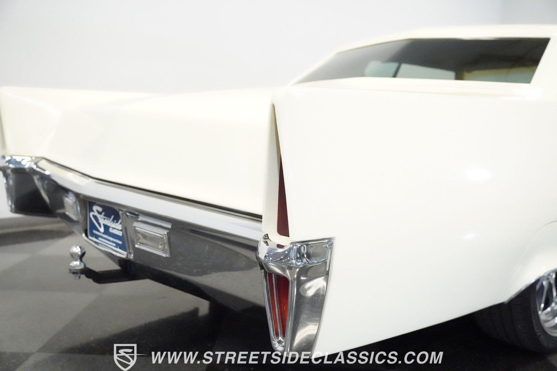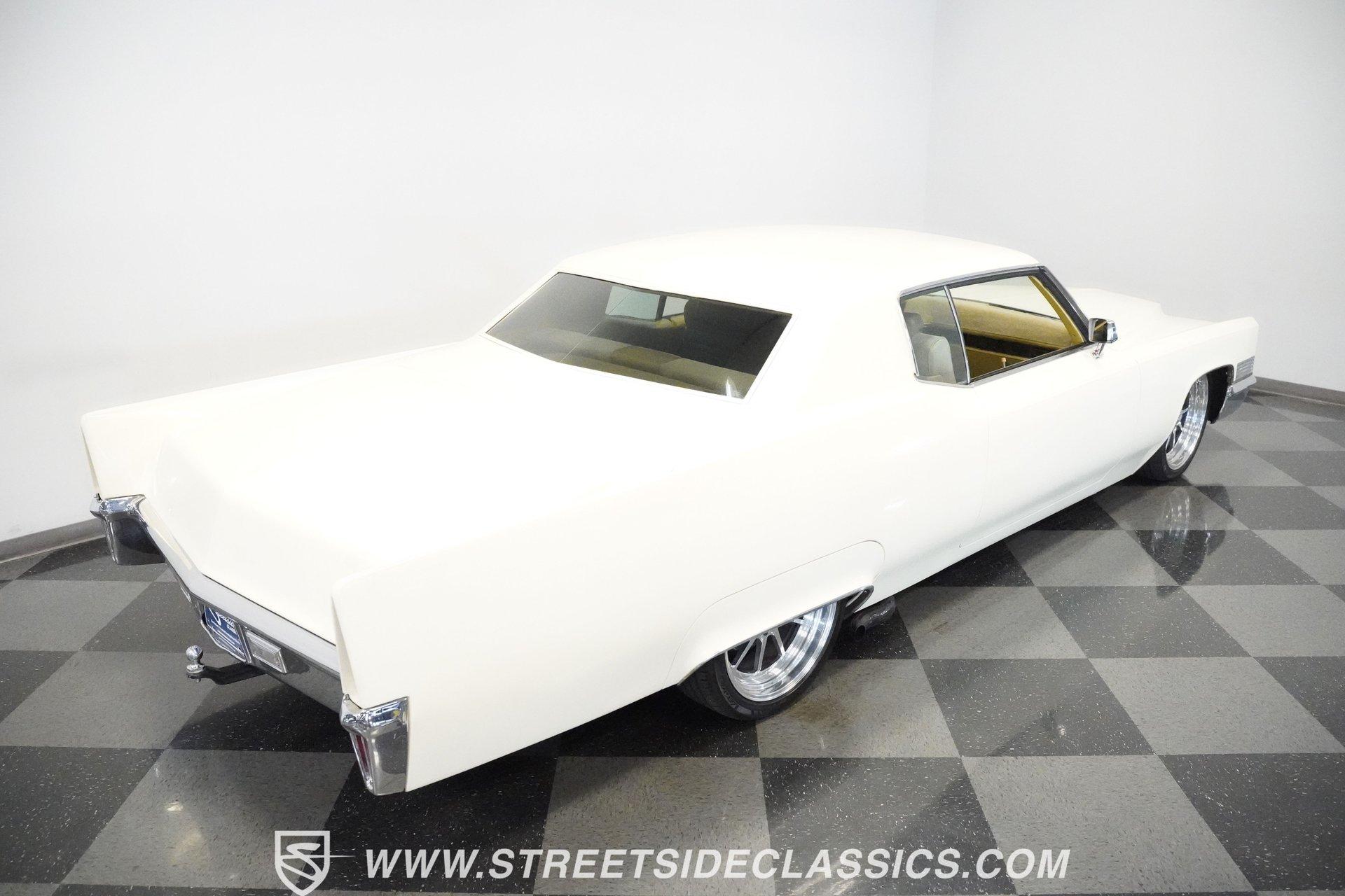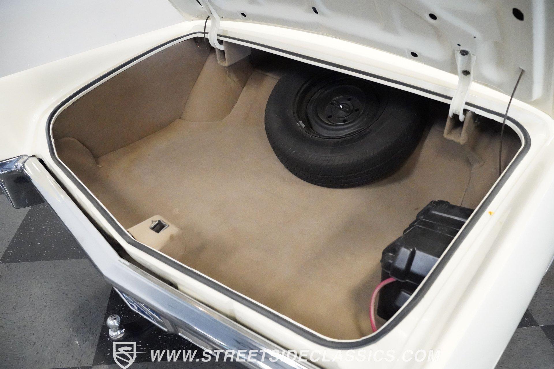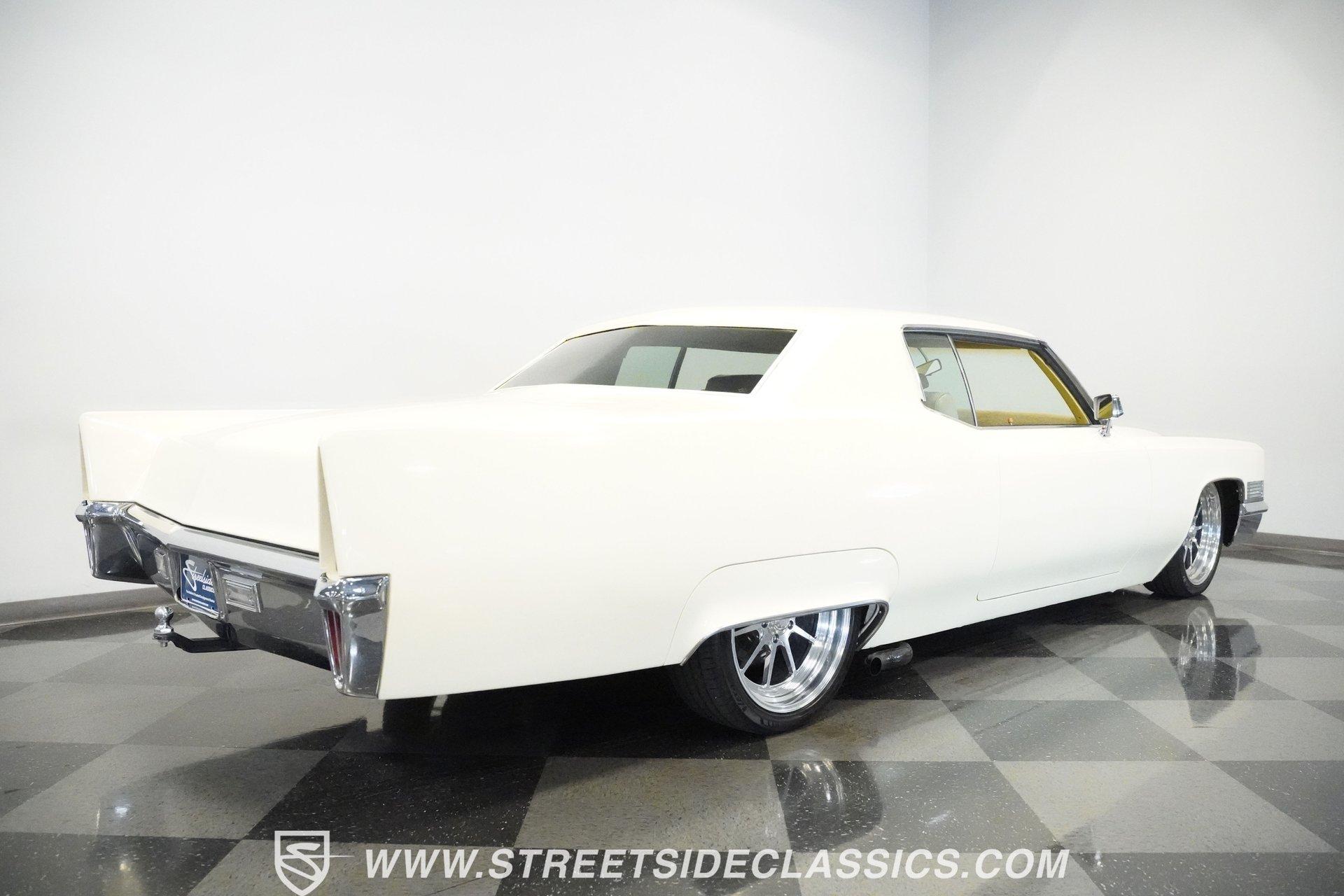 Massive and magnificent, Cadillac's flagship luxury cruiser rolls with undeniable authority. The 1970 Cadillac Coupe DeVille in Cotillion White displays the unmistakable long hood and short deck proportions that made these full-size luxury machines icons of American roads. Ten-spoke polished aluminum American Racing 20-inch wheels wrapped in 245/40ZR20 Lexani tires amplify the grand scale of this luxury coupe, creating a perfect blend of classic lines and custom flair. Tan vinyl covers the spacious bench seats inside this luxury cruiser, providing comfort for long highway journeys. A custom carpeted dash houses specialized gauges that give this DeVille a personalized touch while maintaining the upscale atmosphere. The wood console in back adds warmth to the cabin's design. Column shifting, power windows, and power locks provide convenience while the factory air conditioning keeps passengers cool. A power driver's seat and tilt wheel allow for ideal positioning behind the wheel. Cadillac's mighty 500 cubic inch V8 engine sits between the front fenders, connected to a TH200-4R 4-speed automatic transmission for effortless cruising. The factory hypoid rear axle puts power to the pavement through that polished wheel and tire combination. Power steering makes navigating this full-size luxury machine a breeze, while power disc brakes up front provide stopping capability. Glasspack style mufflers add a subtle rumble to the exhaust note without being excessive.
