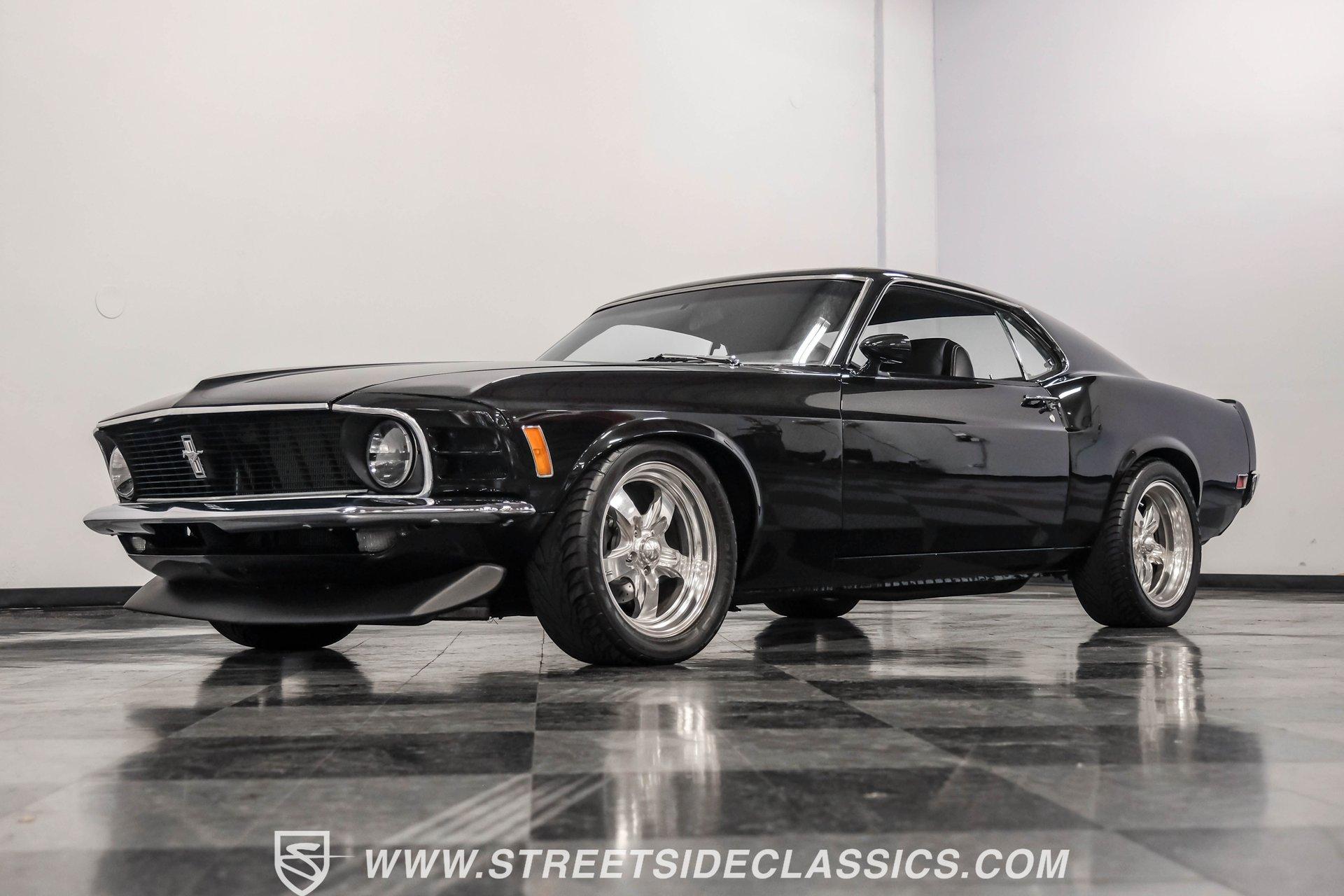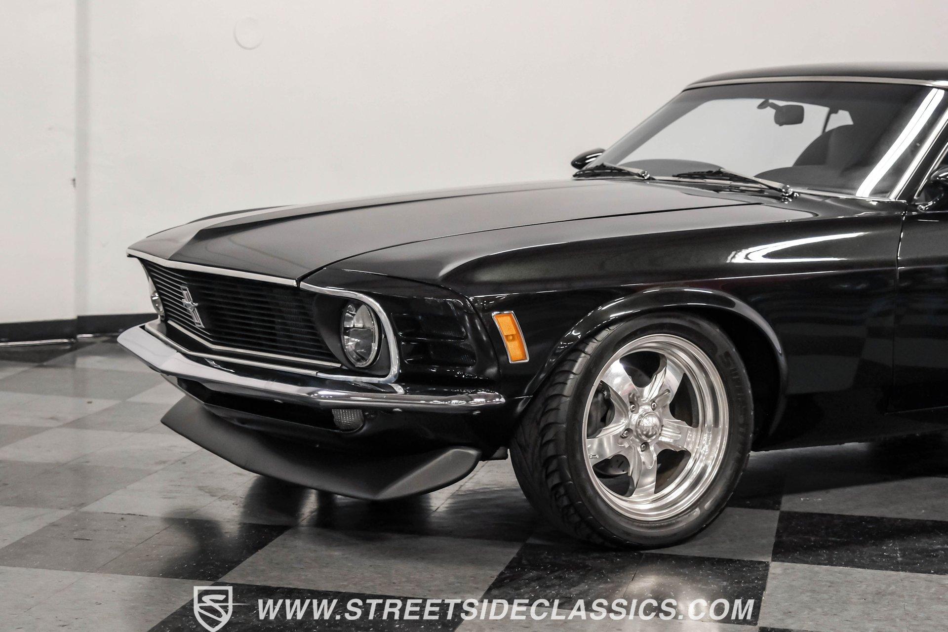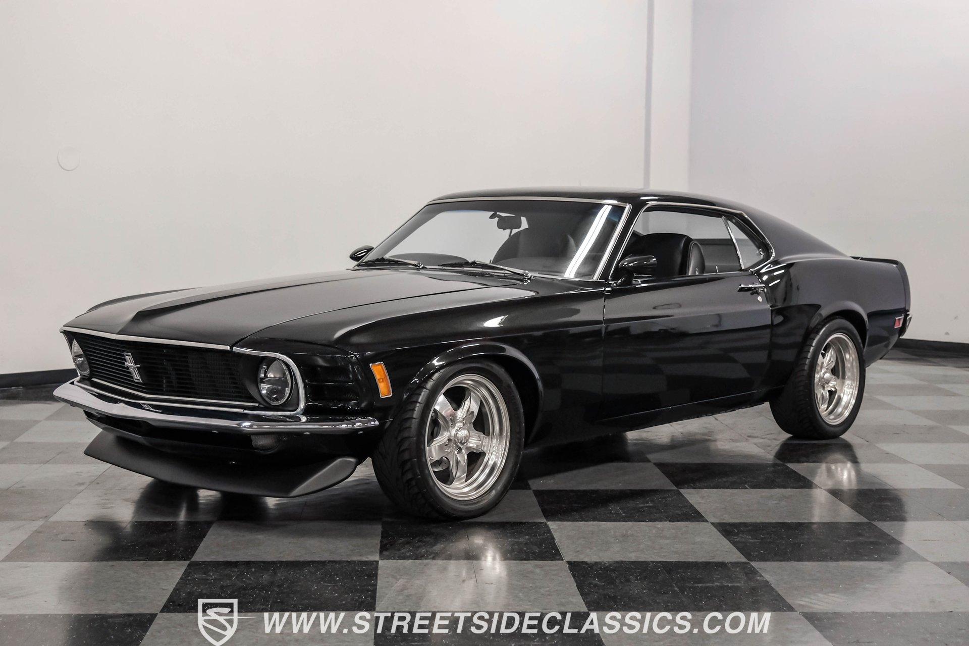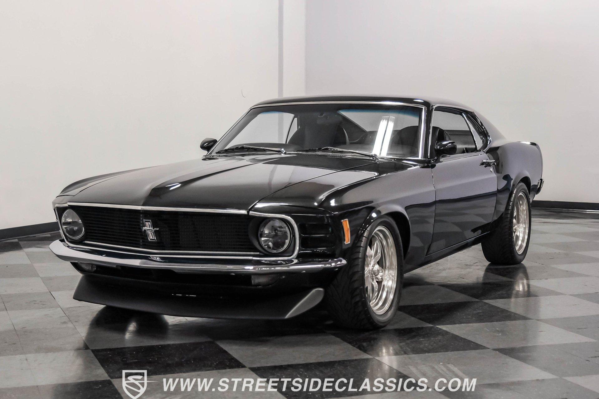 Muscle and modern technology combine in an ultimate package - the 1970 Ford Mustang Fastback Restomod with Black Ivy Metallic paint. Dark green metallic flake provides exceptional depth across the fastback body. Clean chrome bumpers and grille maintain classic styling while LED headlights add modern illumination. A front chin spoiler gives an aggressive touch and dual exhaust tips exit cleanly from the rear valance. 17" Center Line wheels fill out the wheel openings perfectly, wrapped in 225/50ZR17 Federal tires up front with fatter 245/45ZR17 rubber in back. Inside the cabin, black leather and suede TMI bucket seats anchor the driver's space with excellent support. Custom center console houses the floor shifter with an 8-ball knob for a personalized touch. Momo steering wheel connects to a Flaming River tilt column for improved driving position. Custom door panel inserts and billet pedals elevate the entire look. Audio comes through an Alpine AM/FM/CD/Aux head unit pushing sound to kick panel speakers, rear deck speakers, and subwoofers powered by two Alpine amplifiers for concert-quality sound at any volume. Powering this pony is a 408 Stroker V8 using Fast EFI fuel injection and Edelbrock intake manifold. AFR heads and a stage 3 Crower cam maximize airflow while long tube headers connect to dual exhaust with X-pipe and Pypes mufflers. The AOD 4-speed automatic transmission sends power to a 9" rear end with 4.10 posi-traction for quick acceleration. Front coilovers with sway bar and electronically controlled shocks (with dash-mounted switch) manage the handling. Four-wheel power disc brakes and power steering round out the mechanical package for modern driving dynamics. HIGHLIGHTS: 408 Stroker V8 Engine 4-Speed Automatic AOD Transmission Fast EFI Fuel Injection Edelbrock Intake Manifold AFR Heads Stage 3 Crower Cam Four-Wheel Power Disc Brakes Electronically Controlled Shocks with Dash Switch Ridetech Rear Shocks Dual Exhaust with X-Pipe Pypes Mufflers Stainless Gas Tank Griffin Radiator with Electric Fans Subframe Connectors Black Ivy Metallic Paint 17" Center Line Wheels with 225/50ZR17 Front, 245/45ZR17 Rear Tires LED Headlights Black Interior with Leather and Suede TMI Bucket Seats Custom Center Console Flaming River Tilt Column with Momo Steering Wheel Power Steering Alpine AM/FM/CD/Aux with Dual Alpine Amplifiers Kick Panel Speakers, Rear Deck Speakers, Subwoofers When American muscle meets modern performance upgrades, magic happens. The 1970 Ford Mustang Fastback Restomod takes iconic styling and adds upgraded power, handling, and comfort for an improved driving machine. Call today!