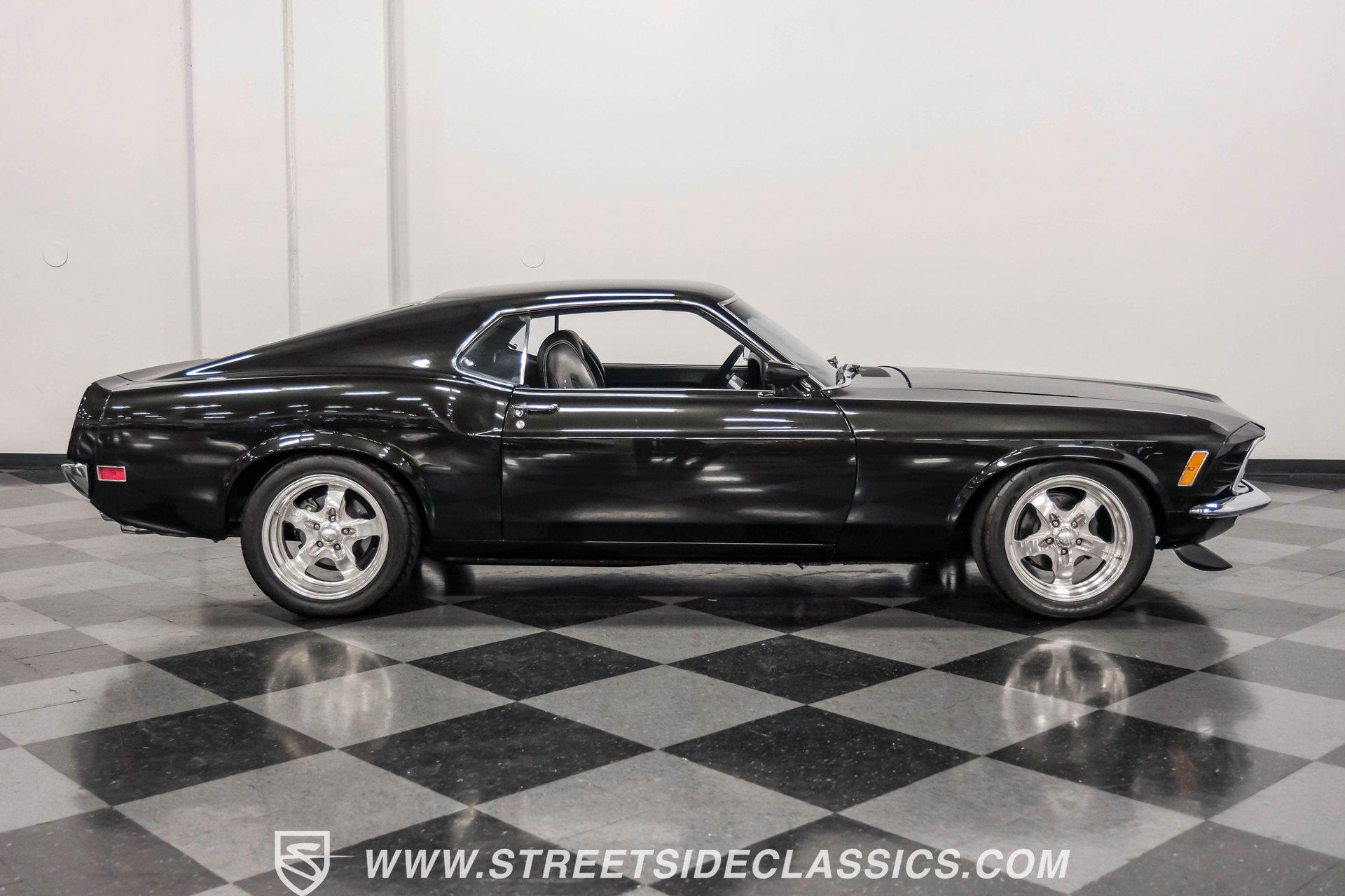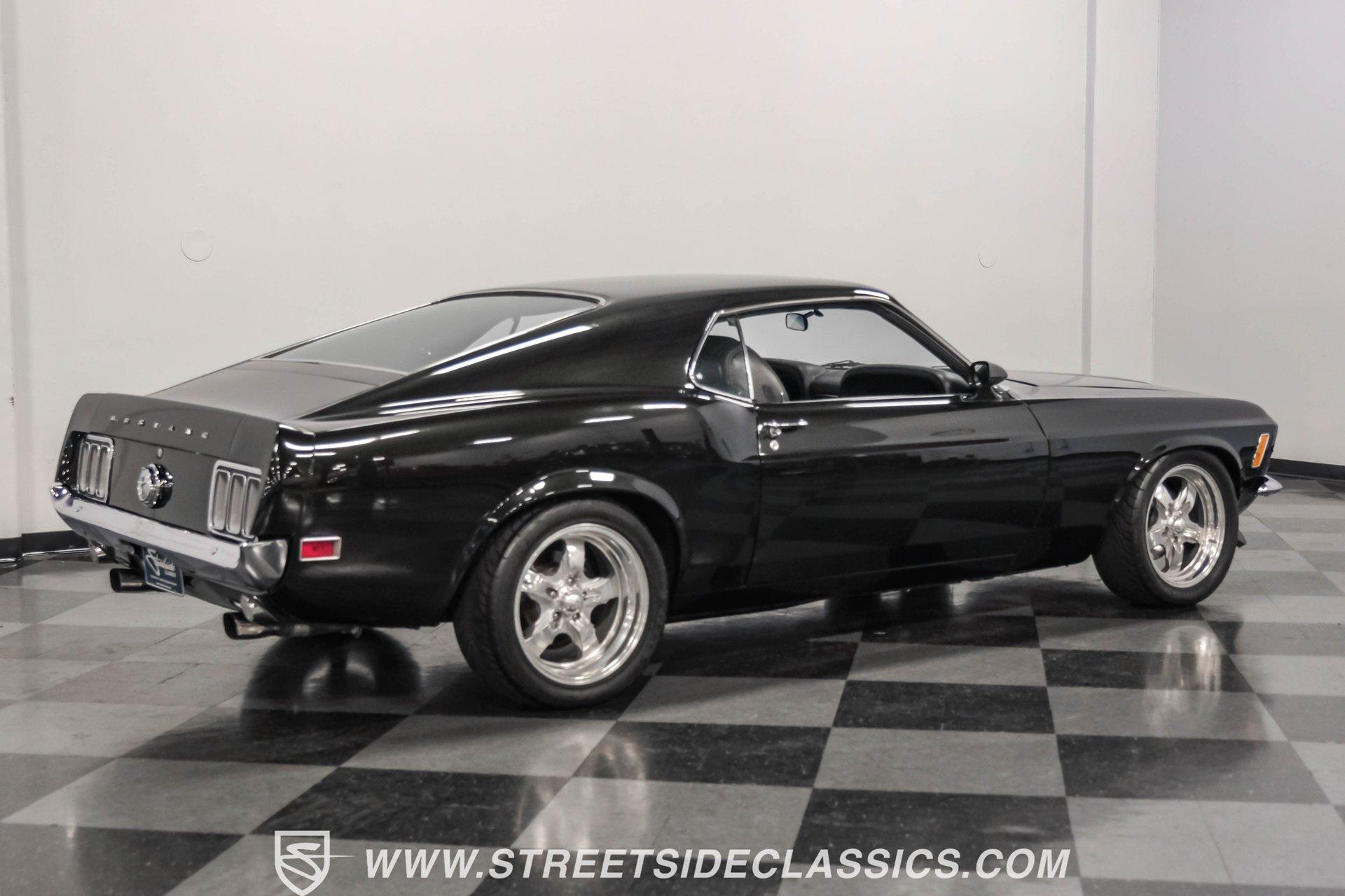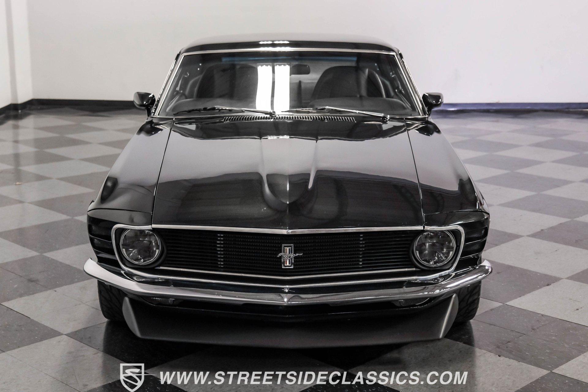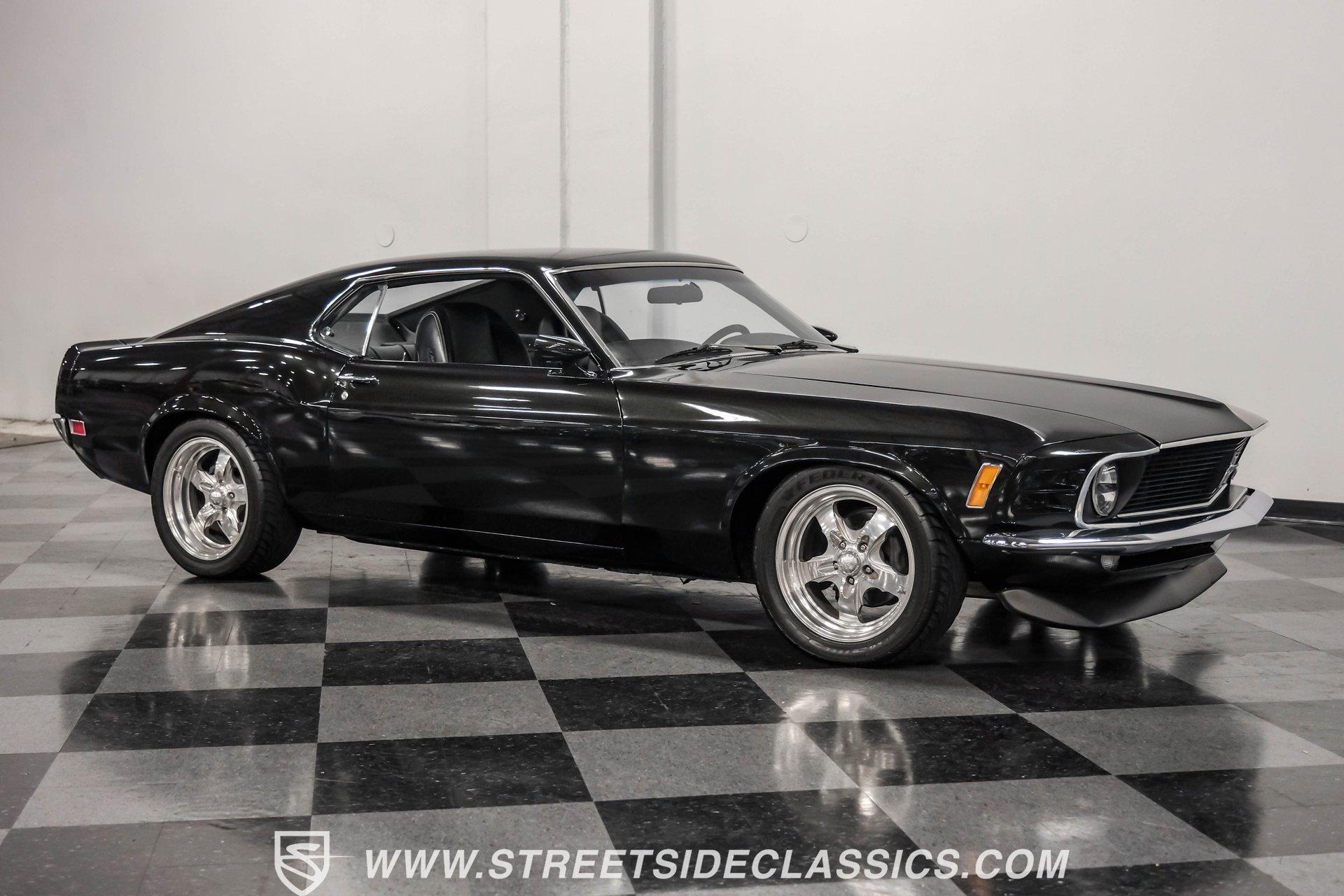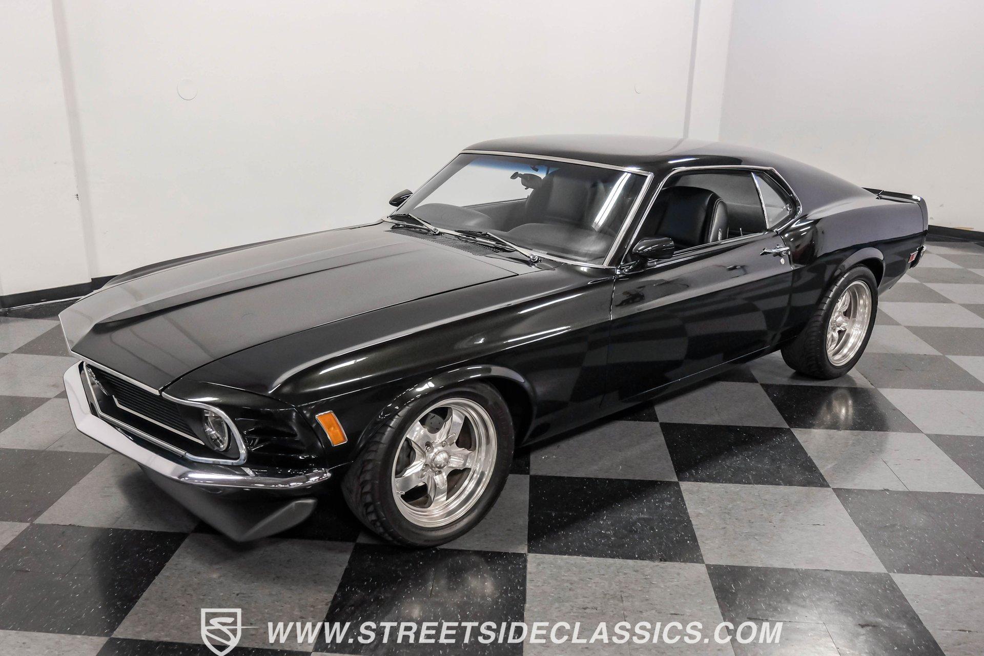 Muscle and modern technology combine in an ultimate package - the 1970 Ford Mustang Fastback Restomod with Black Ivy Metallic paint. Dark green metallic flake provides exceptional depth across the fastback body. Clean chrome bumpers and grille maintain classic styling while LED headlights add modern illumination. A front chin spoiler gives an aggressive touch and dual exhaust tips exit cleanly from the rear valance. 17" Center Line wheels fill out the wheel openings perfectly, wrapped in 225/50ZR17 Federal tires up front with fatter 245/45ZR17 rubber in back. Inside the cabin, black leather and suede TMI bucket seats anchor the driver's space with excellent support. Custom center console houses the floor shifter with an 8-ball knob for a personalized touch. Momo steering wheel connects to a Flaming River tilt column for improved driving position. Custom door panel inserts and billet pedals elevate the entire look. Audio comes through an Alpine AM/FM/CD/Aux head unit pushing sound to kick panel speakers, rear deck speakers, and subwoofers powered by two Alpine amplifiers for concert-quality sound at any volume. Powering this pony is a 408 Stroker V8 using Fast EFI fuel injection and Edelbrock intake manifold. AFR heads and a stage 3 Crower cam maximize airflow while long tube headers connect to dual exhaust with X-pipe and Pypes mufflers. The AOD 4-speed automatic transmission sends power to a 9" rear end with 4.10 posi-traction for quick acceleration. Front coilovers with sway bar and electronically controlled shocks (with dash-mounted switch) manage the handling. Four-wheel power disc brakes and power steering round out the mechanical package for modern driving dynamics. HIGHLIGHTS: 408 Stroker V8 Engine 4-Speed Automatic AOD Transmission Fast EFI Fuel Injection Edelbrock Intake Manifold AFR Heads Stage 3 Crower Cam Four-Wheel Power Disc Brakes Electronically Controlled Shocks with Dash Switch Ridetech Rear Shocks Dual Exhaust with X-Pipe Pypes Mufflers Stainless Gas Tank Griffin Radiator with Electric Fans Subframe Connectors Black Ivy Metallic Paint 17" Center Line Wheels with 225/50ZR17 Front, 245/45ZR17 Rear Tires LED Headlights Black Interior with Leather and Suede TMI Bucket Seats Custom Center Console Flaming River Tilt Column with Momo Steering Wheel Power Steering Alpine AM/FM/CD/Aux with Dual Alpine Amplifiers Kick Panel Speakers, Rear Deck Speakers, Subwoofers When American muscle meets modern performance upgrades, magic happens. The 1970 Ford Mustang Fastback Restomod takes iconic styling and adds upgraded power, handling, and comfort for an improved driving machine. Call today!