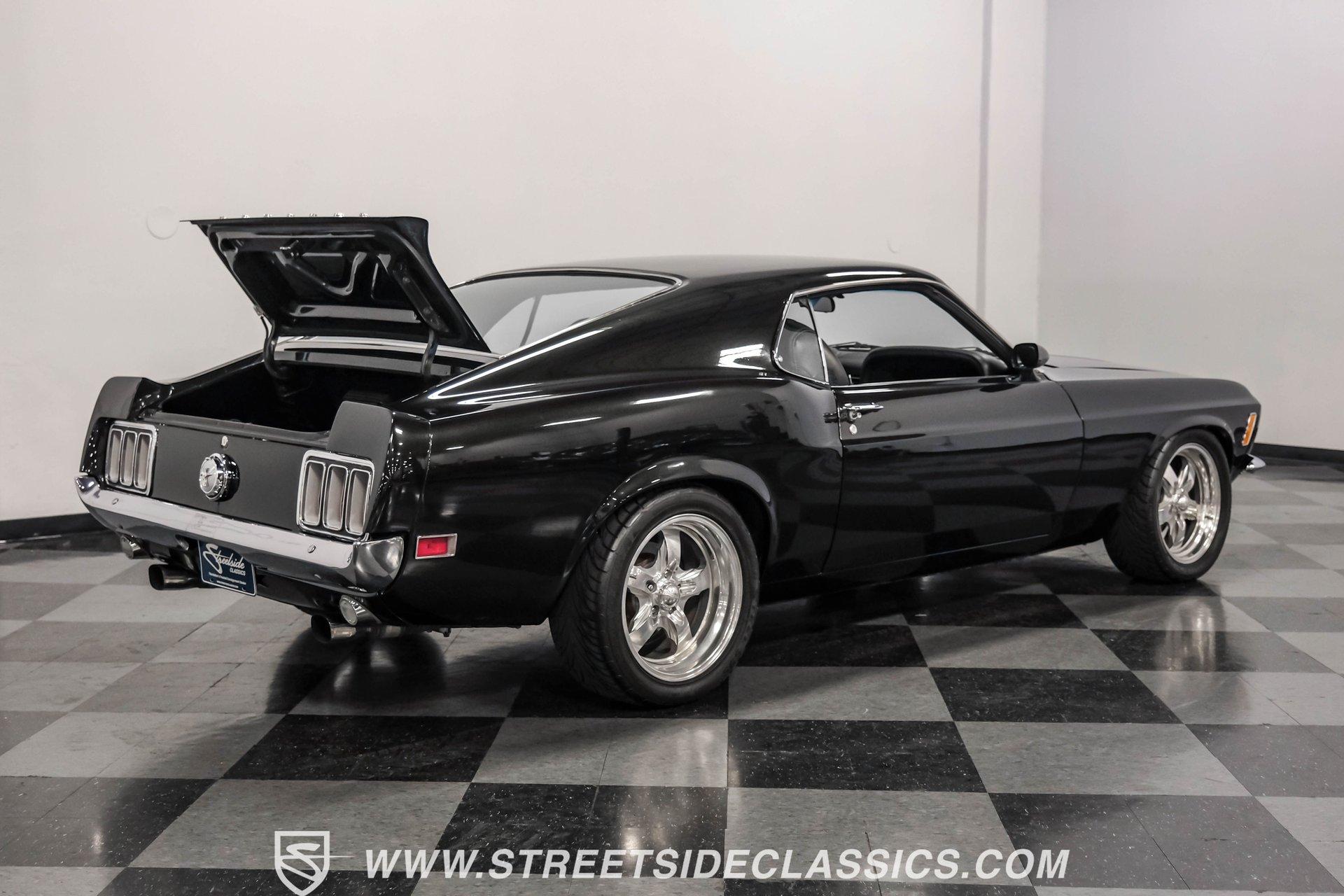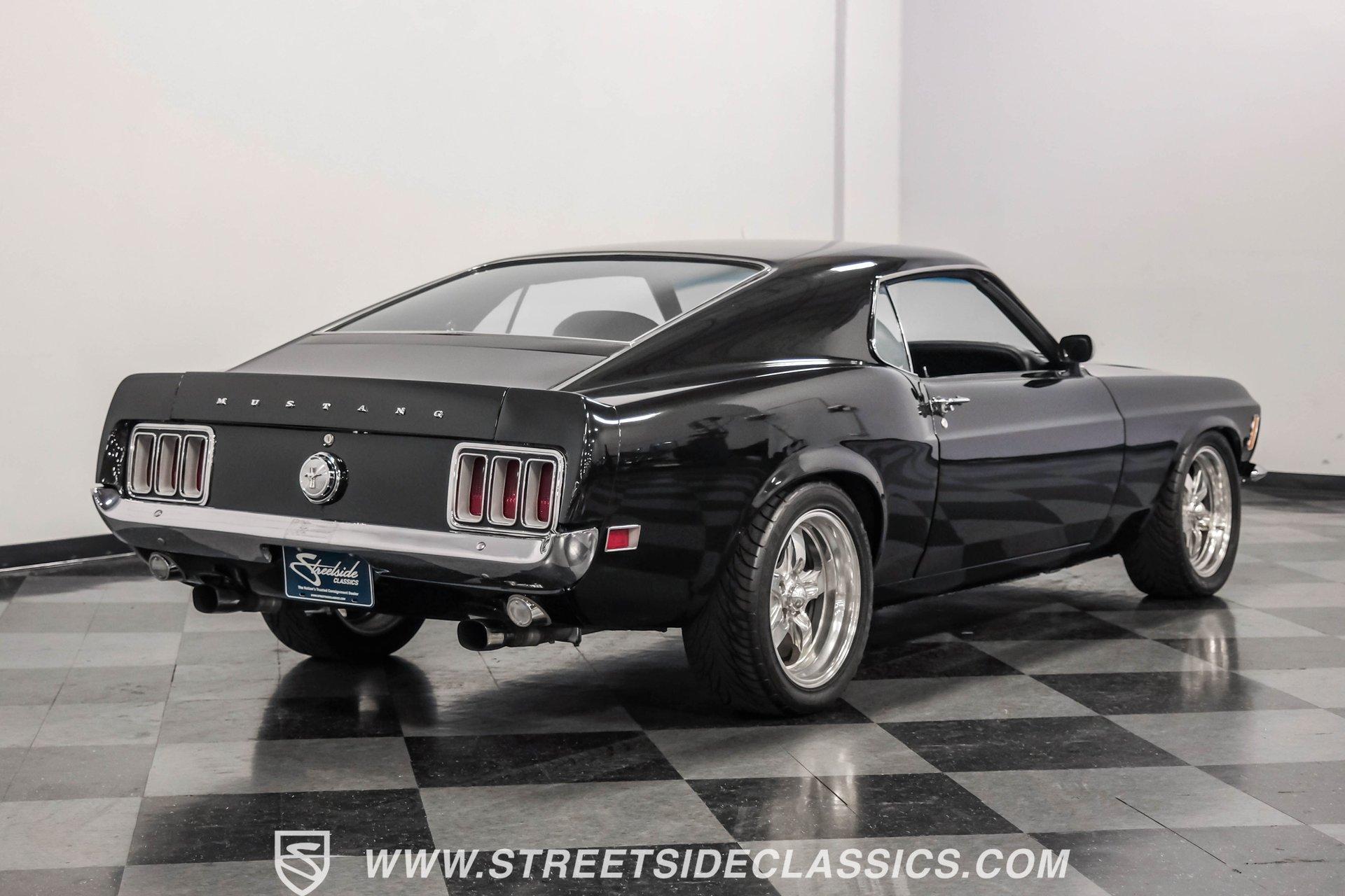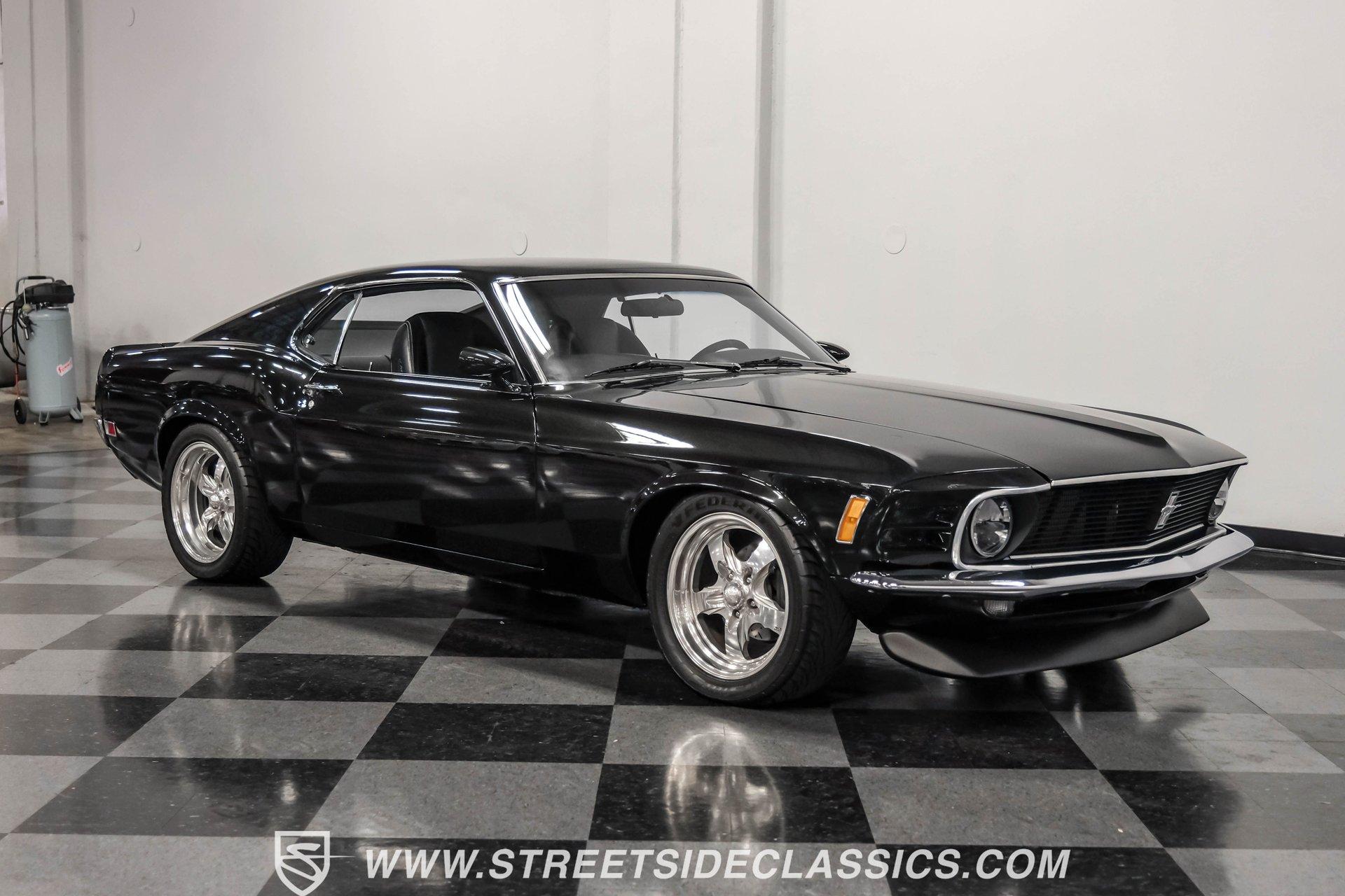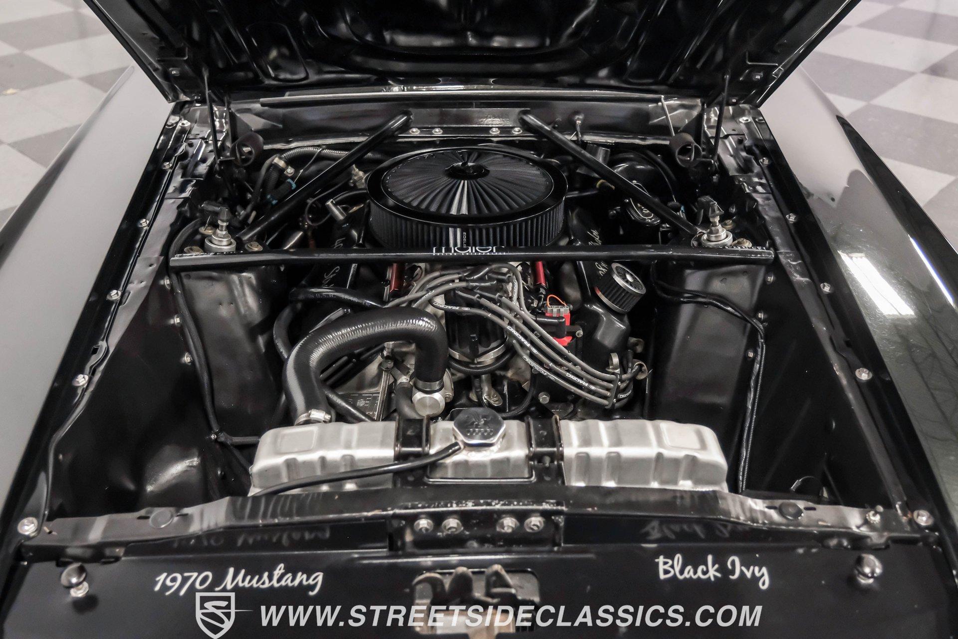 Muscle and modern technology combine in an ultimate package - the 1970 Ford Mustang Fastback Restomod with Black Ivy Metallic paint. Dark green metallic flake provides exceptional depth across the fastback body. Clean chrome bumpers and grille maintain classic styling while LED headlights add modern illumination. A front chin spoiler gives an aggressive touch and dual exhaust tips exit cleanly from the rear valance. 17" Center Line wheels fill out the wheel openings perfectly, wrapped in 225/50ZR17 Federal tires up front with fatter 245/45ZR17 rubber in back. Inside the cabin, black leather and suede TMI bucket seats anchor the driver's space with excellent support. Custom center console houses the floor shifter with an 8-ball knob for a personalized touch. Momo steering wheel connects to a Flaming River tilt column for improved driving position. Custom door panel inserts and billet pedals elevate the entire look. Audio comes through an Alpine AM/FM/CD/Aux head unit pushing sound to kick panel speakers, rear deck speakers, and subwoofers powered by two Alpine amplifiers for concert-quality sound at any volume. Powering this pony is a 408 Stroker V8 using Fast EFI fuel injection and Edelbrock intake manifold. AFR heads and a stage 3 Crower cam maximize airflow while long tube headers connect to dual exhaust with X-pipe and Pypes mufflers. The AOD 4-speed automatic transmission sends power to a 9" rear end with 4.10 posi-traction for quick acceleration. Front coilovers with sway bar and electronically controlled shocks (with dash-mounted switch) manage the handling. Four-wheel power disc brakes and power steering round out the mechanical package for modern driving dynamics. HIGHLIGHTS: 408 Stroker V8 Engine 4-Speed Automatic AOD Transmission Fast EFI Fuel Injection Edelbrock Intake Manifold AFR Heads Stage 3 Crower Cam Four-Wheel Power Disc Brakes Electronically Controlled Shocks with Dash Switch Ridetech Rear Shocks Dual Exhaust with X-Pipe Pypes Mufflers Stainless Gas Tank Griffin Radiator with Electric Fans Subframe Connectors Black Ivy Metallic Paint 17" Center Line Wheels with 225/50ZR17 Front, 245/45ZR17 Rear Tires LED Headlights Black Interior with Leather and Suede TMI Bucket Seats Custom Center Console Flaming River Tilt Column with Momo Steering Wheel Power Steering Alpine AM/FM/CD/Aux with Dual Alpine Amplifiers Kick Panel Speakers, Rear Deck Speakers, Subwoofers When American muscle meets modern performance upgrades, magic happens. The 1970 Ford Mustang Fastback Restomod takes iconic styling and adds upgraded power, handling, and comfort for an improved driving machine. Call today!