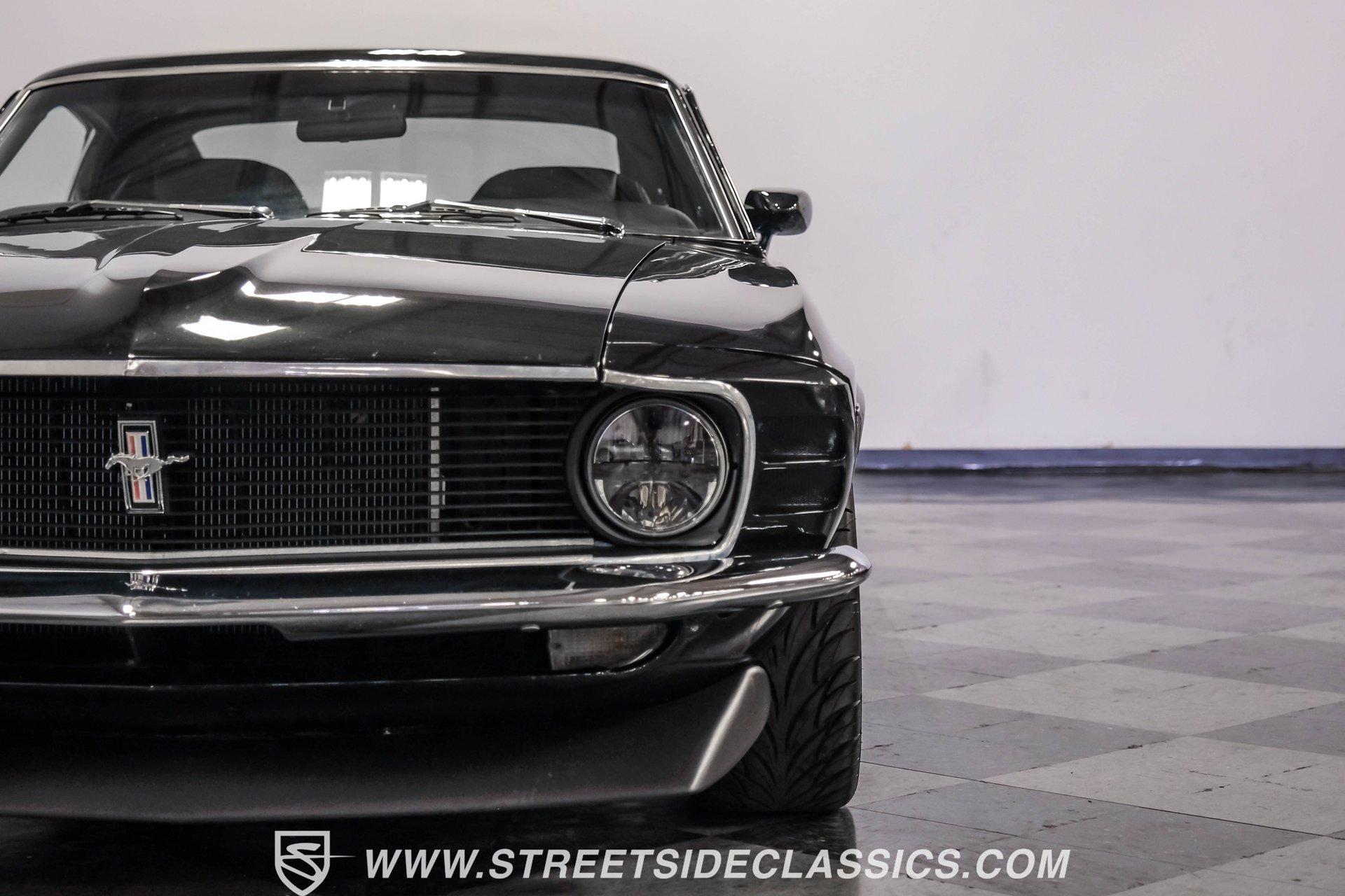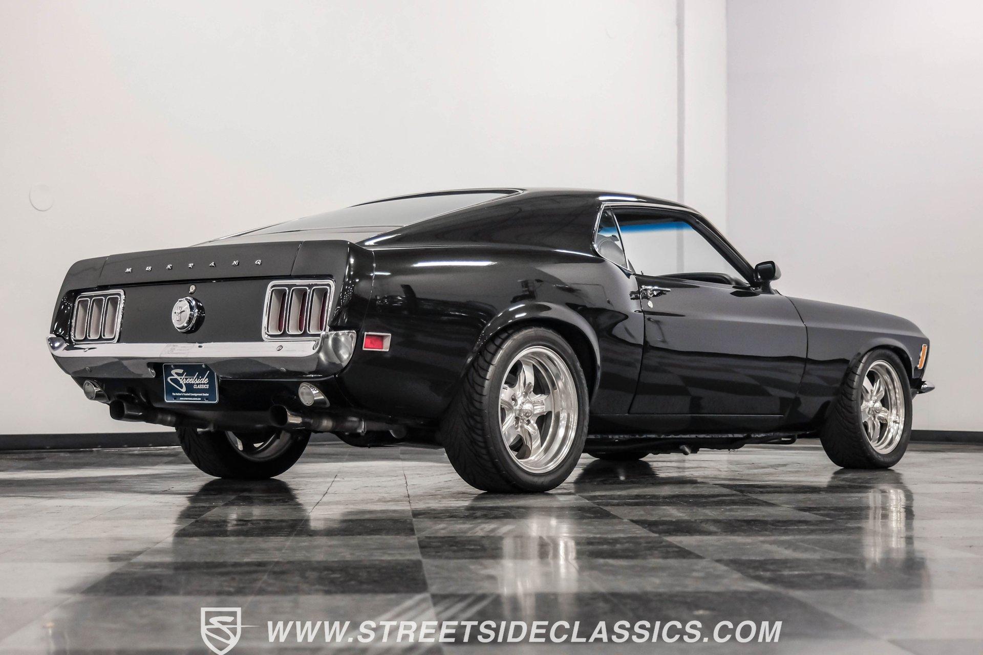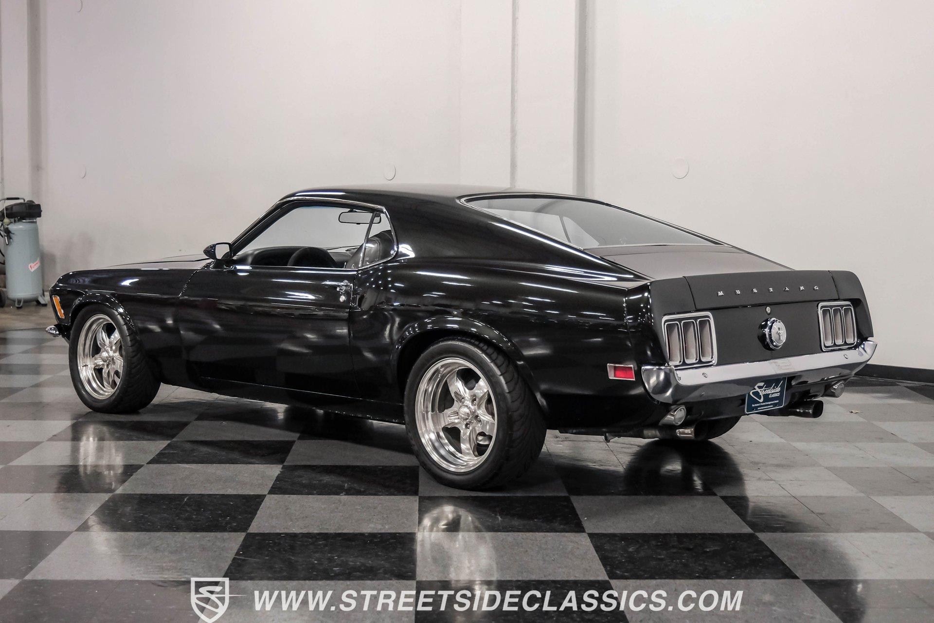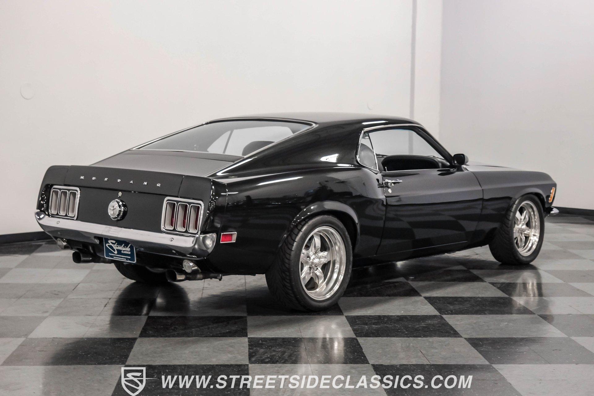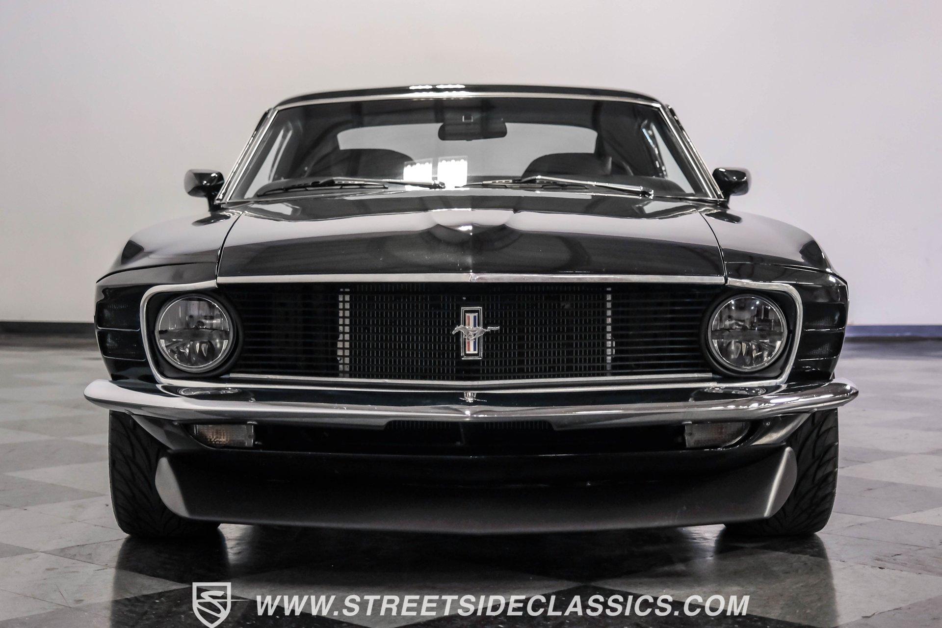 Muscle and modern technology combine in an ultimate package - the 1970 Ford Mustang Fastback Restomod with Black Ivy Metallic paint. Dark green metallic flake provides exceptional depth across the fastback body. Clean chrome bumpers and grille maintain classic styling while LED headlights add modern illumination. A front chin spoiler gives an aggressive touch and dual exhaust tips exit cleanly from the rear valance. 17" Center Line wheels fill out the wheel openings perfectly, wrapped in 225/50ZR17 Federal tires up front with fatter 245/45ZR17 rubber in back. Inside the cabin, black leather and suede TMI bucket seats anchor the driver's space with excellent support. Custom center console houses the floor shifter with an 8-ball knob for a personalized touch. Momo steering wheel connects to a Flaming River tilt column for improved driving position. Custom door panel inserts and billet pedals elevate the entire look. Audio comes through an Alpine AM/FM/CD/Aux head unit pushing sound to kick panel speakers, rear deck speakers, and subwoofers powered by two Alpine amplifiers for concert-quality sound at any volume. Powering this pony is a 408 Stroker V8 using Fast EFI fuel injection and Edelbrock intake manifold. AFR heads and a stage 3 Crower cam maximize airflow while long tube headers connect to dual exhaust with X-pipe and Pypes mufflers. The AOD 4-speed automatic transmission sends power to a 9" rear end with 4.10 posi-traction for quick acceleration. Front coilovers with sway bar and electronically controlled shocks (with dash-mounted switch) manage the handling. Four-wheel power disc brakes and power steering round out the mechanical package for modern driving dynamics. HIGHLIGHTS: 408 Stroker V8 Engine 4-Speed Automatic AOD Transmission Fast EFI Fuel Injection Edelbrock Intake Manifold AFR Heads Stage 3 Crower Cam Four-Wheel Power Disc Brakes Electronically Controlled Shocks with Dash Switch Ridetech Rear Shocks Dual Exhaust with X-Pipe Pypes Mufflers Stainless Gas Tank Griffin Radiator with Electric Fans Subframe Connectors Black Ivy Metallic Paint 17" Center Line Wheels with 225/50ZR17 Front, 245/45ZR17 Rear Tires LED Headlights Black Interior with Leather and Suede TMI Bucket Seats Custom Center Console Flaming River Tilt Column with Momo Steering Wheel Power Steering Alpine AM/FM/CD/Aux with Dual Alpine Amplifiers Kick Panel Speakers, Rear Deck Speakers, Subwoofers When American muscle meets modern performance upgrades, magic happens. The 1970 Ford Mustang Fastback Restomod takes iconic styling and adds upgraded power, handling, and comfort for an improved driving machine. Call today!