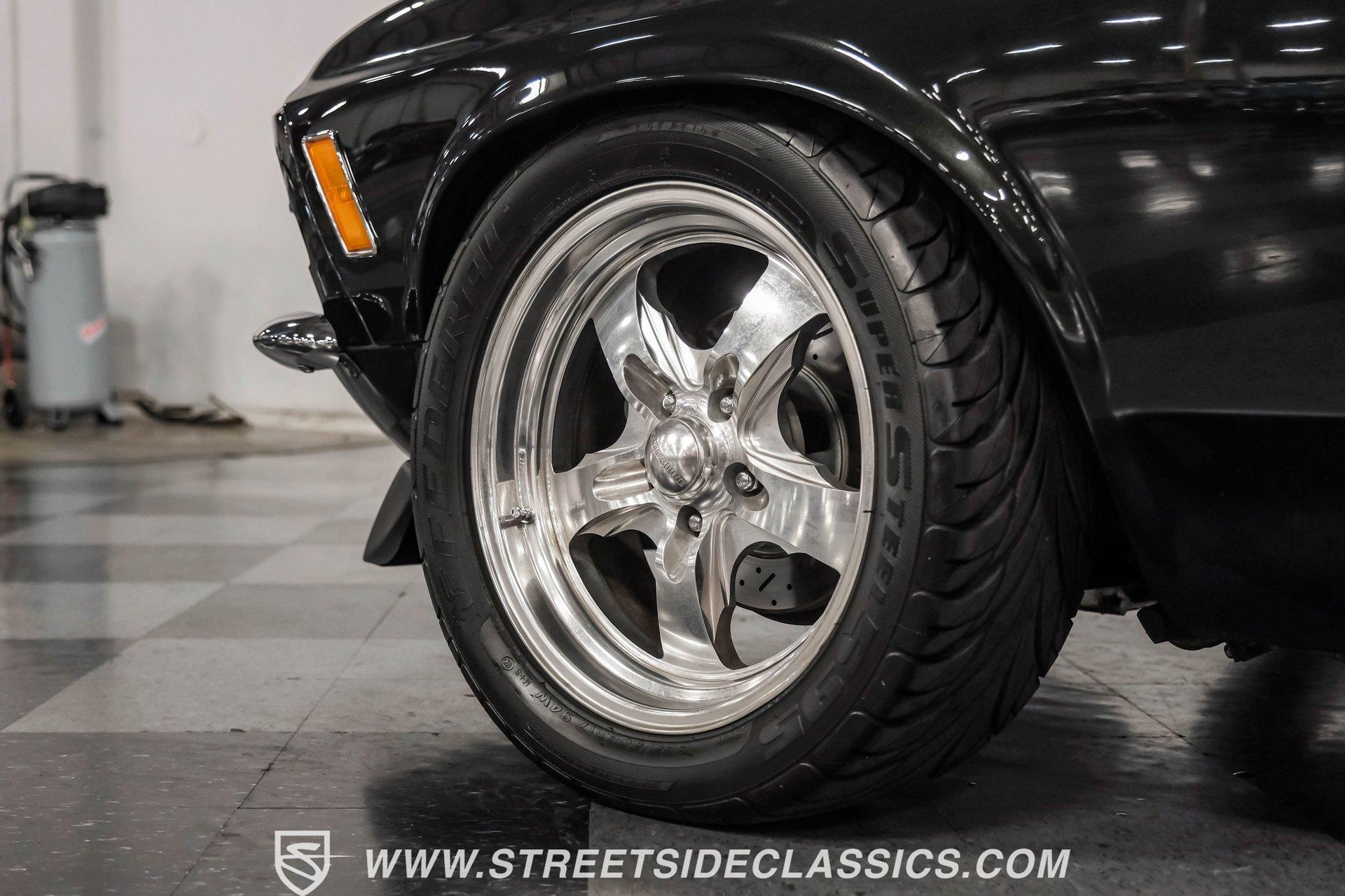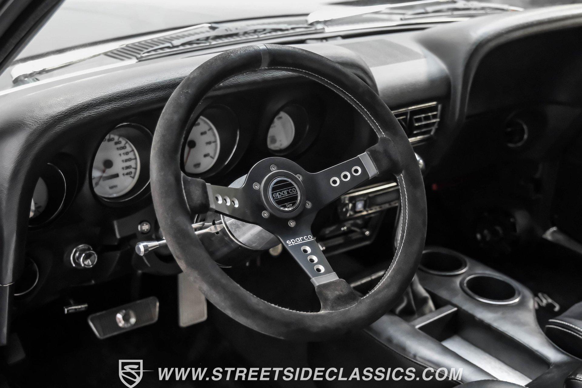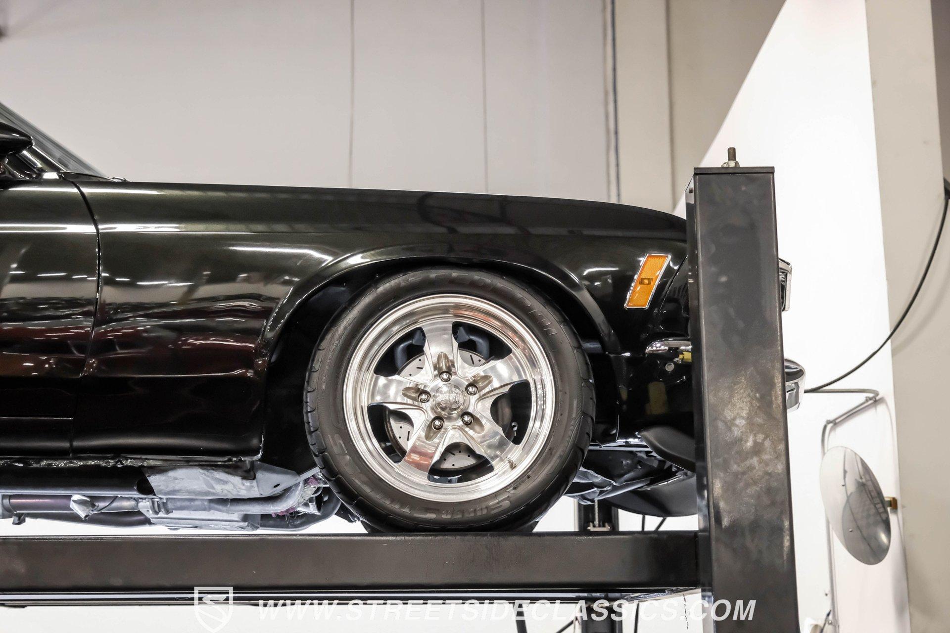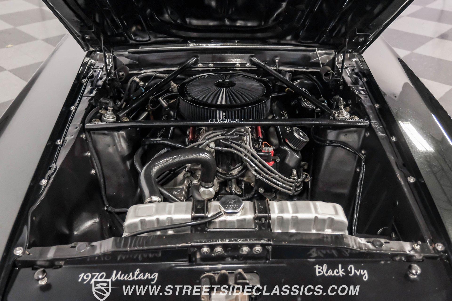 Muscle and modern technology combine in an ultimate package - the 1970 Ford Mustang Fastback Restomod with Black Ivy Metallic paint. Dark green metallic flake provides exceptional depth across the fastback body. Clean chrome bumpers and grille maintain classic styling while LED headlights add modern illumination. A front chin spoiler gives an aggressive touch and dual exhaust tips exit cleanly from the rear valance. 17" Center Line wheels fill out the wheel openings perfectly, wrapped in 225/50ZR17 Federal tires up front with fatter 245/45ZR17 rubber in back. Inside the cabin, black leather and suede TMI bucket seats anchor the driver's space with excellent support. Custom center console houses the floor shifter with an 8-ball knob for a personalized touch. Momo steering wheel connects to a Flaming River tilt column for improved driving position. Custom door panel inserts and billet pedals elevate the entire look. Audio comes through an Alpine AM/FM/CD/Aux head unit pushing sound to kick panel speakers, rear deck speakers, and subwoofers powered by two Alpine amplifiers for concert-quality sound at any volume. Powering this pony is a 408 Stroker V8 using Fast EFI fuel injection and Edelbrock intake manifold. AFR heads and a stage 3 Crower cam maximize airflow while long tube headers connect to dual exhaust with X-pipe and Pypes mufflers. The AOD 4-speed automatic transmission sends power to a 9" rear end with 4.10 posi-traction for quick acceleration. Front coilovers with sway bar and electronically controlled shocks (with dash-mounted switch) manage the handling. Four-wheel power disc brakes and power steering round out the mechanical package for modern driving dynamics. HIGHLIGHTS: 408 Stroker V8 Engine 4-Speed Automatic AOD Transmission Fast EFI Fuel Injection Edelbrock Intake Manifold AFR Heads Stage 3 Crower Cam Four-Wheel Power Disc Brakes Electronically Controlled Shocks with Dash Switch Ridetech Rear Shocks Dual Exhaust with X-Pipe Pypes Mufflers Stainless Gas Tank Griffin Radiator with Electric Fans Subframe Connectors Black Ivy Metallic Paint 17" Center Line Wheels with 225/50ZR17 Front, 245/45ZR17 Rear Tires LED Headlights Black Interior with Leather and Suede TMI Bucket Seats Custom Center Console Flaming River Tilt Column with Momo Steering Wheel Power Steering Alpine AM/FM/CD/Aux with Dual Alpine Amplifiers Kick Panel Speakers, Rear Deck Speakers, Subwoofers When American muscle meets modern performance upgrades, magic happens. The 1970 Ford Mustang Fastback Restomod takes iconic styling and adds upgraded power, handling, and comfort for an improved driving machine. Call today!