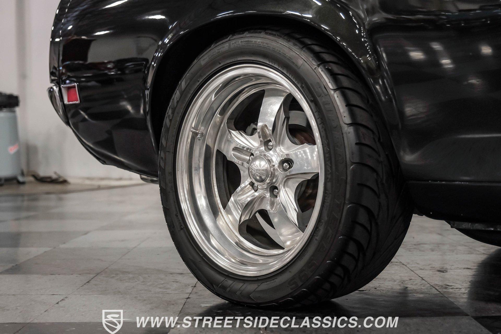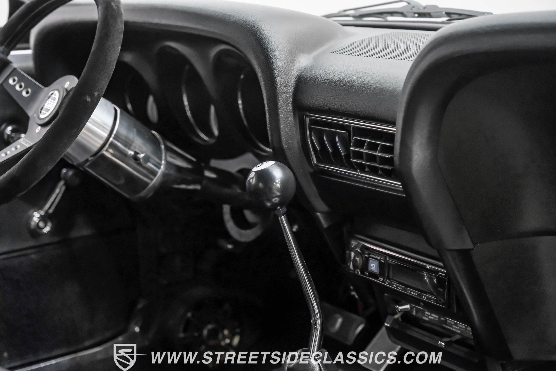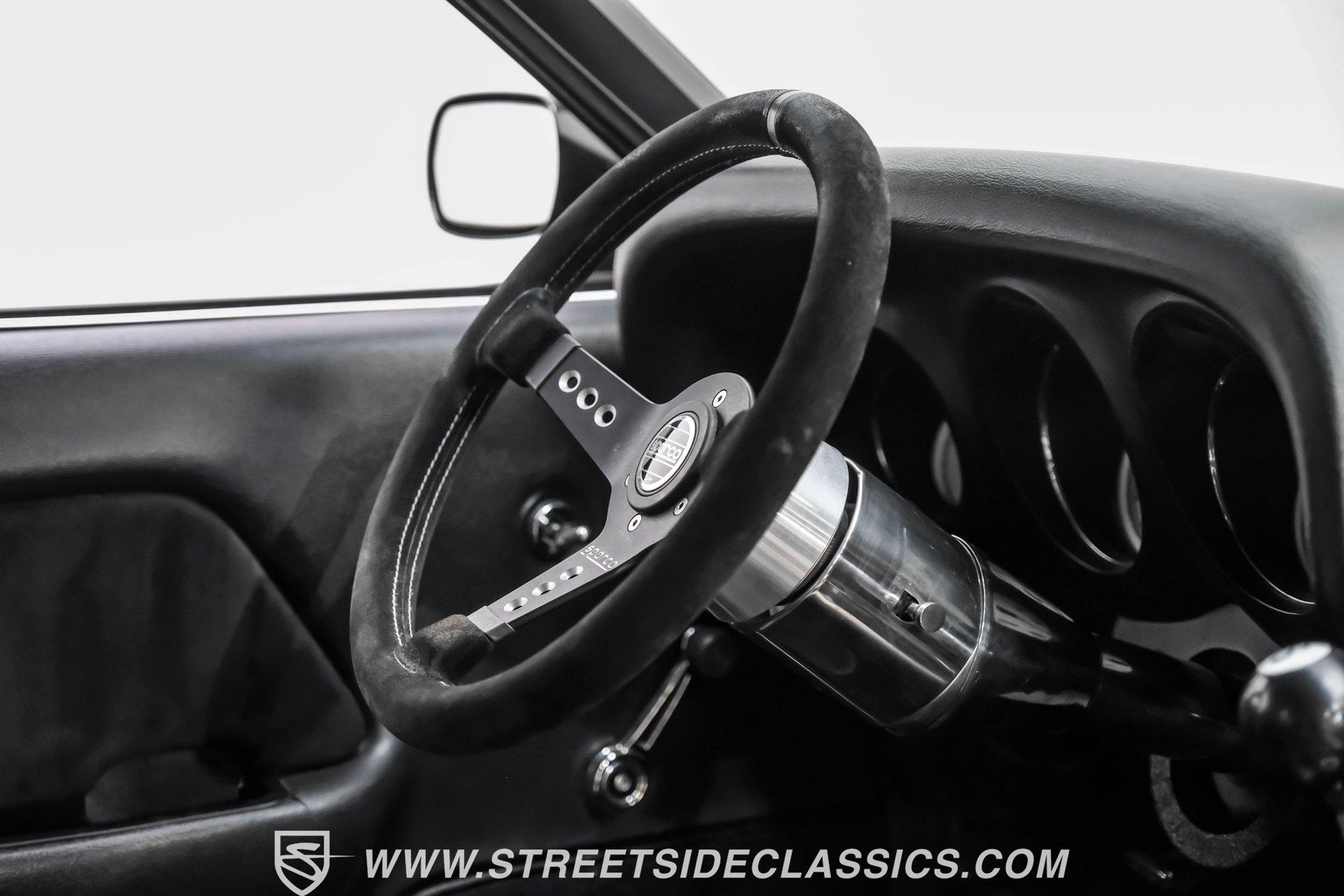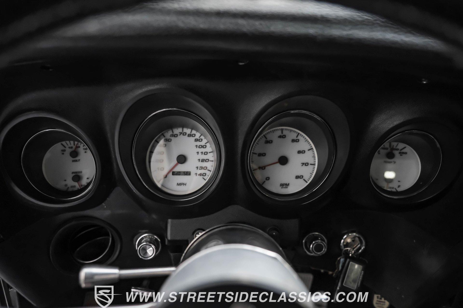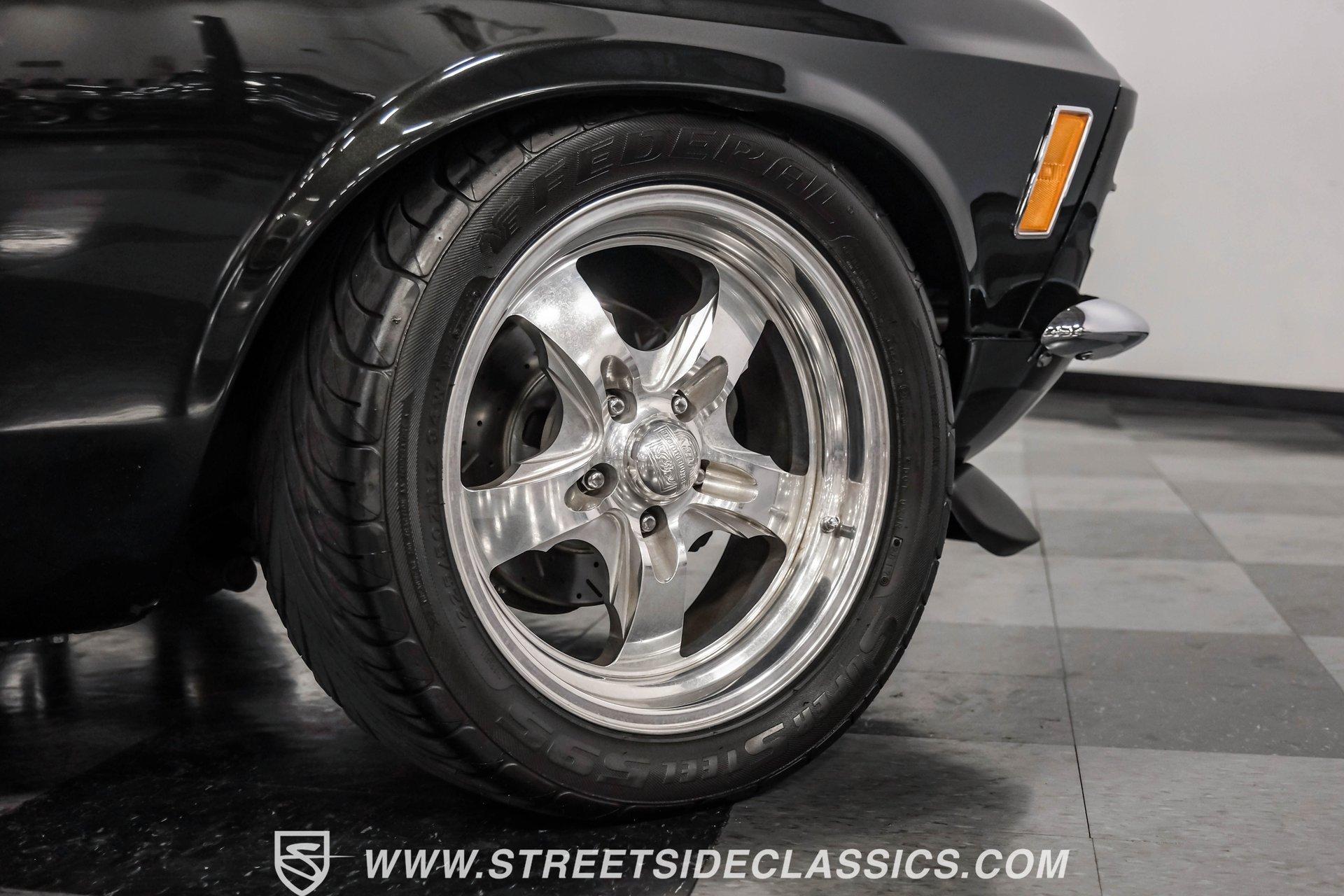 Muscle and modern technology combine in an ultimate package - the 1970 Ford Mustang Fastback Restomod with Black Ivy Metallic paint. Dark green metallic flake provides exceptional depth across the fastback body. Clean chrome bumpers and grille maintain classic styling while LED headlights add modern illumination. A front chin spoiler gives an aggressive touch and dual exhaust tips exit cleanly from the rear valance. 17" Center Line wheels fill out the wheel openings perfectly, wrapped in 225/50ZR17 Federal tires up front with fatter 245/45ZR17 rubber in back. Inside the cabin, black leather and suede TMI bucket seats anchor the driver's space with excellent support. Custom center console houses the floor shifter with an 8-ball knob for a personalized touch. Momo steering wheel connects to a Flaming River tilt column for improved driving position. Custom door panel inserts and billet pedals elevate the entire look. Audio comes through an Alpine AM/FM/CD/Aux head unit pushing sound to kick panel speakers, rear deck speakers, and subwoofers powered by two Alpine amplifiers for concert-quality sound at any volume. Powering this pony is a 408 Stroker V8 using Fast EFI fuel injection and Edelbrock intake manifold. AFR heads and a stage 3 Crower cam maximize airflow while long tube headers connect to dual exhaust with X-pipe and Pypes mufflers. The AOD 4-speed automatic transmission sends power to a 9" rear end with 4.10 posi-traction for quick acceleration. Front coilovers with sway bar and electronically controlled shocks (with dash-mounted switch) manage the handling. Four-wheel power disc brakes and power steering round out the mechanical package for modern driving dynamics. HIGHLIGHTS: 408 Stroker V8 Engine 4-Speed Automatic AOD Transmission Fast EFI Fuel Injection Edelbrock Intake Manifold AFR Heads Stage 3 Crower Cam Four-Wheel Power Disc Brakes Electronically Controlled Shocks with Dash Switch Ridetech Rear Shocks Dual Exhaust with X-Pipe Pypes Mufflers Stainless Gas Tank Griffin Radiator with Electric Fans Subframe Connectors Black Ivy Metallic Paint 17" Center Line Wheels with 225/50ZR17 Front, 245/45ZR17 Rear Tires LED Headlights Black Interior with Leather and Suede TMI Bucket Seats Custom Center Console Flaming River Tilt Column with Momo Steering Wheel Power Steering Alpine AM/FM/CD/Aux with Dual Alpine Amplifiers Kick Panel Speakers, Rear Deck Speakers, Subwoofers When American muscle meets modern performance upgrades, magic happens. The 1970 Ford Mustang Fastback Restomod takes iconic styling and adds upgraded power, handling, and comfort for an improved driving machine. Call today!