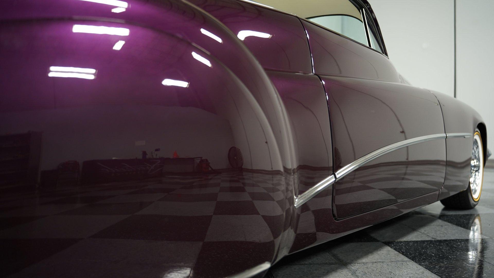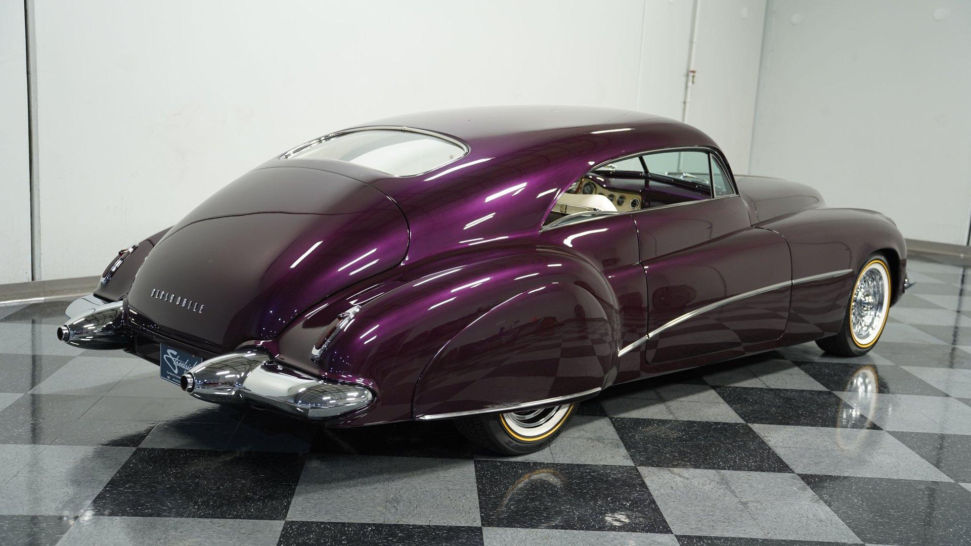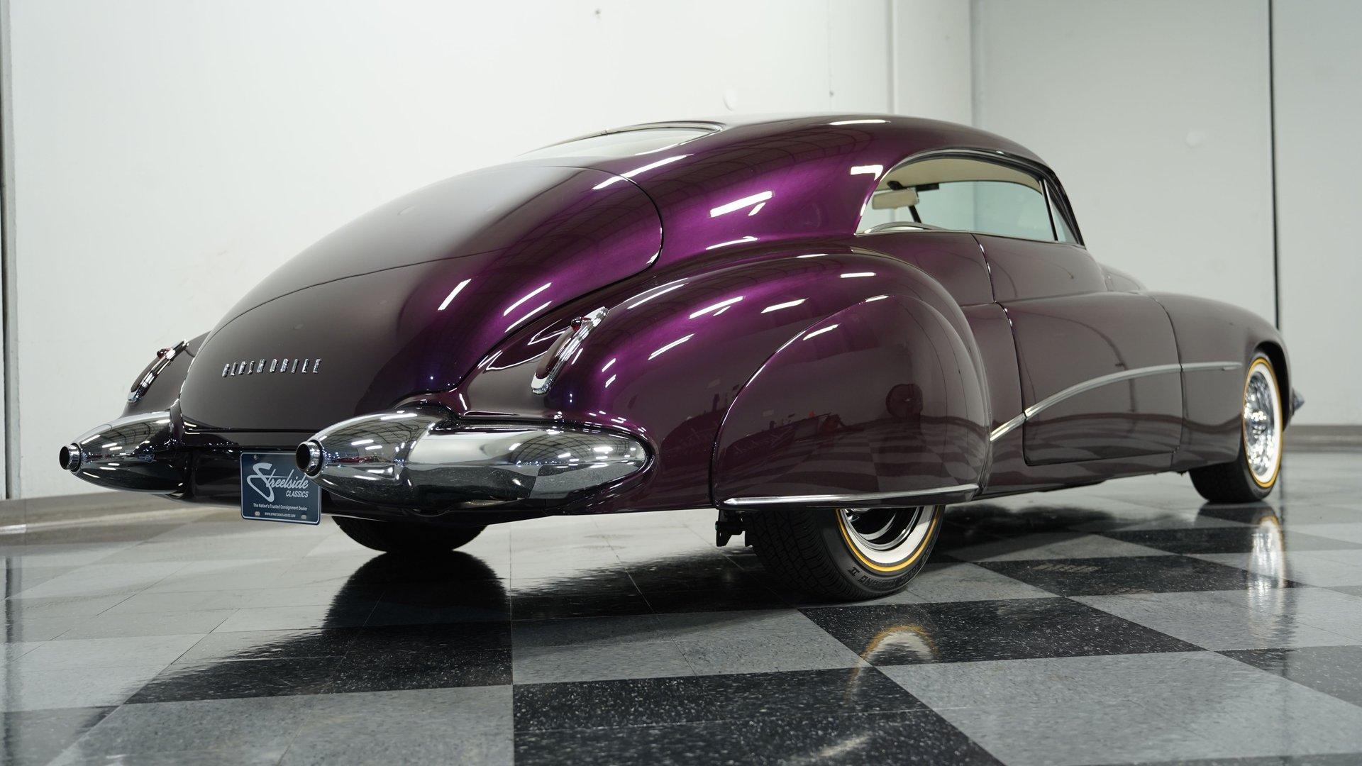 Slammed, chopped, and sectioned to perfection, this 1948 Oldsmobile 66 Custom is pure street machine artistry. The Deep Purple Metallic finish looks a mile deep on this radically modified body featuring a 4" chop top and 7" section job. The extensive metalwork includes 12" removed from the cab with the front stretched 12" for perfect proportions. Those killer modified '56 Cadillac bumpers and ultra-rare '41 Studebaker "hen's teeth" tail lights create a unique profile unlike anything else on the road. The handcrafted grille and '59 Pontiac side chrome add custom flair, while 15" Tru spoke wheels wrapped in Vogue tires complete this ground-hugging street beast. Flip open the door and you'll discover a white leather cockpit built for serious cruising. Those mid-60s Thunderbird bucket seats aren't just for show – they offer perfect support for long drives. The custom-fabricated dash blends elements from a '50 Mercury and '54 Packard into a one-off masterpiece filled with crystal-clear gauges. A center console houses the automatic shifter in perfect reach of the driver. Cool air blasts from the AC system while the AM/FM CD player pumps out your favorite driving soundtrack. Every inch of this cabin shows the same attention to detail as the exterior modifications. Muscle car power hides under the hood with a thundering 454 cubic inch V8 ready to lay rubber through the 700R4 four-speed automatic transmission. The engine compartment looks as good as it performs with chrome valve covers and a Demon carburetor delivering the go-juice. A Nova front clip improves handling dramatically with power disc brakes out back ensure this custom stops as well as it goes. The air ride suspension allows for perfect street stance adjustability, and power steering makes carving corners effortless. Dual exhaust with aftermarket mufflers creates that unmistakable rumble that announces your arrival before you're even seen. HIGHLIGHTS: 454 V8 Engine 700R4 4-Speed Automatic Transmission Demon Carburetor Front Disc Brakes With Rear Power Disc Brakes Air Ride Suspension Dual Exhaust With Aftermarket Mufflers 1968 Nova Front Subframe 8.8 Rear Axle Deep Purple Metallic Paint 15" Tru Spoke Wheels With Vogue Tires 4" Chopped Top 7" Sectioned Body Modified 1956 Cadillac Bumpers 1941 Studebaker "Hen's Teeth" Tail Lights 1959 Pontiac Side Chrome Custom Hand-Made Grille Shaved Door Handles White Interior With Leather Bucket Seats Custom Rear Seat Custom Fabricated Dash Console Shifter Power Steering Air Conditioning AM/FM CD Player 12V Electrical System In-Trunk Fuel Filler Custom kustom doesn't get much better than this '48 Olds. The killer combination of show-worthy looks and street-ready performance makes this purple people-eater a true standout. From the ground-up custom work to the muscle car powerplant, this radical Oldsmobile 66 has what it takes to dominate both the show field and the boulevard. Call today!