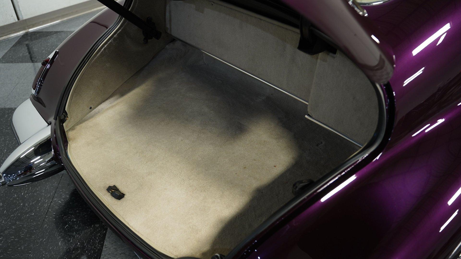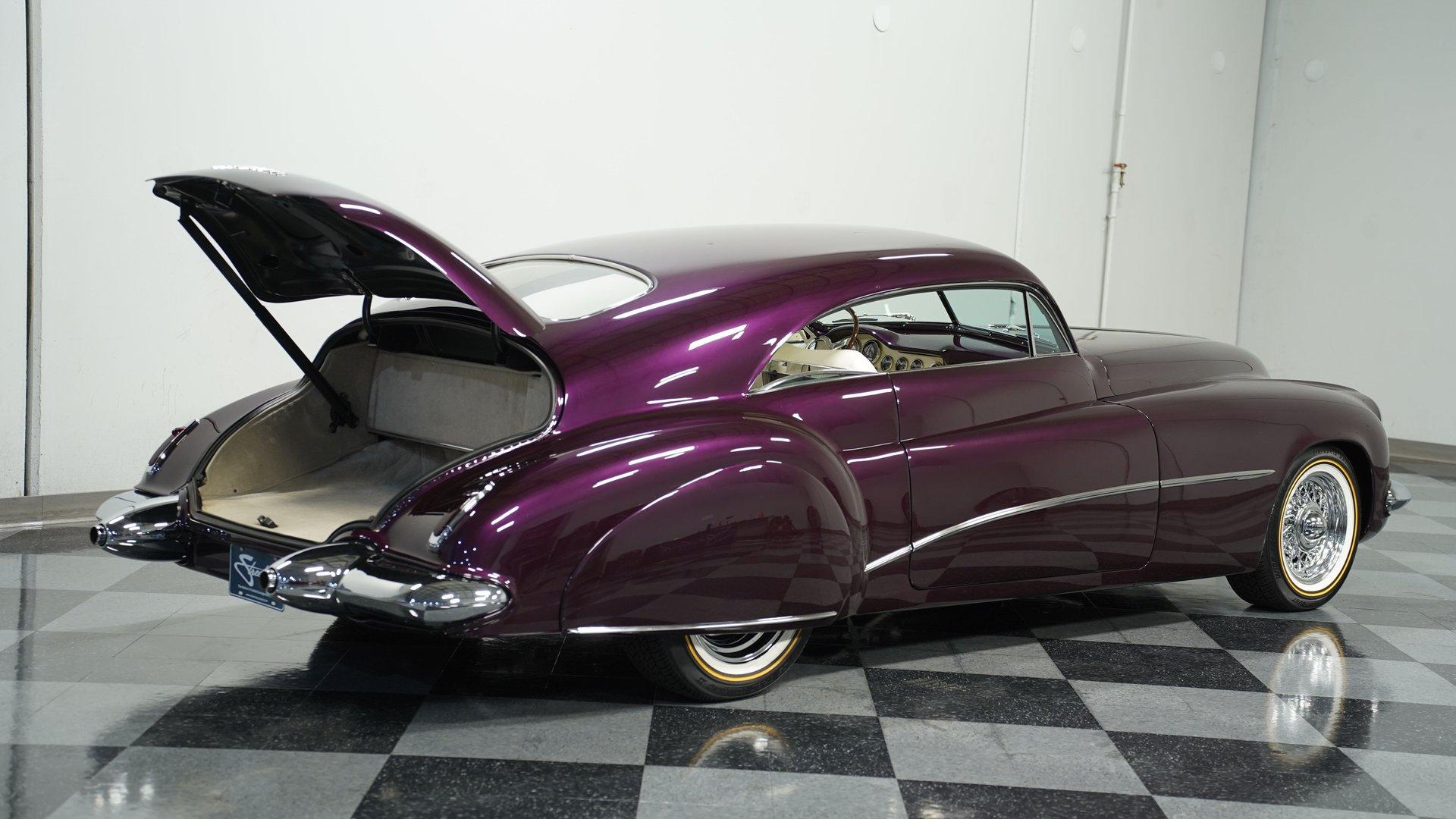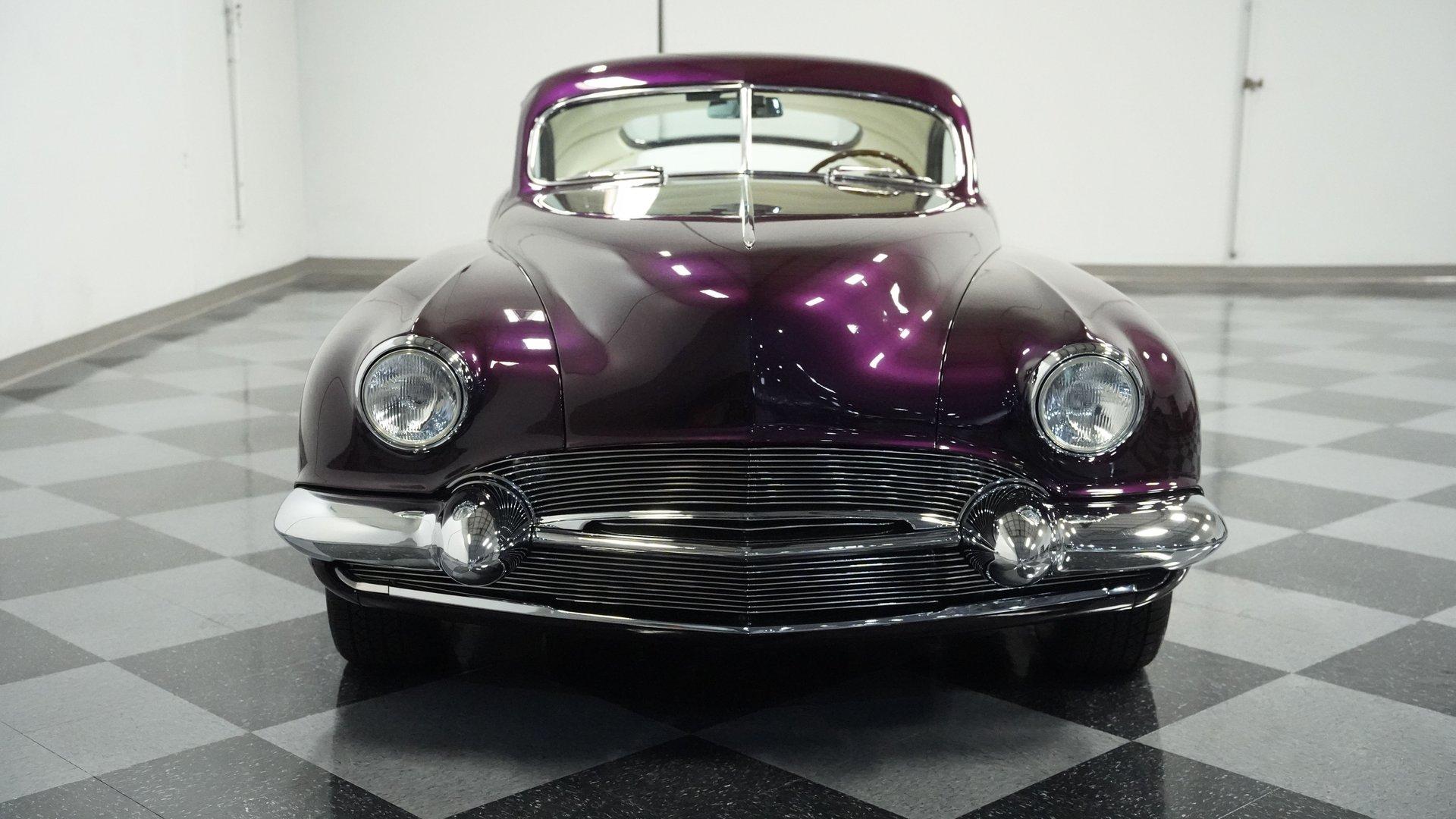 Slammed, chopped, and sectioned to perfection, this 1948 Oldsmobile 66 Custom is pure street machine artistry. The Deep Purple Metallic finish looks a mile deep on this radically modified body featuring a 4" chop top and 7" section job. The extensive metalwork includes 12" removed from the cab with the front stretched 12" for perfect proportions. Those killer modified '56 Cadillac bumpers and ultra-rare '41 Studebaker "hen's teeth" tail lights create a unique profile unlike anything else on the road. The handcrafted grille and '59 Pontiac side chrome add custom flair, while 15" Tru spoke wheels wrapped in Vogue tires complete this ground-hugging street beast. Flip open the door and you'll discover a white leather cockpit built for serious cruising. Those mid-60s Thunderbird bucket seats aren't just for show – they offer perfect support for long drives. The custom-fabricated dash blends elements from a '50 Mercury and '54 Packard into a one-off masterpiece filled with crystal-clear gauges. A center console houses the automatic shifter in perfect reach of the driver. Cool air blasts from the AC system while the AM/FM CD player pumps out your favorite driving soundtrack. Every inch of this cabin shows the same attention to detail as the exterior modifications. Muscle car power hides under the hood with a thundering 454 cubic inch V8 ready to lay rubber through the 700R4 four-speed automatic transmission. The engine compartment looks as good as it performs with chrome valve covers and a Demon carburetor delivering the go-juice. A Nova front clip improves handling dramatically with power disc brakes out back ensure this custom stops as well as it goes. The air ride suspension allows for perfect street stance adjustability, and power steering makes carving corners effortless. Dual exhaust with aftermarket mufflers creates that unmistakable rumble that announces your arrival before you're even seen. HIGHLIGHTS: 454 V8 Engine 700R4 4-Speed Automatic Transmission Demon Carburetor Front Disc Brakes With Rear Power Disc Brakes Air Ride Suspension Dual Exhaust With Aftermarket Mufflers 1968 Nova Front Subframe 8.8 Rear Axle Deep Purple Metallic Paint 15" Tru Spoke Wheels With Vogue Tires 4" Chopped Top 7" Sectioned Body Modified 1956 Cadillac Bumpers 1941 Studebaker "Hen's Teeth" Tail Lights 1959 Pontiac Side Chrome Custom Hand-Made Grille Shaved Door Handles White Interior With Leather Bucket Seats Custom Rear Seat Custom Fabricated Dash Console Shifter Power Steering Air Conditioning AM/FM CD Player 12V Electrical System In-Trunk Fuel Filler Custom kustom doesn't get much better than this '48 Olds. The killer combination of show-worthy looks and street-ready performance makes this purple people-eater a true standout. From the ground-up custom work to the muscle car powerplant, this radical Oldsmobile 66 has what it takes to dominate both the show field and the boulevard. Call today!