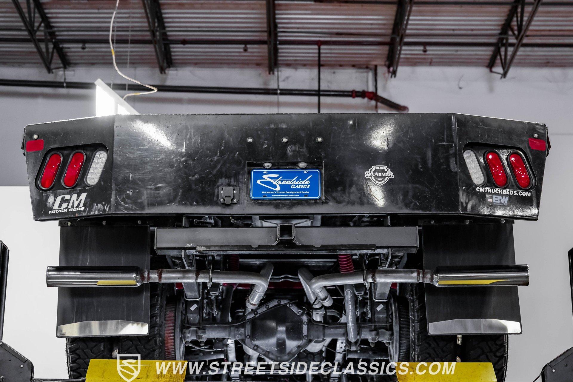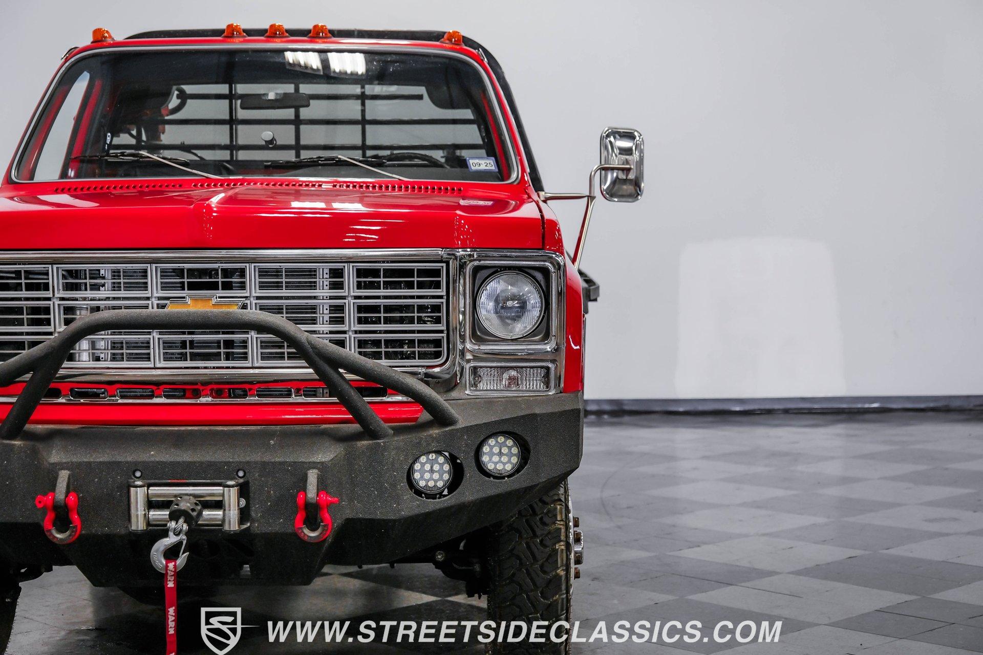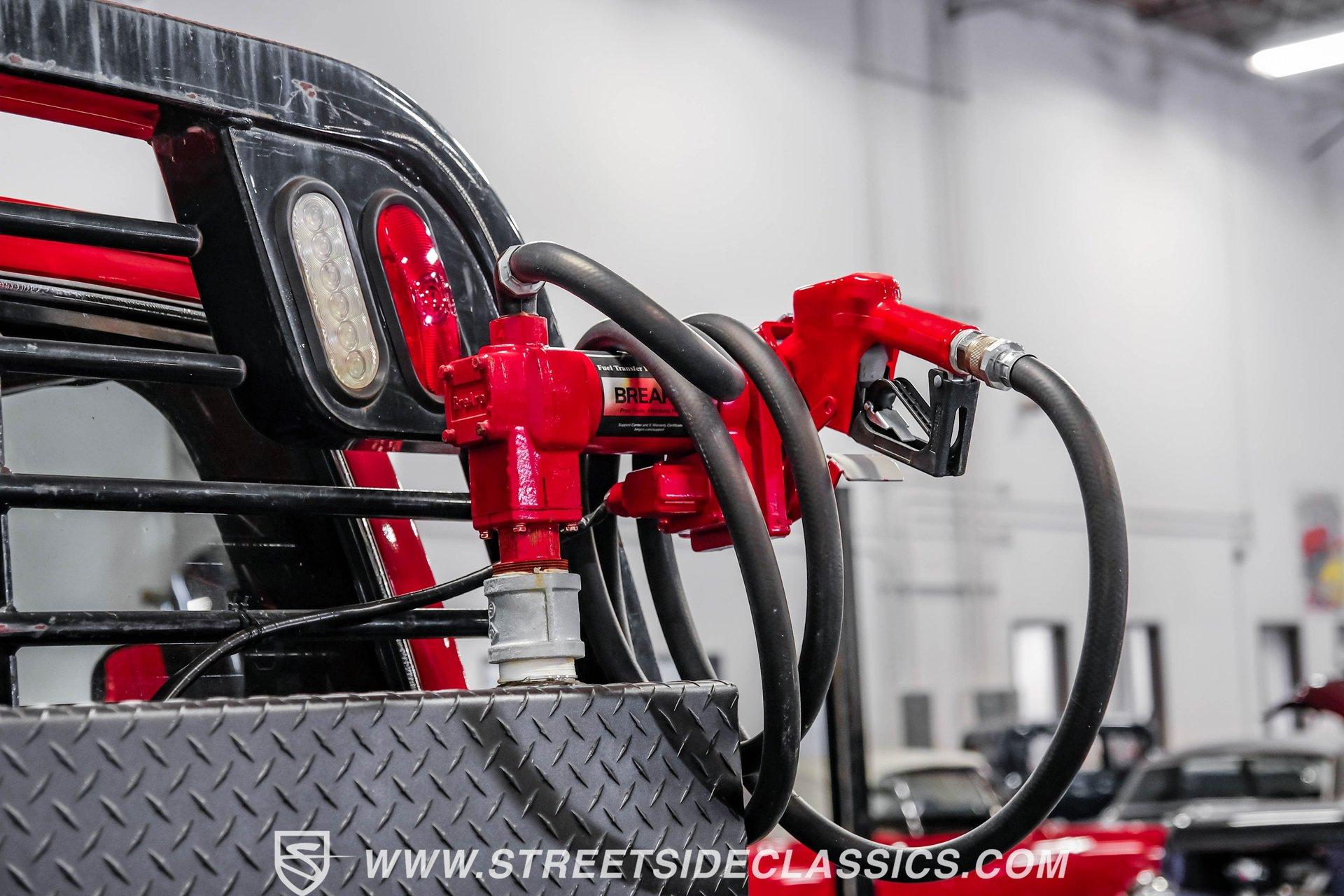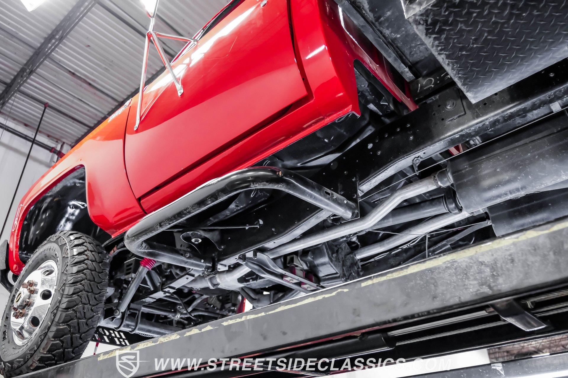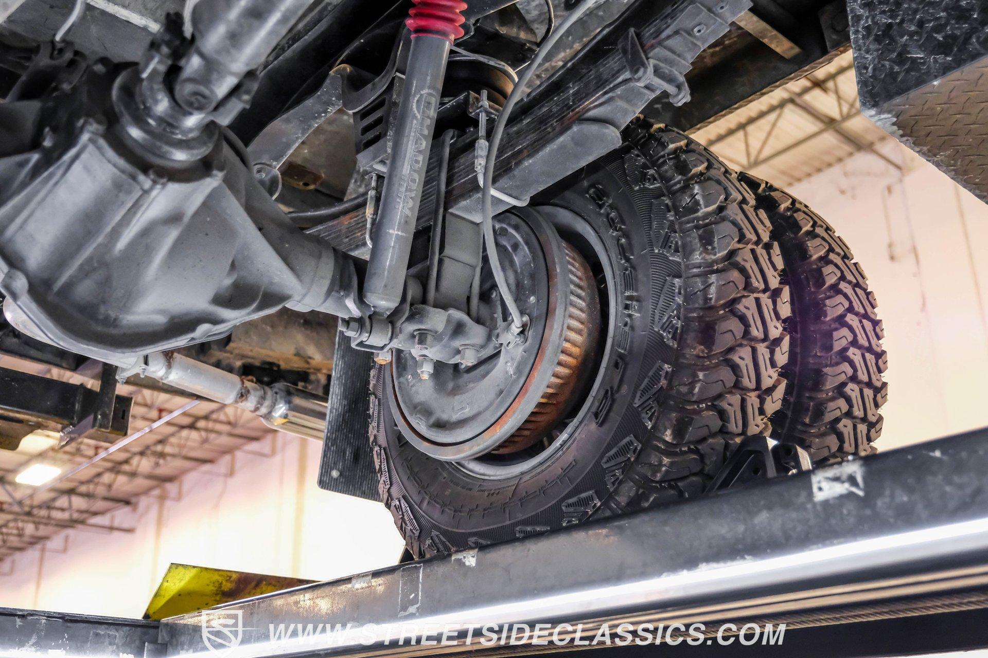 From firetruck to formidable hauler, the 1979 Chevrolet K30 Custom Deluxe Flatbed Dually 4X4 has been transformed into a workhorse built for serious action. The red cab contrasts sharply against the black CM Truck Beds flatbed, creating a tough, no-excuses look. A 45-gallon RDS transfer tank sits ready for duty while the aftermarket front bumper houses fog lights and anchors a Warn 12,000-pound winch. The 16" wheels wrapped in 235/85R16 tires provide the stance and traction expected from a truck designed to conquer rough terrain. Black dominates the fully restored interior, centered around custom TMI bucket seats with a folding armrest that doubles as a functional console. The vinyl floor offers durability while the deluxe door cards add a touch of class. Vintage brand climate control keeps the cabin comfortable with ice-cold air conditioning for summer drives. A Custom Auto Sound AM/FM/AUX radio connected to an amp and Kicker subwoofer provides the soundtrack. The tilt steering column and custom gauges complete the driver-oriented cabin. The 350 V8 engine has just 1,330 miles since being rebuilt and breathes through an Edelbrock intake topped with an Edelbrock AVS2 carburetor. Power flows through an NV4500 5-speed manual transmission to both axles – a Dana 60 up front and 14-bolt rear – making this 4X4 ready for any challenge. Flowmaster dual exhaust with long tube headers provides the soundtrack while the aluminum radiator with electric fans keeps temperatures in check. Air-lift helper bags with onboard compressor support the rear suspension system. HIGHLIGHTS: 350 V8 Engine (1,330 Miles Since Built) NV4500 5-Speed Manual Transmission 4X4 Drivetrain Dana 60 Front / 14-Bolt Rear Axles Edelbrock AVS2 Carburetor Edelbrock Intake Manifold Flowmaster Dual Exhaust With Long Tube Headers Power Front Disc Brakes Aluminum Radiator With Electric Fans Billet Accessory Brackets Air-Lift Helper Bags With Onboard Compressor Red Cab With Black Flatbed 16" Wheels With 235/85R16 Tires 45 Gallon RDS Transfer Tank Aftermarket Front Bumper With Fog Lights Warn 12,000lb Winch Black Interior With TMI Custom Bucket Seats with Folding Armrests Vintage Brand Air Conditioning Custom Auto Sound AM/FM/AUX Radio Amp And Kicker Subwoofer Tilt Steering Column Power Steering Custom Gauges Deluxe Door Cards Trailer Brake System Fully restored with just 1,330 miles on the clock, this 1979 Chevrolet K30 Custom Deluxe Flatbed Dually 4X4 offers everything needed for work or play. From its burly exterior to its comfortable interior and potent drivetrain, every aspect has been carefully addressed to create a truck that's both capable and enjoyable. Call today!