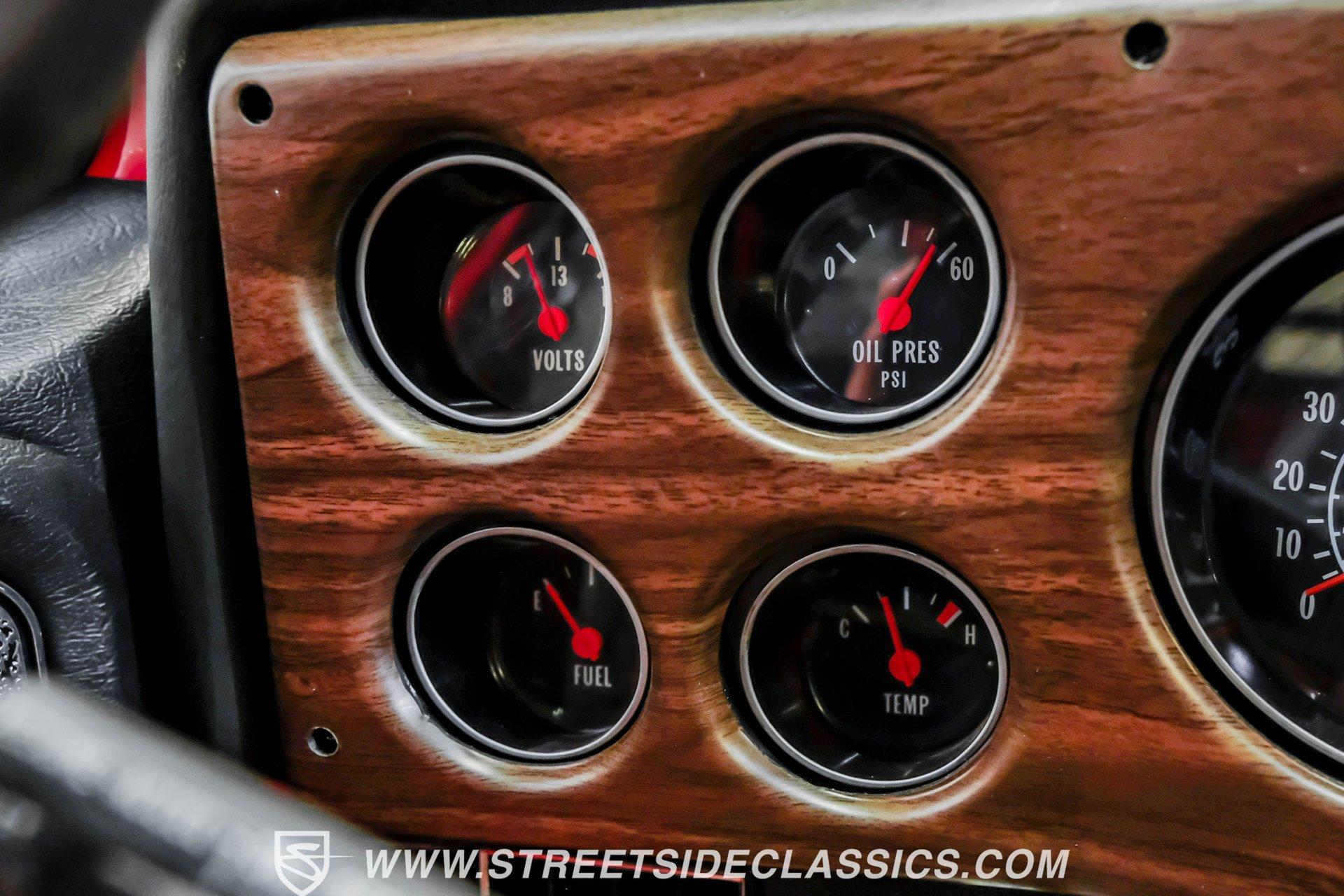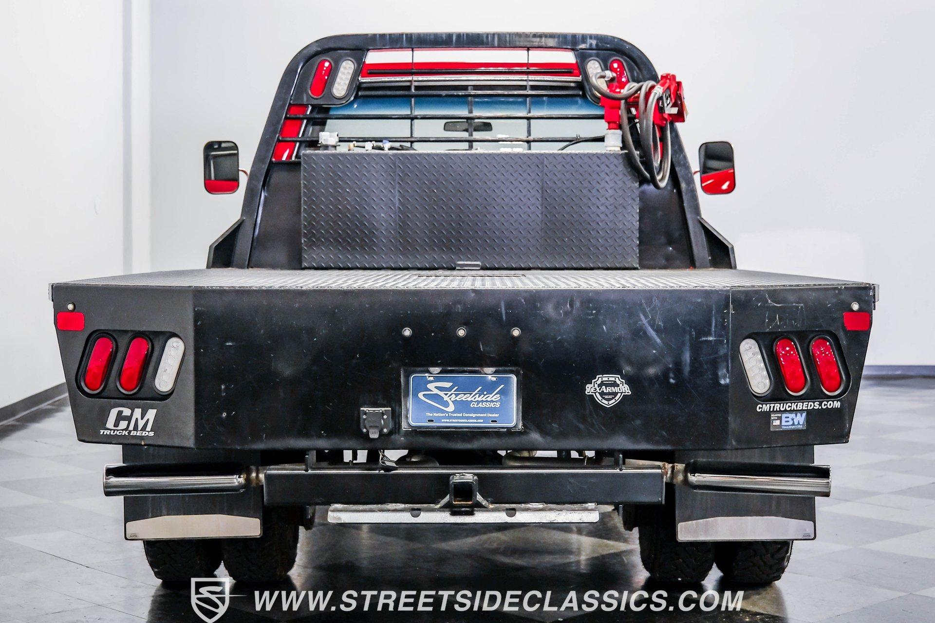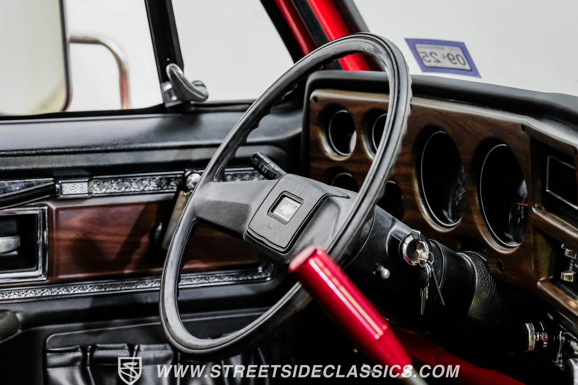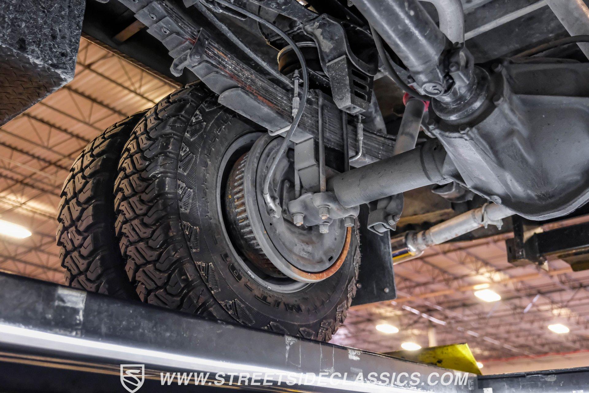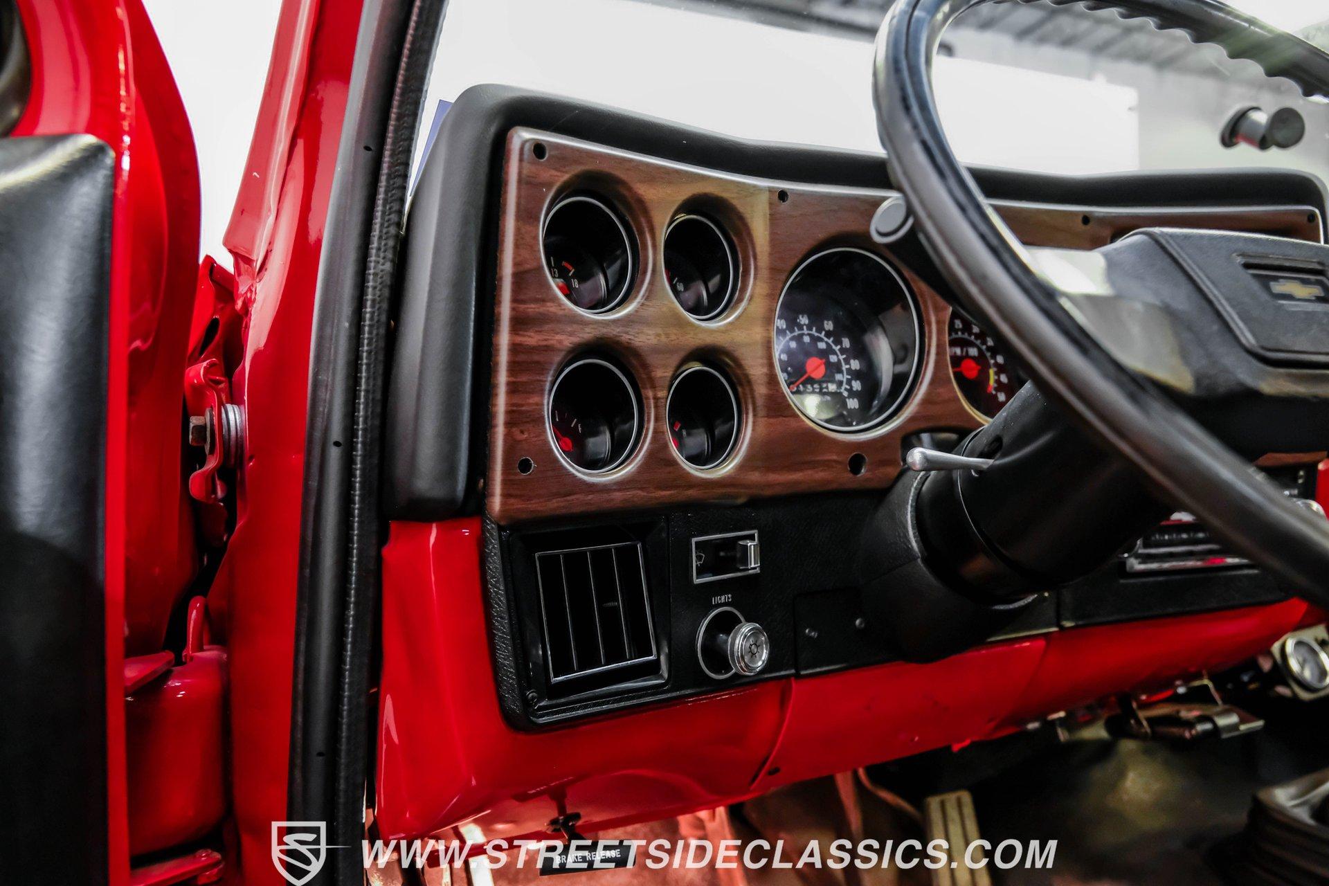 From firetruck to formidable hauler, the 1979 Chevrolet K30 Custom Deluxe Flatbed Dually 4X4 has been transformed into a workhorse built for serious action. The red cab contrasts sharply against the black CM Truck Beds flatbed, creating a tough, no-excuses look. A 45-gallon RDS transfer tank sits ready for duty while the aftermarket front bumper houses fog lights and anchors a Warn 12,000-pound winch. The 16" wheels wrapped in 235/85R16 tires provide the stance and traction expected from a truck designed to conquer rough terrain. Black dominates the fully restored interior, centered around custom TMI bucket seats with a folding armrest that doubles as a functional console. The vinyl floor offers durability while the deluxe door cards add a touch of class. Vintage brand climate control keeps the cabin comfortable with ice-cold air conditioning for summer drives. A Custom Auto Sound AM/FM/AUX radio connected to an amp and Kicker subwoofer provides the soundtrack. The tilt steering column and custom gauges complete the driver-oriented cabin. The 350 V8 engine has just 1,330 miles since being rebuilt and breathes through an Edelbrock intake topped with an Edelbrock AVS2 carburetor. Power flows through an NV4500 5-speed manual transmission to both axles – a Dana 60 up front and 14-bolt rear – making this 4X4 ready for any challenge. Flowmaster dual exhaust with long tube headers provides the soundtrack while the aluminum radiator with electric fans keeps temperatures in check. Air-lift helper bags with onboard compressor support the rear suspension system. HIGHLIGHTS: 350 V8 Engine (1,330 Miles Since Built) NV4500 5-Speed Manual Transmission 4X4 Drivetrain Dana 60 Front / 14-Bolt Rear Axles Edelbrock AVS2 Carburetor Edelbrock Intake Manifold Flowmaster Dual Exhaust With Long Tube Headers Power Front Disc Brakes Aluminum Radiator With Electric Fans Billet Accessory Brackets Air-Lift Helper Bags With Onboard Compressor Red Cab With Black Flatbed 16" Wheels With 235/85R16 Tires 45 Gallon RDS Transfer Tank Aftermarket Front Bumper With Fog Lights Warn 12,000lb Winch Black Interior With TMI Custom Bucket Seats with Folding Armrests Vintage Brand Air Conditioning Custom Auto Sound AM/FM/AUX Radio Amp And Kicker Subwoofer Tilt Steering Column Power Steering Custom Gauges Deluxe Door Cards Trailer Brake System Fully restored with just 1,330 miles on the clock, this 1979 Chevrolet K30 Custom Deluxe Flatbed Dually 4X4 offers everything needed for work or play. From its burly exterior to its comfortable interior and potent drivetrain, every aspect has been carefully addressed to create a truck that's both capable and enjoyable. Call today!