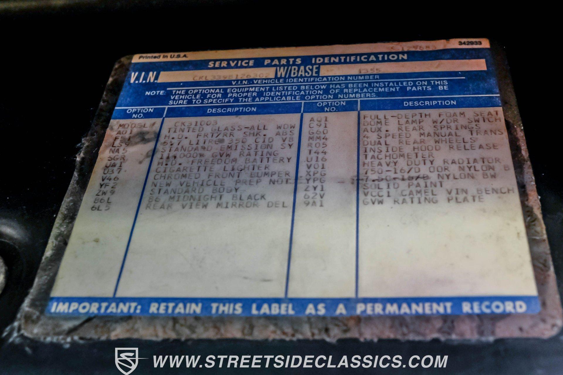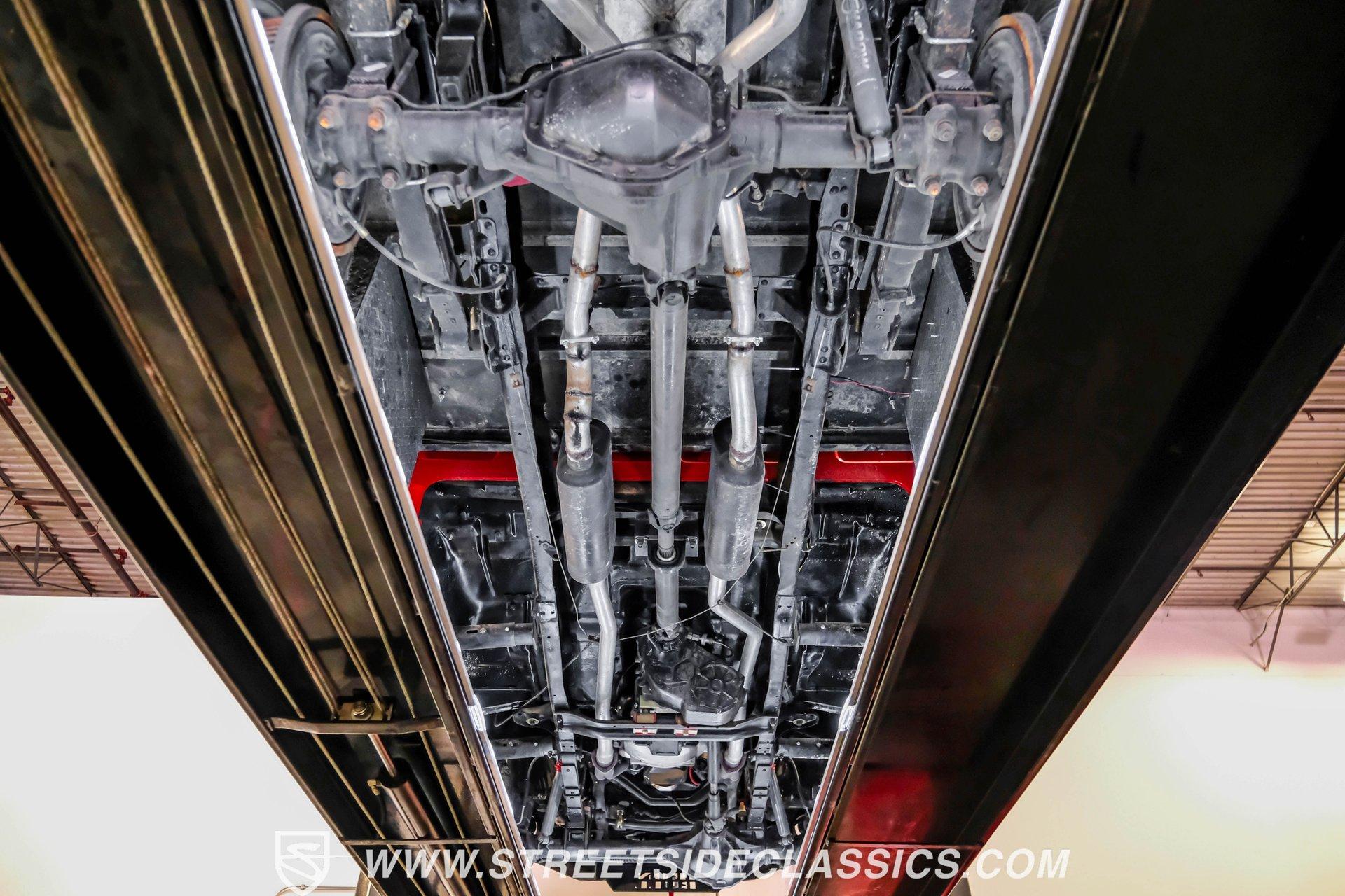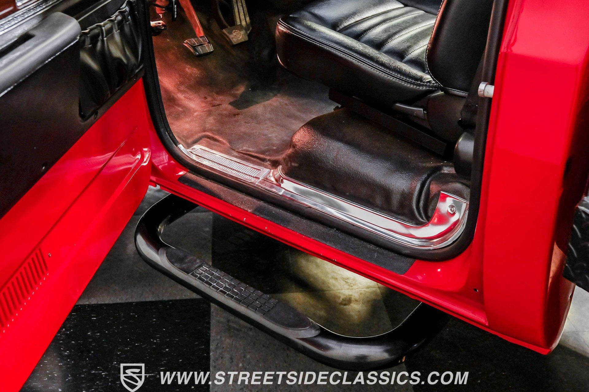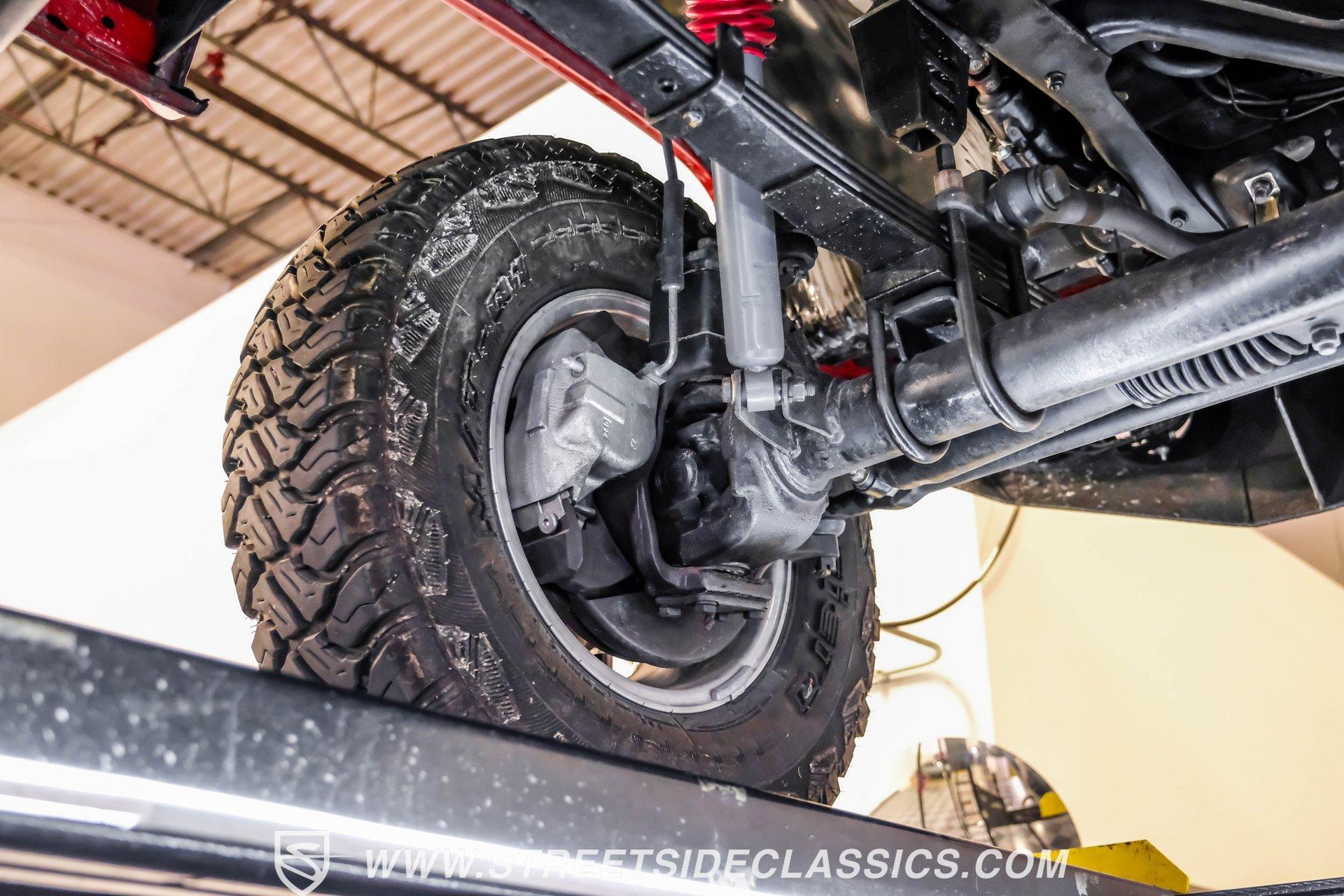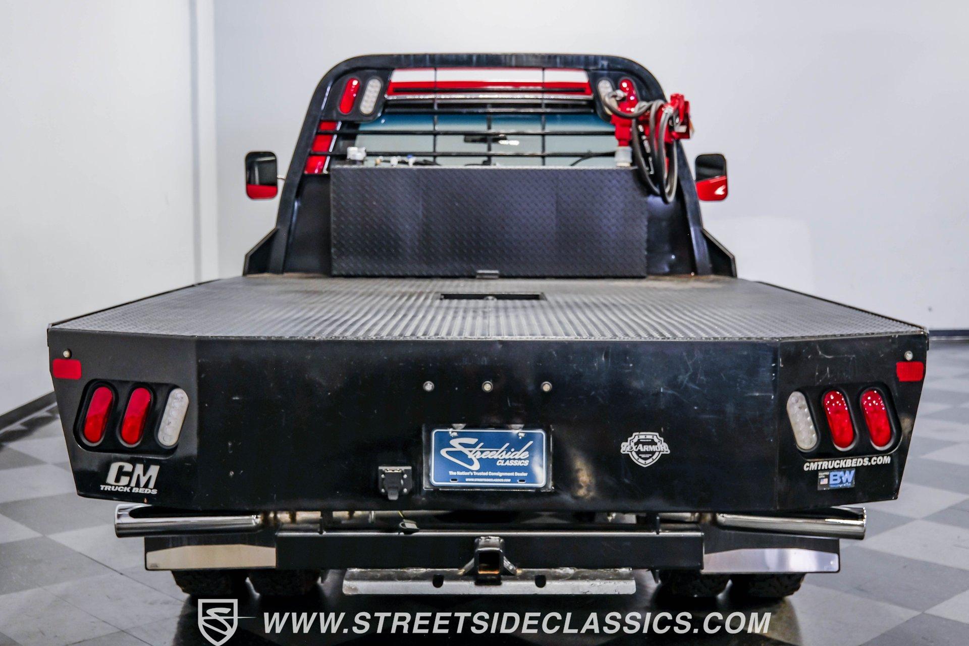 From firetruck to formidable hauler, the 1979 Chevrolet K30 Custom Deluxe Flatbed Dually 4X4 has been transformed into a workhorse built for serious action. The red cab contrasts sharply against the black CM Truck Beds flatbed, creating a tough, no-excuses look. A 45-gallon RDS transfer tank sits ready for duty while the aftermarket front bumper houses fog lights and anchors a Warn 12,000-pound winch. The 16" wheels wrapped in 235/85R16 tires provide the stance and traction expected from a truck designed to conquer rough terrain. Black dominates the fully restored interior, centered around custom TMI bucket seats with a folding armrest that doubles as a functional console. The vinyl floor offers durability while the deluxe door cards add a touch of class. Vintage brand climate control keeps the cabin comfortable with ice-cold air conditioning for summer drives. A Custom Auto Sound AM/FM/AUX radio connected to an amp and Kicker subwoofer provides the soundtrack. The tilt steering column and custom gauges complete the driver-oriented cabin. The 350 V8 engine has just 1,330 miles since being rebuilt and breathes through an Edelbrock intake topped with an Edelbrock AVS2 carburetor. Power flows through an NV4500 5-speed manual transmission to both axles – a Dana 60 up front and 14-bolt rear – making this 4X4 ready for any challenge. Flowmaster dual exhaust with long tube headers provides the soundtrack while the aluminum radiator with electric fans keeps temperatures in check. Air-lift helper bags with onboard compressor support the rear suspension system. HIGHLIGHTS: 350 V8 Engine (1,330 Miles Since Built) NV4500 5-Speed Manual Transmission 4X4 Drivetrain Dana 60 Front / 14-Bolt Rear Axles Edelbrock AVS2 Carburetor Edelbrock Intake Manifold Flowmaster Dual Exhaust With Long Tube Headers Power Front Disc Brakes Aluminum Radiator With Electric Fans Billet Accessory Brackets Air-Lift Helper Bags With Onboard Compressor Red Cab With Black Flatbed 16" Wheels With 235/85R16 Tires 45 Gallon RDS Transfer Tank Aftermarket Front Bumper With Fog Lights Warn 12,000lb Winch Black Interior With TMI Custom Bucket Seats with Folding Armrests Vintage Brand Air Conditioning Custom Auto Sound AM/FM/AUX Radio Amp And Kicker Subwoofer Tilt Steering Column Power Steering Custom Gauges Deluxe Door Cards Trailer Brake System Fully restored with just 1,330 miles on the clock, this 1979 Chevrolet K30 Custom Deluxe Flatbed Dually 4X4 offers everything needed for work or play. From its burly exterior to its comfortable interior and potent drivetrain, every aspect has been carefully addressed to create a truck that's both capable and enjoyable. Call today!