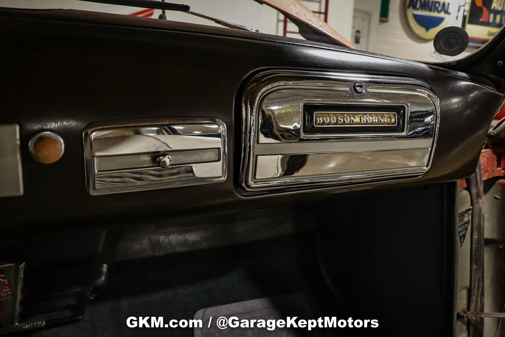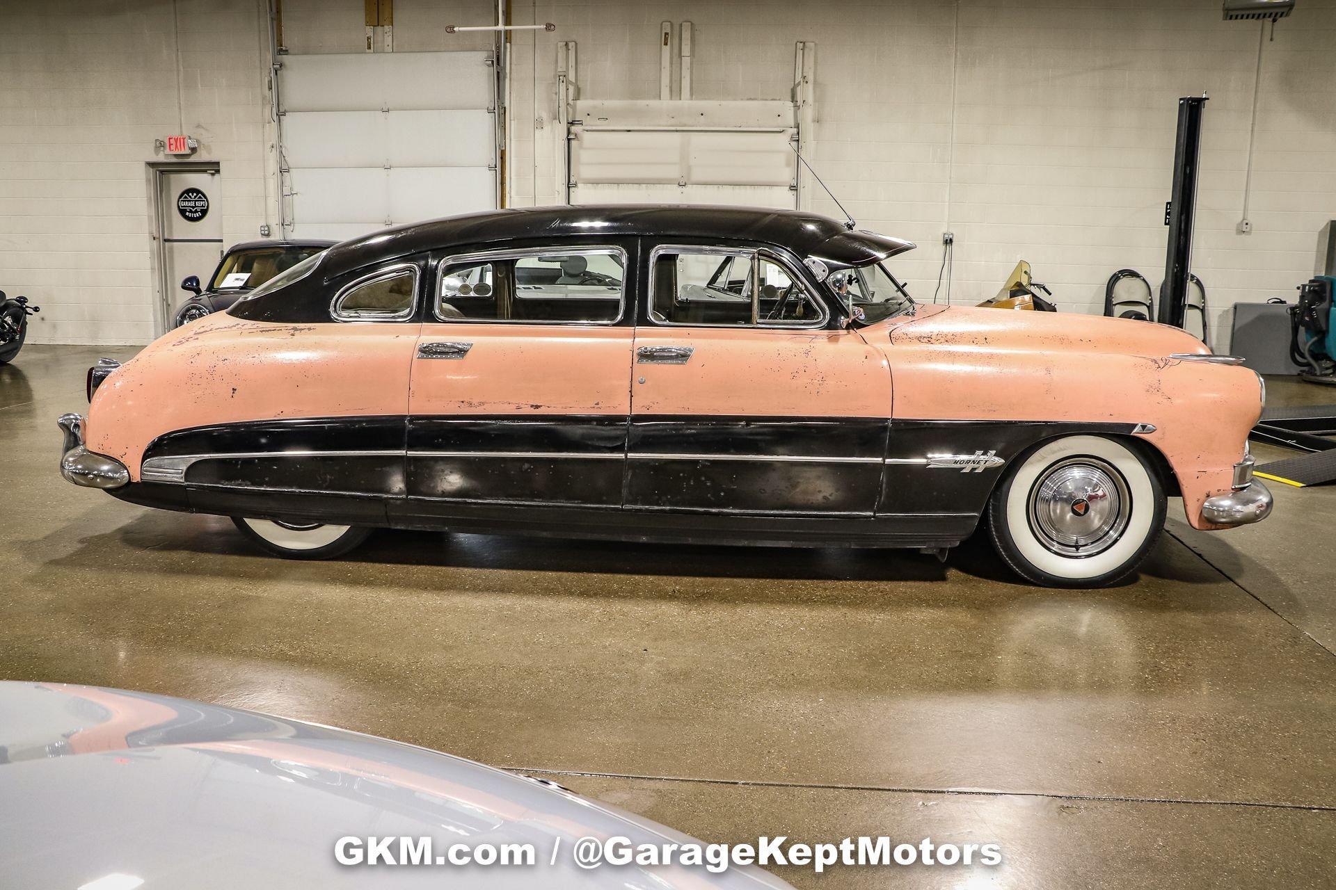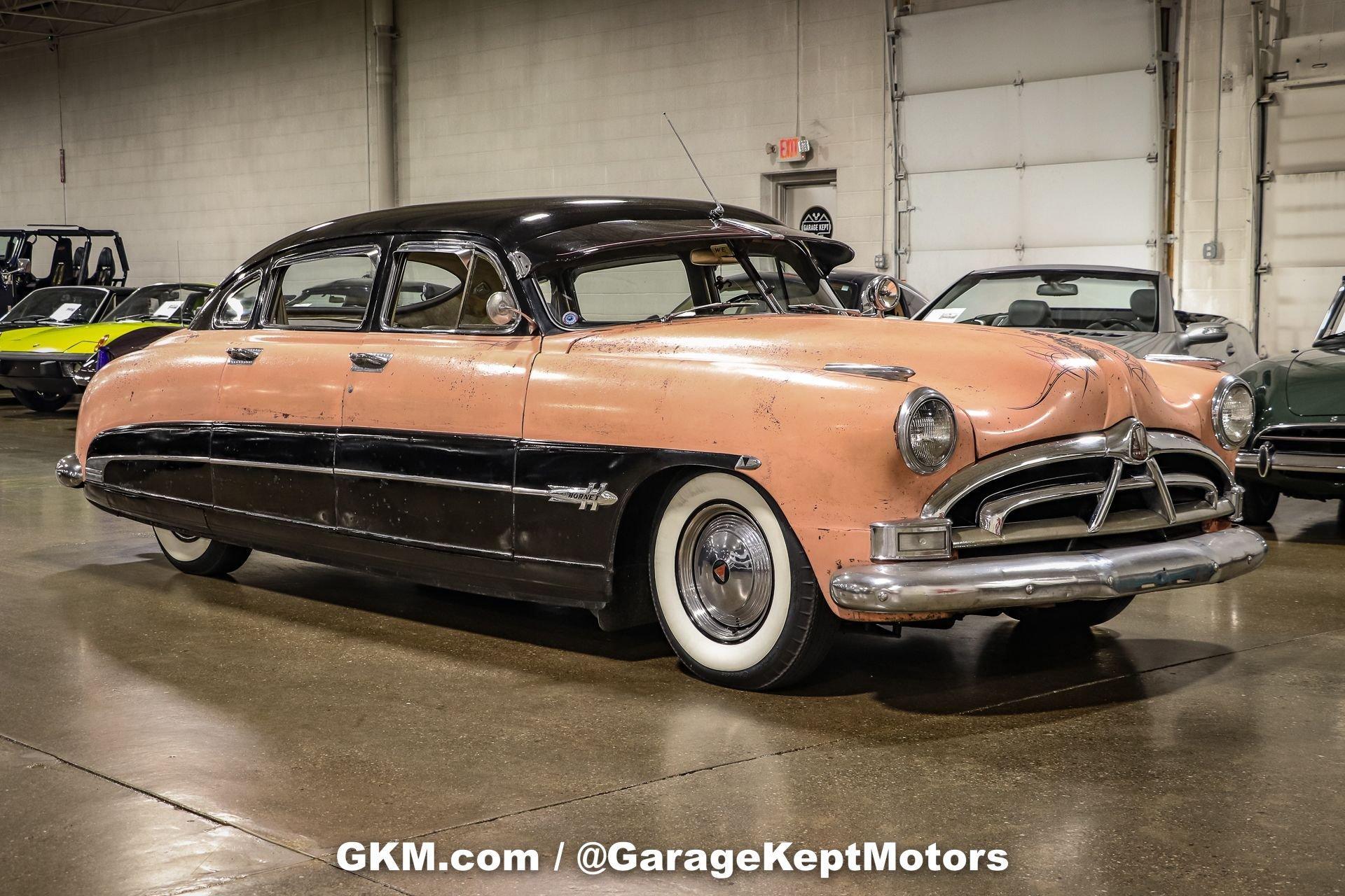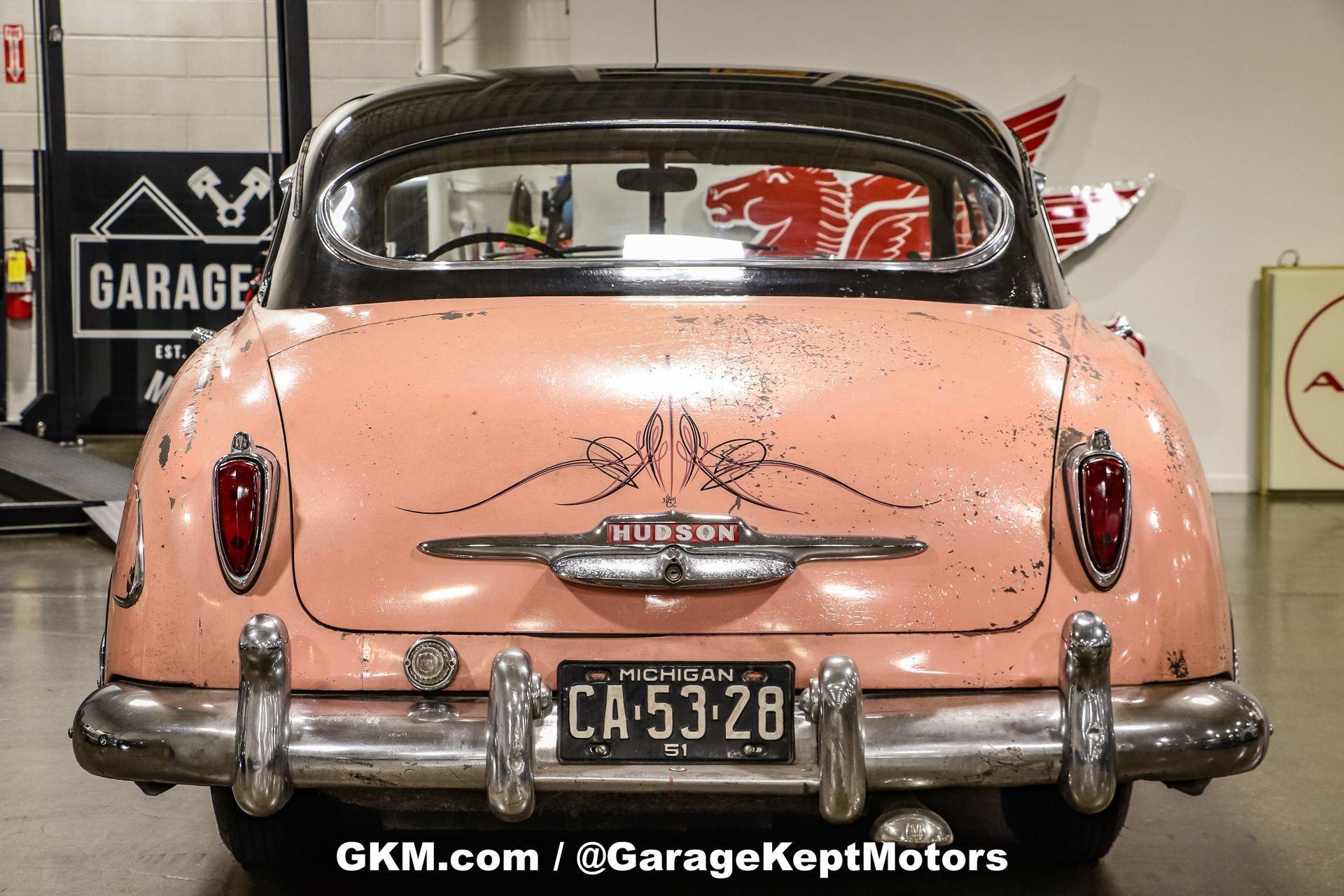 1951 Hudson Hornet- Originally Modified in 1958- Stored In 1960 Until 2011- Restored In 2018- 1956 308ci Inline 6- 262 Head- Mild Cam- Twin Intake- Clifford Headers And New Exhaust- Pink and Black Exterior- Original White InteriorFeatured here is a 1951 Hudson Hornet that is an amazing barn find and a true time capsule of the car culture of the 1950's. This car was originally modified in 1958 and two years later was put into storage in 1960. Emerging from a 51-year slumber in 2011 this classic cruiser went through a mechanical restoration with meticulous care and attention to preserve this car's appearance in its as-found condition. The pink and black two-tone paint is a classic 50's color combination on this four-door Hudson. The finish is unrestored representing the condition it was in when pulled from storage and preserved. The hand-painted pinstripe throughout the body is a classic touch and compliments the base paint job. The chrome bumpers and related trim are all original showing pitting and are rich in patina. The trunk compartment is unrestored featuring the original rubber floor mat with the spare tire and jack tools all present. The trunk floor is well preserved no doubt due to the rubber coating applied 60-some years ago keeping the metal free of any rust-through. The front windshield visor and stainless side-window visors with the driver's side-mounted searchlight are classic 50's era owner add-ons. In the case of this Hornet these subtle touches accentuate the sleek body lines and the lowered stance on this classic. Opening the doors on this Hudson is like opening a portal to the past that takes you back to a time when dashboards were pieces of art adorned in chrome and ivory. The interior is all original and has simply been cleaned. The original upholstery is present and in good condition showing some light wear but no rips or tears. The seat insert fabric and door panels as well as the rear grab rail are great examples of the formal quality of car interiors that was so rich during this time period. The dash cluster has a heavy Art Deco influence with an oversized speedometer and clock framing fuel and temperature gauges and oil and amp indicator lights and plenty of chrome accouterments. The Motorola AM radio is still present and looking at it you can almost hear the classic doo-whoop music coming from the speaker. Under the hood the original engine was replaced with a larger 1956 Hudson 308cid inline 6-cylinder with a 262 cylinder head and the powerplant was gone through during the restoration process. Era-correct performance upgrades include a mild camshaft Hudson dual carburetor intake and Clifford Performance header that flows into a new exhaust with a glass-packed bullet-style muffler. Power is transferred through a column-shifted 3-speed manual transmission. Underneath the frame and underbody are unrestored however the frame and floorboards are clean with no signs of any rust-through issues. The lowered stance was accomplished using lowering blocks on the rear leaf springs and lowered front springs with new shocks on all four corners. The brakes have been rebuilt including new lines and rubber hoses. This car is truly amazing in its capturing the car culture of the time and is turn-key ready for cruising to share it with other enthusiasts. Please call if interested or e-mail with specific questions. Thanks for looking.