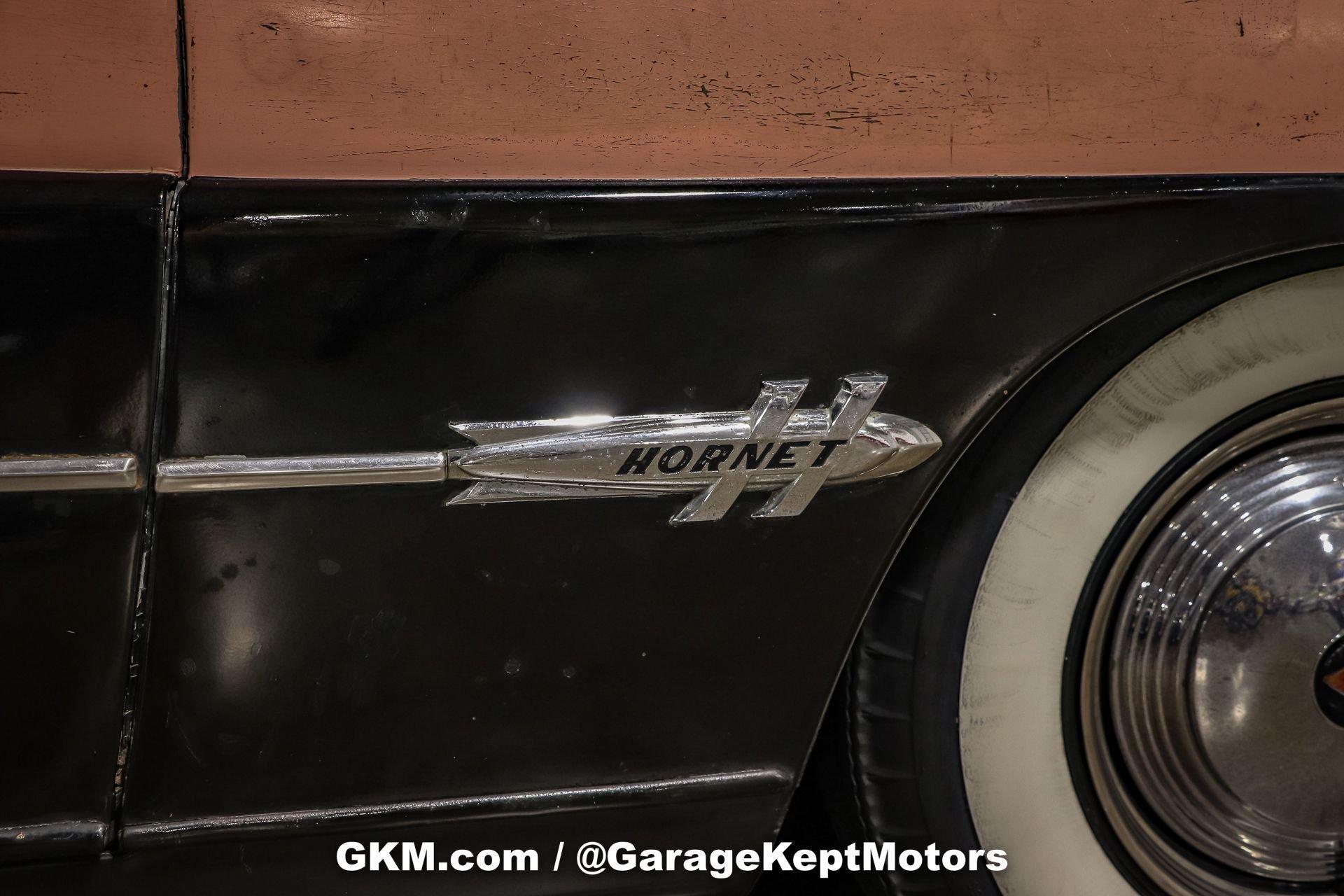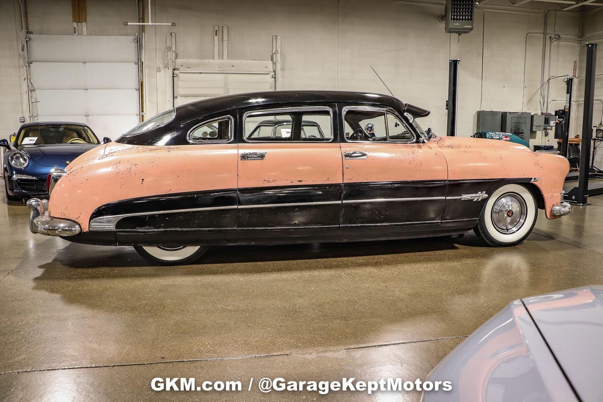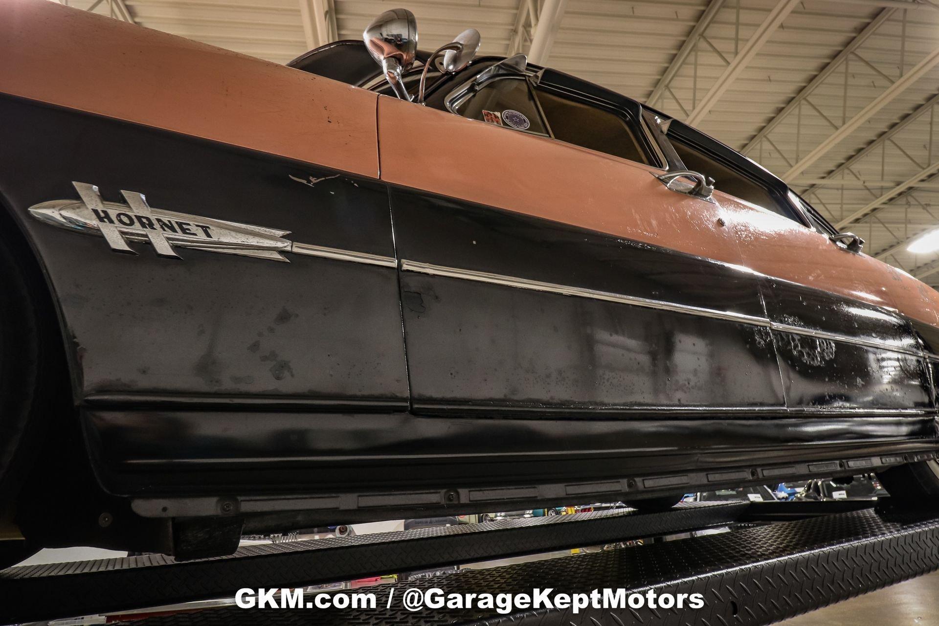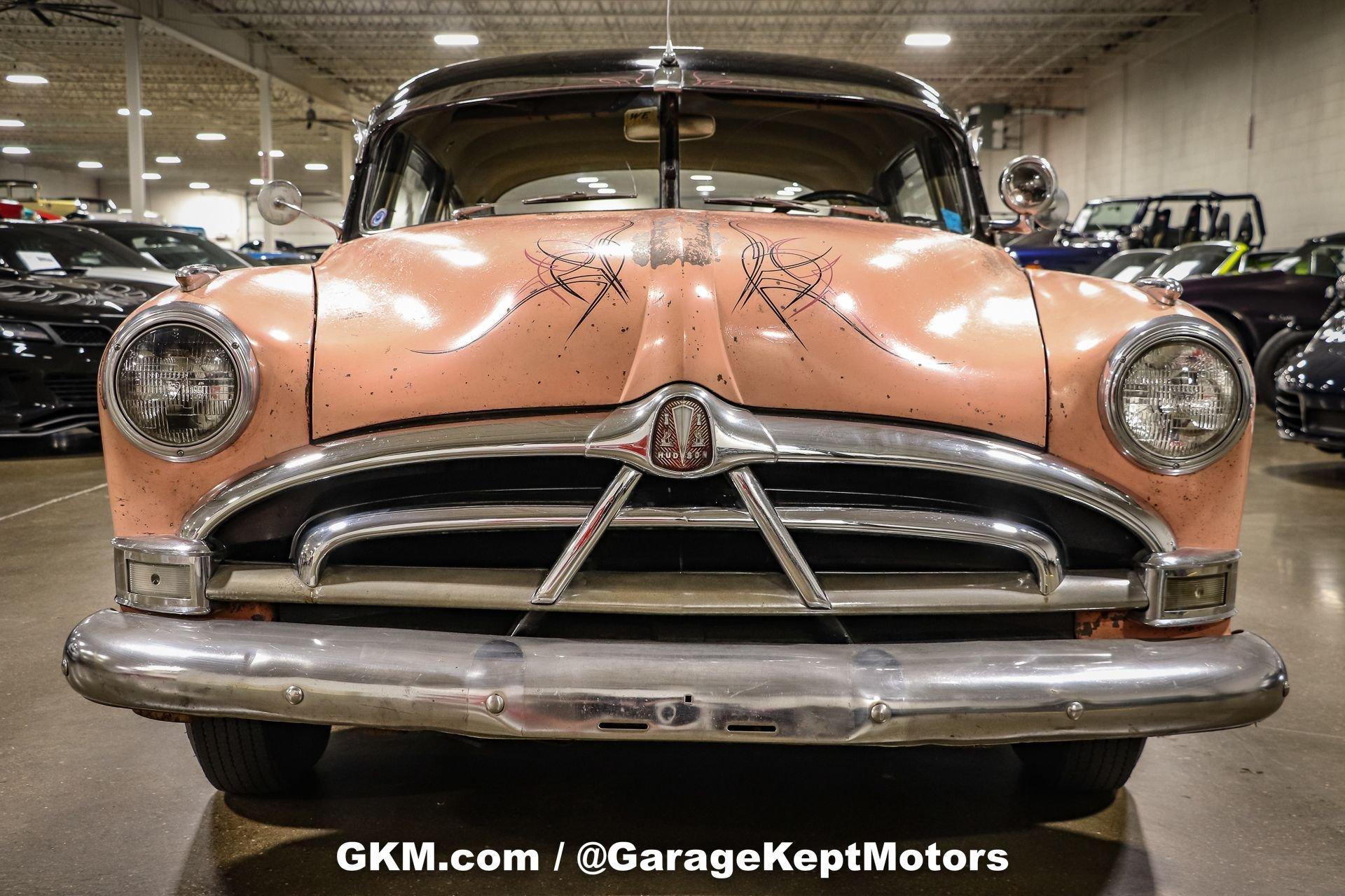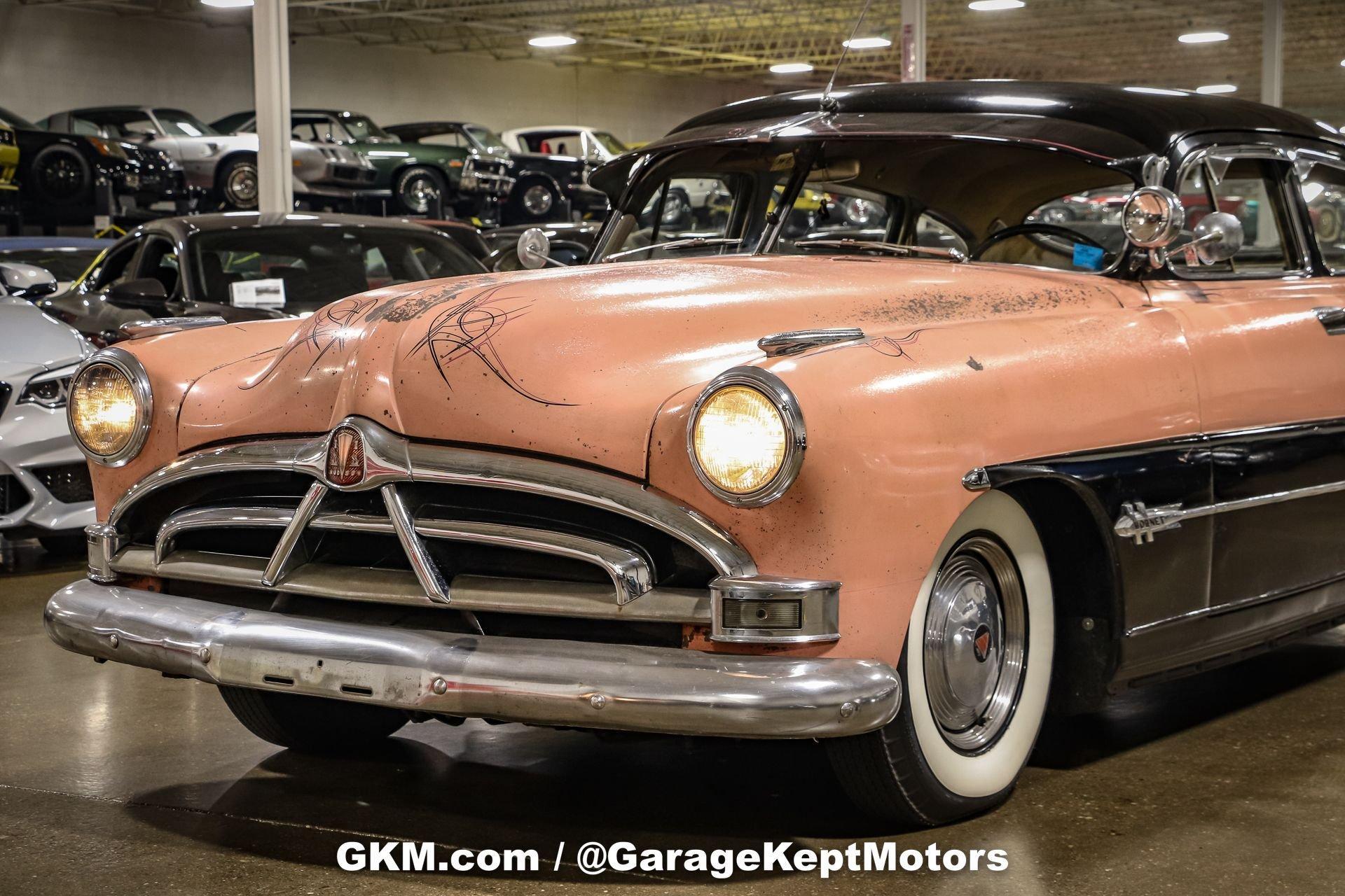 1951 Hudson Hornet- Originally Modified in 1958- Stored In 1960 Until 2011- Restored In 2018- 1956 308ci Inline 6- 262 Head- Mild Cam- Twin Intake- Clifford Headers And New Exhaust- Pink and Black Exterior- Original White InteriorFeatured here is a 1951 Hudson Hornet that is an amazing barn find and a true time capsule of the car culture of the 1950's. This car was originally modified in 1958 and two years later was put into storage in 1960. Emerging from a 51-year slumber in 2011 this classic cruiser went through a mechanical restoration with meticulous care and attention to preserve this car's appearance in its as-found condition. The pink and black two-tone paint is a classic 50's color combination on this four-door Hudson. The finish is unrestored representing the condition it was in when pulled from storage and preserved. The hand-painted pinstripe throughout the body is a classic touch and compliments the base paint job. The chrome bumpers and related trim are all original showing pitting and are rich in patina. The trunk compartment is unrestored featuring the original rubber floor mat with the spare tire and jack tools all present. The trunk floor is well preserved no doubt due to the rubber coating applied 60-some years ago keeping the metal free of any rust-through. The front windshield visor and stainless side-window visors with the driver's side-mounted searchlight are classic 50's era owner add-ons. In the case of this Hornet these subtle touches accentuate the sleek body lines and the lowered stance on this classic. Opening the doors on this Hudson is like opening a portal to the past that takes you back to a time when dashboards were pieces of art adorned in chrome and ivory. The interior is all original and has simply been cleaned. The original upholstery is present and in good condition showing some light wear but no rips or tears. The seat insert fabric and door panels as well as the rear grab rail are great examples of the formal quality of car interiors that was so rich during this time period. The dash cluster has a heavy Art Deco influence with an oversized speedometer and clock framing fuel and temperature gauges and oil and amp indicator lights and plenty of chrome accouterments. The Motorola AM radio is still present and looking at it you can almost hear the classic doo-whoop music coming from the speaker. Under the hood the original engine was replaced with a larger 1956 Hudson 308cid inline 6-cylinder with a 262 cylinder head and the powerplant was gone through during the restoration process. Era-correct performance upgrades include a mild camshaft Hudson dual carburetor intake and Clifford Performance header that flows into a new exhaust with a glass-packed bullet-style muffler. Power is transferred through a column-shifted 3-speed manual transmission. Underneath the frame and underbody are unrestored however the frame and floorboards are clean with no signs of any rust-through issues. The lowered stance was accomplished using lowering blocks on the rear leaf springs and lowered front springs with new shocks on all four corners. The brakes have been rebuilt including new lines and rubber hoses. This car is truly amazing in its capturing the car culture of the time and is turn-key ready for cruising to share it with other enthusiasts. Please call if interested or e-mail with specific questions. Thanks for looking.