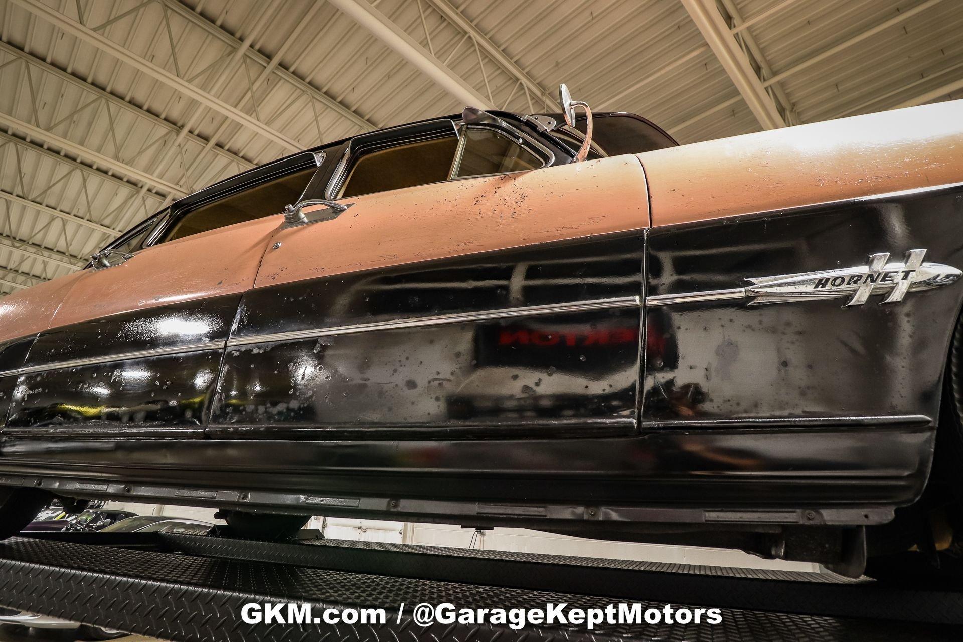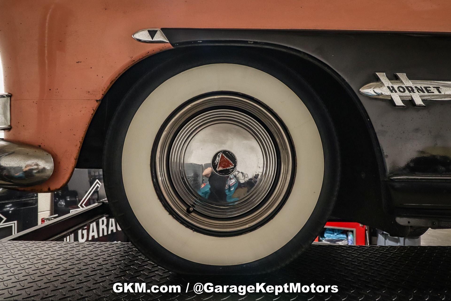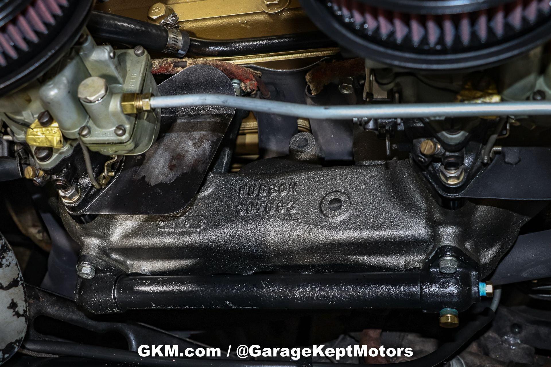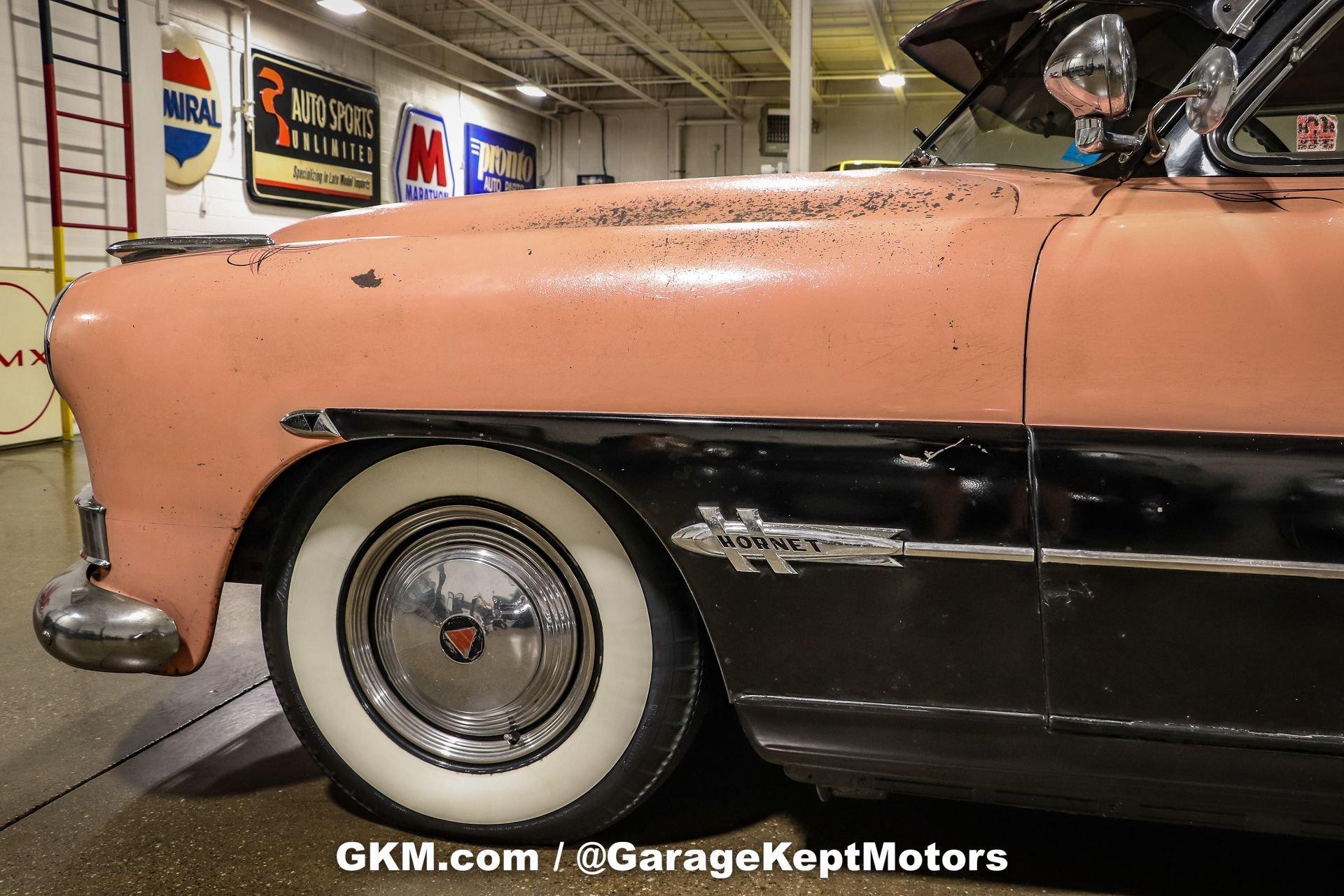 1951 Hudson Hornet- Originally Modified in 1958- Stored In 1960 Until 2011- Restored In 2018- 1956 308ci Inline 6- 262 Head- Mild Cam- Twin Intake- Clifford Headers And New Exhaust- Pink and Black Exterior- Original White InteriorFeatured here is a 1951 Hudson Hornet that is an amazing barn find and a true time capsule of the car culture of the 1950's. This car was originally modified in 1958 and two years later was put into storage in 1960. Emerging from a 51-year slumber in 2011 this classic cruiser went through a mechanical restoration with meticulous care and attention to preserve this car's appearance in its as-found condition. The pink and black two-tone paint is a classic 50's color combination on this four-door Hudson. The finish is unrestored representing the condition it was in when pulled from storage and preserved. The hand-painted pinstripe throughout the body is a classic touch and compliments the base paint job. The chrome bumpers and related trim are all original showing pitting and are rich in patina. The trunk compartment is unrestored featuring the original rubber floor mat with the spare tire and jack tools all present. The trunk floor is well preserved no doubt due to the rubber coating applied 60-some years ago keeping the metal free of any rust-through. The front windshield visor and stainless side-window visors with the driver's side-mounted searchlight are classic 50's era owner add-ons. In the case of this Hornet these subtle touches accentuate the sleek body lines and the lowered stance on this classic. Opening the doors on this Hudson is like opening a portal to the past that takes you back to a time when dashboards were pieces of art adorned in chrome and ivory. The interior is all original and has simply been cleaned. The original upholstery is present and in good condition showing some light wear but no rips or tears. The seat insert fabric and door panels as well as the rear grab rail are great examples of the formal quality of car interiors that was so rich during this time period. The dash cluster has a heavy Art Deco influence with an oversized speedometer and clock framing fuel and temperature gauges and oil and amp indicator lights and plenty of chrome accouterments. The Motorola AM radio is still present and looking at it you can almost hear the classic doo-whoop music coming from the speaker. Under the hood the original engine was replaced with a larger 1956 Hudson 308cid inline 6-cylinder with a 262 cylinder head and the powerplant was gone through during the restoration process. Era-correct performance upgrades include a mild camshaft Hudson dual carburetor intake and Clifford Performance header that flows into a new exhaust with a glass-packed bullet-style muffler. Power is transferred through a column-shifted 3-speed manual transmission. Underneath the frame and underbody are unrestored however the frame and floorboards are clean with no signs of any rust-through issues. The lowered stance was accomplished using lowering blocks on the rear leaf springs and lowered front springs with new shocks on all four corners. The brakes have been rebuilt including new lines and rubber hoses. This car is truly amazing in its capturing the car culture of the time and is turn-key ready for cruising to share it with other enthusiasts. Please call if interested or e-mail with specific questions. Thanks for looking.