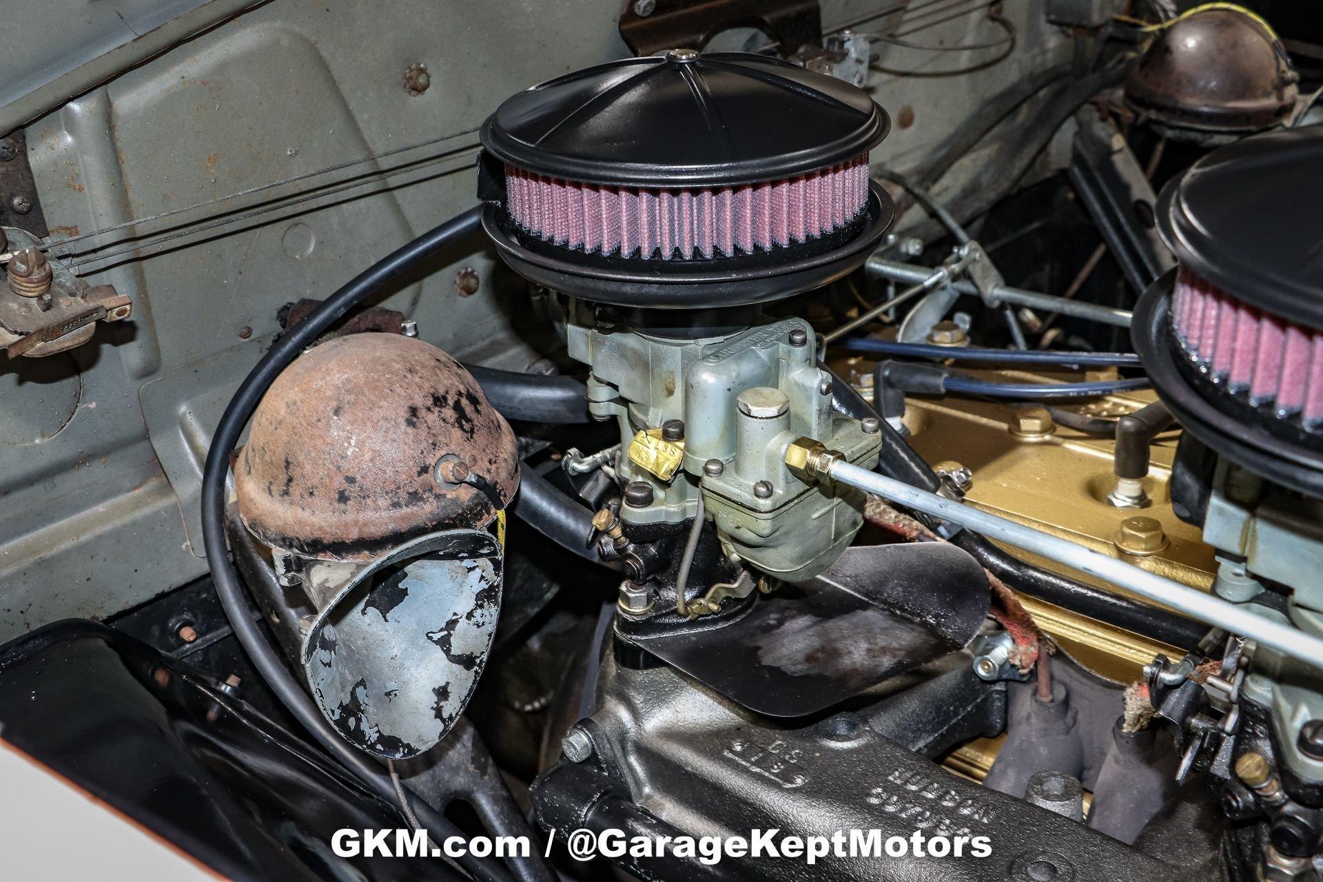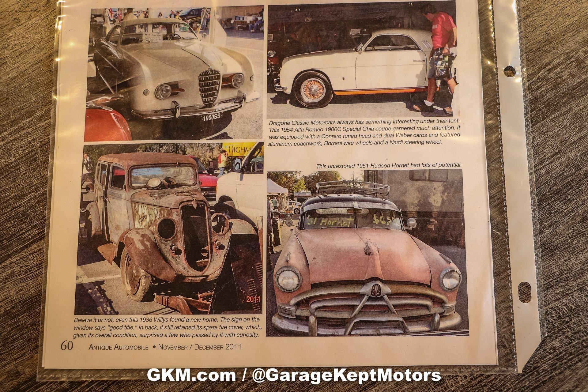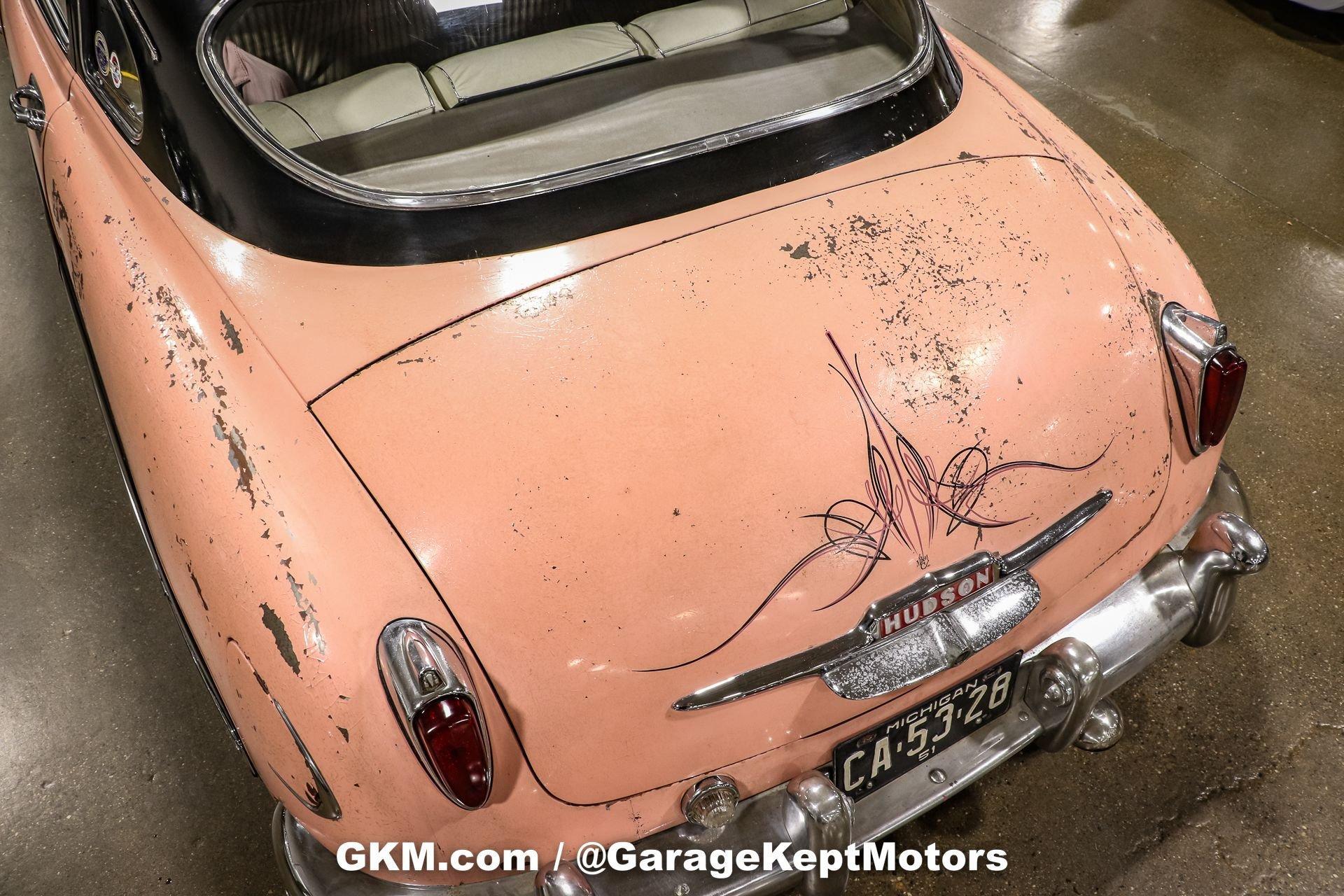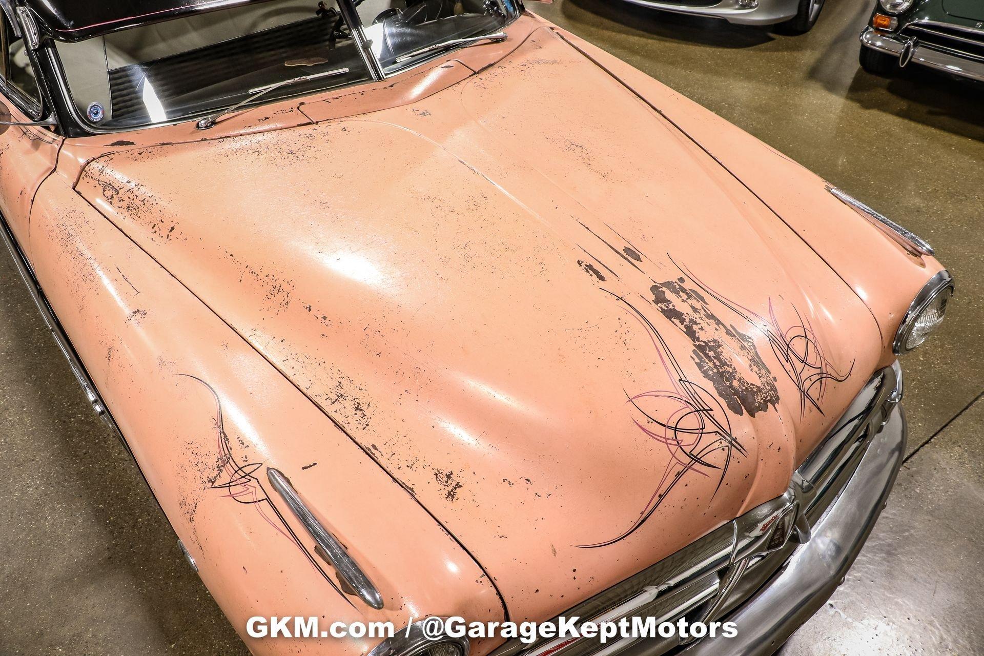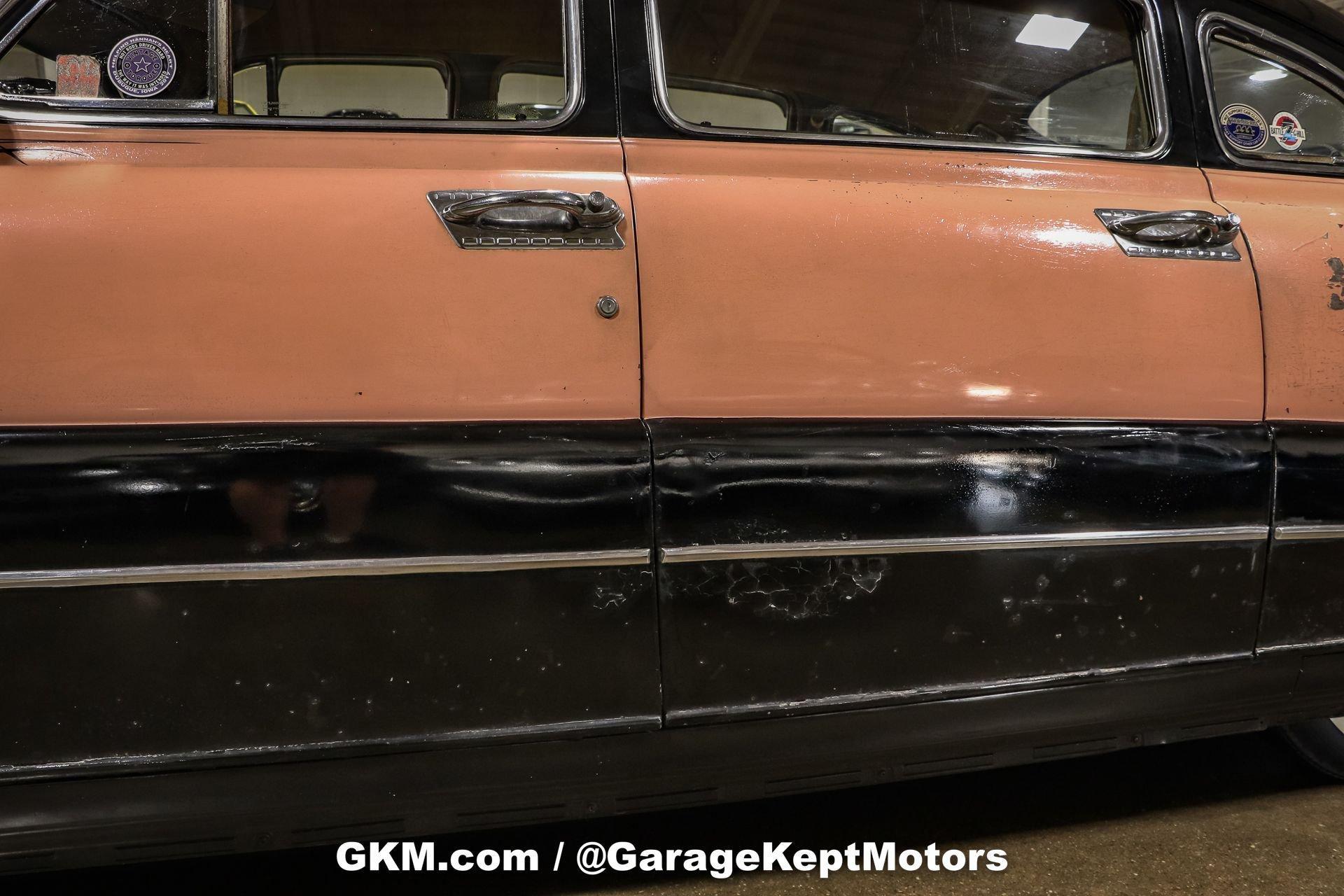1951 Hudson Hornet- Originally Modified in 1958- Stored In 1960 Until 2011- Restored In 2018- 1956 308ci Inline 6- 262 Head- Mild Cam- Twin Intake- Clifford Headers And New Exhaust- Pink and Black Exterior- Original White InteriorFeatured here is a 1951 Hudson Hornet that is an amazing barn find and a true time capsule of the car culture of the 1950's. This car was originally modified in 1958 and two years later was put into storage in 1960. Emerging from a 51-year slumber in 2011 this classic cruiser went through a mechanical restoration with meticulous care and attention to preserve this car's appearance in its as-found condition. The pink and black two-tone paint is a classic 50's color combination on this four-door Hudson. The finish is unrestored representing the condition it was in when pulled from storage and preserved. The hand-painted pinstripe throughout the body is a classic touch and compliments the base paint job. The chrome bumpers and related trim are all original showing pitting and are rich in patina. The trunk compartment is unrestored featuring the original rubber floor mat with the spare tire and jack tools all present. The trunk floor is well preserved no doubt due to the rubber coating applied 60-some years ago keeping the metal free of any rust-through. The front windshield visor and stainless side-window visors with the driver's side-mounted searchlight are classic 50's era owner add-ons. In the case of this Hornet these subtle touches accentuate the sleek body lines and the lowered stance on this classic. Opening the doors on this Hudson is like opening a portal to the past that takes you back to a time when dashboards were pieces of art adorned in chrome and ivory. The interior is all original and has simply been cleaned. The original upholstery is present and in good condition showing some light wear but no rips or tears. The seat insert fabric and door panels as well as the rear grab rail are great examples of the formal quality of car interiors that was so rich during this time period. The dash cluster has a heavy Art Deco influence with an oversized speedometer and clock framing fuel and temperature gauges and oil and amp indicator lights and plenty of chrome accouterments. The Motorola AM radio is still present and looking at it you can almost hear the classic doo-whoop music coming from the speaker. Under the hood the original engine was replaced with a larger 1956 Hudson 308cid inline 6-cylinder with a 262 cylinder head and the powerplant was gone through during the restoration process. Era-correct performance upgrades include a mild camshaft Hudson dual carburetor intake and Clifford Performance header that flows into a new exhaust with a glass-packed bullet-style muffler. Power is transferred through a column-shifted 3-speed manual transmission. Underneath the frame and underbody are unrestored however the frame and floorboards are clean with no signs of any rust-through issues. The lowered stance was accomplished using lowering blocks on the rear leaf springs and lowered front springs with new shocks on all four corners. The brakes have been rebuilt including new lines and rubber hoses. This car is truly amazing in its capturing the car culture of the time and is turn-key ready for cruising to share it with other enthusiasts. Please call if interested or e-mail with specific questions. Thanks for looking.