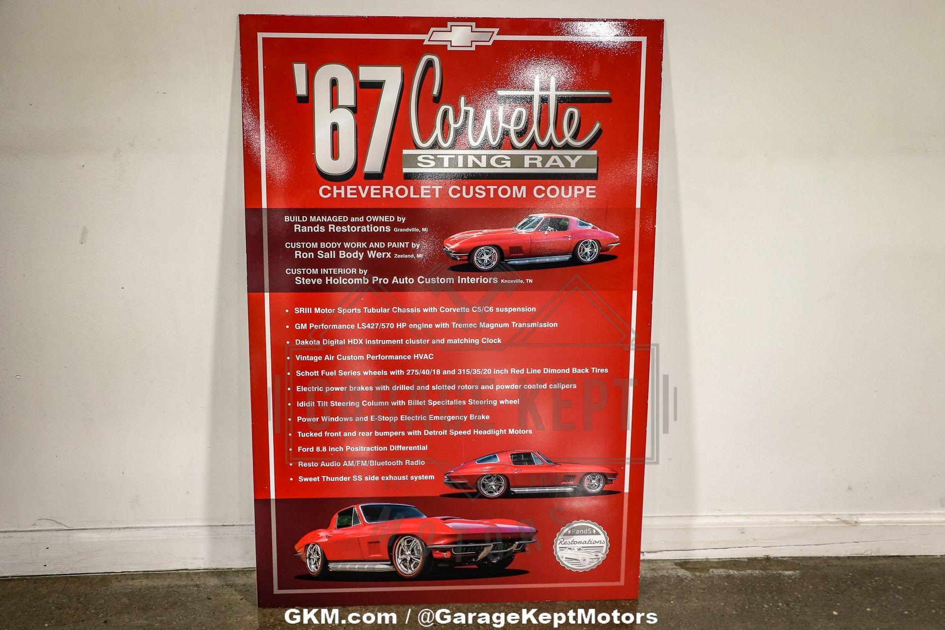 1967 Chevrolet Corvette Pro Touring Coupe- PPG Competition Red over Black Interior- LS 427ci/570hp Crate V8- Sweet Thunder SS Side Exit Exhaust- Tremec 6 Speed Manual Transmission- Ford 8.8" Posi Rear End- Dakota Digital Instrument Cluster- Vintage AC- SRIII Motor Sports Tubular Chasis- Steve Holcomb Custom Interior- Schott Fuel Series Wheels - Resto Audio Radio- 13 MilesRecorded Unleash the power of a legend with the 1967 Chevrolet Corvette Resto Mod a stunning fusion of classic style and modern performance. Under the hood roars the heart of this beast an LS 427ci crate motor generating a jaw-dropping 570 horsepower. The exhilarating soundtrack is further enhanced by the Sweet Thunder SS Side Exit Exhaust delivering a symphony of power that echoes the Corvette's racing heritage. The driving experience is elevated to new heights with a Tremec 6-speed manual transmission and a Ford 8.8" Posi rear end ensuring an unmatched level of control and responsiveness. This Corvette Resto Mod doesn't just boast performance; it's a masterpiece of design and innovation. The Dakota Digital Instrument Cluster seamlessly combines modern technology with the classic aesthetic providing real-time information in style. Vintage AC ensures comfort even during the most spirited drives while the SRIII Motor Sports Tubular Chassis offers a solid foundation for the car's dynamic capabilities. Inside the Steve Holcomb Custom Interiors elevate luxury with meticulous craftsmanship providing a refined and comfortable space bathed in black elegance. The exterior is a bold statement in red reflecting the Corvette's iconic presence on the road. Paired with Schott Fuel Series Wheels this Resto Mod exhibits a perfect blend of classic charm and contemporary style. The inclusion of a Resto Audio Radio adds a touch of modern convenience without compromising the vintage aesthetics. This 1967 Chevrolet Corvette Resto Mod is a testament to automotive craftsmanship offering a harmonious blend of power precision and style. For enthusiasts seeking a truly unique driving experience this Corvette stands ready to deliver an exhilarating journey through time. Please call if interested or e-mail with specific questions. Thank you for looking.