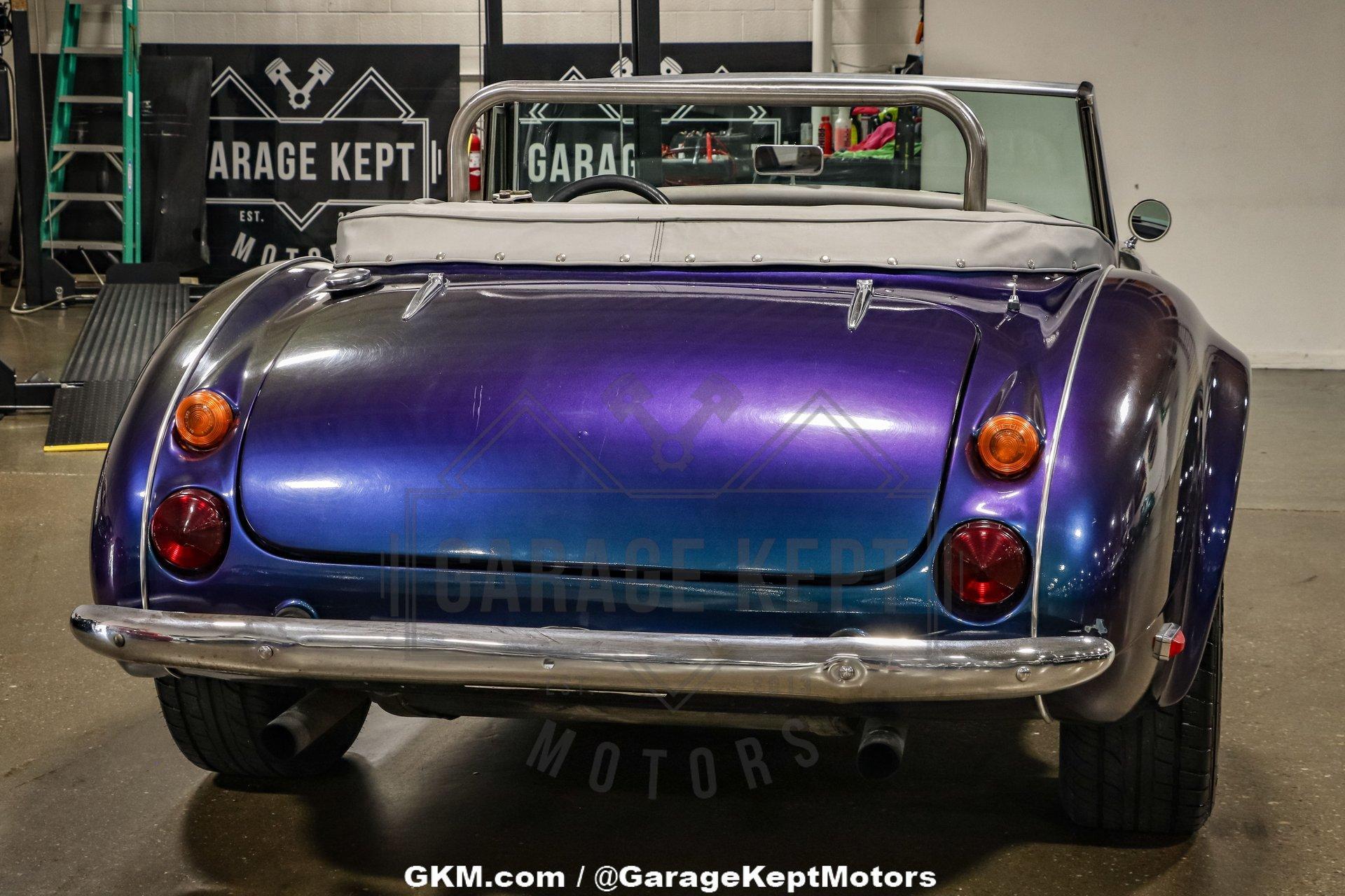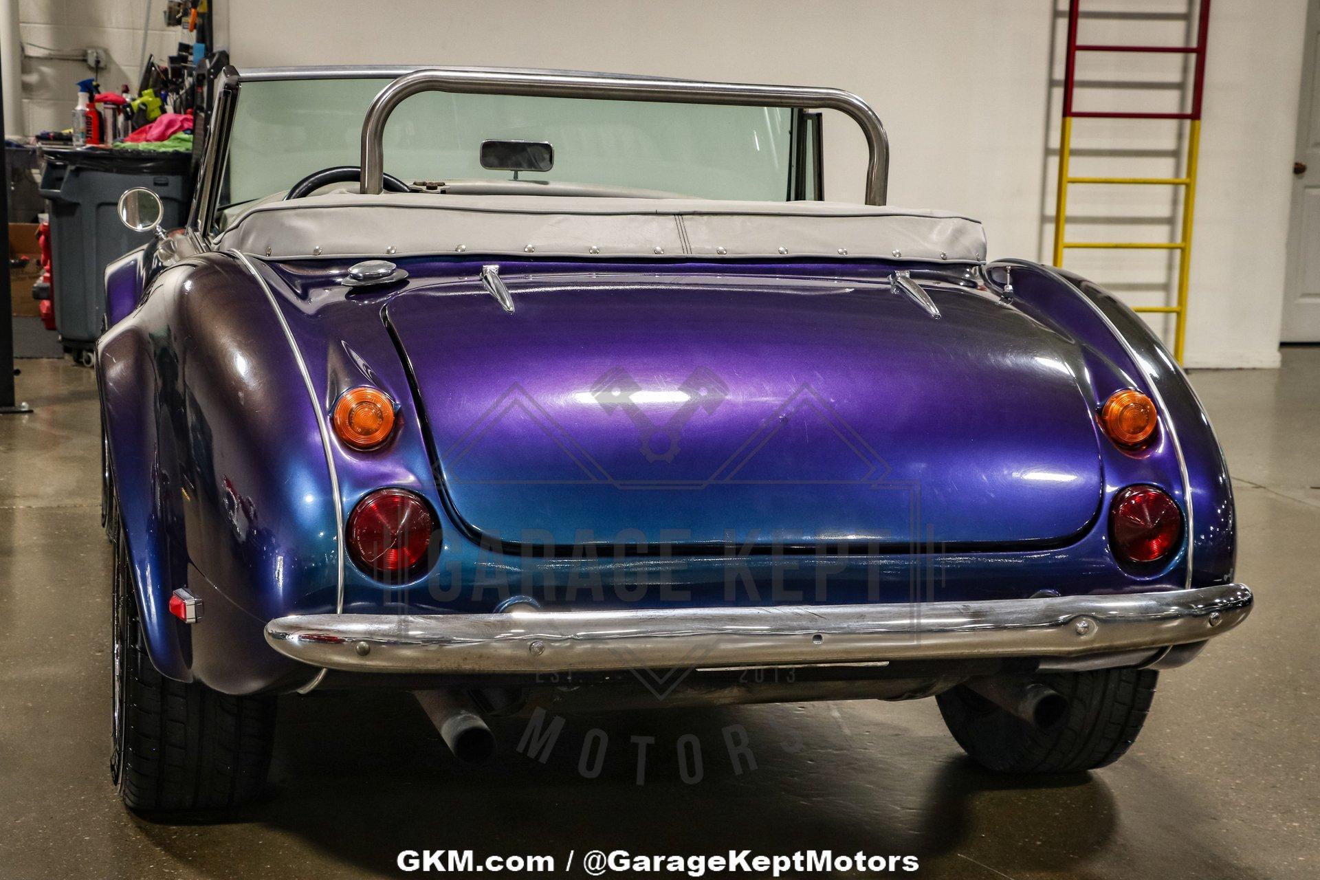 1991 Austin Healey 3000 Replica- Built By Classic Roadsters In 1991- Same Owner Since 2008- 350ci V8- Holley EFI- Automatic Transmission- Blue Color Shift Pearlescent Exterior- Gray InteriorStep into a world of classic elegance and modern performance with this 1991 Austin Healey 3000 Replica meticulously crafted by Classic Roadsters. This striking replica maintained by the same owner since 2008 combines the timeless allure of the Austin Healey 3000 with the power and reliability of contemporary engineering. Under the hood lies a 350ci V8 engine equipped with a Holley EFI system ensuring smooth and efficient performance. Paired with an automatic transmission this replica offers a driving experience that is both exhilarating and effortless. The exterior of this Austin Healey 3000 Replica is truly a sight to behold. Finished in a captivating blue color shift pearlescent paint the car shimmers with varying hues depending on the angle of light making it a head-turner wherever it goes. This unique and eye-catching paint job not only adds a touch of modern flair to the classic design but also ensures that this vehicle stands out in any setting. The elegant lines and curves of the body are faithfully recreated paying homage to the iconic design of the original Austin Healey 3000. Inside the car features a tasteful gray interior that complements the vibrant exterior. The cabin is designed with comfort and style in mind providing a refined environment for both driver and passengers. The gray upholstery is not only visually appealing but also offers a comfortable seating experience. The dashboard and controls are thoughtfully laid out ensuring that all essential functions are within easy reach making every drive a pleasure. This Austin Healey 3000 Replica is not just about looks; it delivers impressive performance as well. The 350ci V8 engine enhanced with a Holley EFI system provides ample power and responsiveness making it a joy to drive on both city streets and open roads. The automatic transmission ensures a smooth and effortless driving experience allowing you to fully enjoy the journey. Whether you're cruising along scenic routes or navigating through traffic this car offers a perfect blend of power and sophistication. In summary this 1991 Austin Healey 3000 Replica by Classic Roadsters is a unique blend of classic design and modern performance. With its striking blue color shift pearlescent exterior comfortable gray interior and powerful 350ci V8 engine it offers a driving experience that is both visually and mechanically rewarding. Maintained by the same owner since 2008 this replica is a testament to timeless elegance and contemporary engineering. Don't miss the opportunity to own this exceptional vehicle that combines the best of both worlds. Please call if interested or e-mail with specific questions. Thanks for looking.