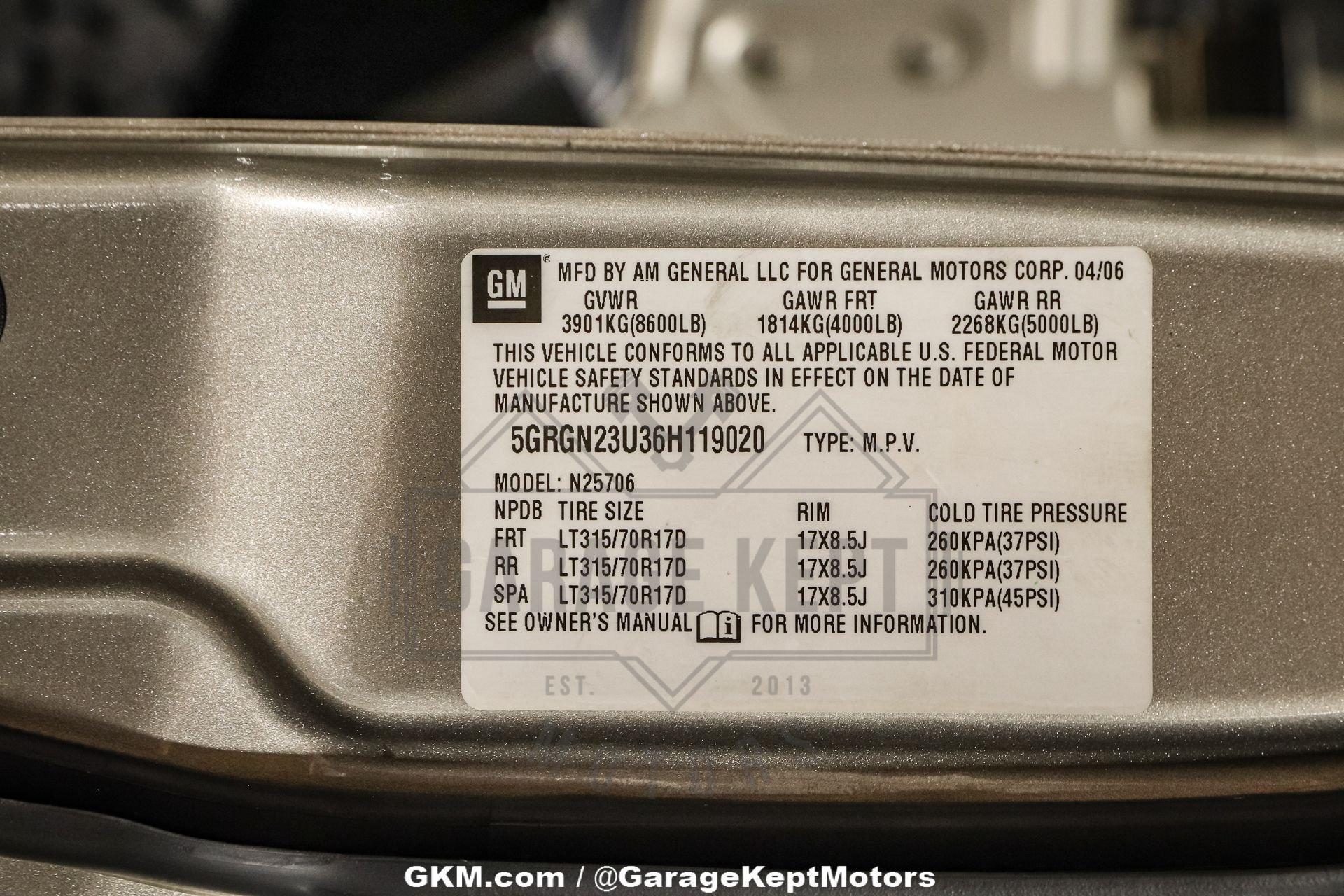 2006 Hummer H2 - Southern 4x4 SUV - LBZ 6.6L Duramax Diesel V8 - Allison M-1000 6 Speed transmission - Auto Shift Transfer Case - Diesel Conversion Completed in 11/2021 with 47k Miles - Pewter over Black Interior - 52k Miles The 2006 Hummer H2 stands as a commanding presence in the realm of rugged SUVs boasting both formidable performance and a distinctively bold design. This Southern 4x4 SUV is not only a symbol of toughness but also a testament to premium engineering. Under the hood it features the powerful LBZ 6.6L Duramax Diesel V8 engine a renowned powerhouse celebrated for its durability and torque. Coupled with the Allison M-1000 6-speed transmission this setup ensures smooth and robust power delivery making it adept at handling both challenging terrains and long highway stretches. This particular Hummer H2 has undergone a significant upgrade with a diesel conversion completed in November 2021. The conversion which was executed at just 47000 miles represents a substantial enhancement imbuing the vehicle with modern diesel efficiency and reliability. The Duramax engine known for its impressive towing capacity and longevity transforms the H2 into a more efficient and powerful machine aligning it with contemporary diesel performance standards. The vehicle's exterior is finished in a sophisticated Pewter color which contrasts sharply with its Black interior creating a striking and elegant aesthetic. This color scheme not only highlights the H2's imposing frame but also adds a touch of refinement to its rugged exterior. The interior with its black detailing offers a plush and comfortable driving environment that complements the H2's exterior toughness. With just 52000 miles on the odometer this Hummer H2 is relatively low-mileage for its age suggesting that it has been well-maintained and cared for. The combination of its low mileage and recent diesel conversion makes it a rare find particularly for enthusiasts seeking a vehicle that merges classic Hummer H2 ruggedness with modern diesel performance and efficiency. Overall the 2006 Hummer H2 with its LBZ 6.6L Duramax Diesel V8 engine Allison M-1000 transmission and recent diesel conversion represents a unique blend of power style and modern upgrades. Its distinctive Pewter over Black color scheme coupled with its low mileage makes it a standout choice for those who value both capability and aesthetic appeal in their SUV.