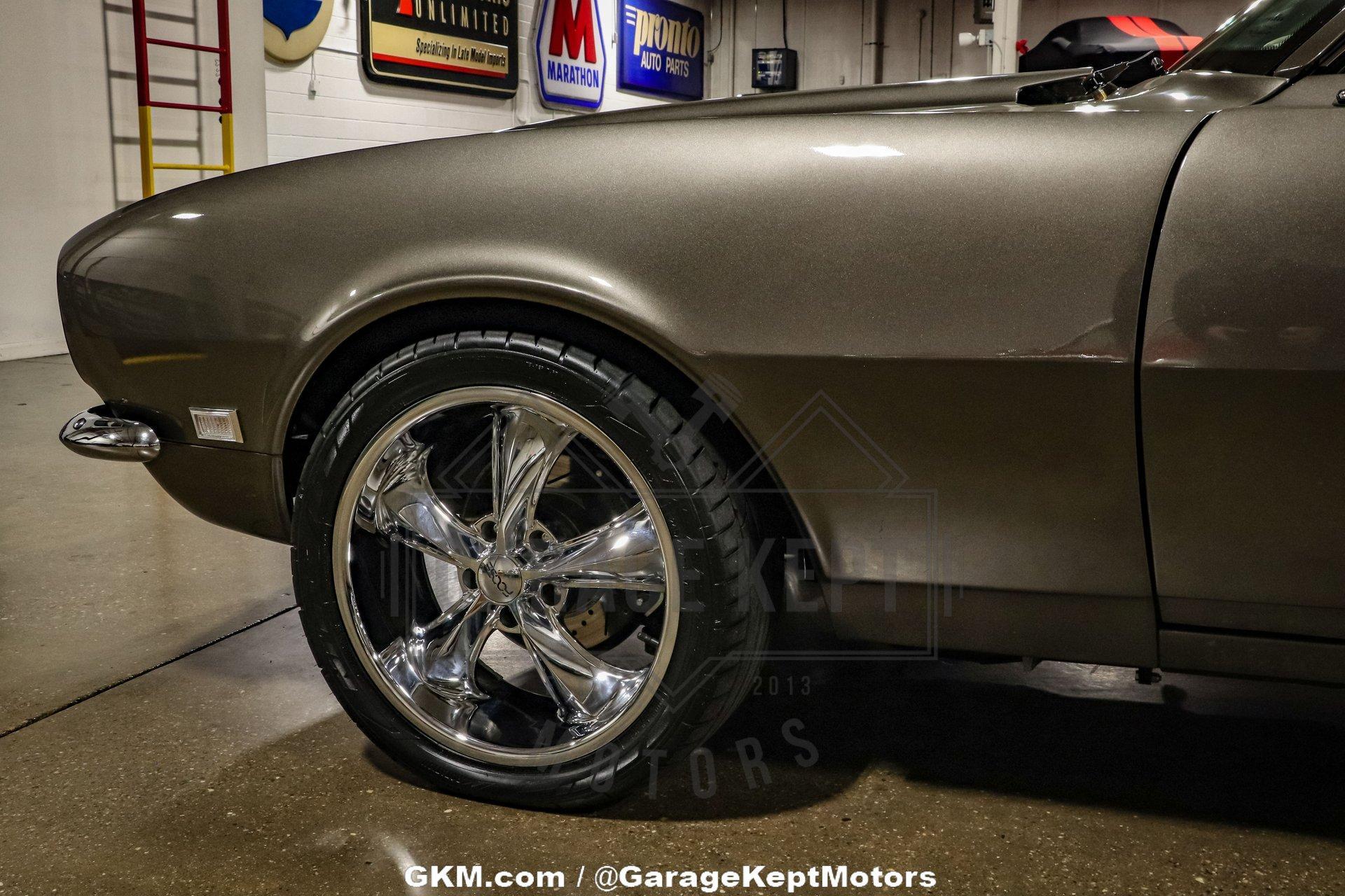 1968 Chevrolet Camaro Resto Mod- Full Frame Off Restoration Finished In 2020- 502ci V8- Ram Jet GM Intake- 6 Speed Tremec Manual Transmission- 3.42 Rear End With Posi- Vintage Air Conditioning- Repainted Ostra Gray Metallic- Custom Tan And Brown Interior- Digital Gauges- Bluetooth Stereo- 4 Wheel Disc Brakes- 18" Chrome Foose Wheels- Dual Exhaust- 1731 Miles Since BuiltThis 1968 Chevrolet Camaro Resto Mod is a breathtaking blend of vintage muscle and modern performance. Completed in 2020 the full frame-off restoration transformed this classic into a show-stopping masterpiece. Under the hood lies a powerful 502ci V8 engine equipped with a Ram Jet GM intake for exceptional performance and reliability. Paired with a 6-speed Tremec manual transmission and a 3.42 Posi rear end this Camaro offers an exhilarating driving experience that's as precise as it is powerful. The exterior is finished in stunning Ostra Gray Metallic a modern and sophisticated color that sets this Camaro apart. The paintwork gleams with a deep luster complemented by polished chrome Foose 18" wheels that add a contemporary touch to the car's iconic lines. Dual exhaust tips and four-wheel disc brakes complete the performance-inspired aesthetic ensuring this resto-mod is as functional as it is eye-catching. Inside the custom tan and brown interior adds a luxurious and unique flair blending seamlessly with the exterior. The cabin is equipped with digital gauges for a modern interface while a Bluetooth stereo ensures connectivity and entertainment on the go. Vintage air conditioning provides comfort for cruising in any climate making this Camaro as enjoyable for long drives as it is for spirited performance. With only 1731 miles since its restoration this 1968 Chevrolet Camaro Resto Mod is practically brand new offering a rare opportunity to own a classic that's been thoughtfully upgraded with modern technology and performance. From its 502ci powerhouse to its meticulous craftsmanship this Camaro is a standout that combines the best of old-school muscle with cutting-edge style and capability. Please call if interested or e-mail with specific questions. Thanks for looking!