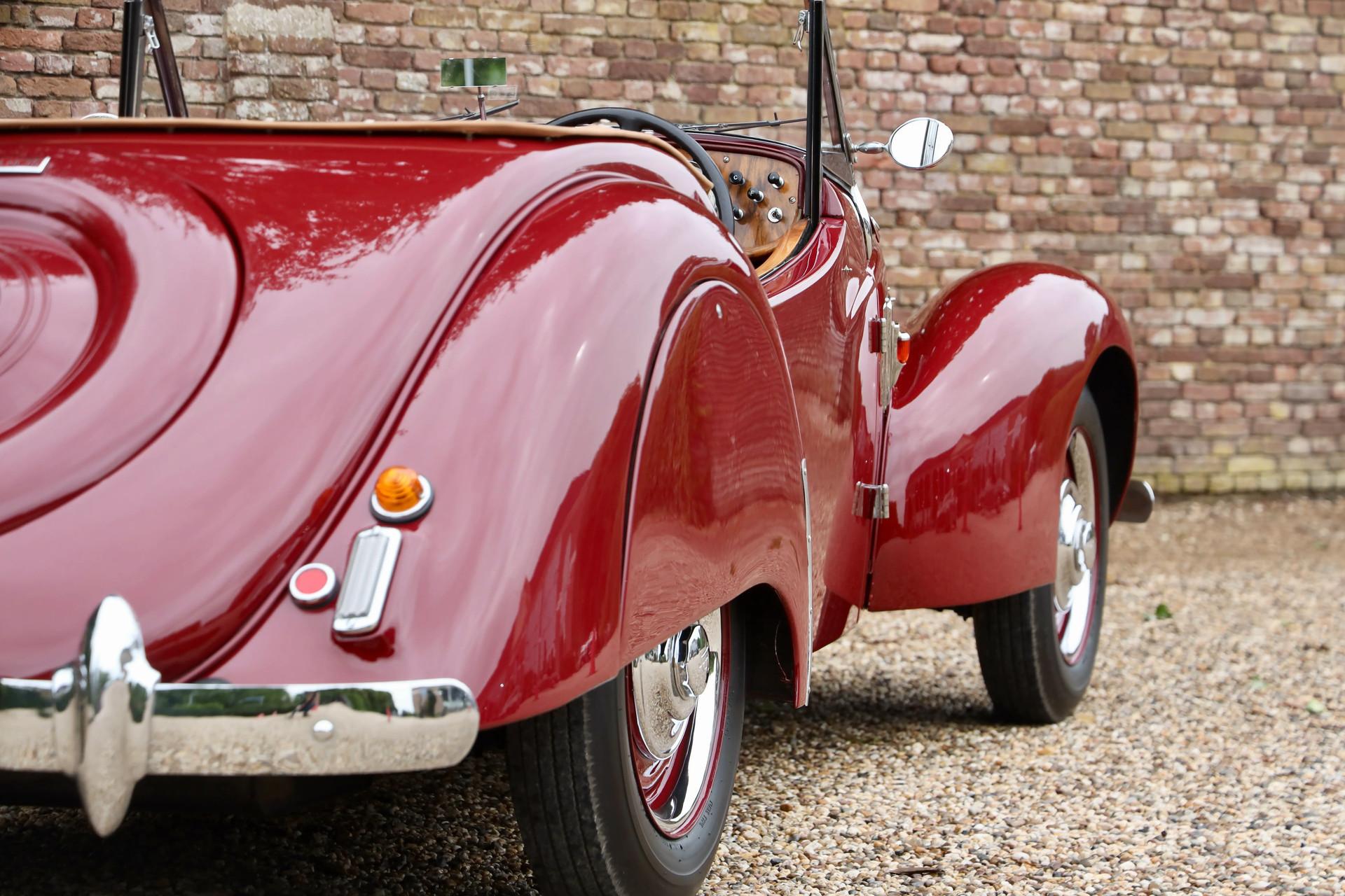 This rare 'Deluxe' differs in several ways from the standard model. From walnut trim on the dashboard and door panels to enlarged door handles, elegant 1950s-era Lucas indicators and extra chromed bonnet vents, every element speaks to craftsmanship and individuality. Subtle touches, rich with meaning.