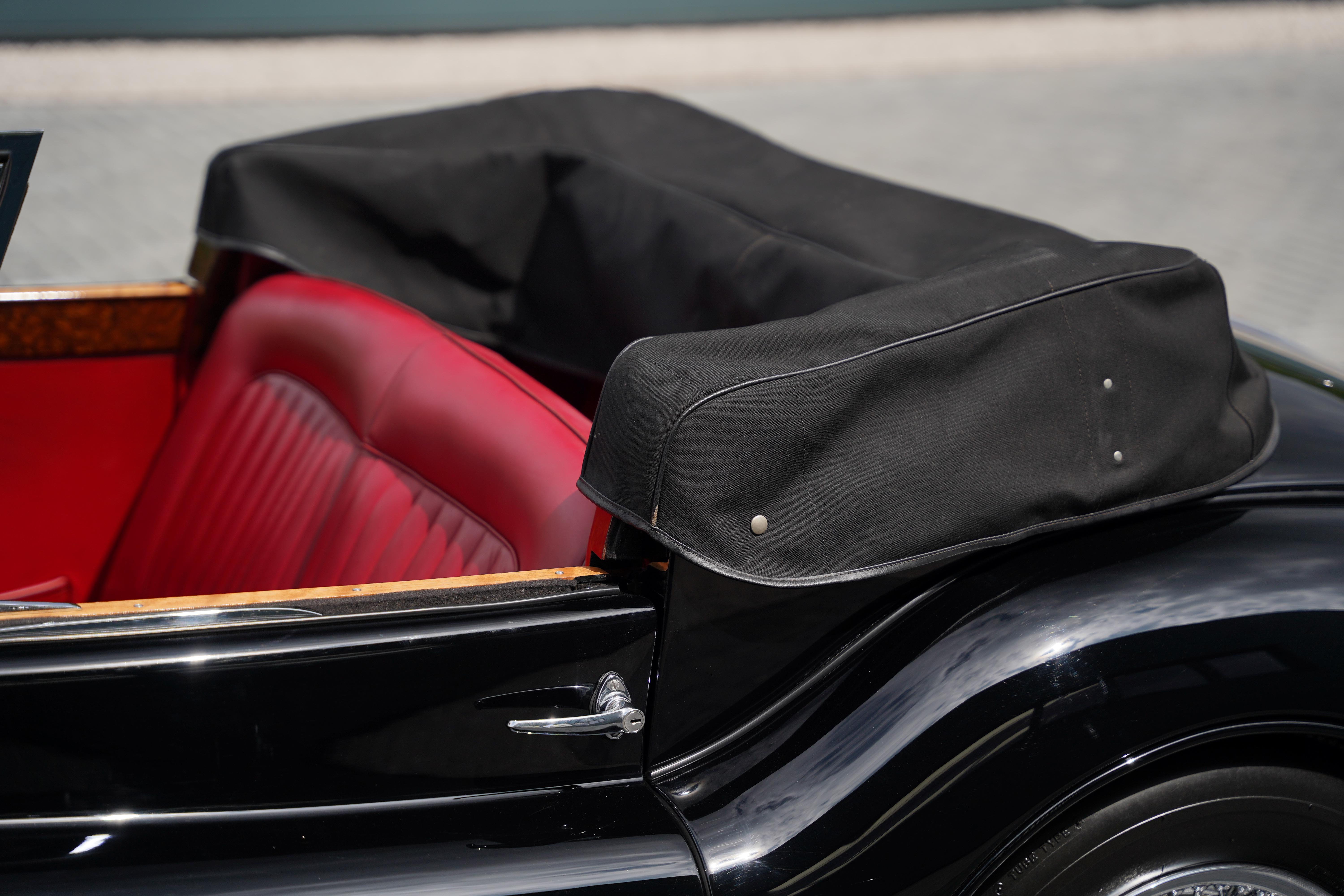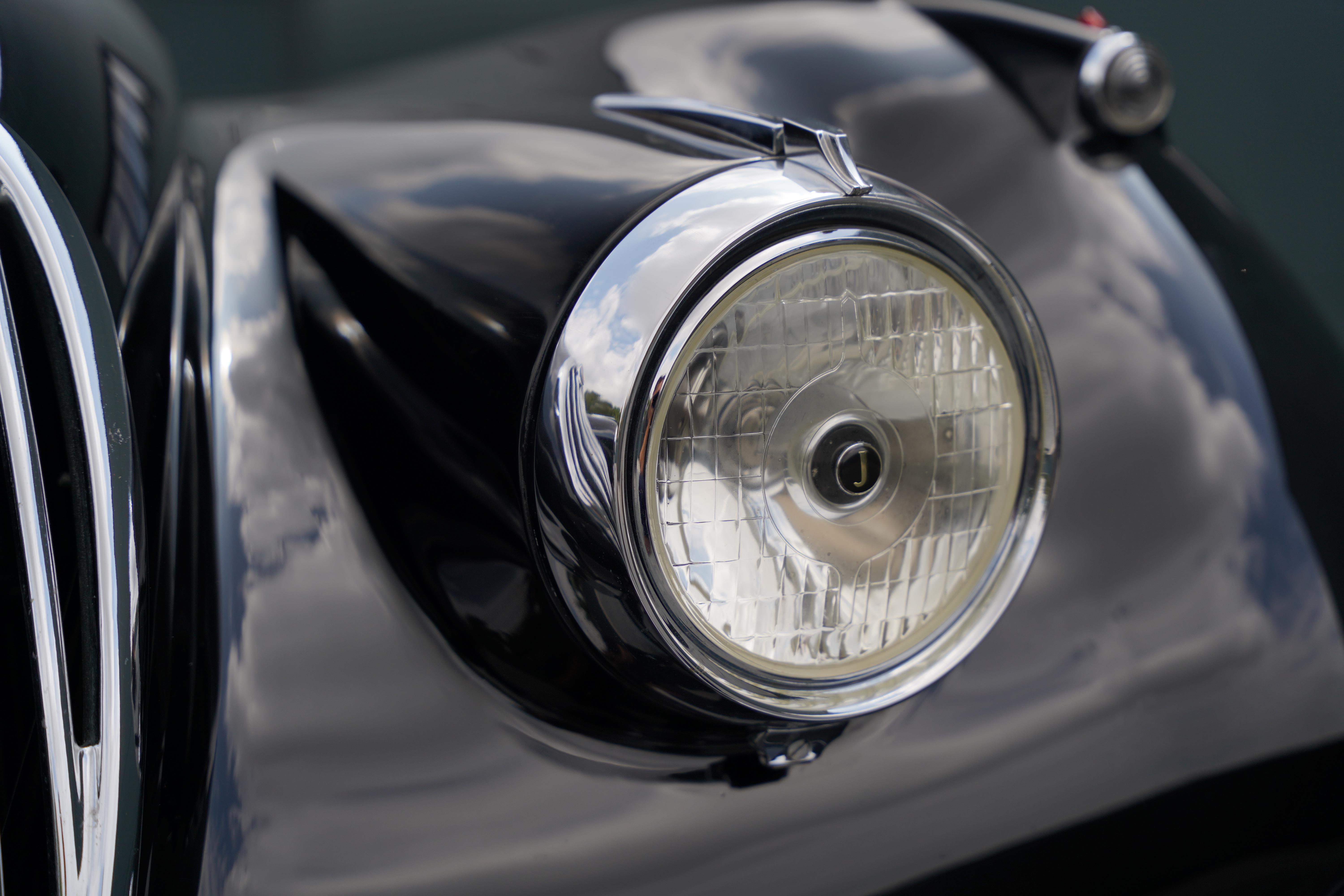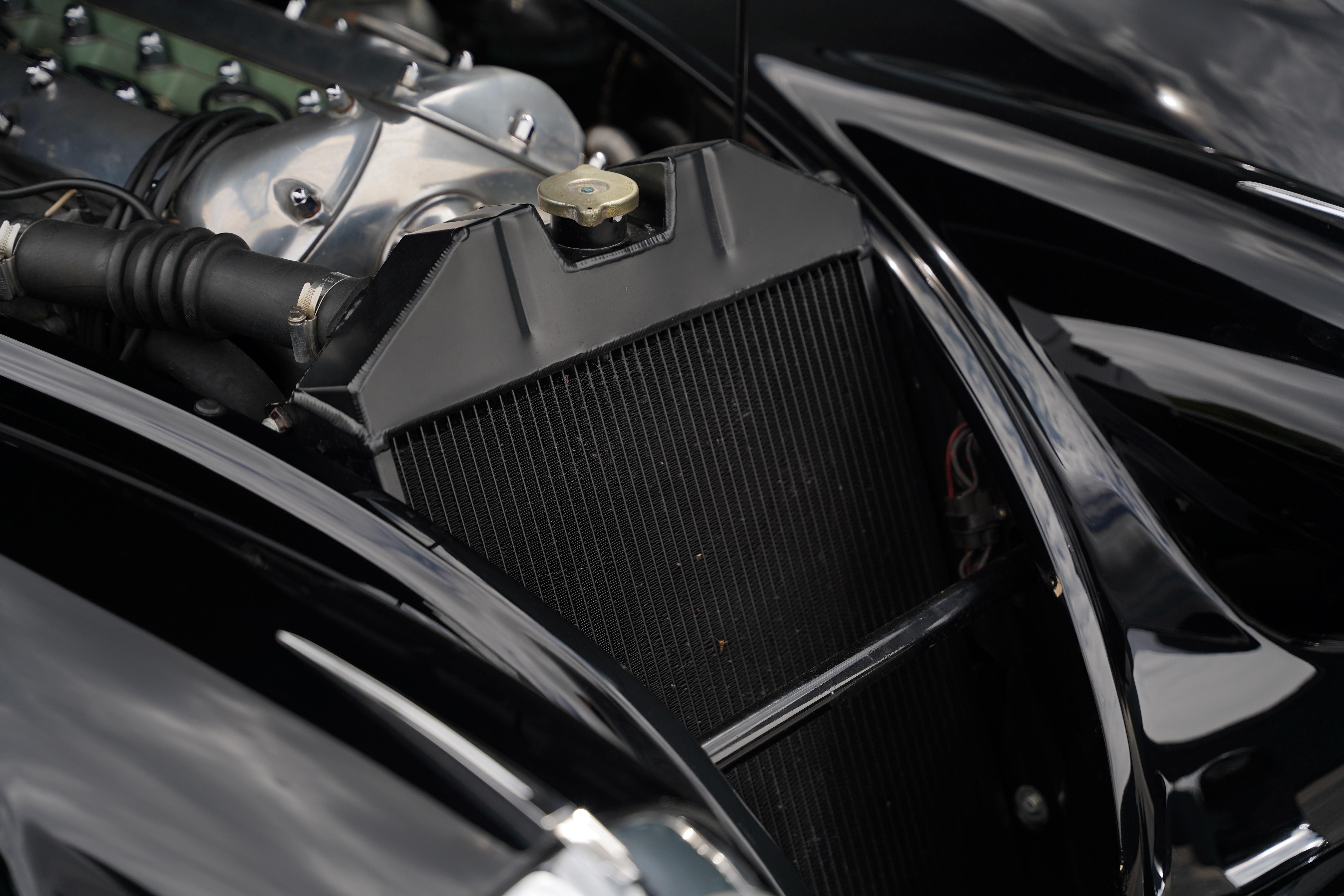 Even 33 years after its restoration, this XK140 remains in remarkable condition as a true testament to both the quality of the original vehicle and the calibre of its restoration. The solid black paint retains a rich, deep lustre; the bodywork is exceptionally straight with consistent panel gaps throughout. The hood fits tautly and remains in superb order, with a clear, fog-free rear window, a detail often lost over time. The chrome is equally impressive, showing only minimal signs of ageing, and is a clear indicator that the chrome was refinished to the highest standards.