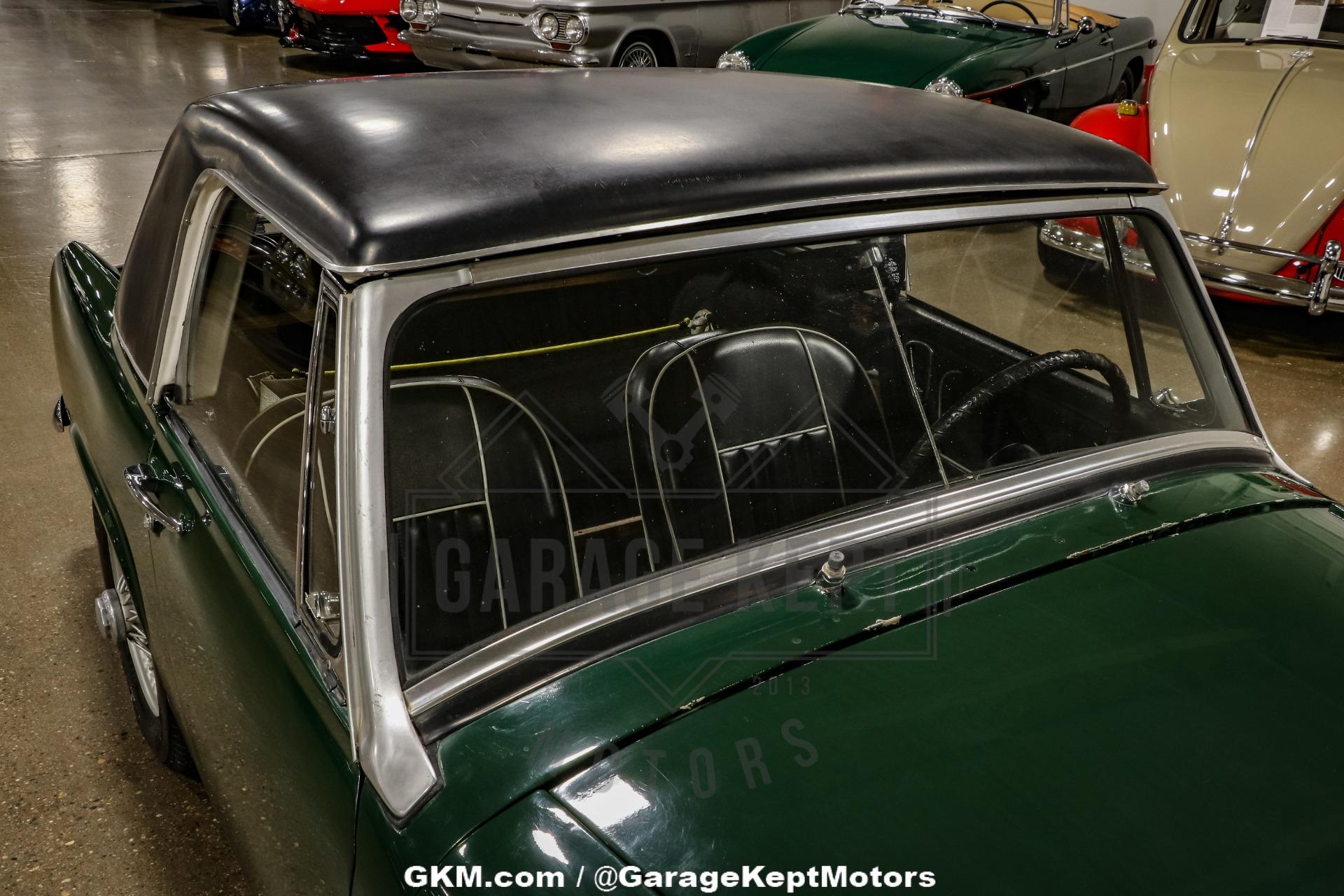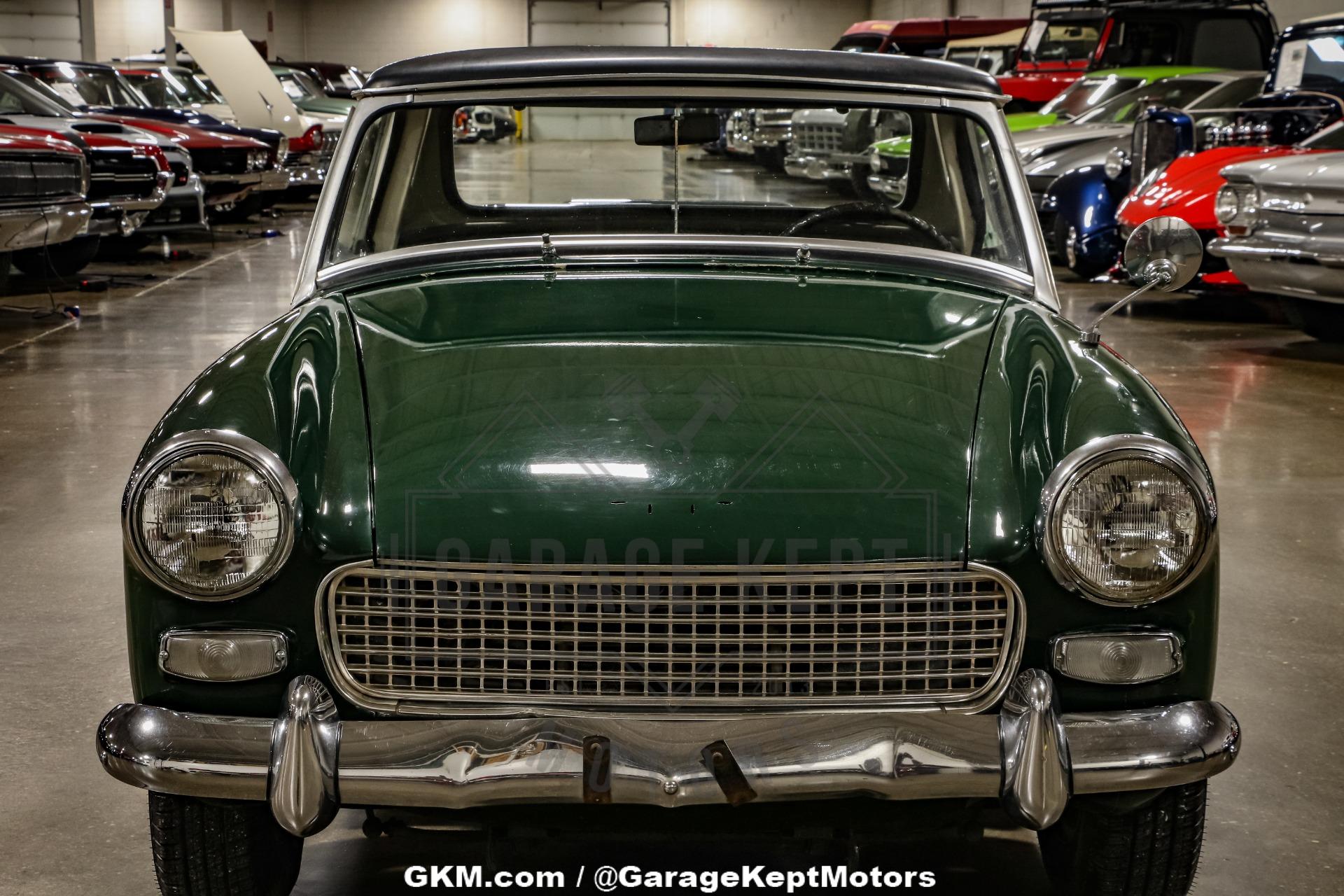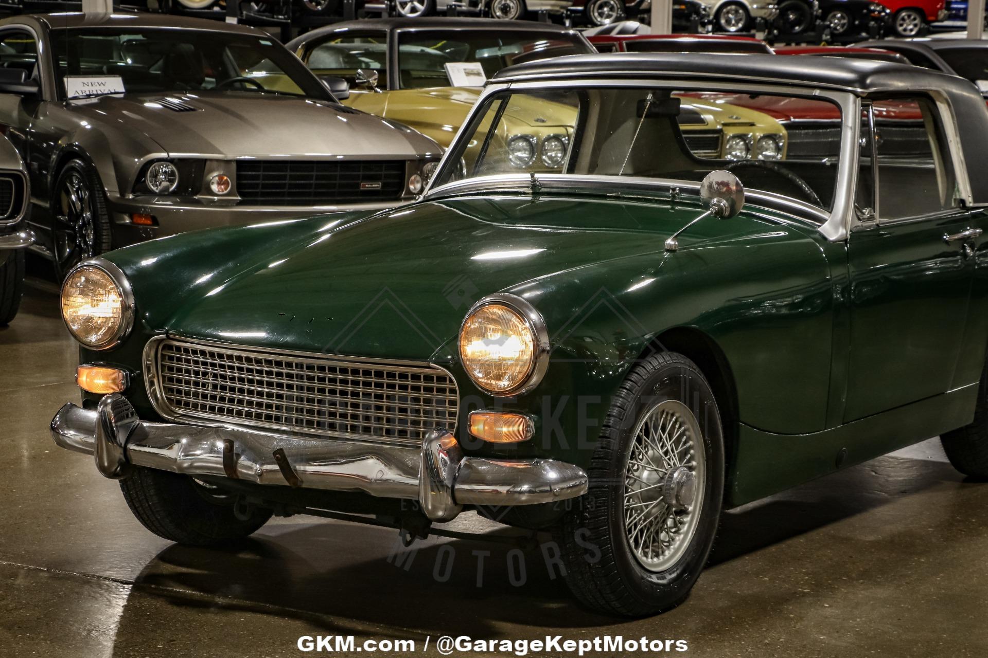 Coming soon to BaT Online Auctions, offered at NO RESERVE. Stay tuned...1967 Austin Healey Sprite - 1.3L 4 Cylinder- 4 Speed Manual Transmission- 19,452 Miles Shown- British Racing Green Exterior- Black Interior- Black Removable Hard TopStep into a piece of British motoring history with this charming 1967 Austin Healey Sprite, now available at Garage Kept Motors. This classic roadster embodies the spirit of the 1960s with its timeless design and spirited performance, making it a must-have for any vintage car enthusiast or collector.The exterior of this Austin Healey Sprite is finished in a captivating shade of British Racing Green, a color that not only highlights the car's classic lines but also pays homage to its heritage. The Sprite's compact and agile body is accentuated by its iconic front grille and rounded headlights, which give it a distinctive and endearing appearance. The chrome accents and trim are well-preserved, adding a touch of elegance to this vintage beauty.Step inside, and you'll be greeted by a well-appointed interior that exudes classic charm. The black interior is both stylish and functional, providing a comfortable and inviting space for both driver and passenger. The seats are upholstered in high-quality materials, offering support and comfort for those long drives on winding country roads. The dashboard is a testament to the simplicity and elegance of 1960s design, featuring clear and easy-to-read gauges that keep you informed about the car's performance.Under the hood, this 1967 Austin Healey Sprite is powered by a lively 1.3L 4-cylinder engine, delivering a driving experience that is both engaging and exhilarating. The manual transmission allows for precise gear changes, giving you full control over the car's performance and enhancing the driving experience. Whether you're cruising through city streets or exploring scenic backroads, this Sprite offers a ride that is both smooth and responsive.This 1967 Austin Healey Sprite is more than just a car; it's a piece of automotive history that captures the essence of a bygone era. Its classic design ensures it will turn heads wherever you go. At Garage Kept Motors, we take pride in offering vehicles that are not only beautiful but also well-maintained, and this Sprite is no exception.Don't miss your chance to own this iconic British roadster. Visit Garage Kept Motors today to experience the charm and allure of the 1967 Austin Healey Sprite for yourself. Whether you're a seasoned collector or a first-time classic car buyer, this Sprite is sure to bring joy and excitement to your driving adventures.