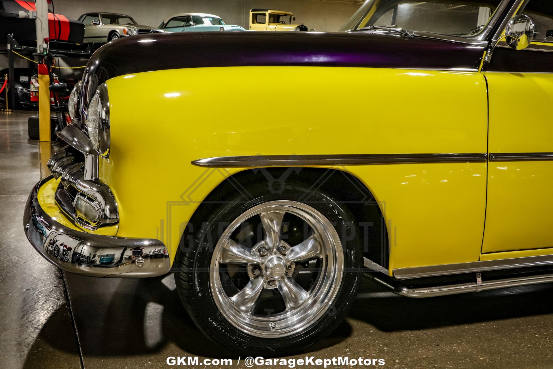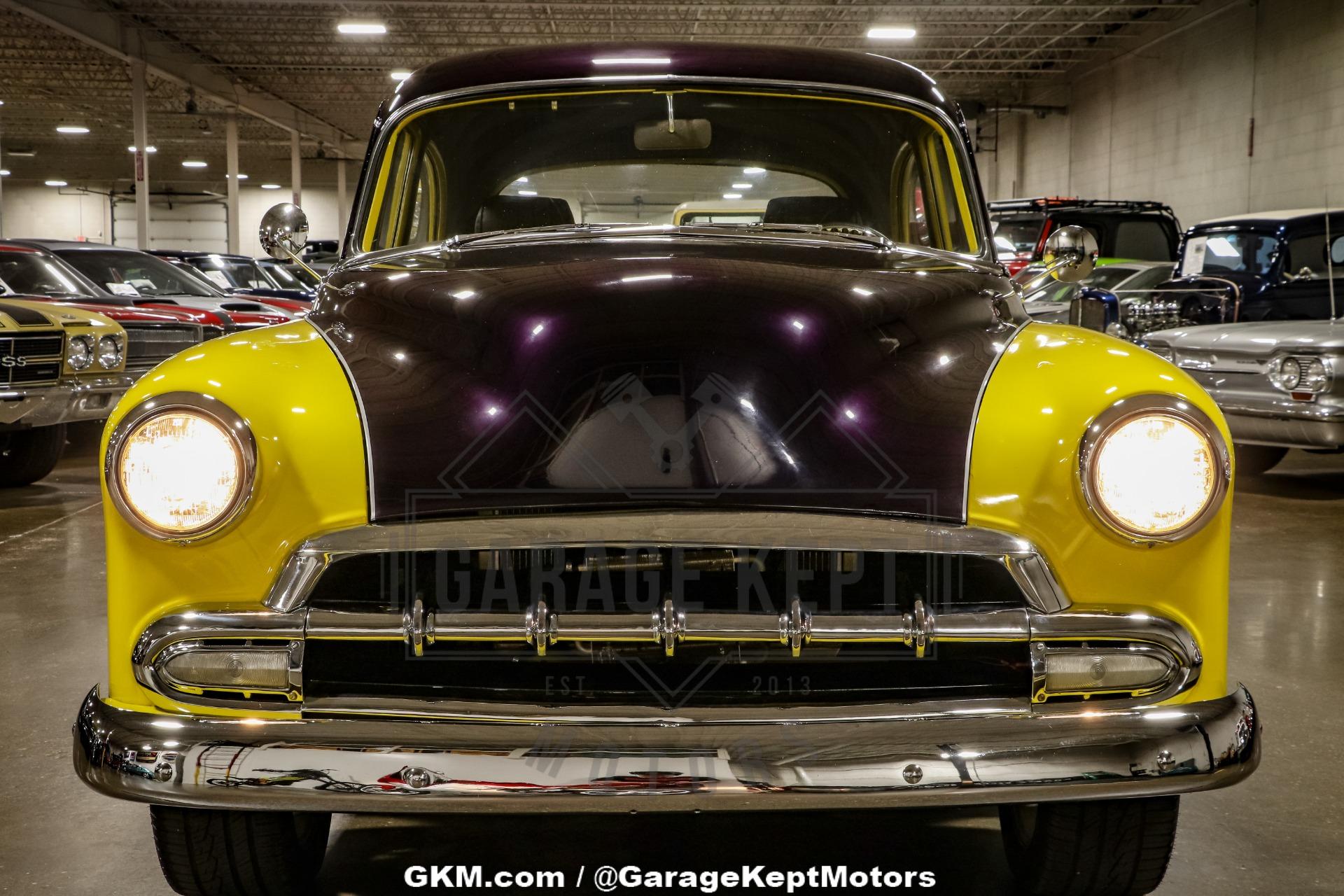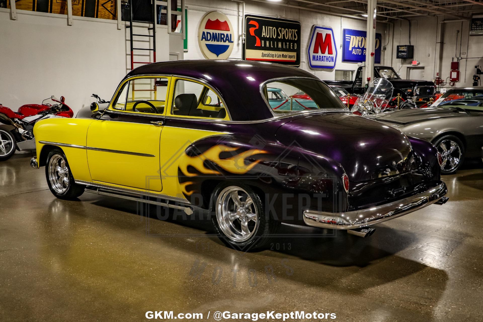 1952 Chevrolet Styleline - 350CI V8- 3 speed automatic- Power steering and brakes- Disc front brakes- Custom flame paint job- Custom exhaust with side and rear exits- Black leather interior- American Racing 5 spoke wheelsWith only 12,867 miles on the odometer, this Chevy Styleline is a rare find, offering a blend of vintage charm and modern performance. Under the hood lies a robust 350CI V8 engine, providing the power and reliability that enthusiasts crave. Paired with a smooth 3-speed automatic transmission, this vehicle promises an exhilarating driving experience, whether you're cruising down the highway or navigating city streets.The rear-wheel-drive (RWD) configuration ensures a classic driving feel, while the addition of power steering and brakes enhances maneuverability and safety. The front disc brakes offer superior stopping power, a crucial upgrade for a vehicle of this era, ensuring you can enjoy the ride with confidence.This Styleline is a visual masterpiece, featuring a custom flame paint job that seamlessly blends vibrant yellow with striking purple accents. The unique color combination is sure to turn heads and spark conversations wherever you go. The custom exhaust system, with both side and rear exits, not only adds to the vehicle's aesthetic appeal but also delivers a throaty, powerful sound that complements its performance capabilities.Step inside to find a meticulously crafted black leather interior that exudes luxury and comfort. The attention to detail is evident in every stitch, providing a plush environment for both driver and passengers. The interior's classic design is tastefully updated to meet modern standards, ensuring a comfortable ride without sacrificing the vehicle's vintage charm.Completing the look are the American Racing 5-spoke wheels, which add a touch of modern flair to this classic beauty. These wheels not only enhance the vehicle's appearance but also contribute to its improved handling and performance.This 1952 Chevrolet Styleline is more than just a car; it's a piece of automotive history with a unique personality. The custom flame paint job and dual exhaust system make it an exotic class car, setting it apart from other vintage vehicles. Its combination of classic design and modern upgrades makes it a special find for collectors and enthusiasts alike.