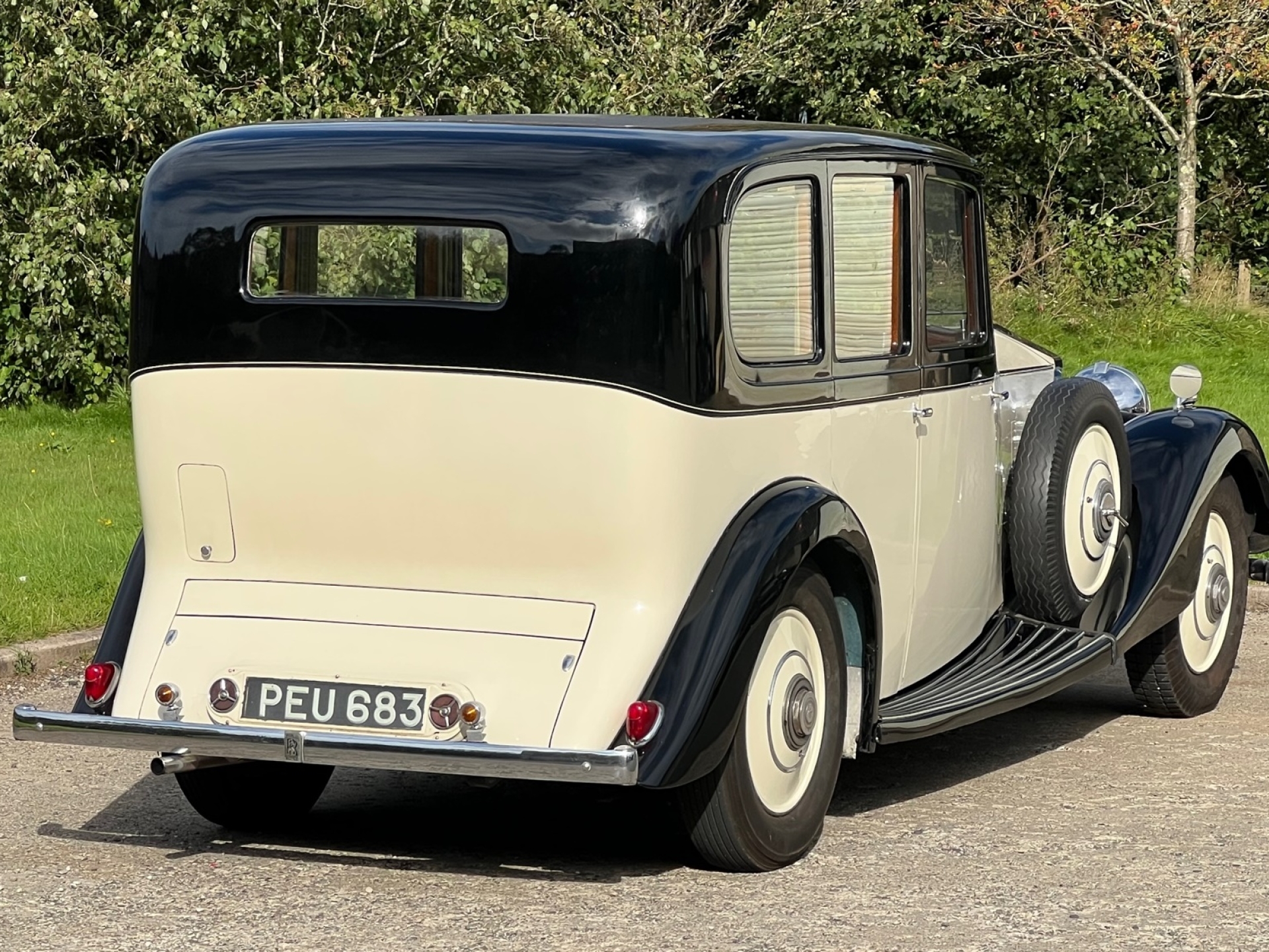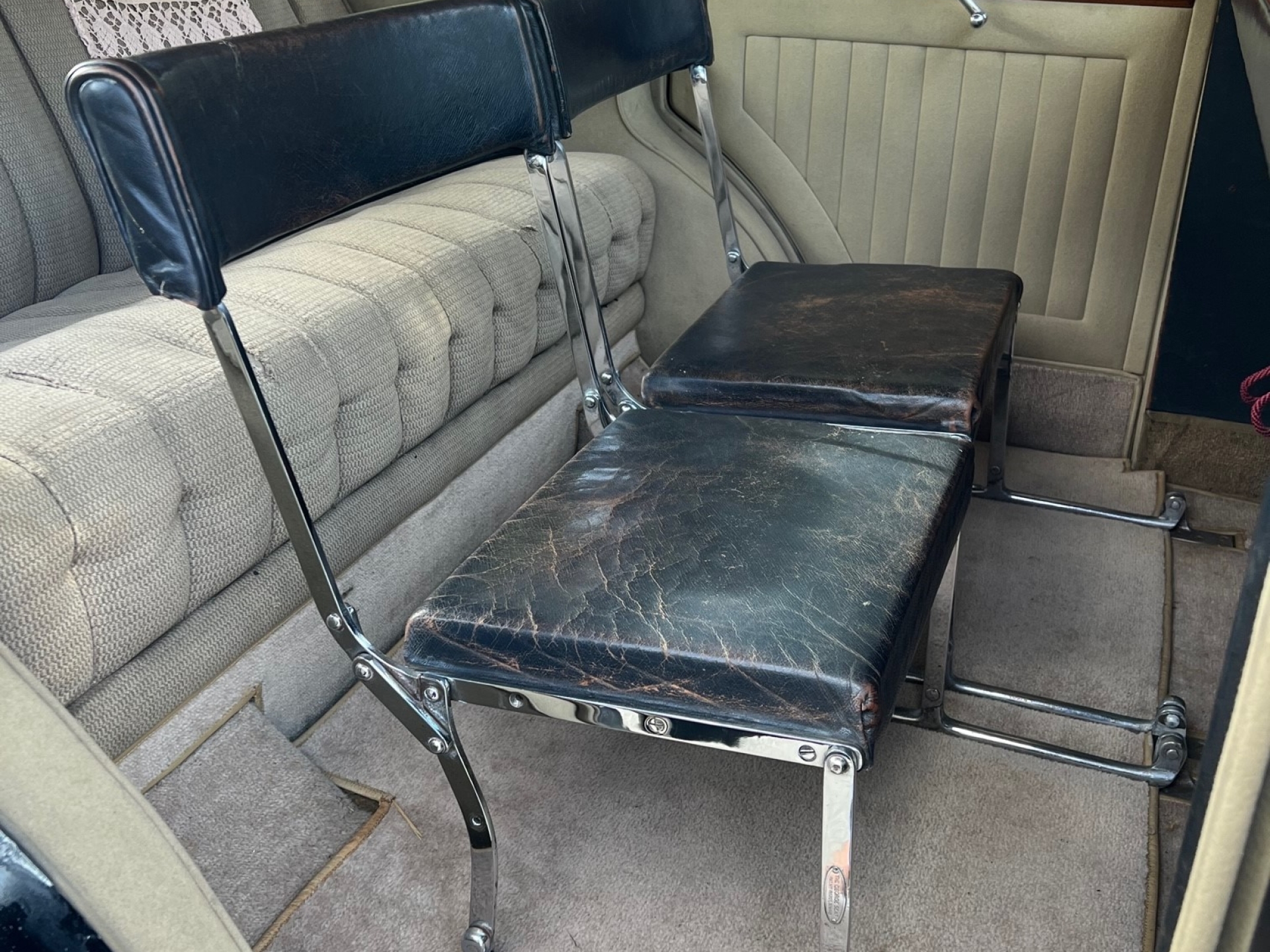 A sound, spacious, and practical example in good, sound condition throughout. The car was with one owner from 1986 until 2016, and has been well cared for, having been fitted with a new cylinder head, re-cored radiator and more besides. As a result of the care and attention that it has received, the car runs very sweetly and drives nicely, with a smooth, powerful engine, and performs well. Smartly painted in black & ivory, nice bright work, with excellent (recent) black leather to the front and beige cloth to the rear, with original black leather fold-down occasional seats. The structure is excellent, the doors closing with a satisfying ‘clunk’ and fitting very nicely, and being Hooper, certain items, including the windscreen and fittings are beautifully made in stainless steel. P100 headlights, long trumpet horns, a full set of 'Ace' wheel discs, an impressive set of correct, original tools, and (unusually) a sliding sunroof to the front compartment complete the picture. A lovely car, ready to go and offered MoT tested.