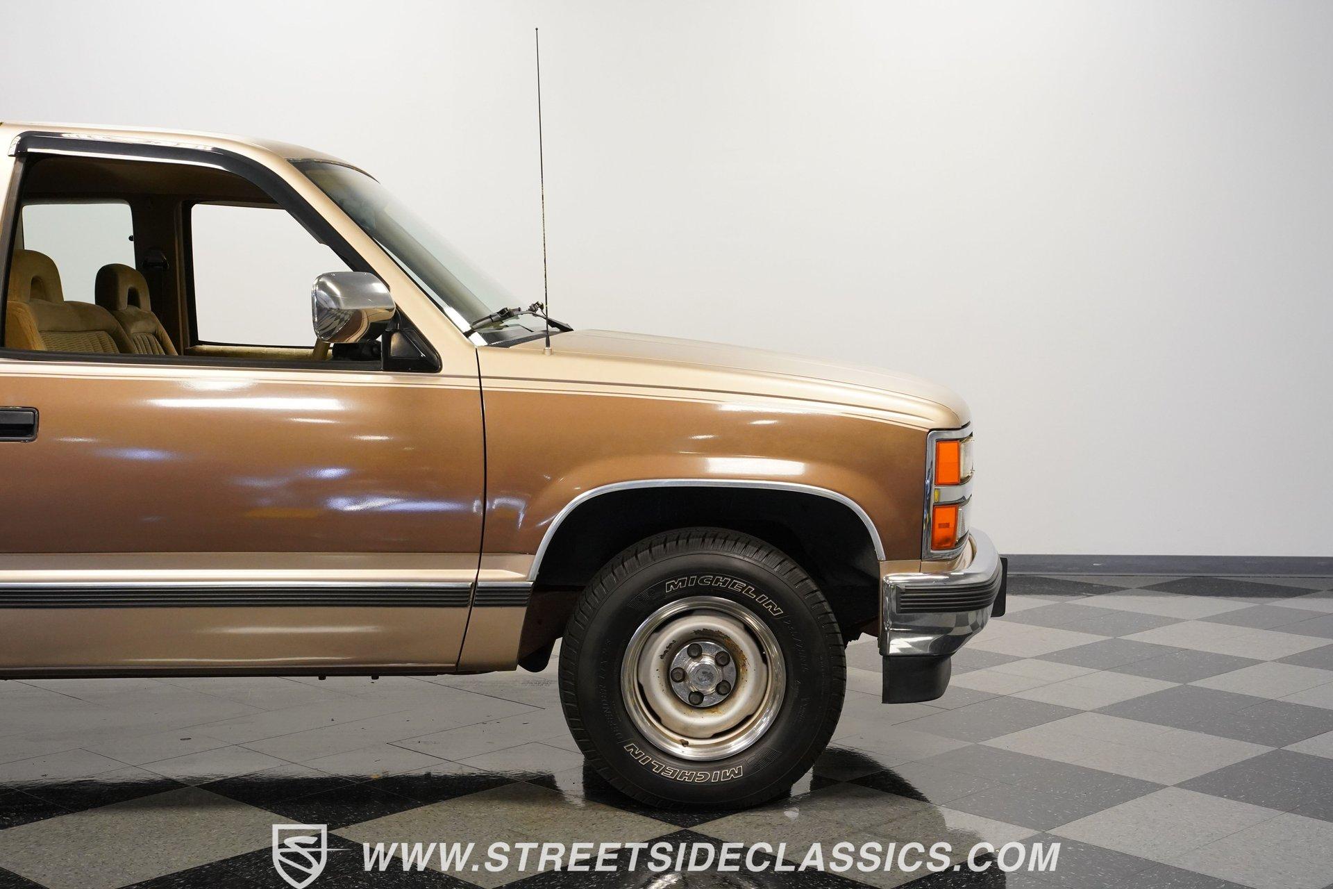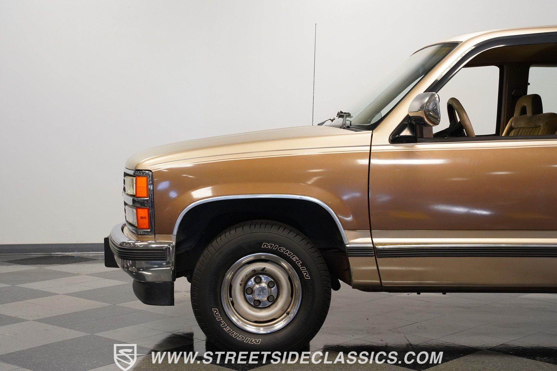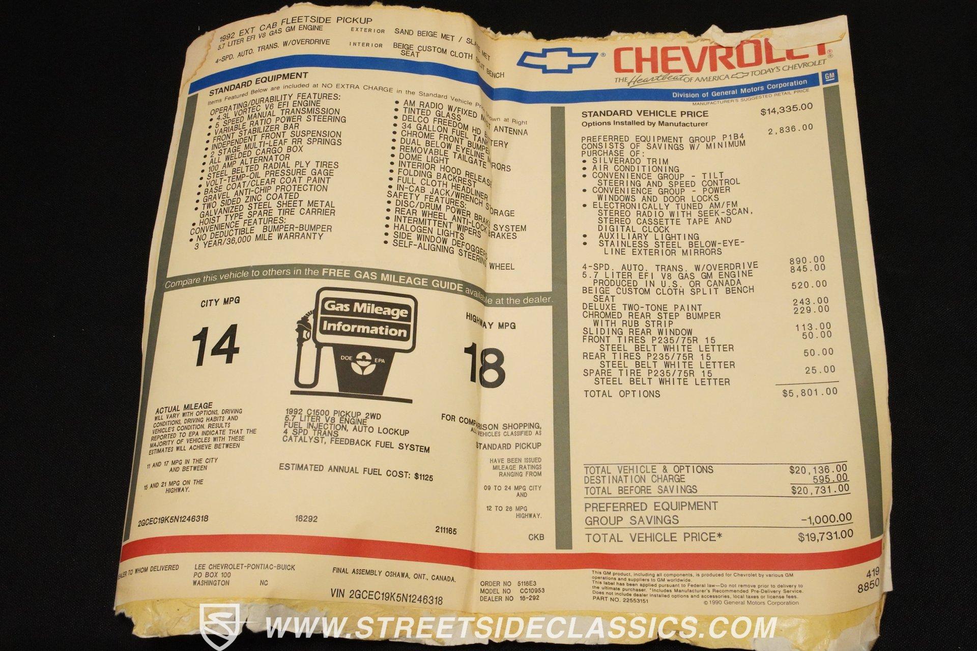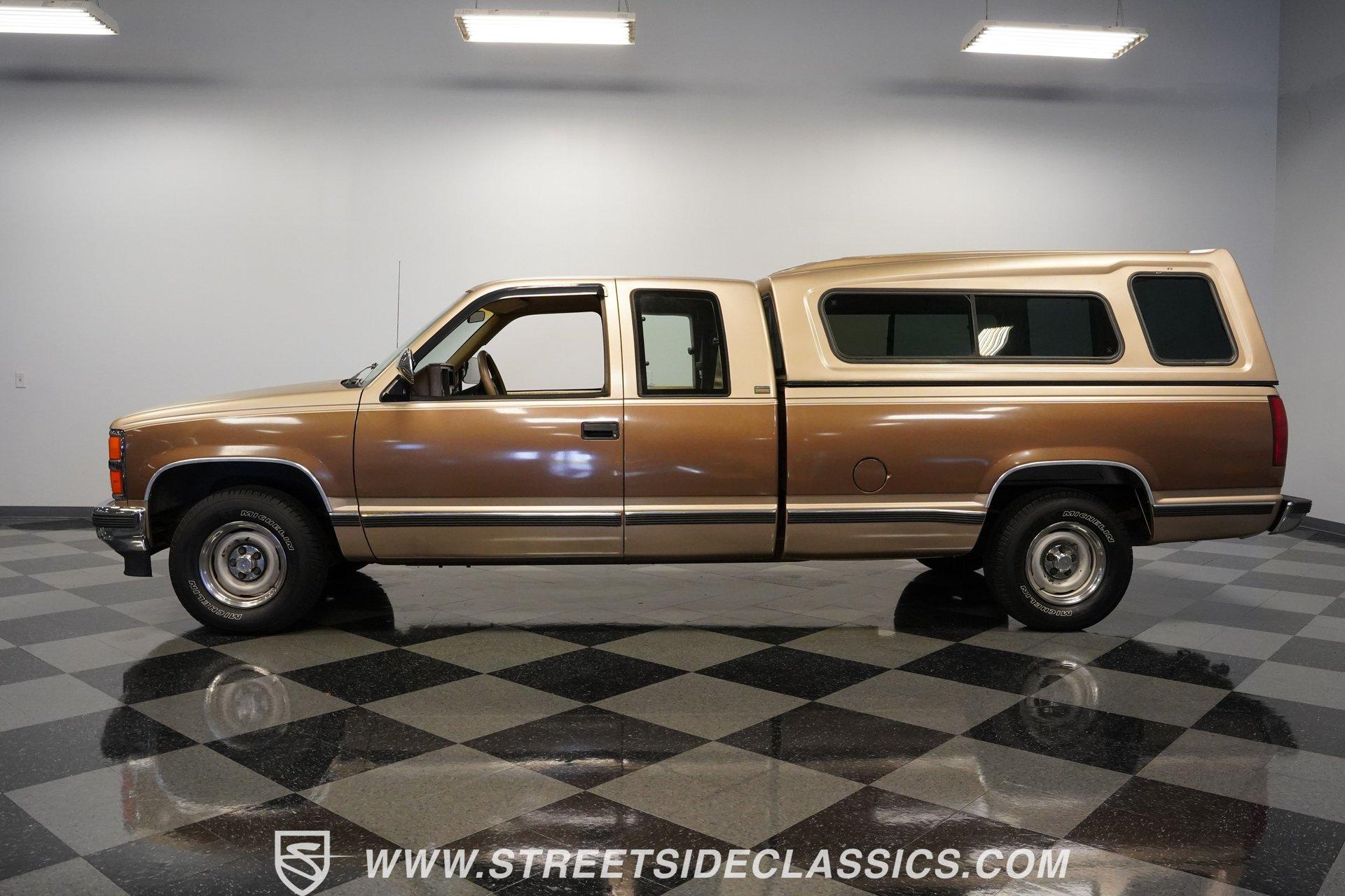 Trail-ready and mountain-tough, this 1992 Chevrolet Silverado 1500 Extended Cab displays a rugged beige and brown two-tone paint scheme that fits perfectly among forest trails and mountain backdrops. The extended cab configuration provides extra passenger space without sacrificing bed utility. A hard shell cover transforms the bed into secure, weather-protected storage. The classic 15" factory wheels wear 235/75R15 Michelin tires from 2021. Window rain guards allow fresh air circulation even during unexpected mountain showers. Inside the cab, tan cloth bench seating offers comfortable positioning for long drives. The straightforward column shifter keeps the floor clear for extra storage or muddy boots. Power windows and locks add convenience when stopping at multiple job sites. Air conditioning keeps the cabin cool during summer expeditions. The aftermarket Kenwood CD radio provides quality audio for long drives. A tilt steering wheel adjusts for drivers of any size while cruise control reduces fatigue. The tan carpet and headliner maintain a clean appearance despite the truck's working life. Powered by a 5.7 Liter V8 engine with plenty of muscle for loaded beds and rough terrain. The 4-speed automatic 700R4 transmission handles both steep grades and highways. Fuel injection works consistently in all environments. Power disc brakes up front. The coil spring front suspension includes a sway bar, while leaf springs with shocks support the rear. A 10-bolt rear axle transfers power to the ground. The trailer hitch and brake setup stands ready for hauling ATVs, boats, or work equipment. HIGHLIGHTS: 5.7 Liter V8 Engine 4 Speed 700R4 Automatic Transmission Fuel Injection Power Disc Brakes 10 Bolt Rear Axle Coil Spring/Shock/Sway Bar Front Suspension Leaf Springs With Shocks Rear Suspension Trailer Hitch And Brake Package Beige And Brown Two-Tone Paint Extended Cab Hard Bed Shell 15" Factory Wheels 235/75R15 Michelin Tires Window Rain Guards Tan Interior With Bench Seats Column Shift Air Conditioning Power Windows, Locks Kenwood CD Radio Cruise Control Tilt Steering Wheel Power Steering 107,450 Actual Miles Mountain adventures, weekend camping trips, or daily work duties, this 1992 Chevrolet Silverado 1500 Extended Cab handles them all with V8 power and truck utility. From forest trails to construction sites, the durable body, functional interior, and proven drivetrain make it a capable companion for outdoor exploration or daily work. Call today!