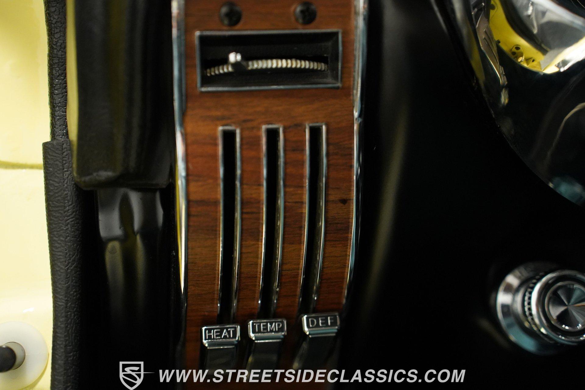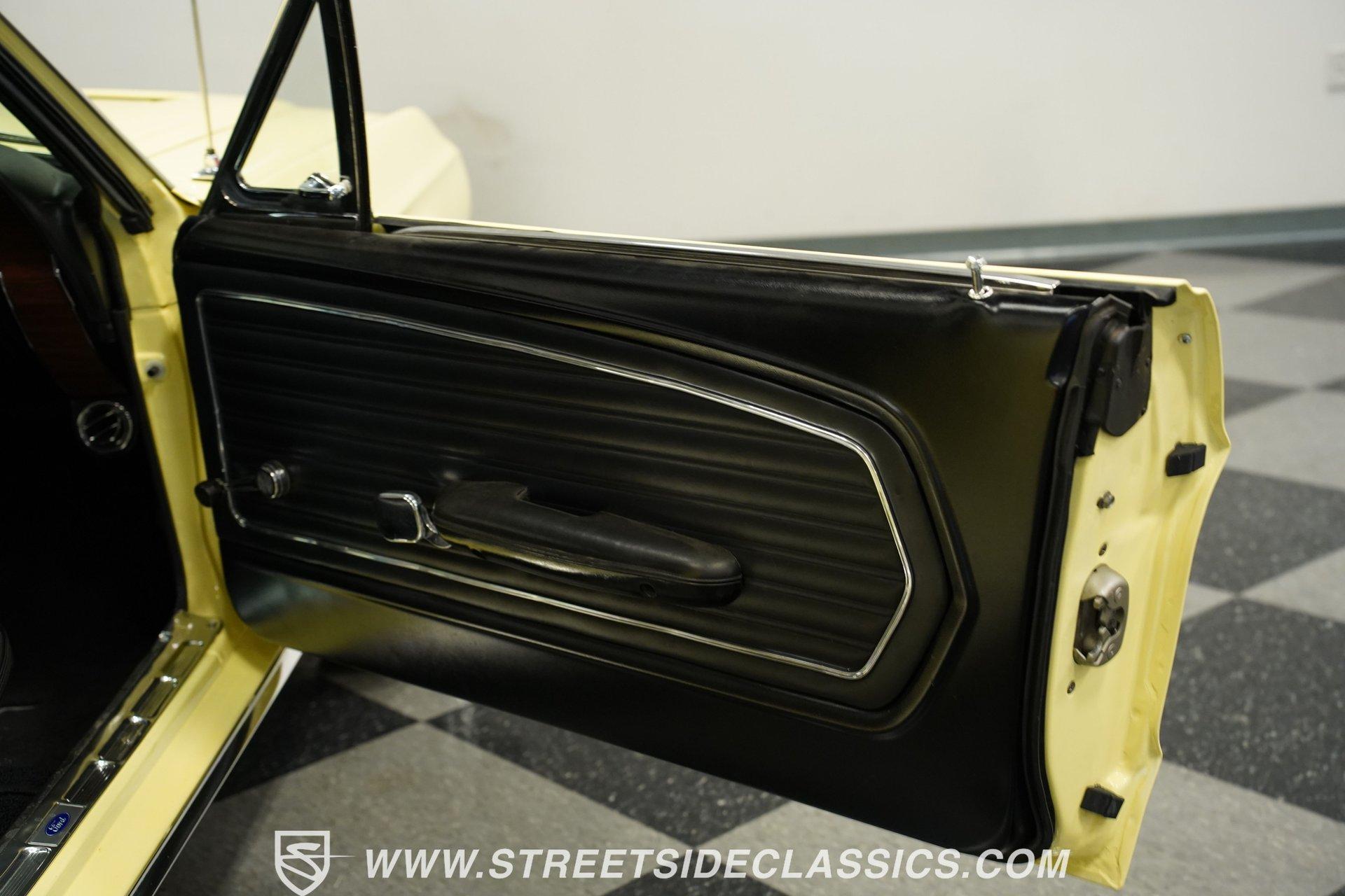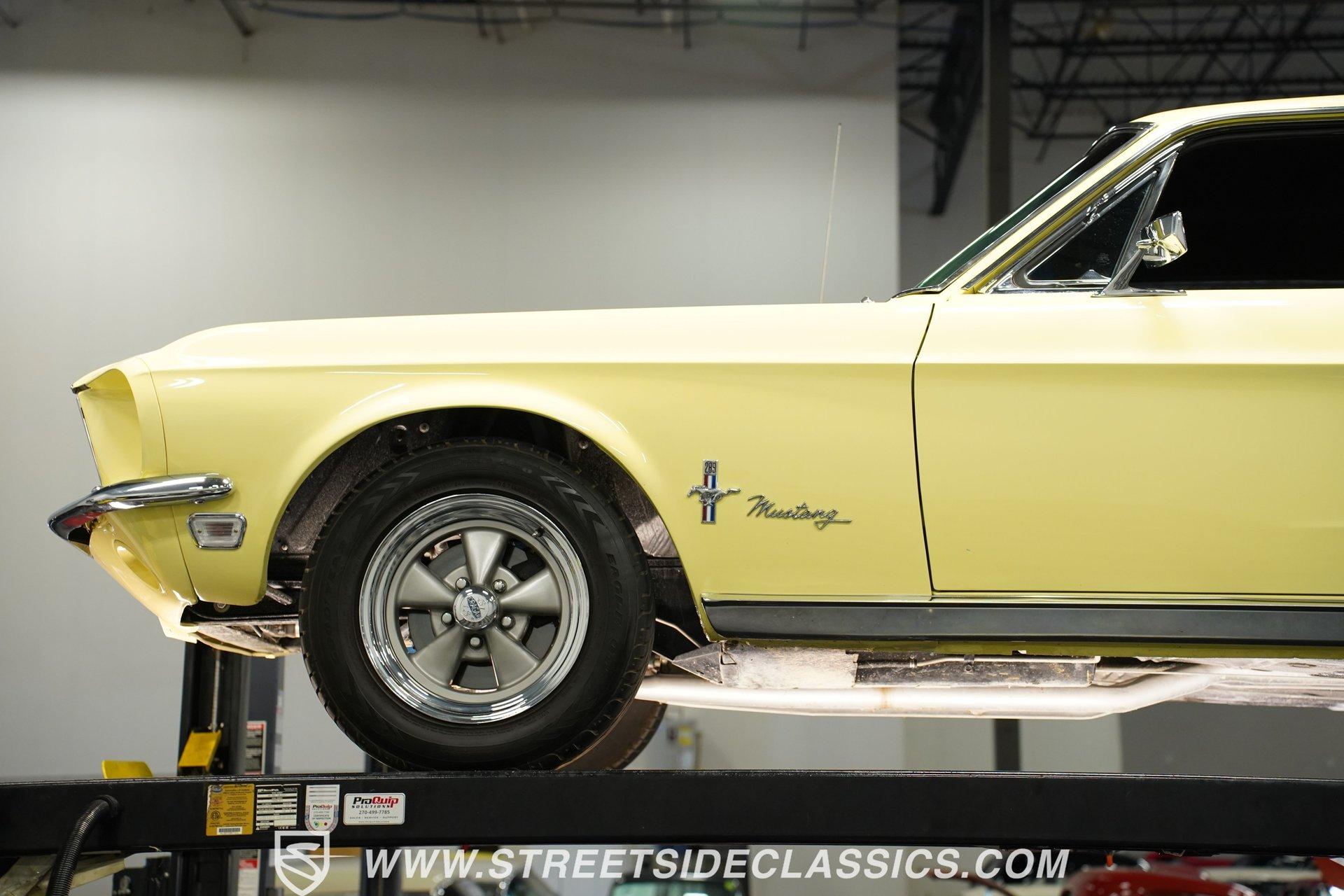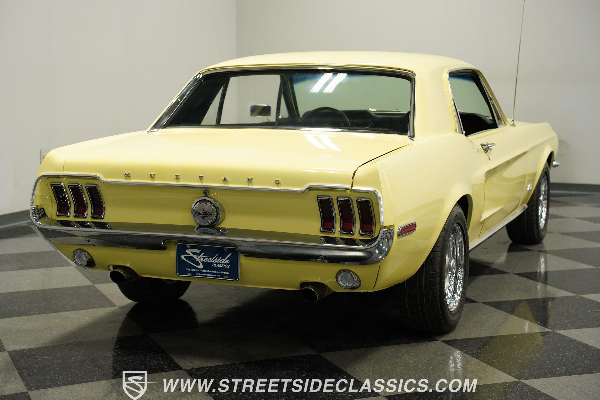 Freshly restored and gleaming in Meadowlark Yellow, this 1968 Ford Mustang coupe exudes classic American muscle appeal. The clean flanks look sharp with chrome rocker trim adding distinction to the profile. Good panel gaps and glass throughout speak to quality restoration work that elevates this pony car above typical driver-quality examples. Chrome brightwork remains in excellent condition, complementing the bright paint finish. The stance sits just right, with 15" Cragar wheels wrapped in 205/65R15 tires giving this Mustang a performance-oriented appearance on the street. Black vinyl dominates the interior, creating a perfect contrast against the bright exterior. Bucket seats grip your sides during spirited driving while staying true to the classic Mustang formula. The dash houses gauges that display with crystal clarity for quick info at a glance. The wood-rimmed steering wheel feels substantial in your hands while adding a touch of old-school cool. Newer carpet keeps things looking tight and clean throughout. The retro-style radio blends period looks with improved sound for cruising tunes. Functional A/C means you can drive hard without breaking a sweat. A 289 V8 engine anchors this Mustang in a clean engine bay, now mated to a 5-speed manual transmission that replaced the original C4 automatic. Painted valve covers add visual punch to the mechanical components. The full Mustang II front suspension conversion with tubular control arms and rack and pinion steering puts modern handling in this classic pony car. Shorty headers feed into a dual exhaust system for improved breathing and a muscular tone. Power steering and power disc brakes make driving a breeze while the R134a air conditioning system keeps the cabin cool during summer blasts down your favorite roads. HIGHLIGHTS: 289 V8 Engine 5-Speed Manual Transmission Power Steering Power Brakes Front Disc Brakes Mustang II Front Suspension Tubular Control Arms Rack And Pinion Steering Shorty Headers Dual Exhaust R134a Air Conditioning Meadowlark Yellow Paint 15" Cragar Wheels 205/65R15 Tires Chrome Brightwork Chrome Rocker Trim Good Glass Throughout Black Vinyl Interior Bucket Seats Wood Rim Steering Wheel Retro Style Radio Newer Carpet Clear Gauges From city streets to country roads, this 1968 Ford Mustang offers classic muscle car looks with upgraded driving dynamics. The 289 V8 provides ample power, while the five-speed manual transmission makes highway cruising a breeze. For an authentic slice of American muscle, get behind the wheel of this Meadowlark Yellow beauty. Call today!