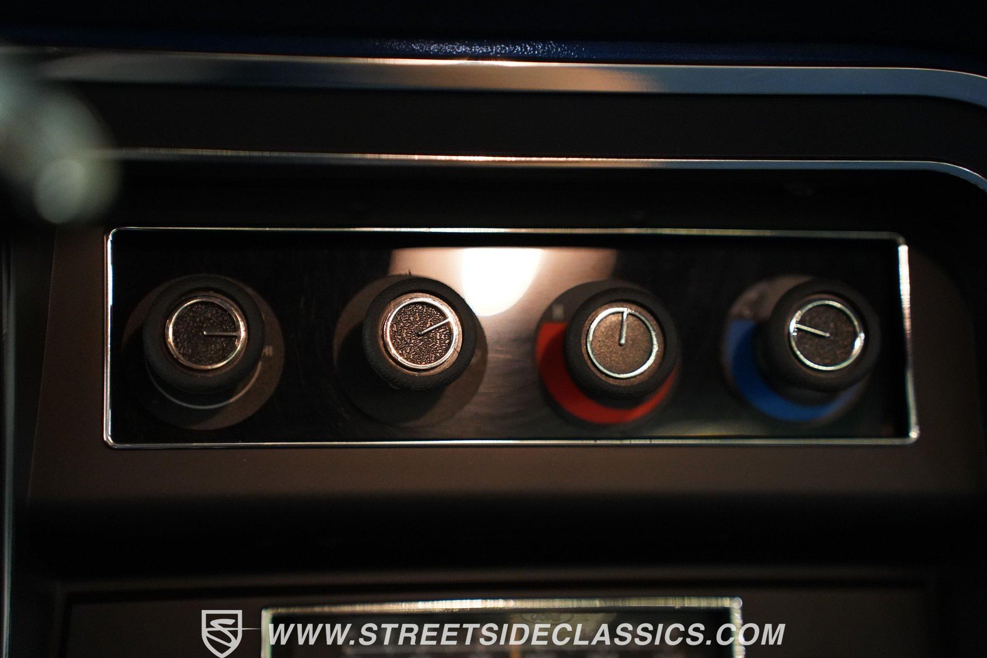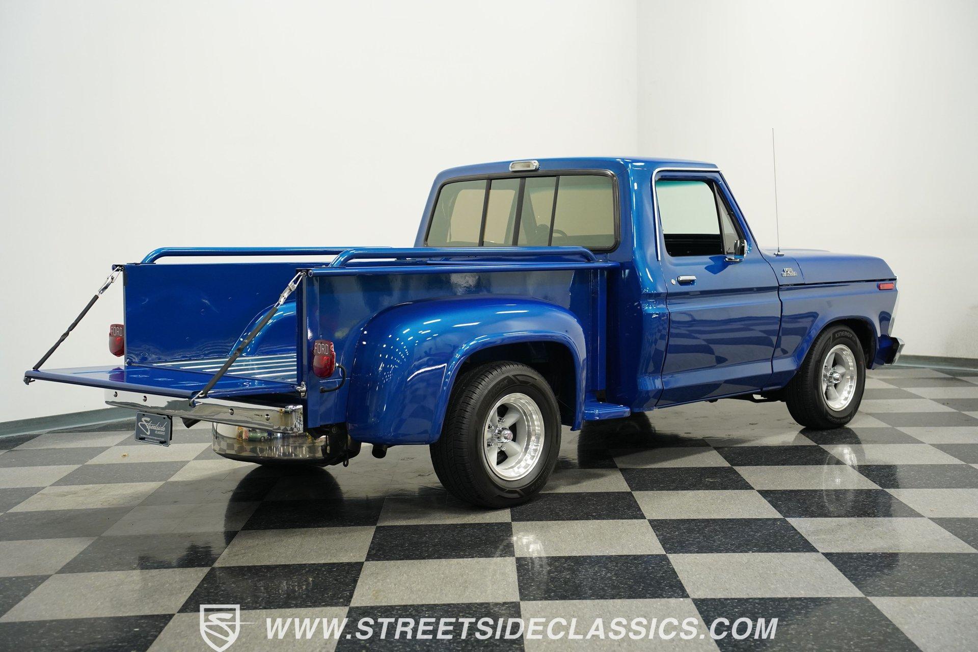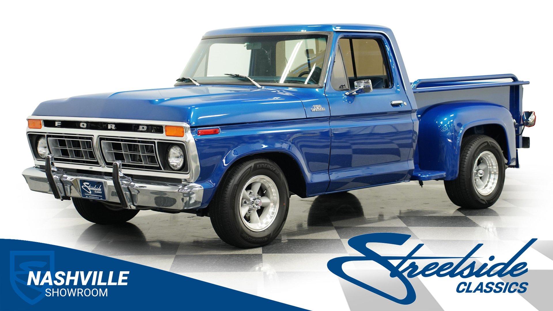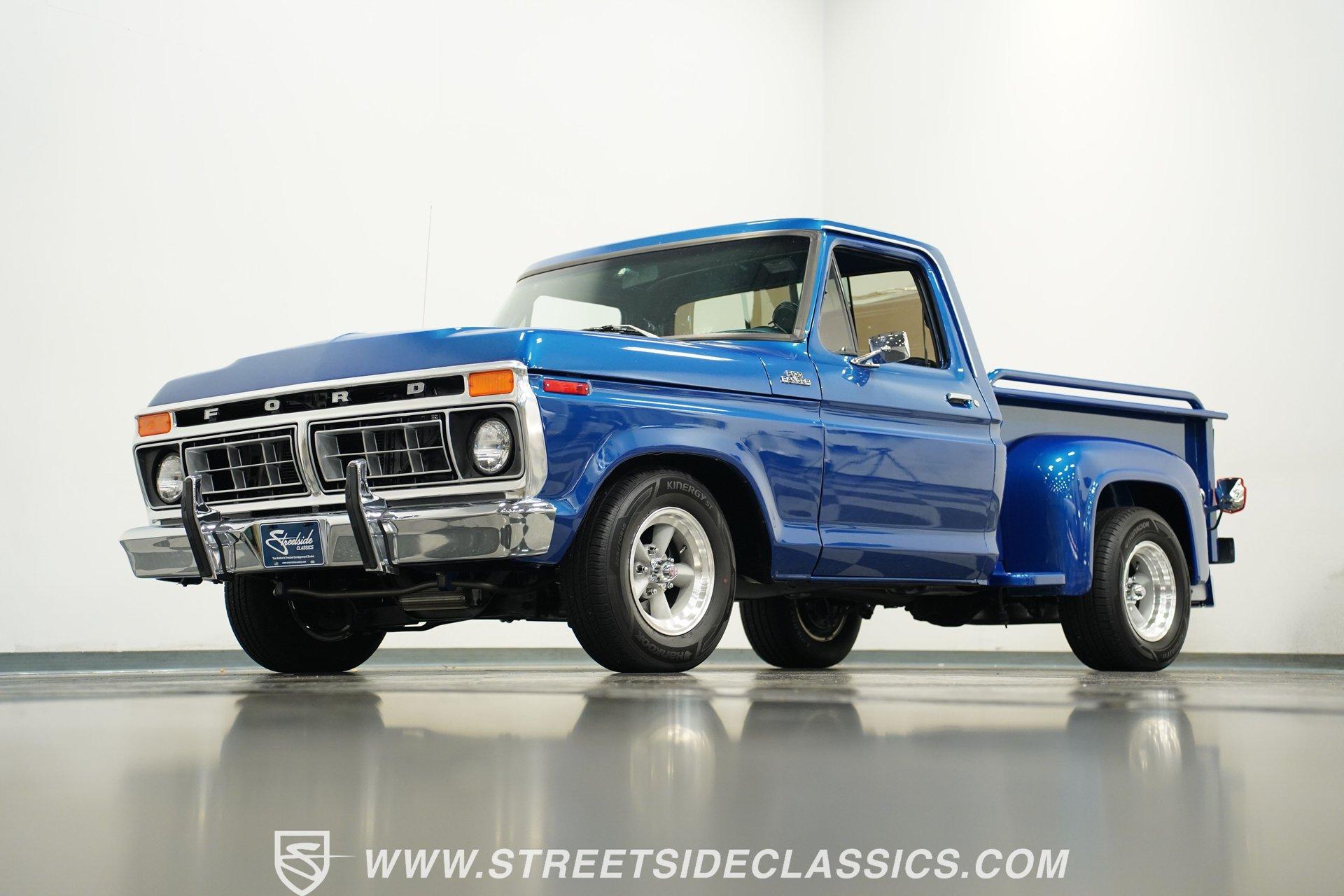 Restored from the ground up with meticulous attention to detail, the 1977 Ford F-100 Stepside wears Dark Blue Metallic paint that shows exceptionally well. The clean stepside body style carries an unmistakable toughness, amplified by the 15" American Racing wheels. For a bold look, wider P275/60R15 tires fill out the rear while 225/70R15 rubber sits up front. Between the doors, a blue cloth bench seat anchors an interior that blends vintage style with added comfort. The straightforward dashboard layout places all necessary gauges within easy view, complemented by an additional tachometer mounted atop the dash. For convenience, an aftermarket center console with cup holders sits between driver and passenger. Additional amenities include cold-blowing air conditioning, AM/FM radio for entertainment, and the safety of seatbelts. Powering the F-100 is a rebuilt 302 cubic inch V8 connected to a C4 3-speed automatic transmission. For improved performance, a Demon 4-barrel carburetor sits atop an Edelbrock intake manifold. Long tube headers channel exhaust gases through a dual exhaust system with H-pipe and Dynomax mufflers. Additional mechanical upgrades include power steering, power front disc brakes, aluminum radiator, transmission cooler, and oil cooler. A Ford 9" rear end and modified I-beam front suspension with drop beams round out the truck's solid mechanical package. HIGHLIGHTS: 302 V8 Engine C4 3-Speed Automatic Transmission Demon 4-Barrel Carburetor Edelbrock Intake Manifold Power Front Disc Brakes Long Tube Headers Dual Exhaust With H-Pipe Dynomax Mufflers Ford 9" Rear Axle Aluminum Radiator Transmission Cooler Oil Cooler Dark Blue Metallic Paint 15" American Racing Wheels 225/70R15 Front, P275/60R15 Rear Tires Short Bed Blue Interior With Bench Seat Air Conditioning AM/FM Radio Power Steering Column Shifter Aftermarket Center Console Add-On Tachometer Seatbelts Sporting a full restoration and quality mechanical upgrades, the 1977 Ford F-100 Stepside blends classic truck styling with modern drivability. From the attractive Dark Blue Metallic exterior to the thoughtfully upgraded 302 V8 engine, every aspect has received proper attention. Call today!