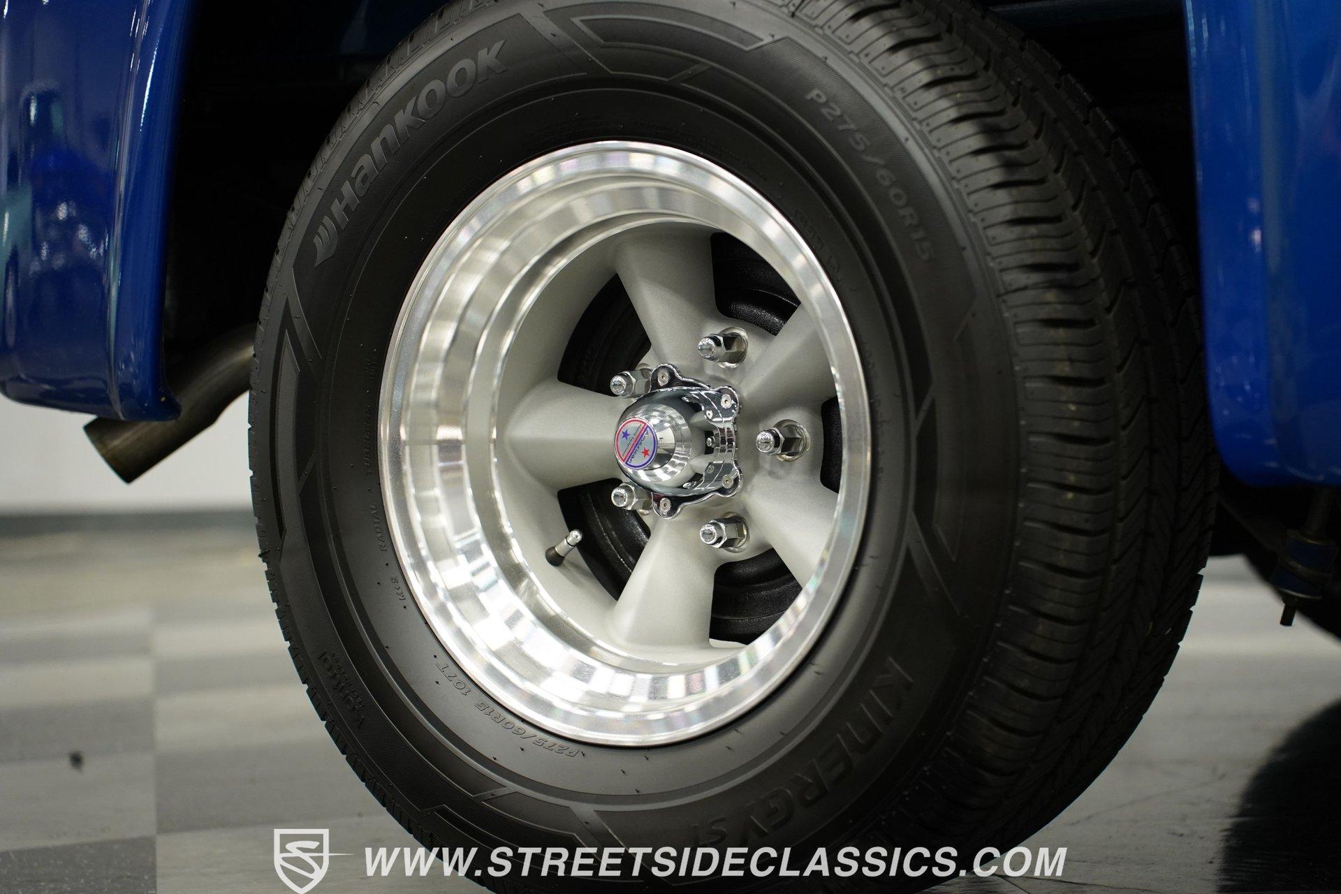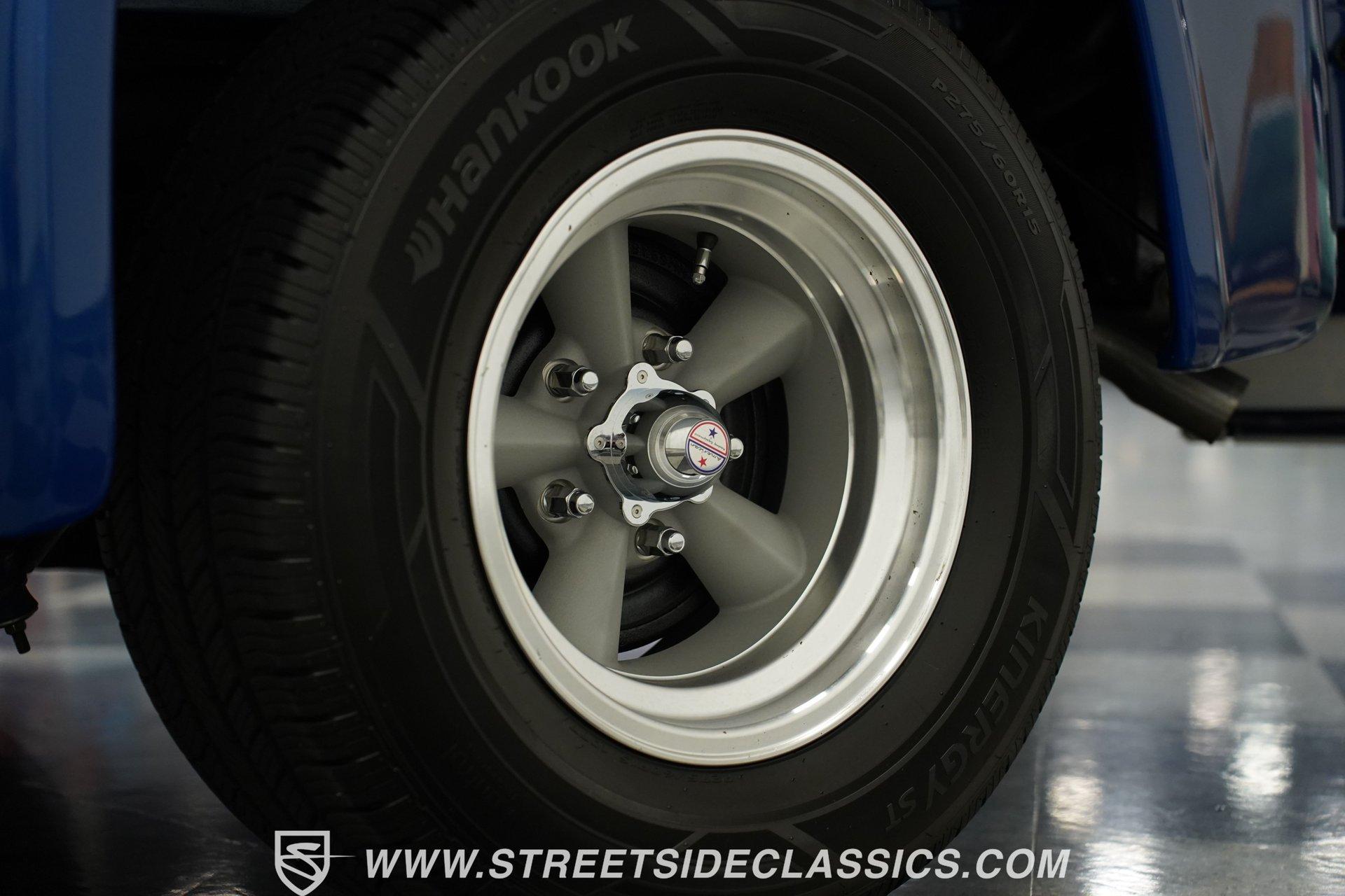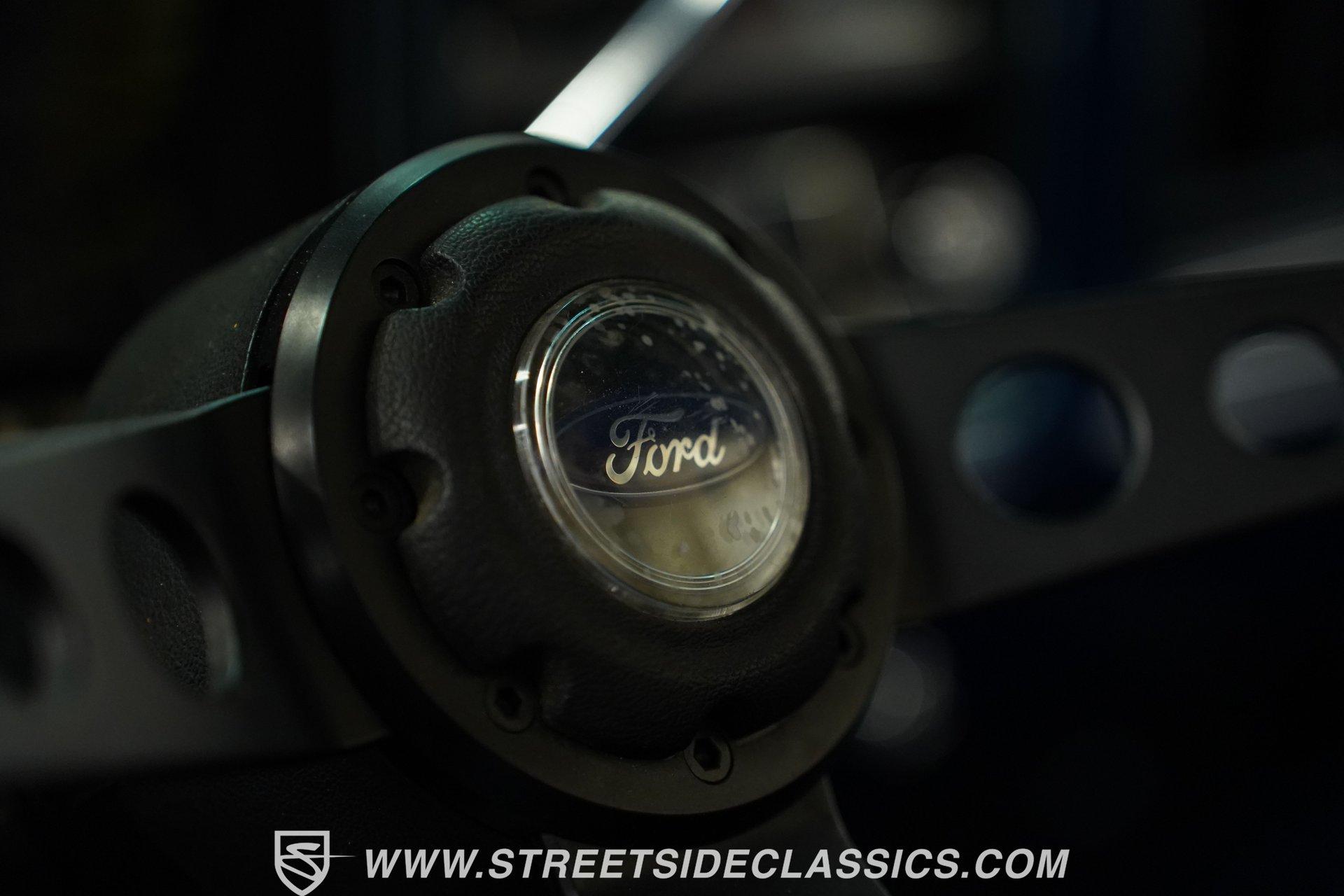 Restored from the ground up with meticulous attention to detail, the 1977 Ford F-100 Stepside wears Dark Blue Metallic paint that shows exceptionally well. The clean stepside body style carries an unmistakable toughness, amplified by the 15" American Racing wheels. For a bold look, wider P275/60R15 tires fill out the rear while 225/70R15 rubber sits up front. Between the doors, a blue cloth bench seat anchors an interior that blends vintage style with added comfort. The straightforward dashboard layout places all necessary gauges within easy view, complemented by an additional tachometer mounted atop the dash. For convenience, an aftermarket center console with cup holders sits between driver and passenger. Additional amenities include cold-blowing air conditioning, AM/FM radio for entertainment, and the safety of seatbelts. Powering the F-100 is a rebuilt 302 cubic inch V8 connected to a C4 3-speed automatic transmission. For improved performance, a Demon 4-barrel carburetor sits atop an Edelbrock intake manifold. Long tube headers channel exhaust gases through a dual exhaust system with H-pipe and Dynomax mufflers. Additional mechanical upgrades include power steering, power front disc brakes, aluminum radiator, transmission cooler, and oil cooler. A Ford 9" rear end and modified I-beam front suspension with drop beams round out the truck's solid mechanical package. HIGHLIGHTS: 302 V8 Engine C4 3-Speed Automatic Transmission Demon 4-Barrel Carburetor Edelbrock Intake Manifold Power Front Disc Brakes Long Tube Headers Dual Exhaust With H-Pipe Dynomax Mufflers Ford 9" Rear Axle Aluminum Radiator Transmission Cooler Oil Cooler Dark Blue Metallic Paint 15" American Racing Wheels 225/70R15 Front, P275/60R15 Rear Tires Short Bed Blue Interior With Bench Seat Air Conditioning AM/FM Radio Power Steering Column Shifter Aftermarket Center Console Add-On Tachometer Seatbelts Sporting a full restoration and quality mechanical upgrades, the 1977 Ford F-100 Stepside blends classic truck styling with modern drivability. From the attractive Dark Blue Metallic exterior to the thoughtfully upgraded 302 V8 engine, every aspect has received proper attention. Call today!