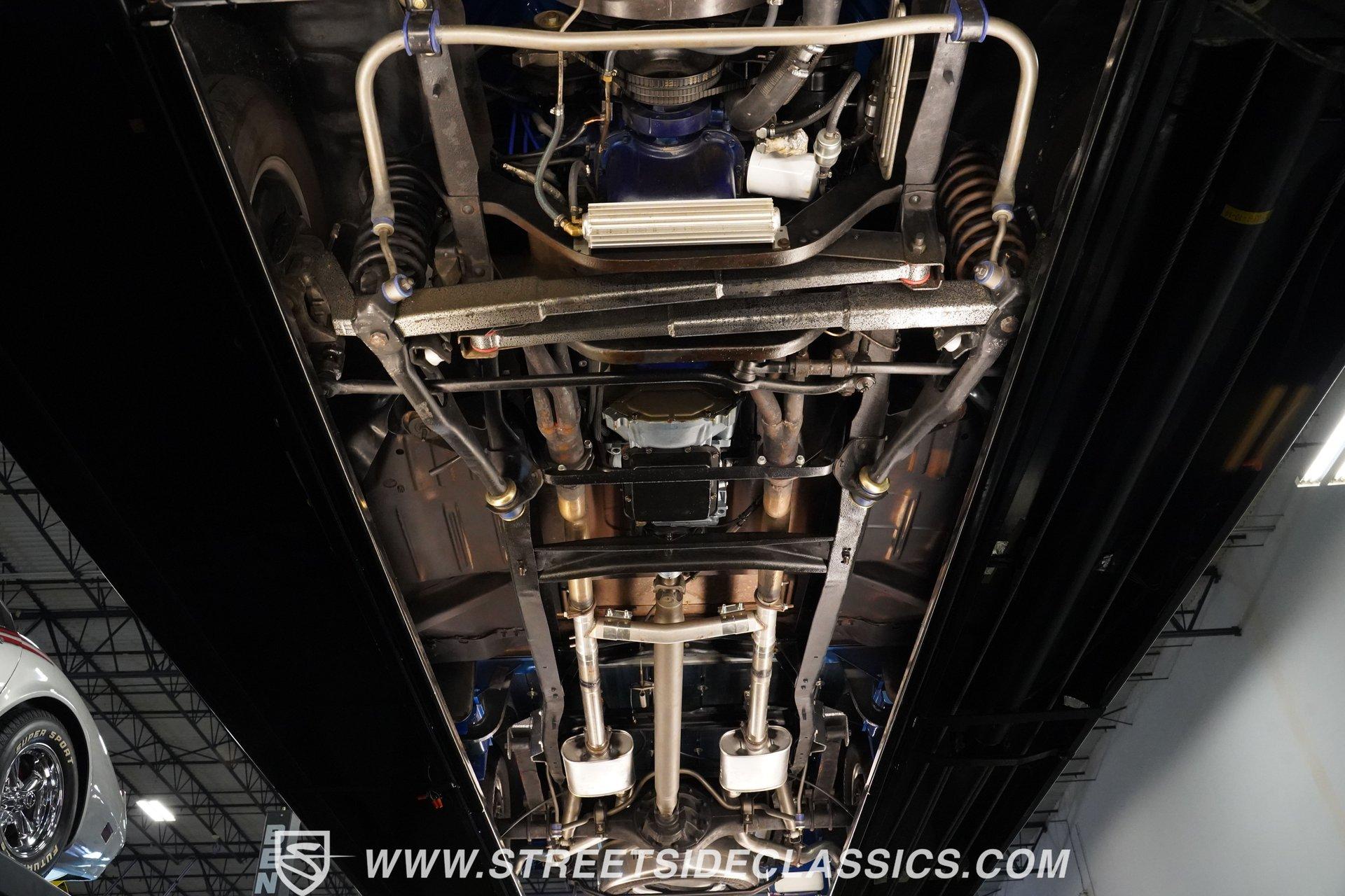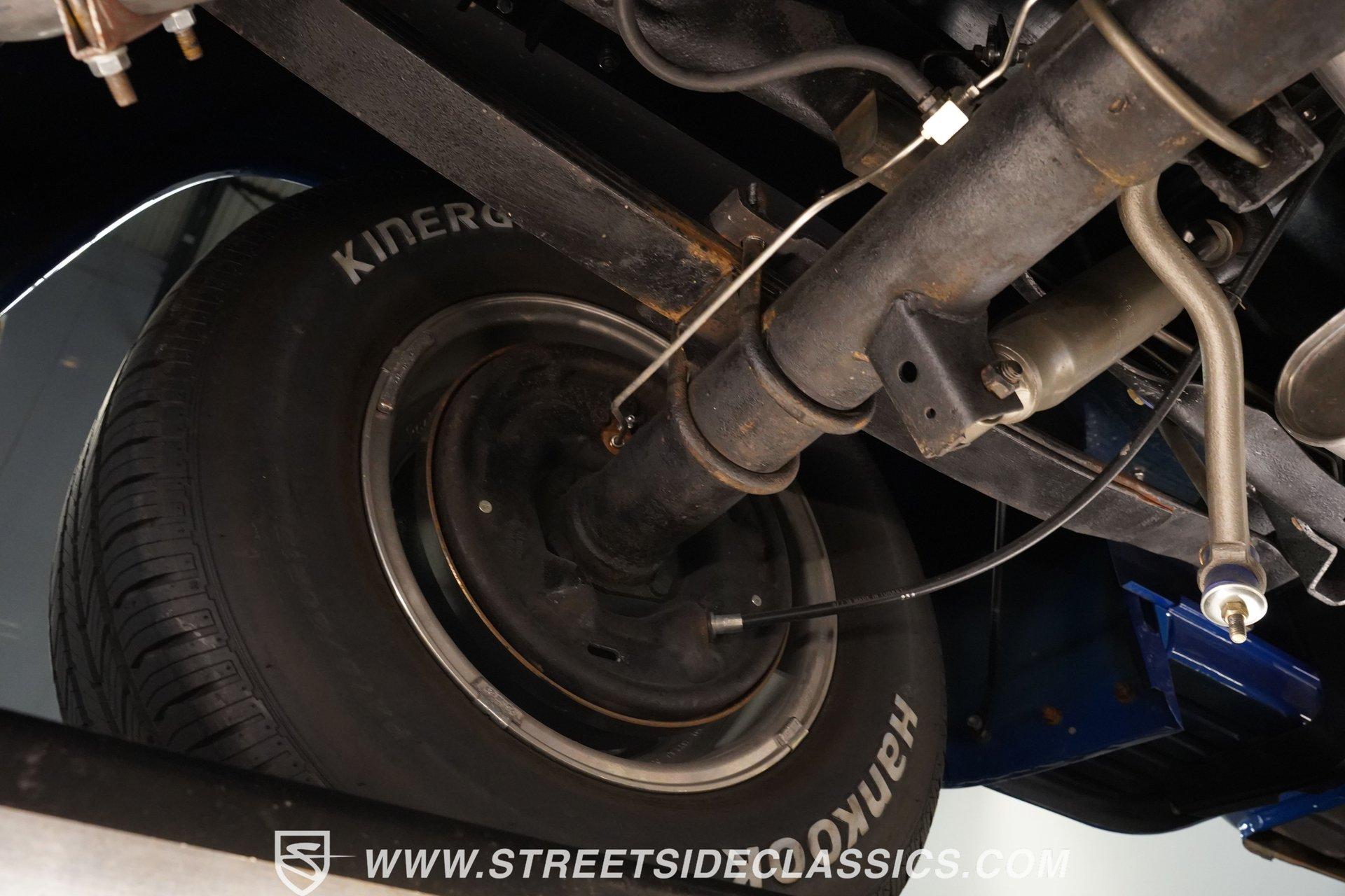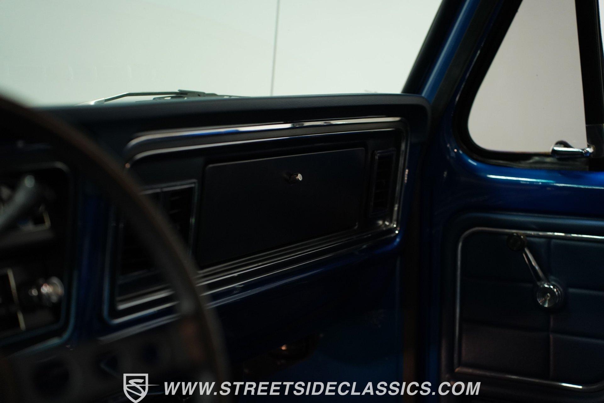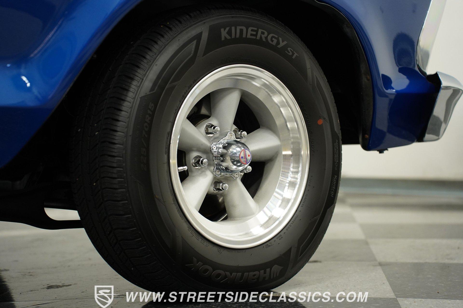 Restored from the ground up with meticulous attention to detail, the 1977 Ford F-100 Stepside wears Dark Blue Metallic paint that shows exceptionally well. The clean stepside body style carries an unmistakable toughness, amplified by the 15" American Racing wheels. For a bold look, wider P275/60R15 tires fill out the rear while 225/70R15 rubber sits up front. Between the doors, a blue cloth bench seat anchors an interior that blends vintage style with added comfort. The straightforward dashboard layout places all necessary gauges within easy view, complemented by an additional tachometer mounted atop the dash. For convenience, an aftermarket center console with cup holders sits between driver and passenger. Additional amenities include cold-blowing air conditioning, AM/FM radio for entertainment, and the safety of seatbelts. Powering the F-100 is a rebuilt 302 cubic inch V8 connected to a C4 3-speed automatic transmission. For improved performance, a Demon 4-barrel carburetor sits atop an Edelbrock intake manifold. Long tube headers channel exhaust gases through a dual exhaust system with H-pipe and Dynomax mufflers. Additional mechanical upgrades include power steering, power front disc brakes, aluminum radiator, transmission cooler, and oil cooler. A Ford 9" rear end and modified I-beam front suspension with drop beams round out the truck's solid mechanical package. HIGHLIGHTS: 302 V8 Engine C4 3-Speed Automatic Transmission Demon 4-Barrel Carburetor Edelbrock Intake Manifold Power Front Disc Brakes Long Tube Headers Dual Exhaust With H-Pipe Dynomax Mufflers Ford 9" Rear Axle Aluminum Radiator Transmission Cooler Oil Cooler Dark Blue Metallic Paint 15" American Racing Wheels 225/70R15 Front, P275/60R15 Rear Tires Short Bed Blue Interior With Bench Seat Air Conditioning AM/FM Radio Power Steering Column Shifter Aftermarket Center Console Add-On Tachometer Seatbelts Sporting a full restoration and quality mechanical upgrades, the 1977 Ford F-100 Stepside blends classic truck styling with modern drivability. From the attractive Dark Blue Metallic exterior to the thoughtfully upgraded 302 V8 engine, every aspect has received proper attention. Call today!