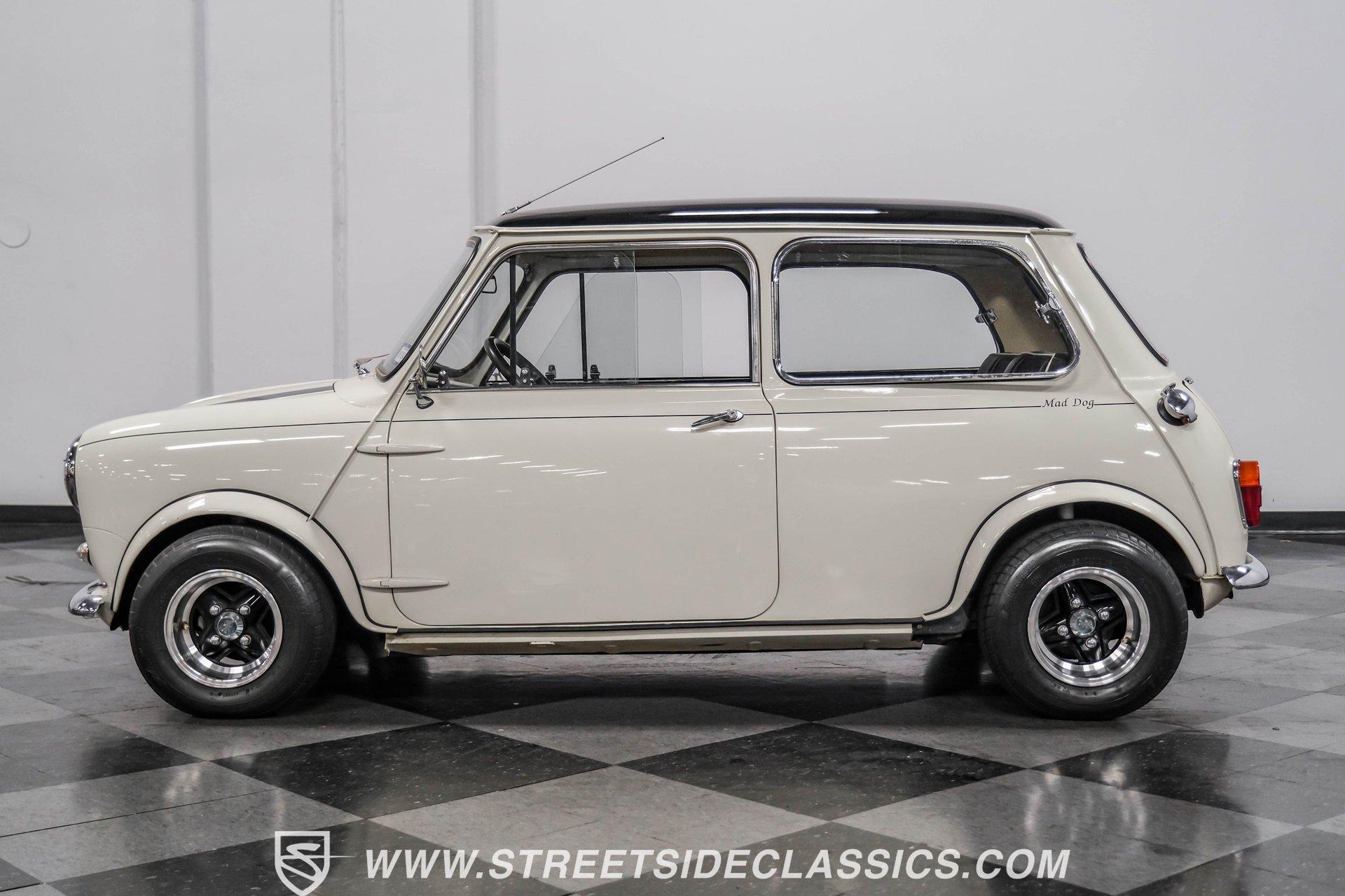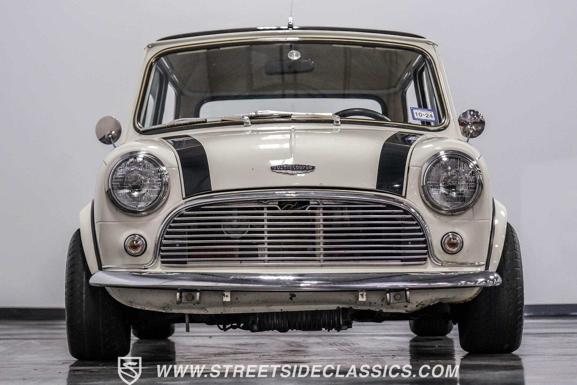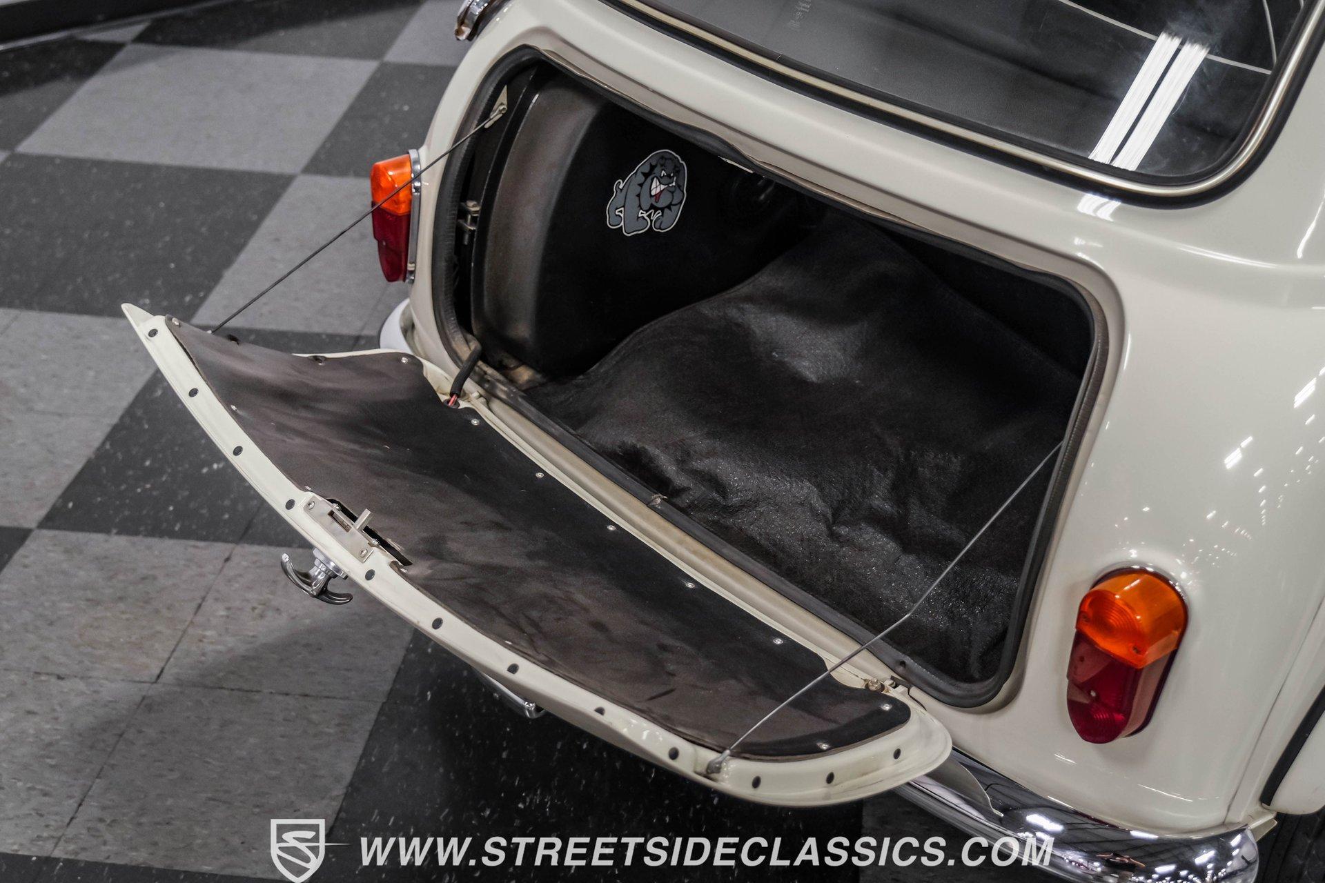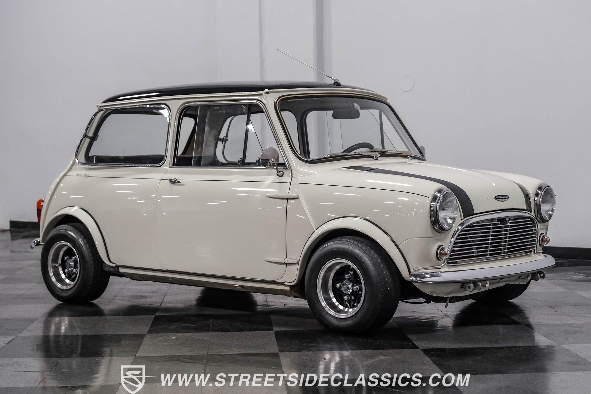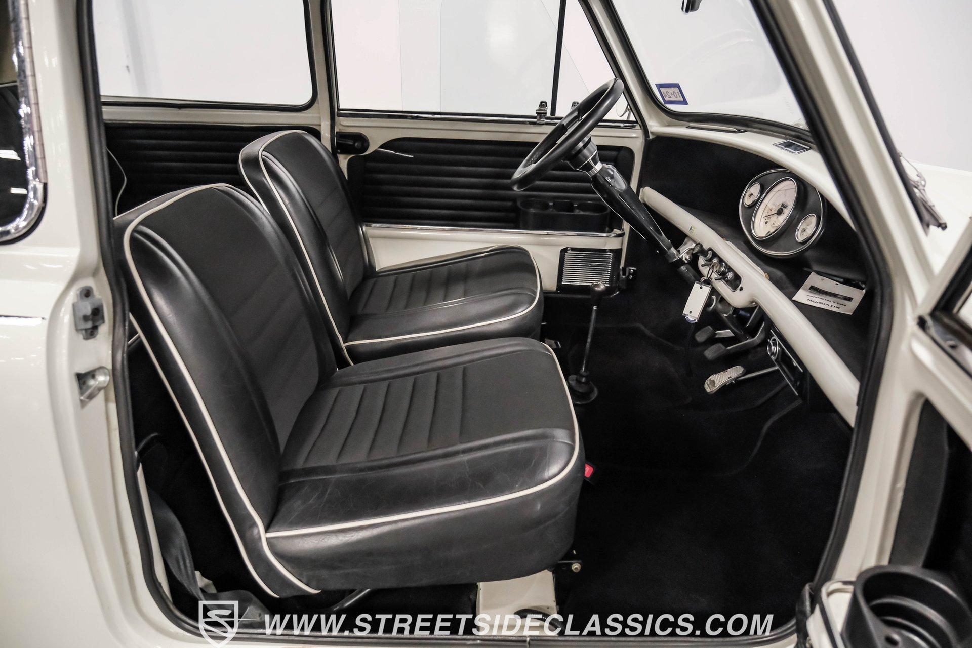 Compact yet mighty, this 1963 Austin Mini S Tribute is a British icon in Pepper White with bold black racing stripes and matching roof. The classic Mini silhouette remains unaltered while the 10" wheels fill out the fenders with purpose. Falken 165/70R10 tires grip the road with authority, while the front end sports the unmistakable Mini fascia. A passion project meticulously transformed by a dedicated enthusiast, this Mini showcases clean lines and the spirited aesthetic that made these cars legendary on both road and rally stages. Black vinyl bucket seats anchor the driver-focused cabin, complemented by red trim accents that add a splash of racing heritage. The Grant GT steering wheel feels substantial in your hands while providing excellent control of this lightweight machine. An XD Vision AM/FM/CD/USB head unit offers modern audio convenience without compromising the vintage dashboard layout. Front seatbelts add a measure of safety to this otherwise period-correct interior. Visibility remains excellent all around thanks to the Mini's expansive greenhouse. A punchy 1275 CC four-cylinder engine powers this diminutive machine, paired with a crisp-shifting 4-speed manual transmission. The powerplant was upgraded from the stock base engine, giving this Mini considerably more zip than factory specifications. SU dual carburetors feed the engine with precise fuel delivery. Front disc brakes provide strong stopping power, while the independent suspension at all four corners keeps this Mini planted through corners. The single exhaust with aftermarket muffler produces a suitably sporty note. HIGHLIGHTS: 1275 CC 4-Cylinder Engine 4-Speed Manual Transmission Dual SU Carburetors Front Disc Brakes Independent Front And Rear Suspension Single Exhaust With Aftermarket Muffler Pepper White Paint Black Painted Stripes And Roof 10" Wheels 165/70R10 Falken Tires Black Interior With Bucket Seats And Red Trim Grant GT Steering Wheel XD Vision AM/FM/CD/USB Head Unit Front Seatbelts British Motor Industry Heritage Trust Certificate Build Receipts This 1963 Austin Mini S Tribute has the looks, the upgrades, and the style to back it all up. With a 1275cc engine, 4-speed manual, and a lean setup that makes it an engaging driver, it's a blast with a serious punch in a small package. Call today!
