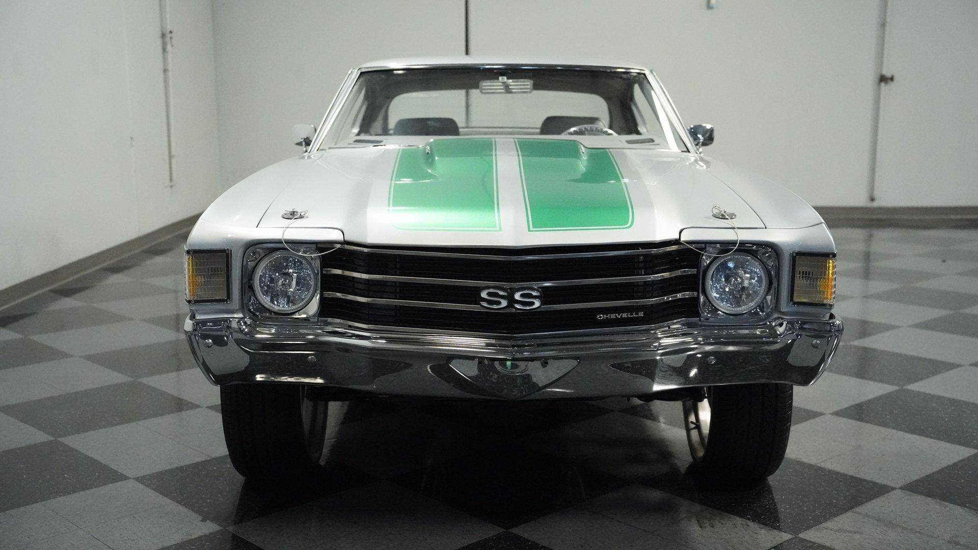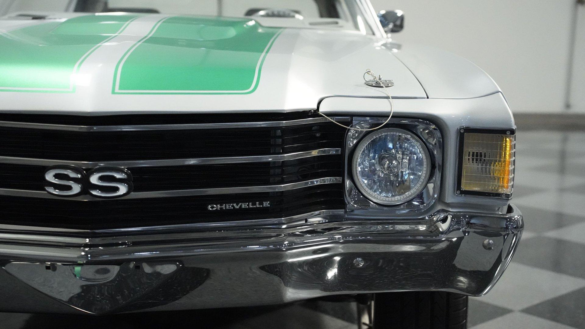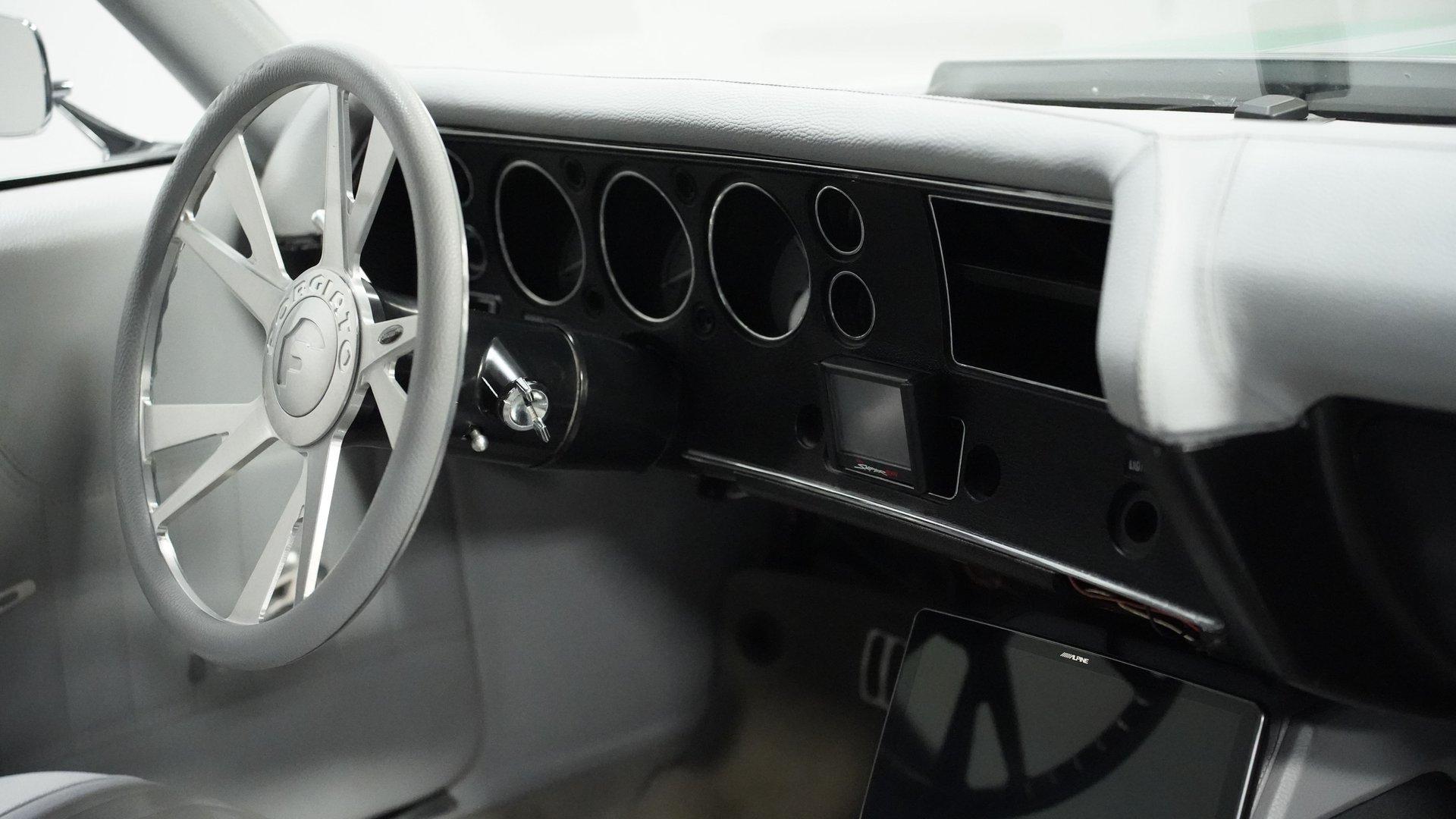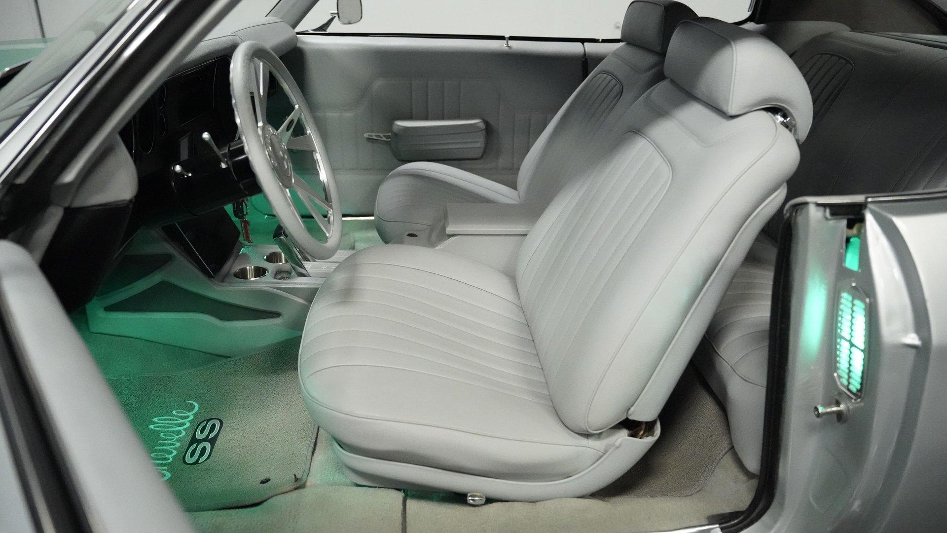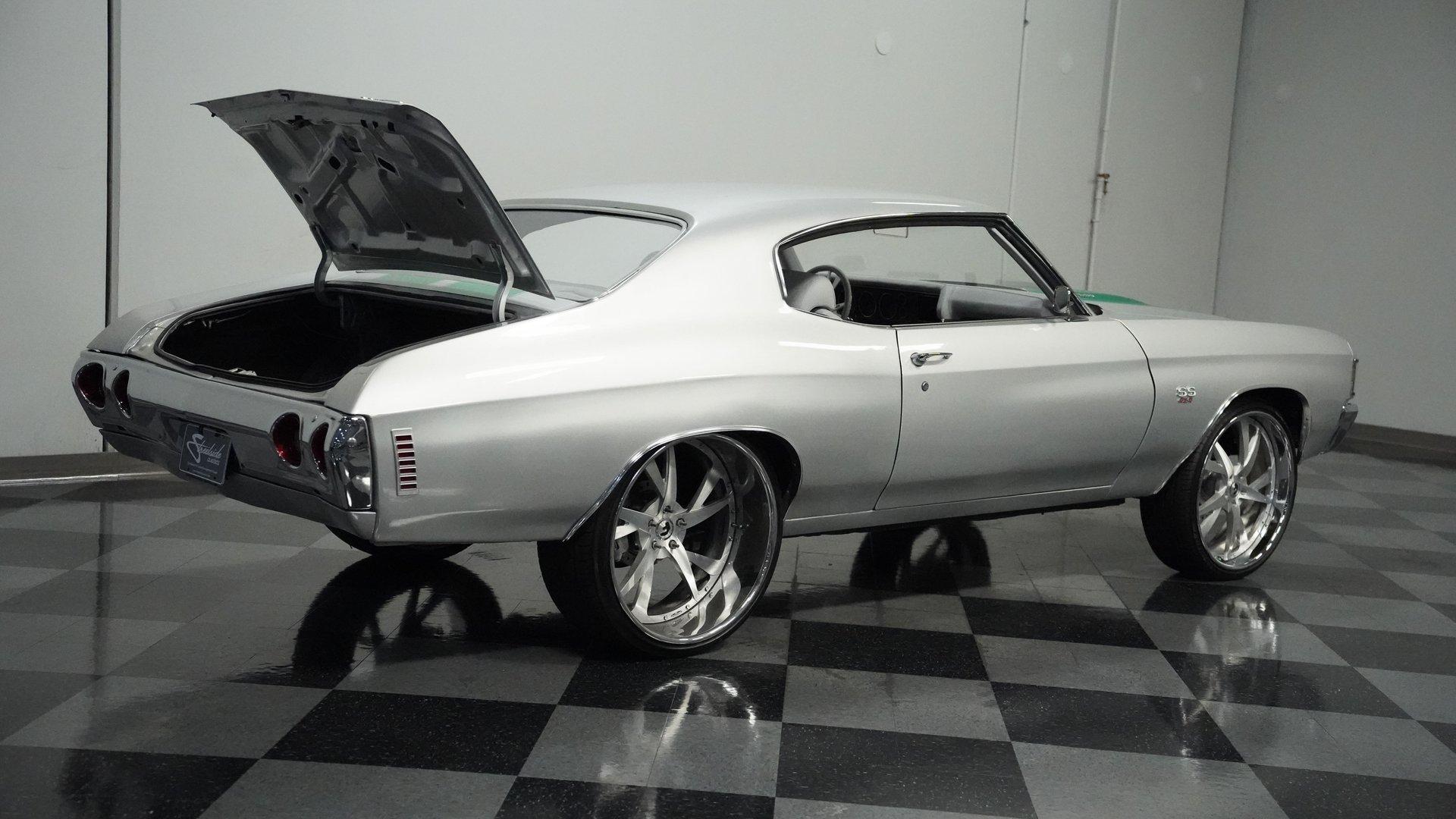Muscular and aggressive with its powerful proportions, the 1972 Chevrolet Chevelle 454 Restomod wears an expertly applied Brushed Silver Metallic finish sliced by bold Spiral Green stripes. The imposing cowl hood secured with functional hood pins adds serious performance character. An SS grille anchors the front along with clear headlights featuring LED halos for modern night cruising. Massive 24" Forgiato wheels fill out the fenders perfectly, wrapped in 255/30ZR24 front and 295/30ZR24 rear tires that plant this muscle machine firmly to the asphalt. Space Gray surrounds you in an atmosphere of pure performance attitude. Dakota Digital gauges display vital info at a glance while the vinyl bucket seats hold you firmly during hard cornering. The custom console includes integrated cup holders for your road trip necessities. Green LED lighting adds nighttime character throughout the cabin. A Bluetooth tablet screen puts technology at your fingertips, while the Forgiato steering wheel matches the exterior wheels for a coordinated muscle car look from inside to out. Raw power comes from the 454 V8 engine sitting center stage in the upgraded engine bay. The big block features an Edelbrock intake manifold topped with Holley Sniper Electronic Fuel Injection for immediate throttle response. A 4-speed automatic transmission (4L60) handles the shifts while long tube headers connect to a dual exhaust system with Borla mufflers. QA1 tubular control arms with adjustable coilovers up front work with the 4-link rear suspension and QA1 adjustable coilovers out back. Wilwood disc brakes at all four corners provide substantial stopping power, and power steering gives you complete control. HIGHLIGHTS: 454 V8 Engine Holley Sniper Electronic Fuel Injection Edelbrock Intake Manifold March Pulley Kit 4-Speed Automatic Transmission (4L60) QA1 Tubular Control Arms With Adjustable Coilovers 4-Link Rear Suspension With QA1 Adjustable Coilovers Wilwood Power Disc Brakes 12-Bolt Rear Axle Long Tube Headers Dual Exhaust With Borla Mufflers Brushed Silver Metallic Paint With Spiral Green Stripes 24" Forgiato Wheels 255/30ZR24 Front, 295/30ZR24 Rear Tires Cowl Hood With Hood Pins SS Grille Clear Headlights With LED Halos Custom Space Gray Interior With Bucket Seats Dakota Digital Gauges Forgiato Steering Wheel Power Steering Green LED Interior Lighting Upgraded Dash Cover AM/FM Radio Bluetooth Bluetooth Tablet Screen Tilt Steering Column Anti-Theft System Only 451 Miles Since Built Classic style and modern performance makes this 1972 Chevelle 454 Restomod a complete package. From the attention-grabbing exterior to the comfortable interior and powerful drivetrain, this Chevrolet Chevelle 454 Restomod delivers an exceptional driving package with only 451 miles since its build. Call today!