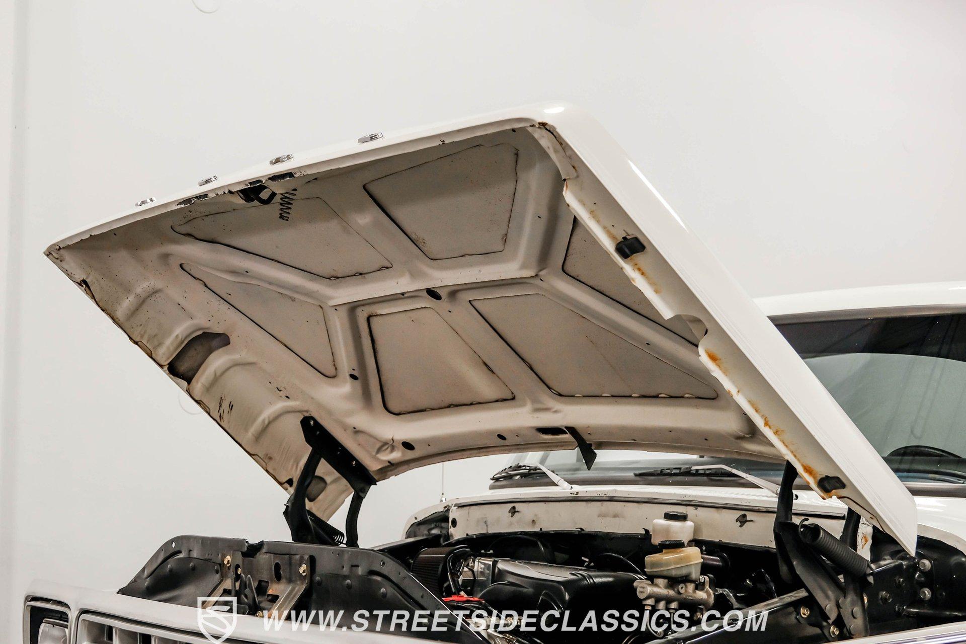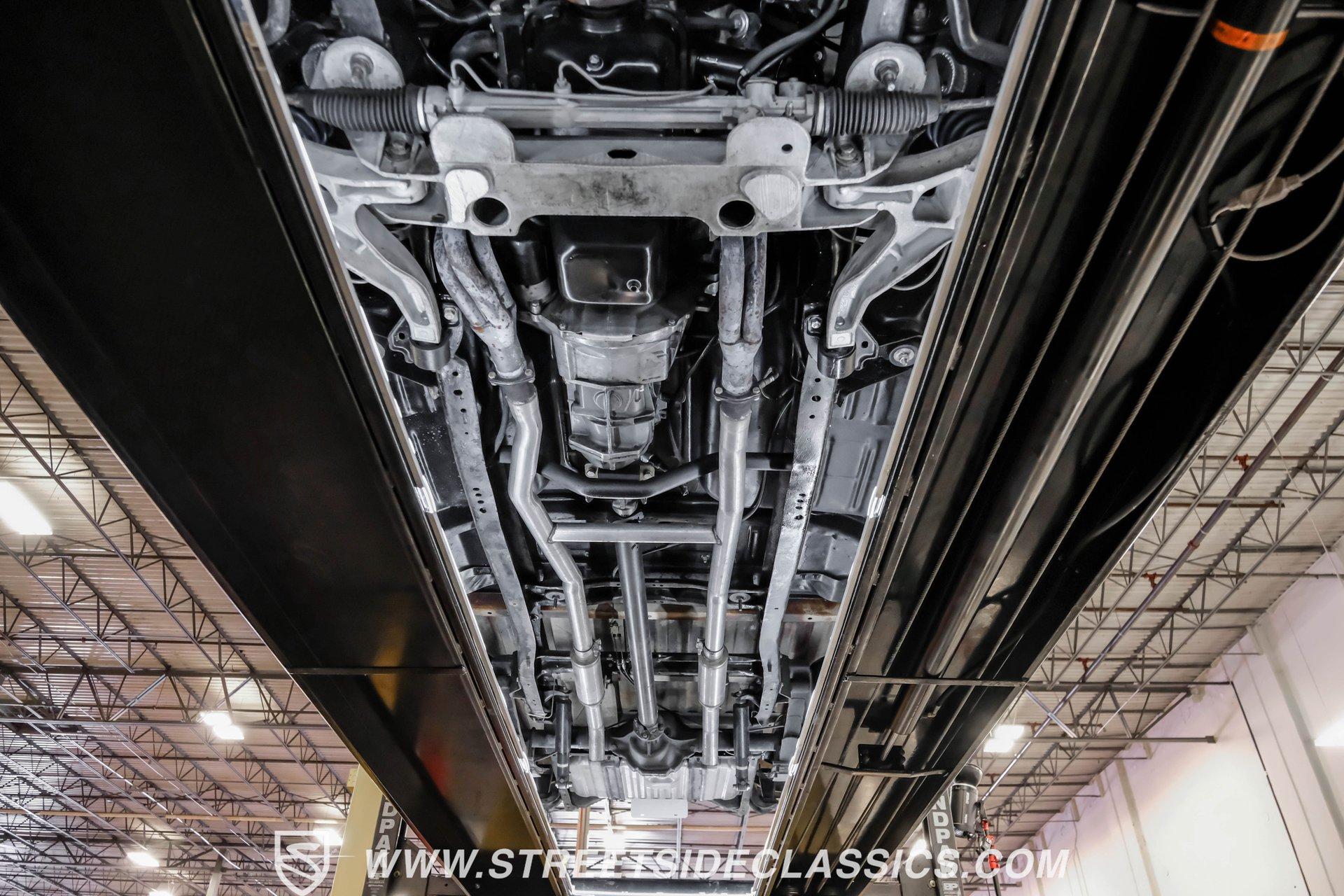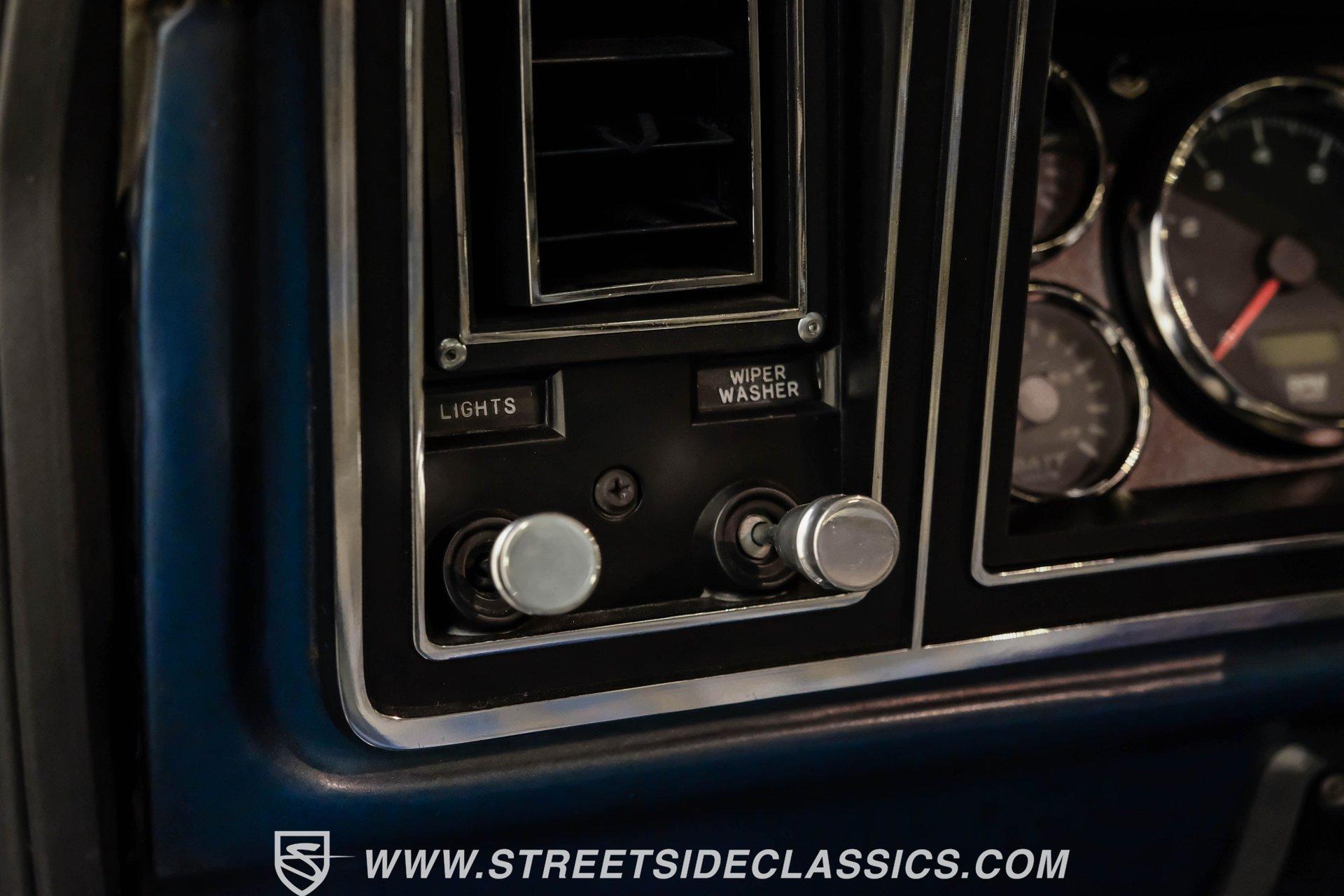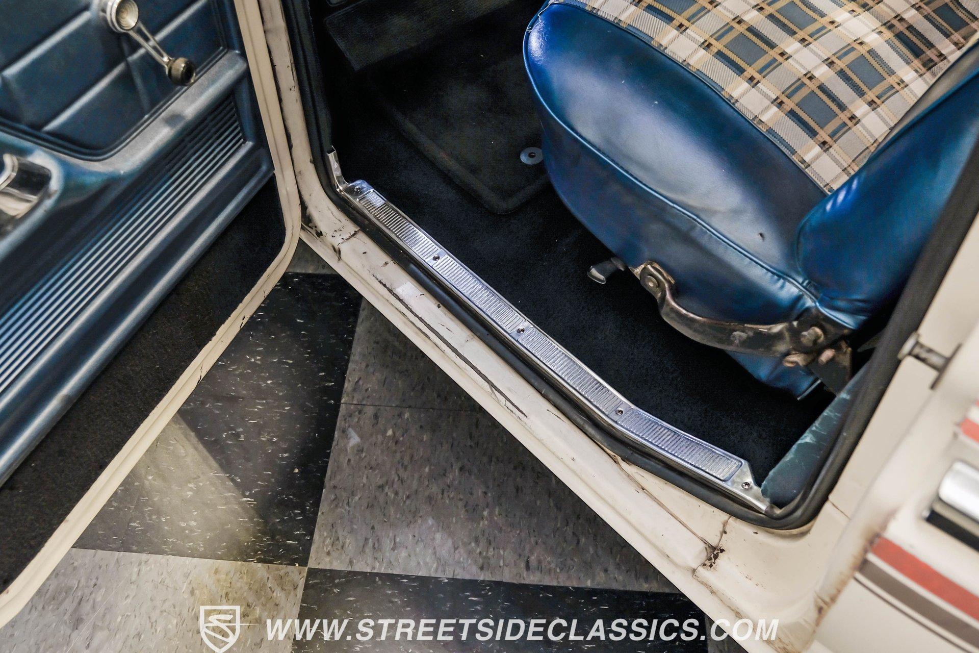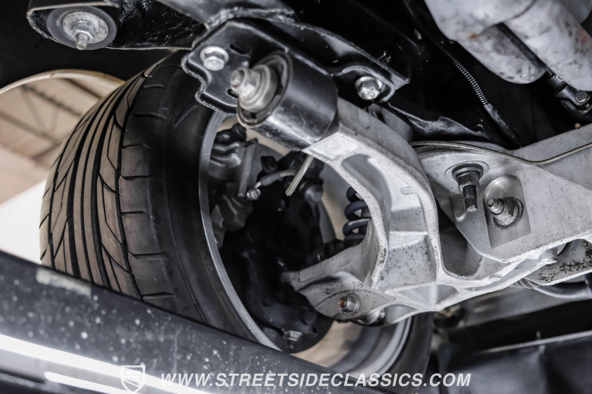 Street-tough and road-ready, this 1979 Ford F-100 Ranger Explorer Restomod is still covered in its original white exterior slashed with orange decal stripes that amp up its attitude. Dropped on a Final-Gen Crown Vic-style front end, this pickup sits low and mean on the pavement. Muscular 18" Aodhan wheels fill the wheel wells, wrapped in fat 275/40ZR18 Nitto rubber up front and even meatier 295/40ZR18 Nittos out back. The short bed layout keeps proportions tight while the patina finish tells stories of miles traveled. Slide across the blue vinyl and plaid bench seat and grip the aftermarket sport wheel mounted on a tilt column. The blue-on-black color scheme throughout the cabin creates a performance vibe with painted blue dash, door panels, and headliner contrasting against fresh black carpets. Custom black-faced gauges light up with blue illumination, giving off a street-machine glow after dark. The aftermarket A/C blows cold while the Hurst shifter stands ready for action between the gears. The fuel-injected 5.0L V8 is mated to a 5-speed manual transmission. The Trick Flow intake manifold gulps air while long tube headers dump exhaust through an H-pipe and MagnaFlow mufflers for a proper muscle truck soundtrack. An aluminum radiator with electric fans keeps things cool under pressure. The suspension setup includes a Crown Vic front end with coilovers and sway bar and rear solid axle with leaf springs and air shocks which plants this truck firmly on the asphalt during aggressive driving. 5.0L V8 Engine With Electronic Fuel Injection 5-Speed Manual Transmission With Hurst Shifter Trick Flow Intake Manifold Long Tube Headers MSD Box Aluminum Radiator With Electric Fans Dual Exhaust With H-Pipe And MagnaFlow Mufflers CPP Hydroboost Power Disc Brakes Crown Vic Front End w/ Coilovers With Sway Bar Solid Axle Rear w/ Leaf Springs and Air Shocks Strange Engineering Rear Shocks American Auto Wire Harness Original White Paint Exterior With Orange Decal Stripes Natural Patina Finish 18" Aodhan Wheels 275/40ZR18 Front, 295/40ZR18 Rear Nitto Tires Short Bed Configuration Blue And Plaid Bench Seat With Armrest Console Aftermarket Sport Steering Wheel On Tilt Column Aftermarket Black Face Gauges With Blue Illumination Blue Painted Dash, Door Panels, And Headliner Fresh Black Carpets Aftermarket Air Conditioning Muscle truck style with hot rod attitude, this 1979 Ford F-100 Ranger Explorer Restomod brings power and performance in equal measure. Call today!