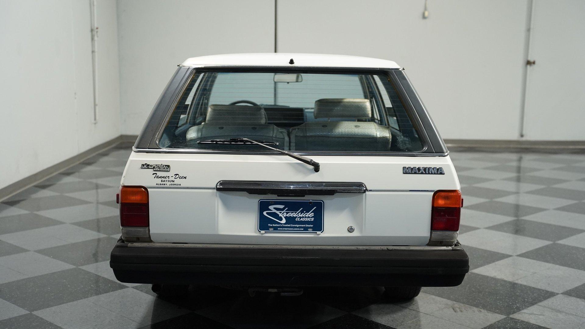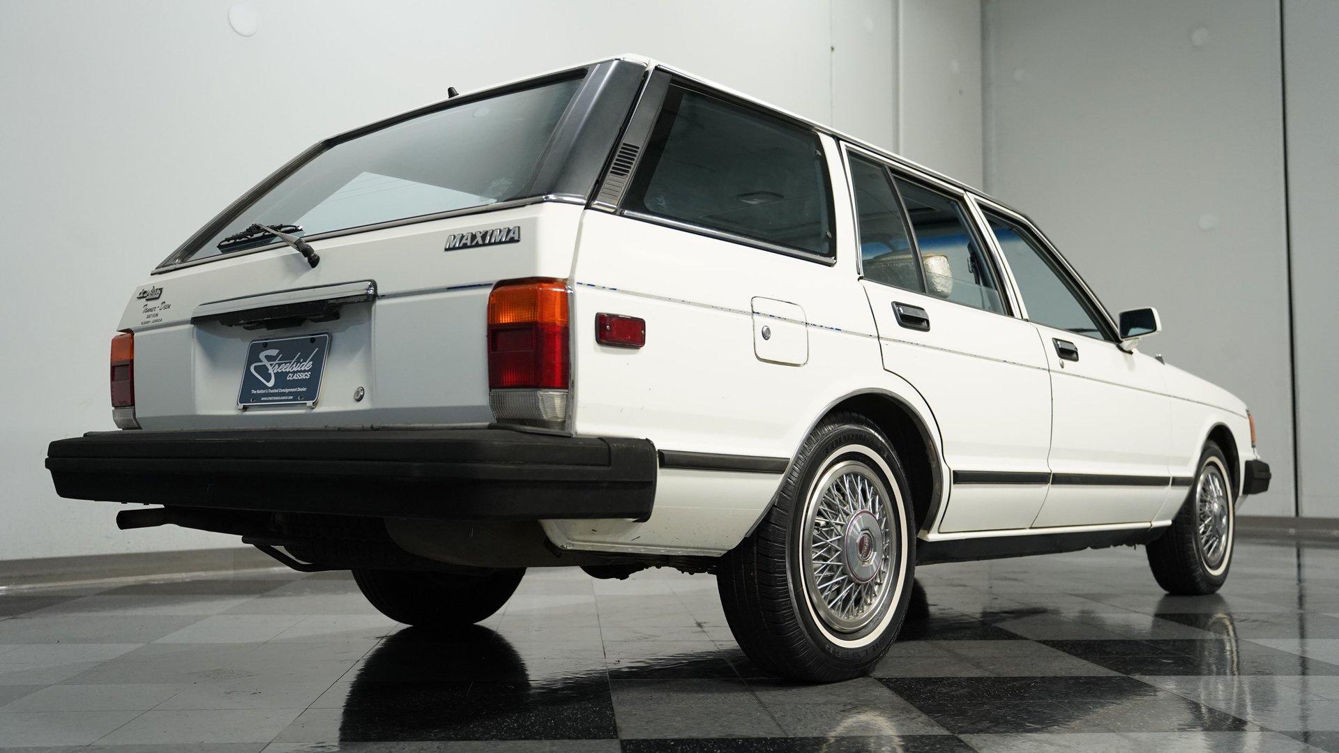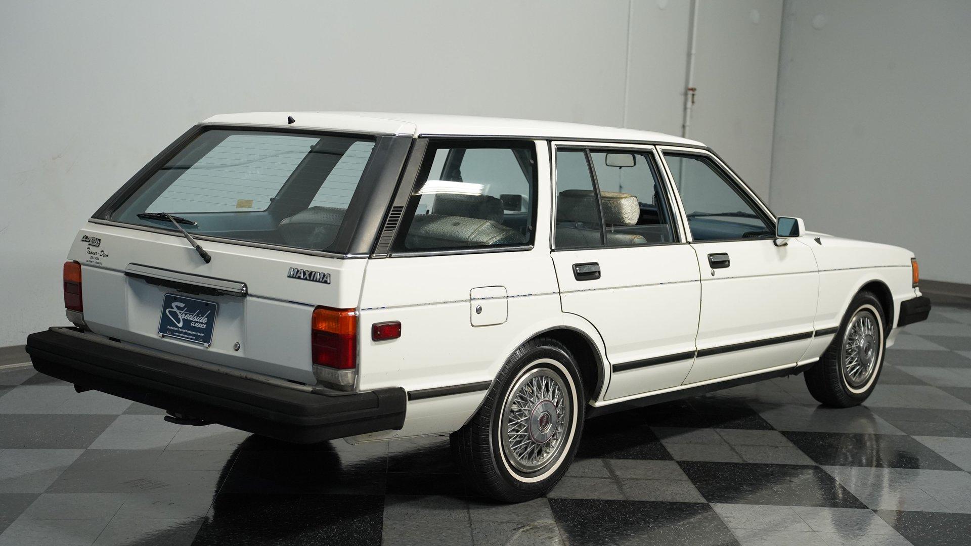 From day one, this 1982 Datsun Maxima GL Wagon has remained in the same family - a mother-son legacy spanning four decades. Finished in white with distinctive blue painted stripes, this long-roof Maxima embodies Japanese practicality with unexpected flair. The 14-inch aluminum hub caps maintain original specifications, wrapped in 195/75R14 tires that connect this wagon to the road. A factory sunroof adds an unexpected touch of luxury to this utilitarian design. With just 113,640 actual miles on the clock, this single-family Japanese wagon shows remarkably low use for its age. The light blue cloth interior creates a period-correct cabin experience with unexpected space efficiency. Bucket seats with a console arrangement offer front occupants individual comfort zones, while rear passengers enjoy ample room. A technological marvel for its day, this Maxima includes the factory voice warning system that put Datsun at the cutting edge of automotive technology. The power amenities package includes windows, locks, and mirrors - impressive for an early 80s import. Climate control comes via the factory air conditioning system, while cruise control makes highway journeys more relaxed. Mechanical muscle comes from a 2.4L inline-six engine, a layout prized for inherent balance and smooth operation. The L24E motor pairs with a three-speed automatic transmission driving the rear wheels in classic fashion. The suspension configuration features MacPherson struts up front with leaf springs and shocks managing the rear axle. Power steering reduces effort during low-speed maneuvers, and the braking system uses power disc brakes up front for effective stopping power. Fuel injection replaces carburetors found on earlier models, improving cold-start reliability and overall drivability. HIGHLIGHTS: 2.4L I6 Engine (L24E) 3 Speed Automatic Transmission Fuel Injection Power Steering Power Disc Brakes MacPherson Strut Front Suspension Leaf Springs With Shocks Rear Suspension White Exterior With Blue Stripes 14" Wheels With Aluminum Hub Caps 195/75R14 Tires Sunroof Light Blue Interior With Bucket Seats Console Power Windows, Locks Power Mirrors Air Conditioning Cruise Control AM/FM Cassette Player One Family Ownership Low Original Miles This 1982 Datsun Maxima GL Wagon presents Japanese engineering during a pivotal moment when fuel efficiency became a priority. With its straight-six power, complete comfort features, and practical wagon layout, this single-family Maxima GL delivers authentic 80s import character with just 113,640 miles on the clock. Call today!
