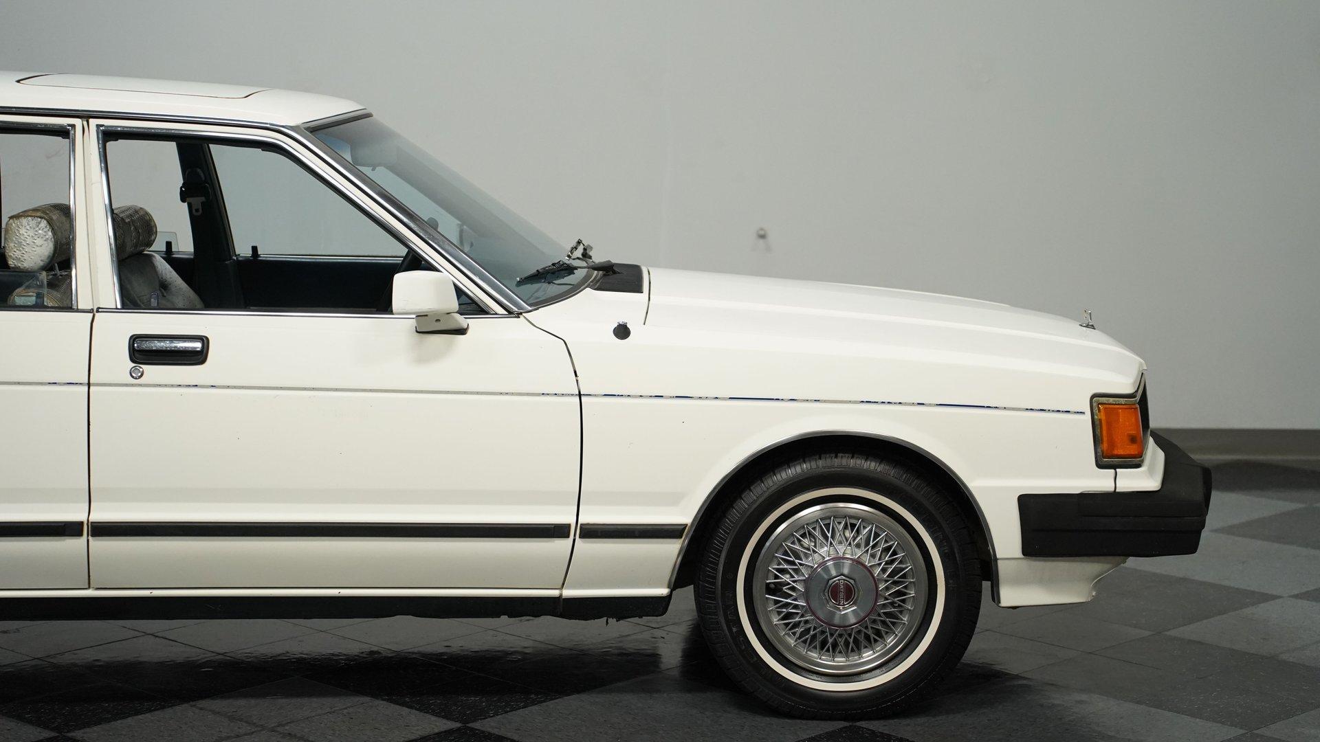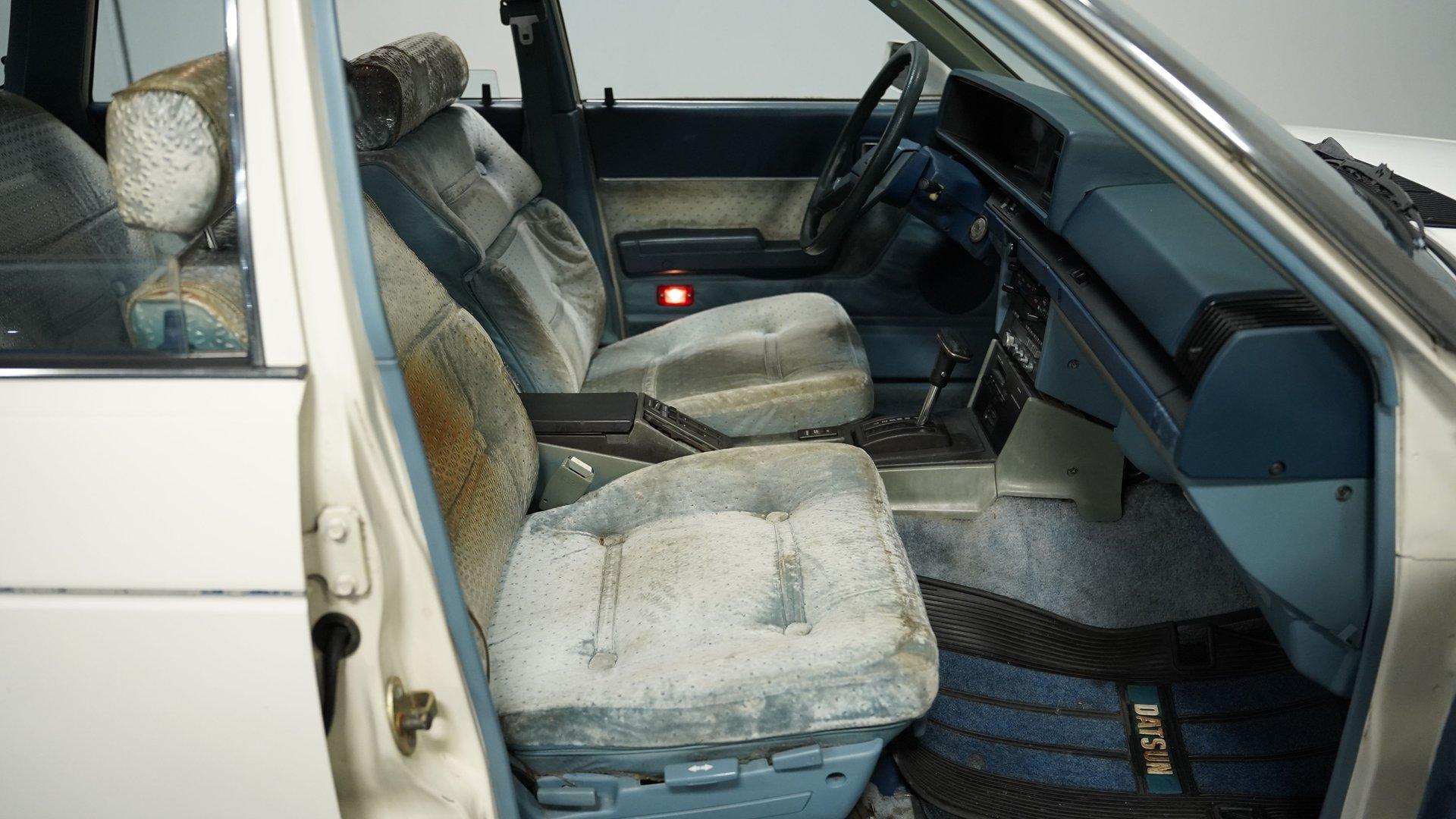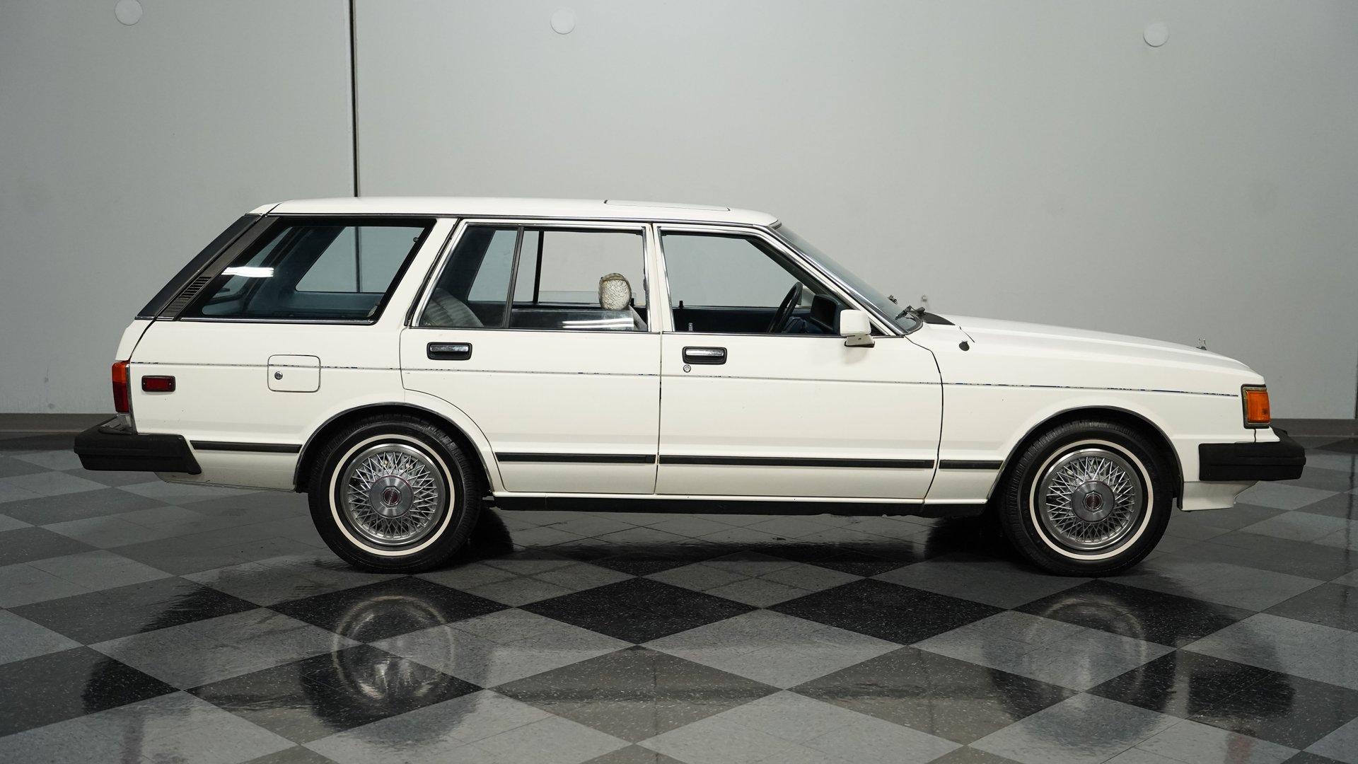 From day one, this 1982 Datsun Maxima GL Wagon has remained in the same family - a mother-son legacy spanning four decades. Finished in white with distinctive blue painted stripes, this long-roof Maxima embodies Japanese practicality with unexpected flair. The 14-inch aluminum hub caps maintain original specifications, wrapped in 195/75R14 tires that connect this wagon to the road. A factory sunroof adds an unexpected touch of luxury to this utilitarian design. With just 113,640 actual miles on the clock, this single-family Japanese wagon shows remarkably low use for its age. The light blue cloth interior creates a period-correct cabin experience with unexpected space efficiency. Bucket seats with a console arrangement offer front occupants individual comfort zones, while rear passengers enjoy ample room. A technological marvel for its day, this Maxima includes the factory voice warning system that put Datsun at the cutting edge of automotive technology. The power amenities package includes windows, locks, and mirrors - impressive for an early 80s import. Climate control comes via the factory air conditioning system, while cruise control makes highway journeys more relaxed. Mechanical muscle comes from a 2.4L inline-six engine, a layout prized for inherent balance and smooth operation. The L24E motor pairs with a three-speed automatic transmission driving the rear wheels in classic fashion. The suspension configuration features MacPherson struts up front with leaf springs and shocks managing the rear axle. Power steering reduces effort during low-speed maneuvers, and the braking system uses power disc brakes up front for effective stopping power. Fuel injection replaces carburetors found on earlier models, improving cold-start reliability and overall drivability. HIGHLIGHTS: 2.4L I6 Engine (L24E) 3 Speed Automatic Transmission Fuel Injection Power Steering Power Disc Brakes MacPherson Strut Front Suspension Leaf Springs With Shocks Rear Suspension White Exterior With Blue Stripes 14" Wheels With Aluminum Hub Caps 195/75R14 Tires Sunroof Light Blue Interior With Bucket Seats Console Power Windows, Locks Power Mirrors Air Conditioning Cruise Control AM/FM Cassette Player One Family Ownership Low Original Miles This 1982 Datsun Maxima GL Wagon presents Japanese engineering during a pivotal moment when fuel efficiency became a priority. With its straight-six power, complete comfort features, and practical wagon layout, this single-family Maxima GL delivers authentic 80s import character with just 113,640 miles on the clock. Call today!