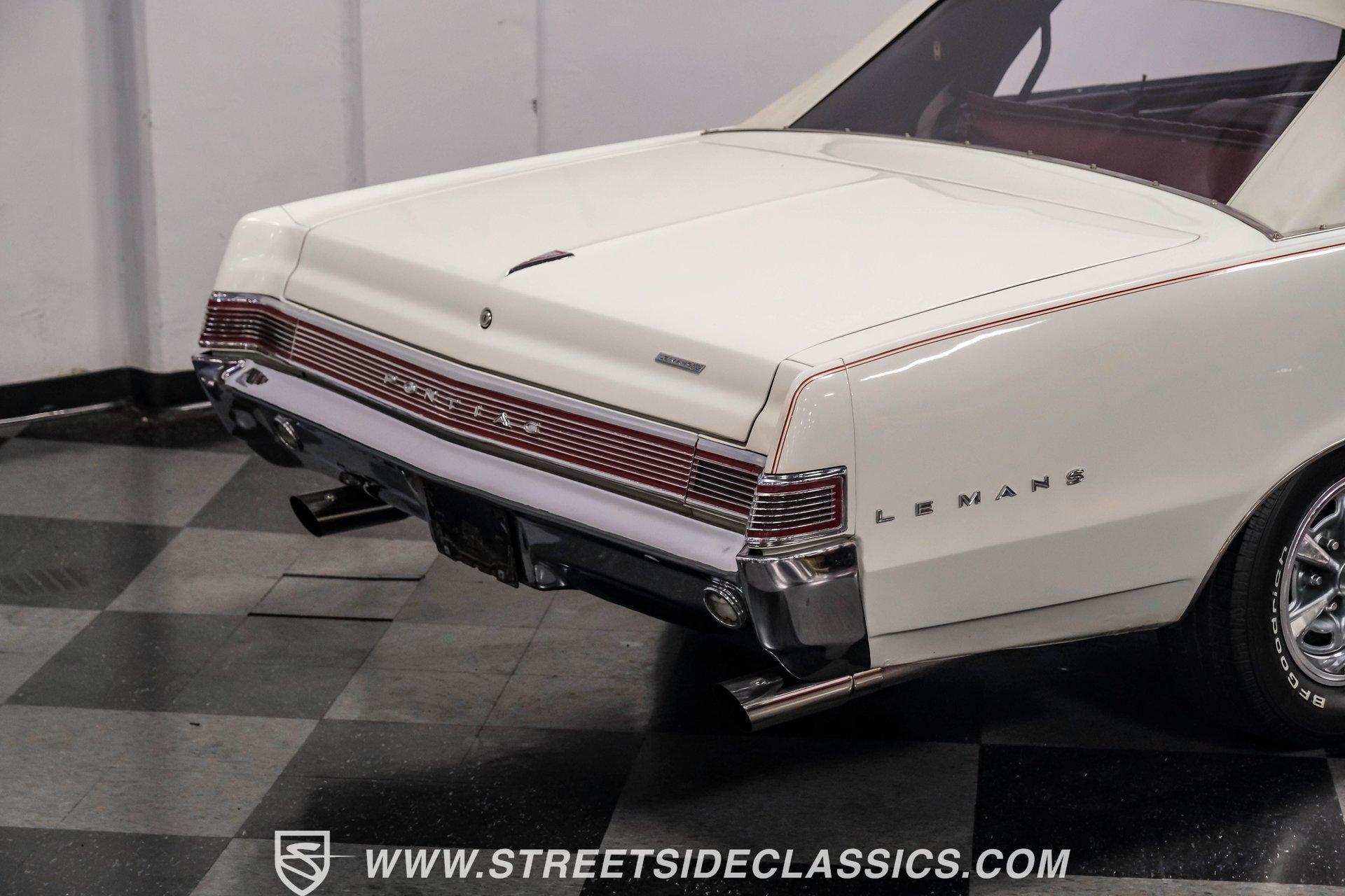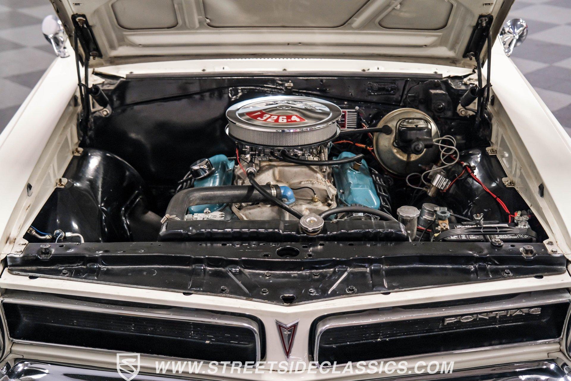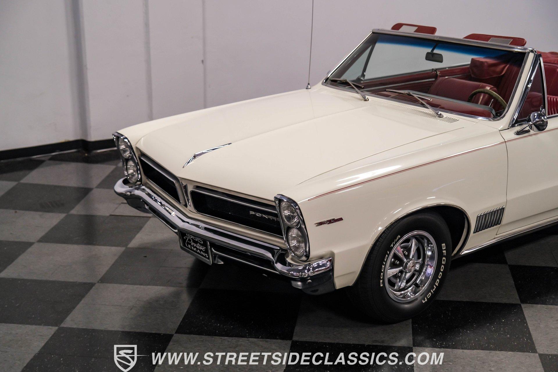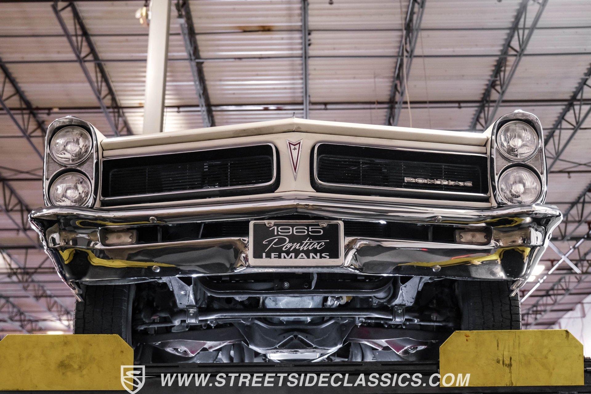 California drop-tops like the mid-sixties Pontiac have always drawn attention. Finished in factory Cameo Ivory, this 1965 Pontiac LeMans Convertible presents classic muscle car styling with clean proportions. The white vinyl convertible top operates with power assistance and includes a matching boot cover. Chrome accents frame the distinctive split grille and taillight housings while 14-inch wheels wrapped in 225/70R14 BFG tires give a proper stance. Dual exhaust with cutouts adds an aggressive look from the rear view. Red vinyl covers the interior of this LeMans, giving a strong visual against the ivory exterior. Bucket seats sit on either side of a factory center console with floor shifter for a muscle car layout. Instrumentation includes the stock gauge cluster plus additional Auto-Gage units mounted under the dash displaying oil pressure, voltage, and temperature readings. The cabin features a RetroSound radio, air conditioning, power convertible top, and an anti-theft system. Every component maintains the period-correct appearance while adding modern function to this classic Pontiac. A 326 cubic inch V8 engine powers this LeMans convertible. The motor features an Edelbrock intake manifold topped with a four-barrel carburetor. Long tube headers lead to a dual exhaust system with X-pipe and cutouts. A two-speed Powerglide automatic transmission pairs with this V8 setup. The front disc brakes, power steering, and suspension with coil springs, shocks, and sway bars create a solid mechanical foundation. Spring-assisted rear shocks improve the ride quality. An electric cooling fan and MSD ignition round out the mechanical upgrades on this classic Pontiac. HIGHLIGHTS: 326 V8 Engine Two-Speed Powerglide Automatic Transmission Edelbrock Intake Manifold Edelbrock Four-Barrel Carburetor Long Tube Headers Dual Exhaust With X-Pipe And Cutouts Electric Cooling Fan MSD Ignition Box Power Brakes with Front Disc Sway Bars Front And Rear 10-Bolt Rear Axle Cameo Ivory Paint White Vinyl Power Convertible Top Convertible Boot Cover 14-Inch Wheels In 225/70R14 BFG Tires Red Interior With Bucket Seats And Console Floor Shifter Power Steering RetroSound Radio Air Conditioning Auto-Gage Under-Dash Gauges Anti-Theft System California Car V8 power and open-air cruising, this 1965 Pontiac LeMans Convertible offers both with its ivory-over-red color scheme, strong mechanical setup, and comfortable interior. A perfect classic for sunny weekend drives and the top down. Call today!