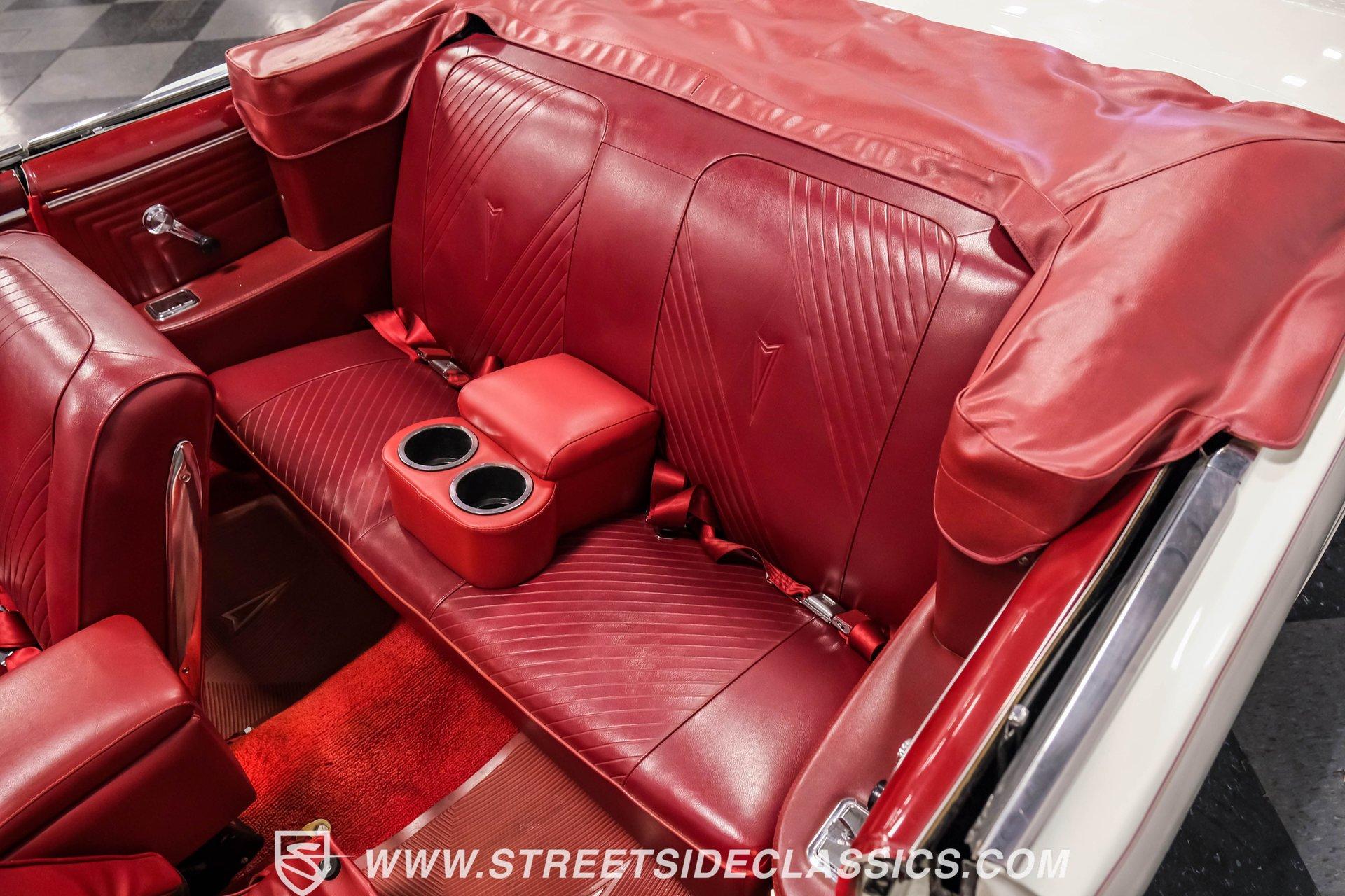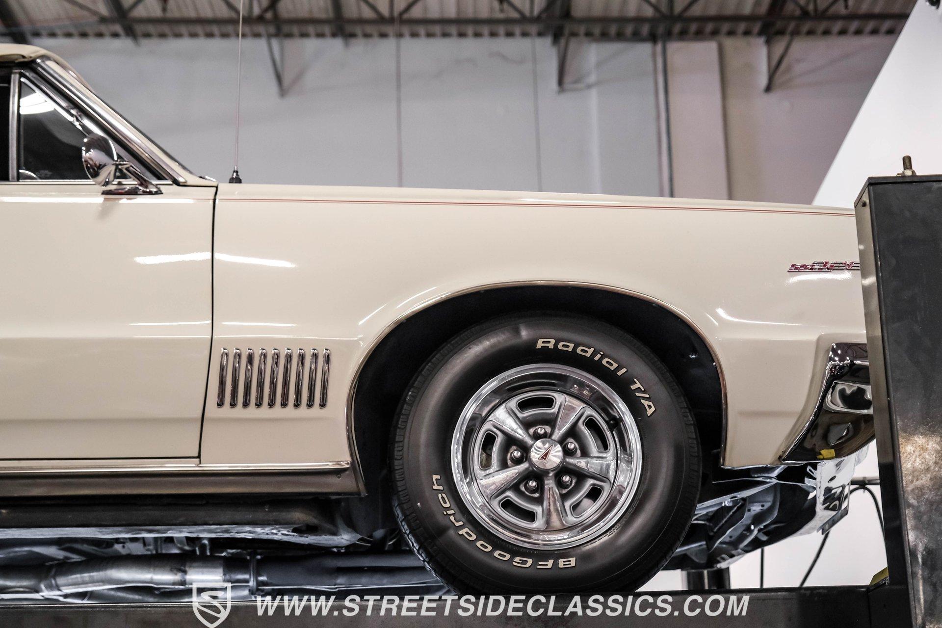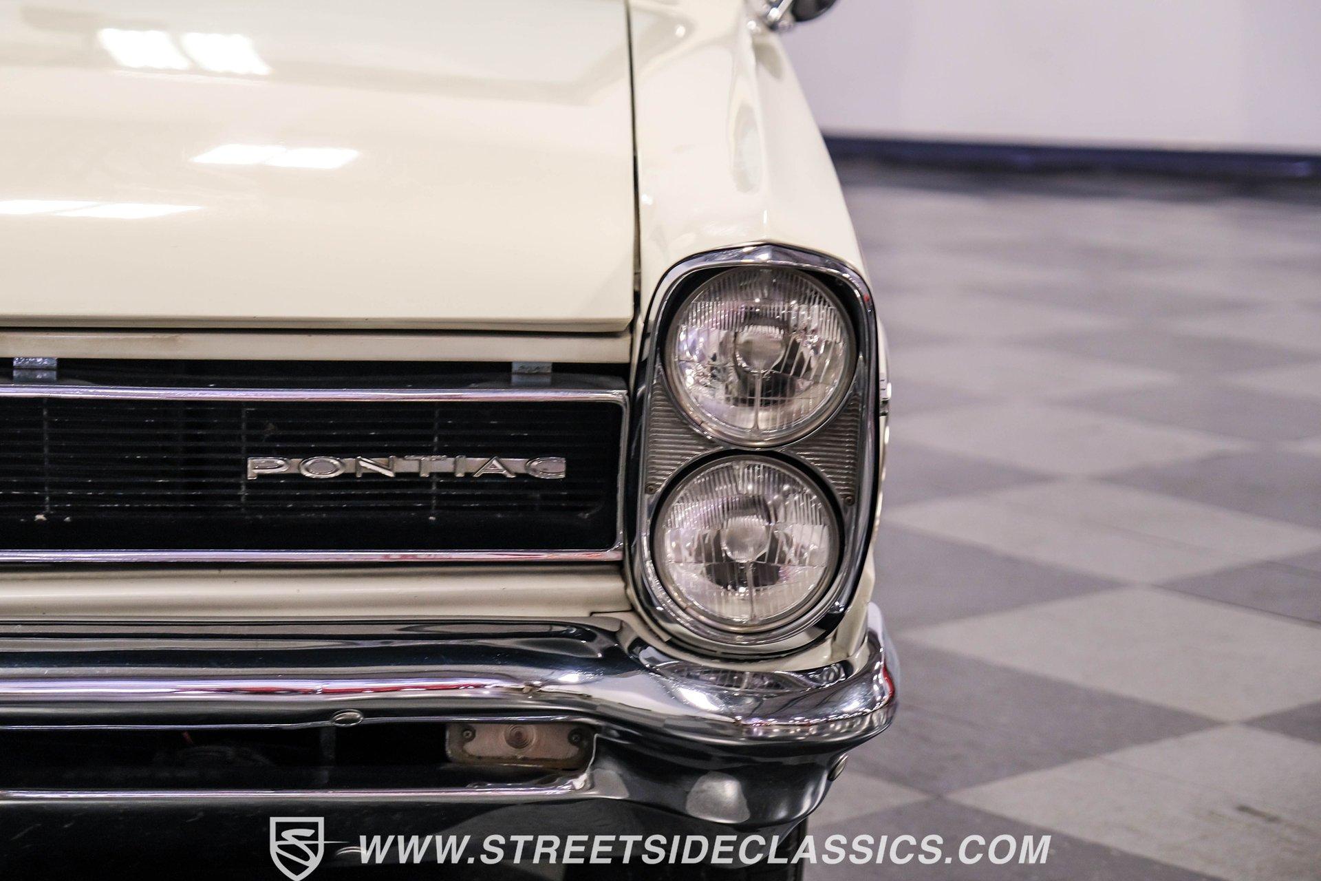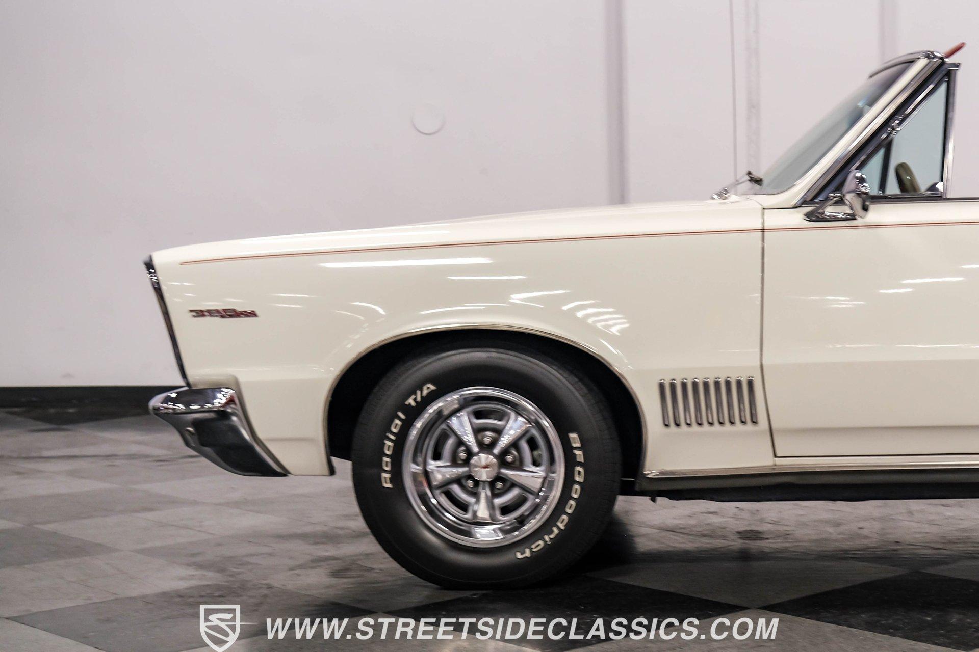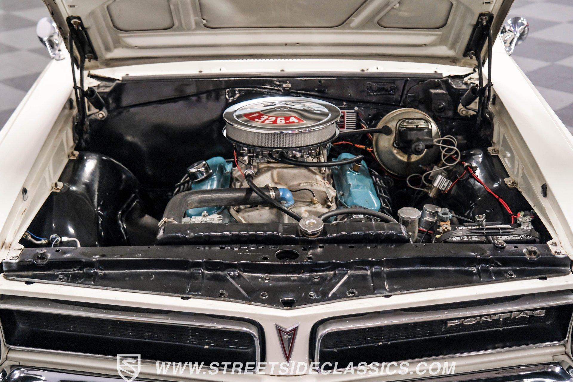 California drop-tops like the mid-sixties Pontiac have always drawn attention. Finished in factory Cameo Ivory, this 1965 Pontiac LeMans Convertible presents classic muscle car styling with clean proportions. The white vinyl convertible top operates with power assistance and includes a matching boot cover. Chrome accents frame the distinctive split grille and taillight housings while 14-inch wheels wrapped in 225/70R14 BFG tires give a proper stance. Dual exhaust with cutouts adds an aggressive look from the rear view. Red vinyl covers the interior of this LeMans, giving a strong visual against the ivory exterior. Bucket seats sit on either side of a factory center console with floor shifter for a muscle car layout. Instrumentation includes the stock gauge cluster plus additional Auto-Gage units mounted under the dash displaying oil pressure, voltage, and temperature readings. The cabin features a RetroSound radio, air conditioning, power convertible top, and an anti-theft system. Every component maintains the period-correct appearance while adding modern function to this classic Pontiac. A 326 cubic inch V8 engine powers this LeMans convertible. The motor features an Edelbrock intake manifold topped with a four-barrel carburetor. Long tube headers lead to a dual exhaust system with X-pipe and cutouts. A two-speed Powerglide automatic transmission pairs with this V8 setup. The front disc brakes, power steering, and suspension with coil springs, shocks, and sway bars create a solid mechanical foundation. Spring-assisted rear shocks improve the ride quality. An electric cooling fan and MSD ignition round out the mechanical upgrades on this classic Pontiac. HIGHLIGHTS: 326 V8 Engine Two-Speed Powerglide Automatic Transmission Edelbrock Intake Manifold Edelbrock Four-Barrel Carburetor Long Tube Headers Dual Exhaust With X-Pipe And Cutouts Electric Cooling Fan MSD Ignition Box Power Brakes with Front Disc Sway Bars Front And Rear 10-Bolt Rear Axle Cameo Ivory Paint White Vinyl Power Convertible Top Convertible Boot Cover 14-Inch Wheels In 225/70R14 BFG Tires Red Interior With Bucket Seats And Console Floor Shifter Power Steering RetroSound Radio Air Conditioning Auto-Gage Under-Dash Gauges Anti-Theft System California Car V8 power and open-air cruising, this 1965 Pontiac LeMans Convertible offers both with its ivory-over-red color scheme, strong mechanical setup, and comfortable interior. A perfect classic for sunny weekend drives and the top down. Call today!