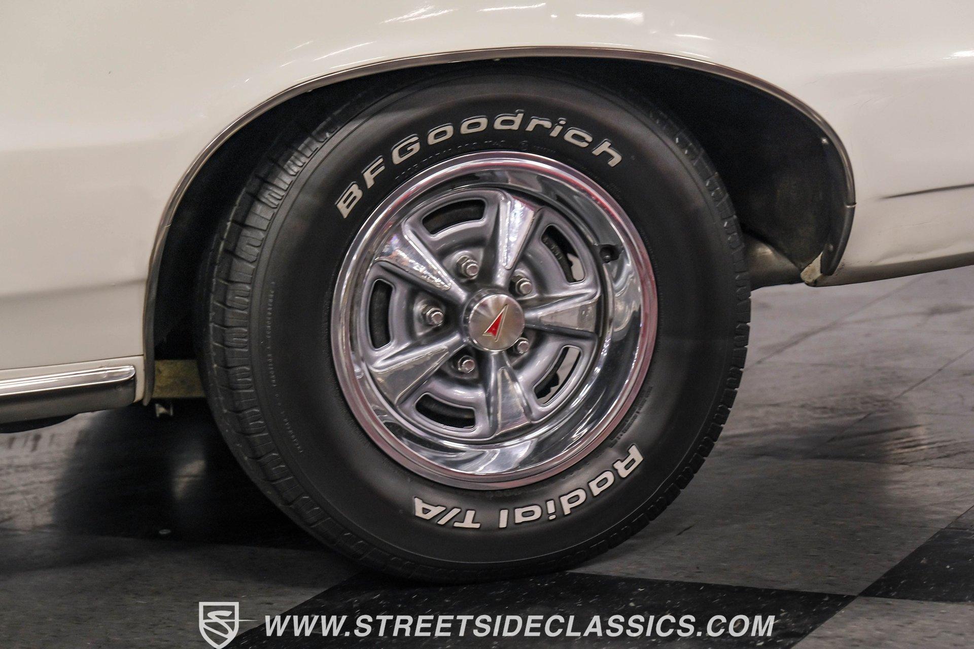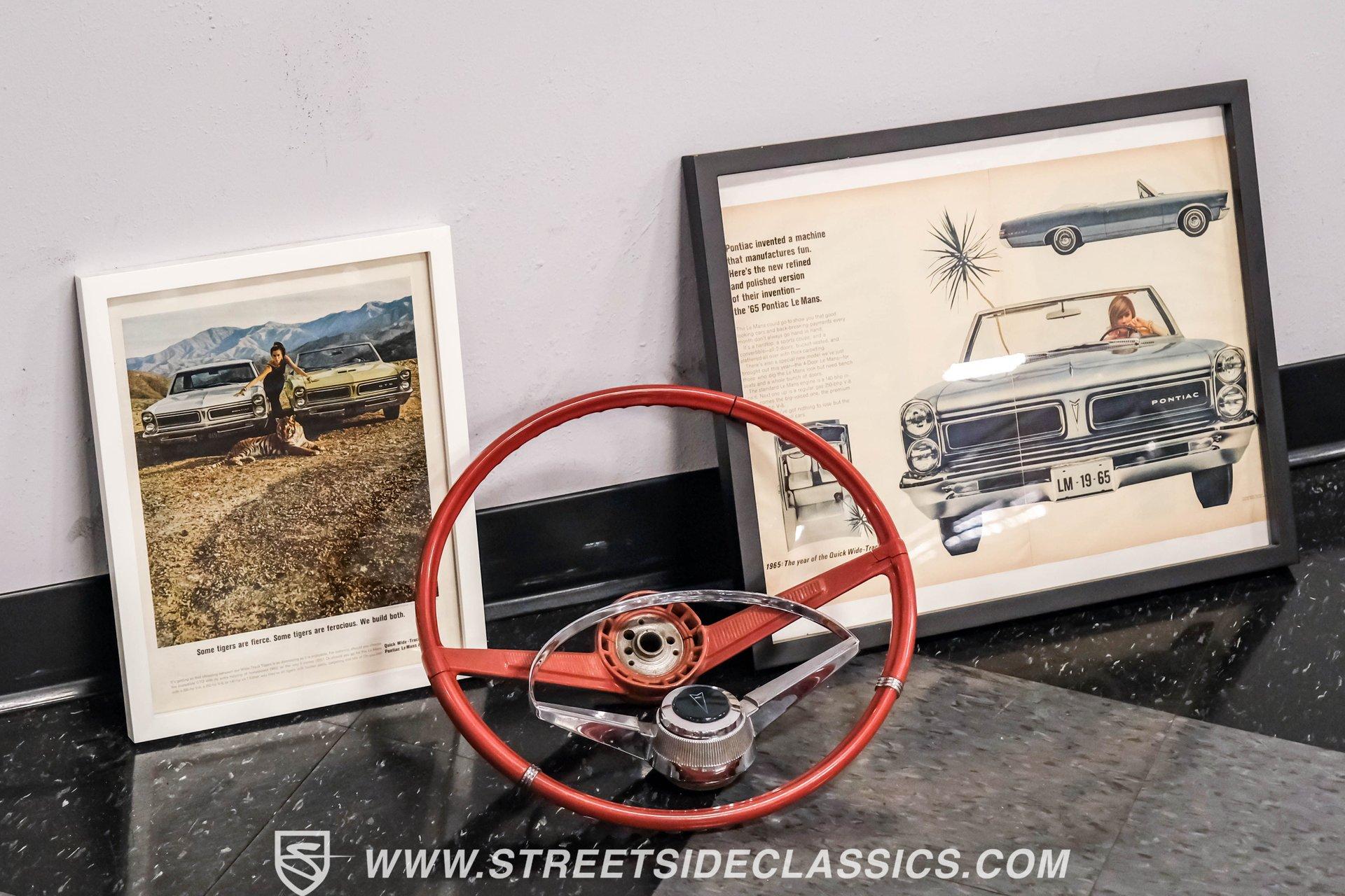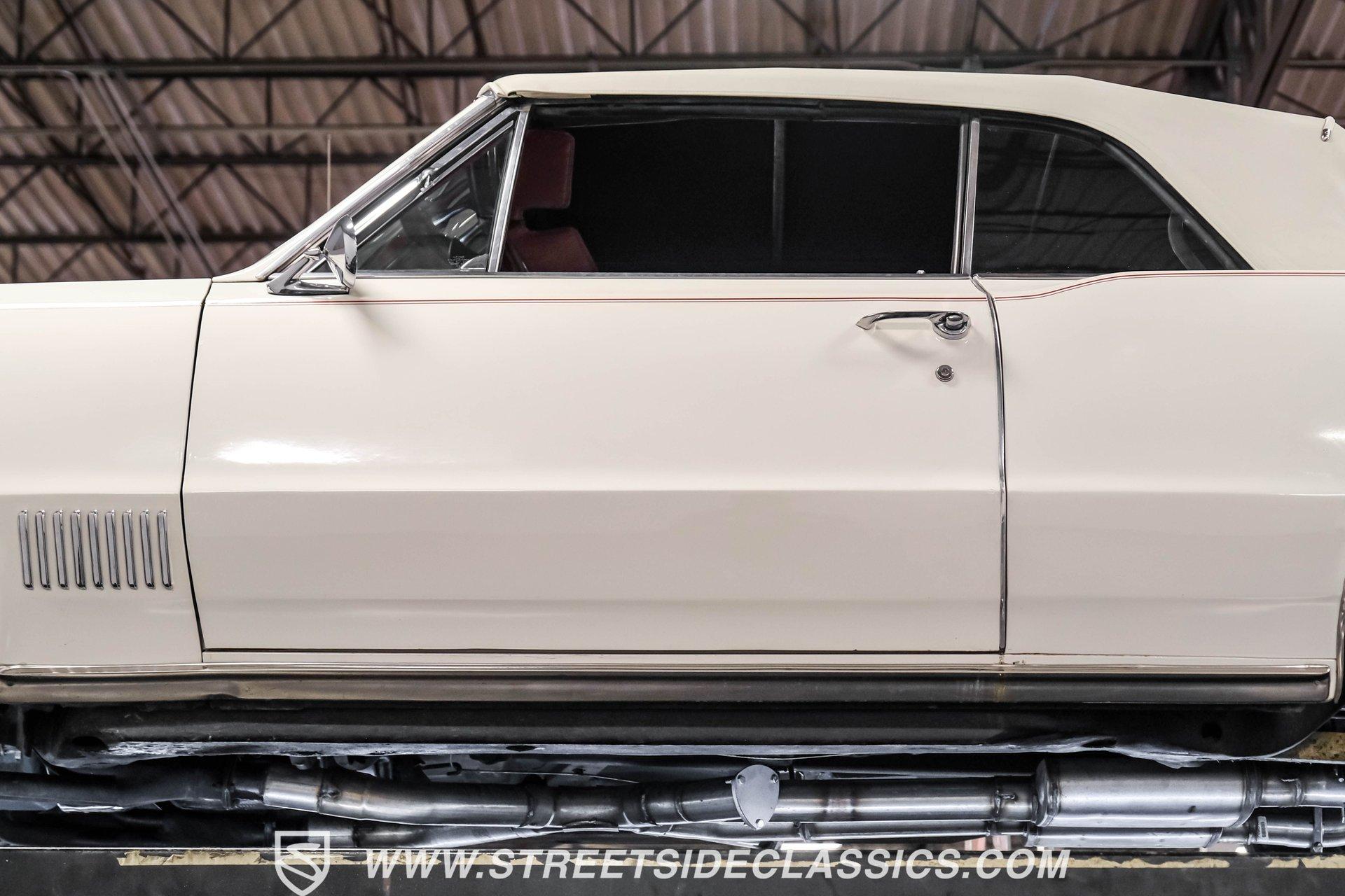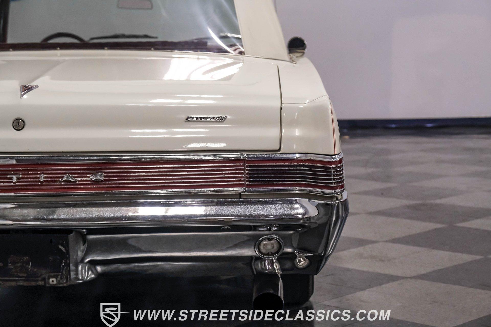 California drop-tops like the mid-sixties Pontiac have always drawn attention. Finished in factory Cameo Ivory, this 1965 Pontiac LeMans Convertible presents classic muscle car styling with clean proportions. The white vinyl convertible top operates with power assistance and includes a matching boot cover. Chrome accents frame the distinctive split grille and taillight housings while 14-inch wheels wrapped in 225/70R14 BFG tires give a proper stance. Dual exhaust with cutouts adds an aggressive look from the rear view. Red vinyl covers the interior of this LeMans, giving a strong visual against the ivory exterior. Bucket seats sit on either side of a factory center console with floor shifter for a muscle car layout. Instrumentation includes the stock gauge cluster plus additional Auto-Gage units mounted under the dash displaying oil pressure, voltage, and temperature readings. The cabin features a RetroSound radio, air conditioning, power convertible top, and an anti-theft system. Every component maintains the period-correct appearance while adding modern function to this classic Pontiac. A 326 cubic inch V8 engine powers this LeMans convertible. The motor features an Edelbrock intake manifold topped with a four-barrel carburetor. Long tube headers lead to a dual exhaust system with X-pipe and cutouts. A two-speed Powerglide automatic transmission pairs with this V8 setup. The front disc brakes, power steering, and suspension with coil springs, shocks, and sway bars create a solid mechanical foundation. Spring-assisted rear shocks improve the ride quality. An electric cooling fan and MSD ignition round out the mechanical upgrades on this classic Pontiac. HIGHLIGHTS: 326 V8 Engine Two-Speed Powerglide Automatic Transmission Edelbrock Intake Manifold Edelbrock Four-Barrel Carburetor Long Tube Headers Dual Exhaust With X-Pipe And Cutouts Electric Cooling Fan MSD Ignition Box Power Brakes with Front Disc Sway Bars Front And Rear 10-Bolt Rear Axle Cameo Ivory Paint White Vinyl Power Convertible Top Convertible Boot Cover 14-Inch Wheels In 225/70R14 BFG Tires Red Interior With Bucket Seats And Console Floor Shifter Power Steering RetroSound Radio Air Conditioning Auto-Gage Under-Dash Gauges Anti-Theft System California Car V8 power and open-air cruising, this 1965 Pontiac LeMans Convertible offers both with its ivory-over-red color scheme, strong mechanical setup, and comfortable interior. A perfect classic for sunny weekend drives and the top down. Call today!