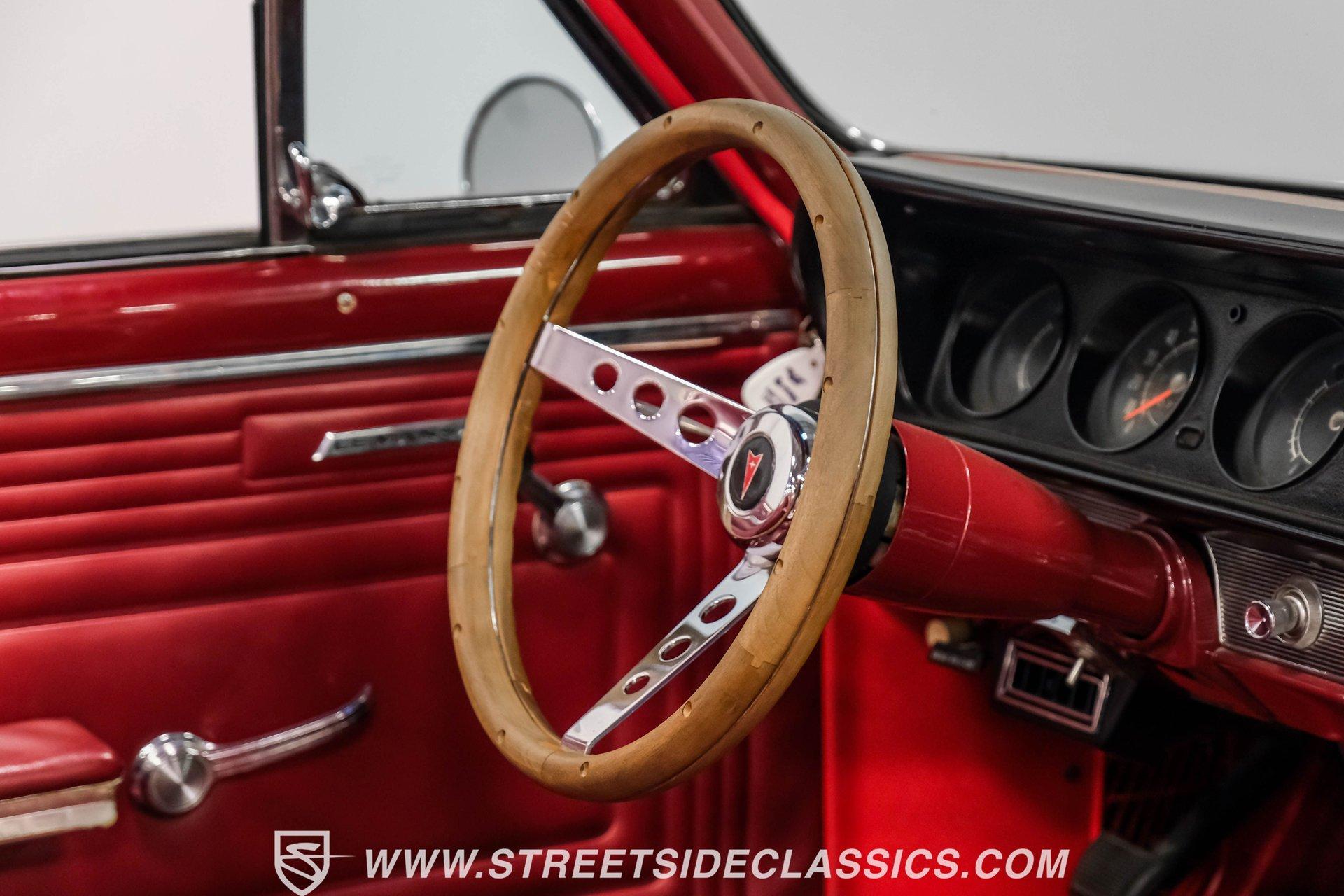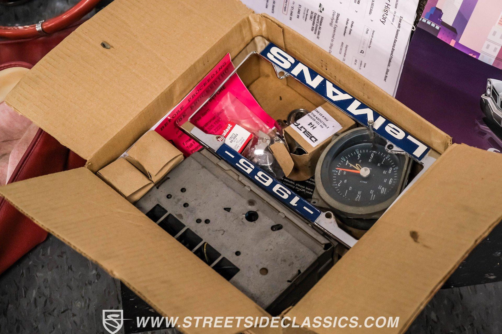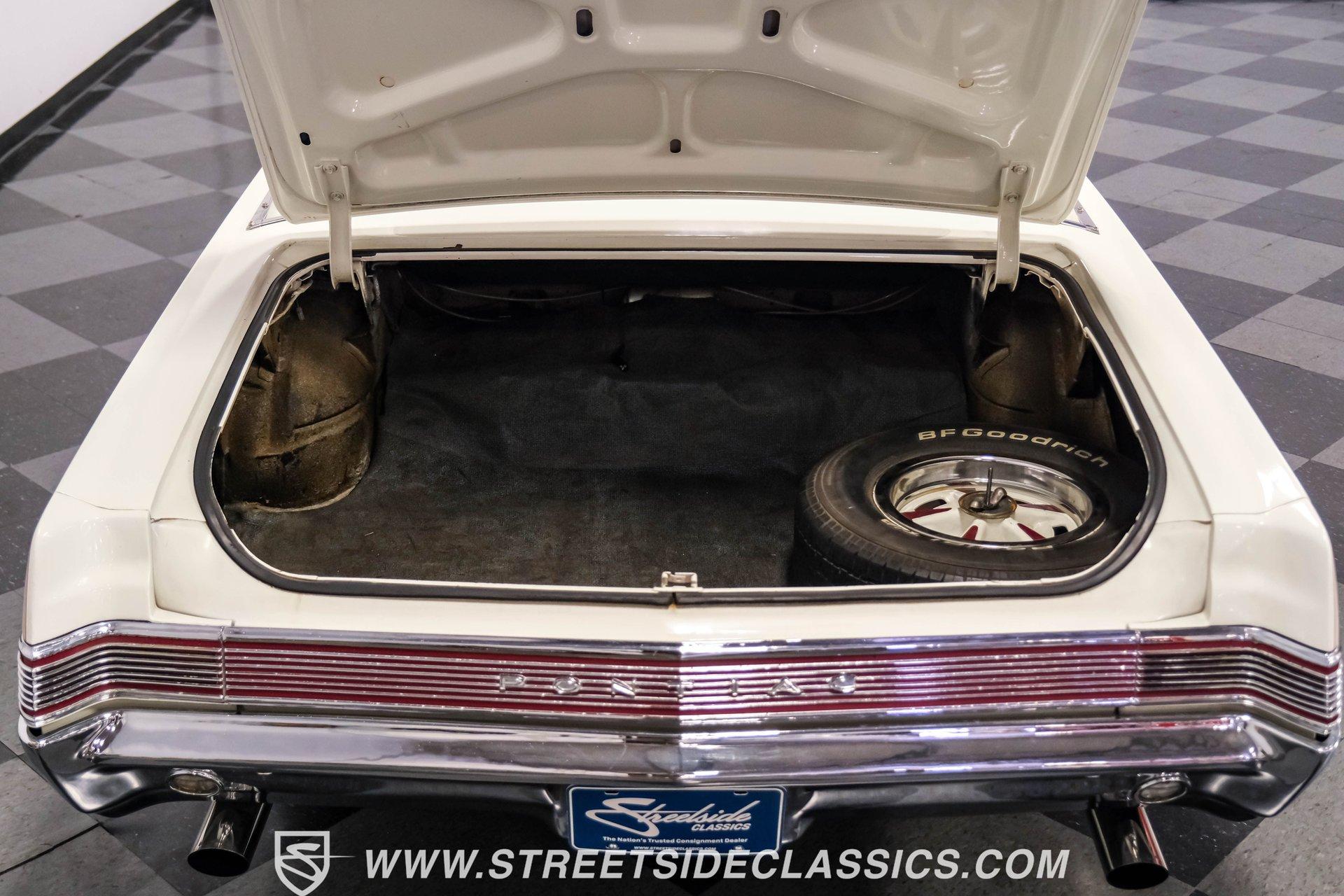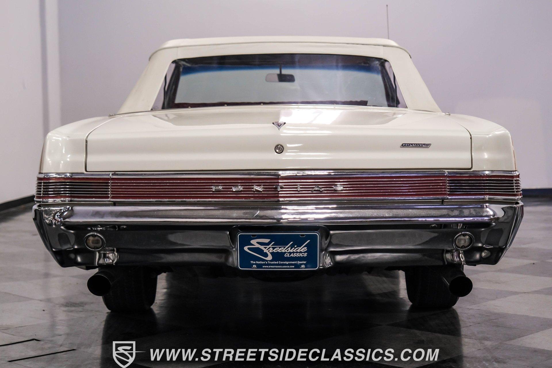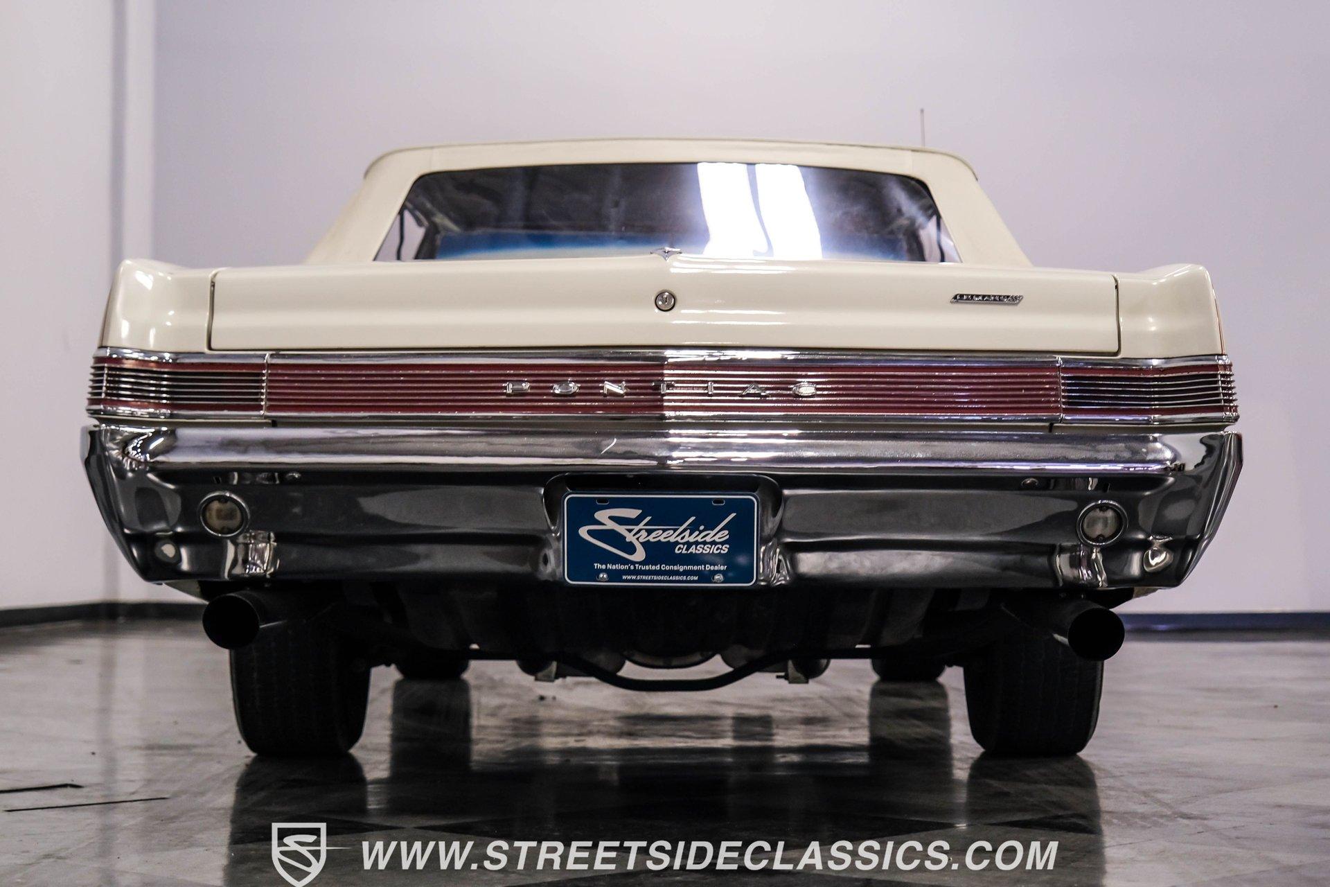 California drop-tops like the mid-sixties Pontiac have always drawn attention. Finished in factory Cameo Ivory, this 1965 Pontiac LeMans Convertible presents classic muscle car styling with clean proportions. The white vinyl convertible top operates with power assistance and includes a matching boot cover. Chrome accents frame the distinctive split grille and taillight housings while 14-inch wheels wrapped in 225/70R14 BFG tires give a proper stance. Dual exhaust with cutouts adds an aggressive look from the rear view. Red vinyl covers the interior of this LeMans, giving a strong visual against the ivory exterior. Bucket seats sit on either side of a factory center console with floor shifter for a muscle car layout. Instrumentation includes the stock gauge cluster plus additional Auto-Gage units mounted under the dash displaying oil pressure, voltage, and temperature readings. The cabin features a RetroSound radio, air conditioning, power convertible top, and an anti-theft system. Every component maintains the period-correct appearance while adding modern function to this classic Pontiac. A 326 cubic inch V8 engine powers this LeMans convertible. The motor features an Edelbrock intake manifold topped with a four-barrel carburetor. Long tube headers lead to a dual exhaust system with X-pipe and cutouts. A two-speed Powerglide automatic transmission pairs with this V8 setup. The front disc brakes, power steering, and suspension with coil springs, shocks, and sway bars create a solid mechanical foundation. Spring-assisted rear shocks improve the ride quality. An electric cooling fan and MSD ignition round out the mechanical upgrades on this classic Pontiac. HIGHLIGHTS: 326 V8 Engine Two-Speed Powerglide Automatic Transmission Edelbrock Intake Manifold Edelbrock Four-Barrel Carburetor Long Tube Headers Dual Exhaust With X-Pipe And Cutouts Electric Cooling Fan MSD Ignition Box Power Brakes with Front Disc Sway Bars Front And Rear 10-Bolt Rear Axle Cameo Ivory Paint White Vinyl Power Convertible Top Convertible Boot Cover 14-Inch Wheels In 225/70R14 BFG Tires Red Interior With Bucket Seats And Console Floor Shifter Power Steering RetroSound Radio Air Conditioning Auto-Gage Under-Dash Gauges Anti-Theft System California Car V8 power and open-air cruising, this 1965 Pontiac LeMans Convertible offers both with its ivory-over-red color scheme, strong mechanical setup, and comfortable interior. A perfect classic for sunny weekend drives and the top down. Call today!