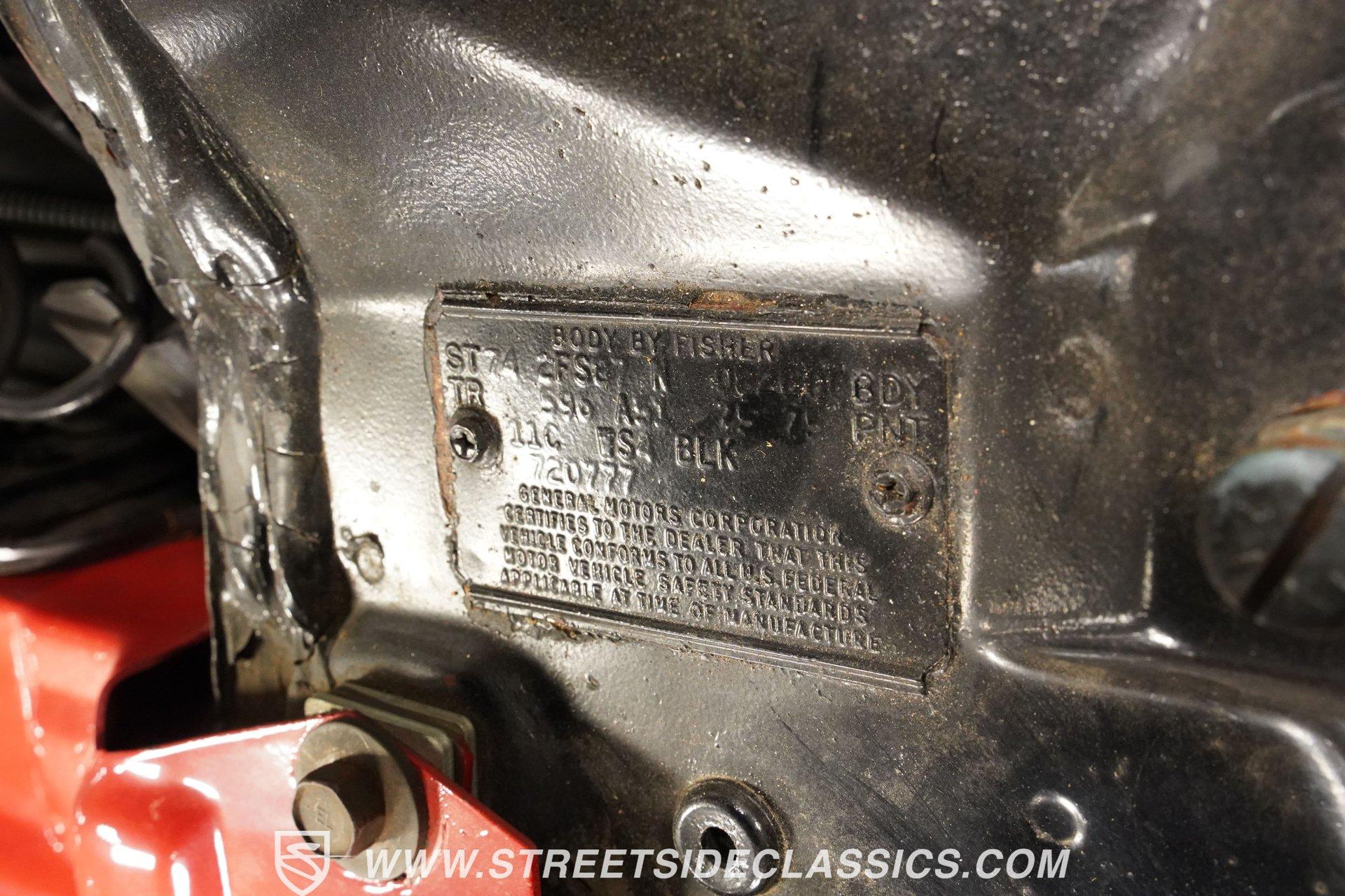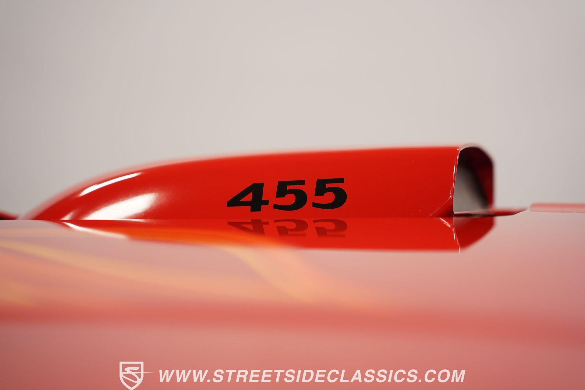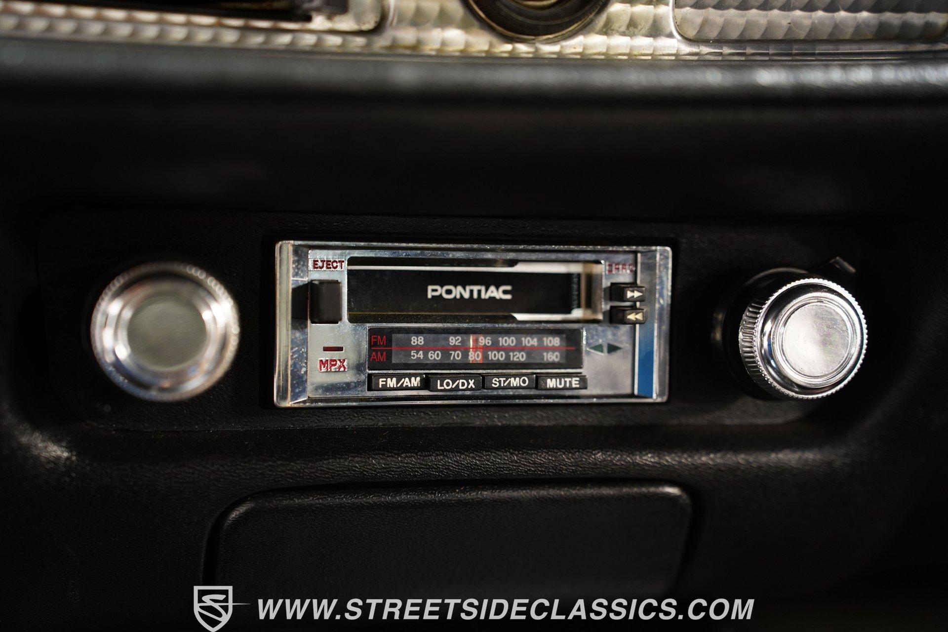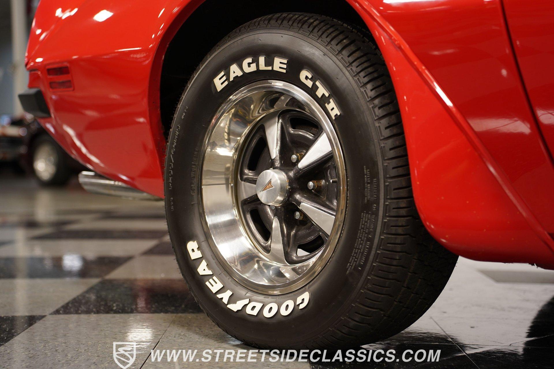 This 1974 Trans Am 455 is all about attitude. The Shaker hood scoop pairs perfectly with the famous Firebird decal, and the Buccaneer Red paint job just screams, "Look At Me." It's a sports car worth cruising to any car show or car cruise. The rear spoiler and wheel fender flares match up great with the fender air scoops and aggressive tailpipes. With the 455 emblems, this Trans Am looks like a menace on the road to anyone who rolls up on it. The interior of this Trans Am is in pretty good shape. Mostly blacked out with black leather bucket seats and a floor shifter, you truly feel like you're in a bad-to-the-bone sports car. And although it's a sports car, there is plenty of storage room between the door panel compartments, center console, glove box, and trunk. The back seats look well-maintained and offer enough space for an average-sized person. The gauge cluster surround is polished aluminum, while the gauges themselves are believed to be stock original. Under the hood sits the original 455 cubic-inch V8 big-block. It's paired with a TH400 3-speed automatic transmission, a powerful combination in a car like this Trans Am. Out back, a 10-bolt rear axle is responsible for turning the wheels, while rear leaf springs and shocks smooth out the ride. Up front, coil springs, shocks, and a sway bar keep cornering as tight as possible. Front power disc brakes and rear power drum brakes deliver consistent stopping power, while the P255/60R15 tires wrapped around stock-appearing wheels contribute to both ride quality and period-correct looks. And for the finishing touch, dual exhaust with aftermarket mufflers gives this Trans Am its classic sports car sound. Highlights: One Owning For The Last 9 Years Original 455 V8 With Single 4-Barrel TH400 3-Speed Automatic Transmission Classic Shaker Hood Big Firebird Decal On The Hood Rear Spoiler, Wheel Spoiler, Fender Air Scoops Dual Exhaust With Aftermarket Mufflers Front Power Disc Brakes Stock appearing 15-Inch Rims Black Leather Seating If you've ever dreamt about owning a classic sports car but haven't pulled the trigger yet, here's your chance. This 1974 Pontiac Firebird Trans Am 455 has the iconic look loved by just about every car enthusiast. The color is undeniable, the Firebird decal on the hood is legendary, and the Shaker hood concept has been around for decades for a reason: it's awesome. To get your sports car vibe on, call today!