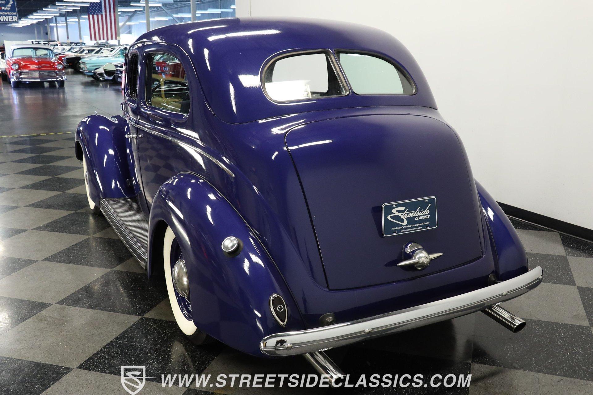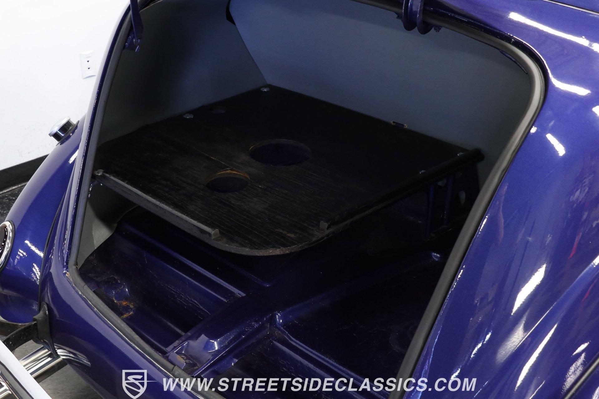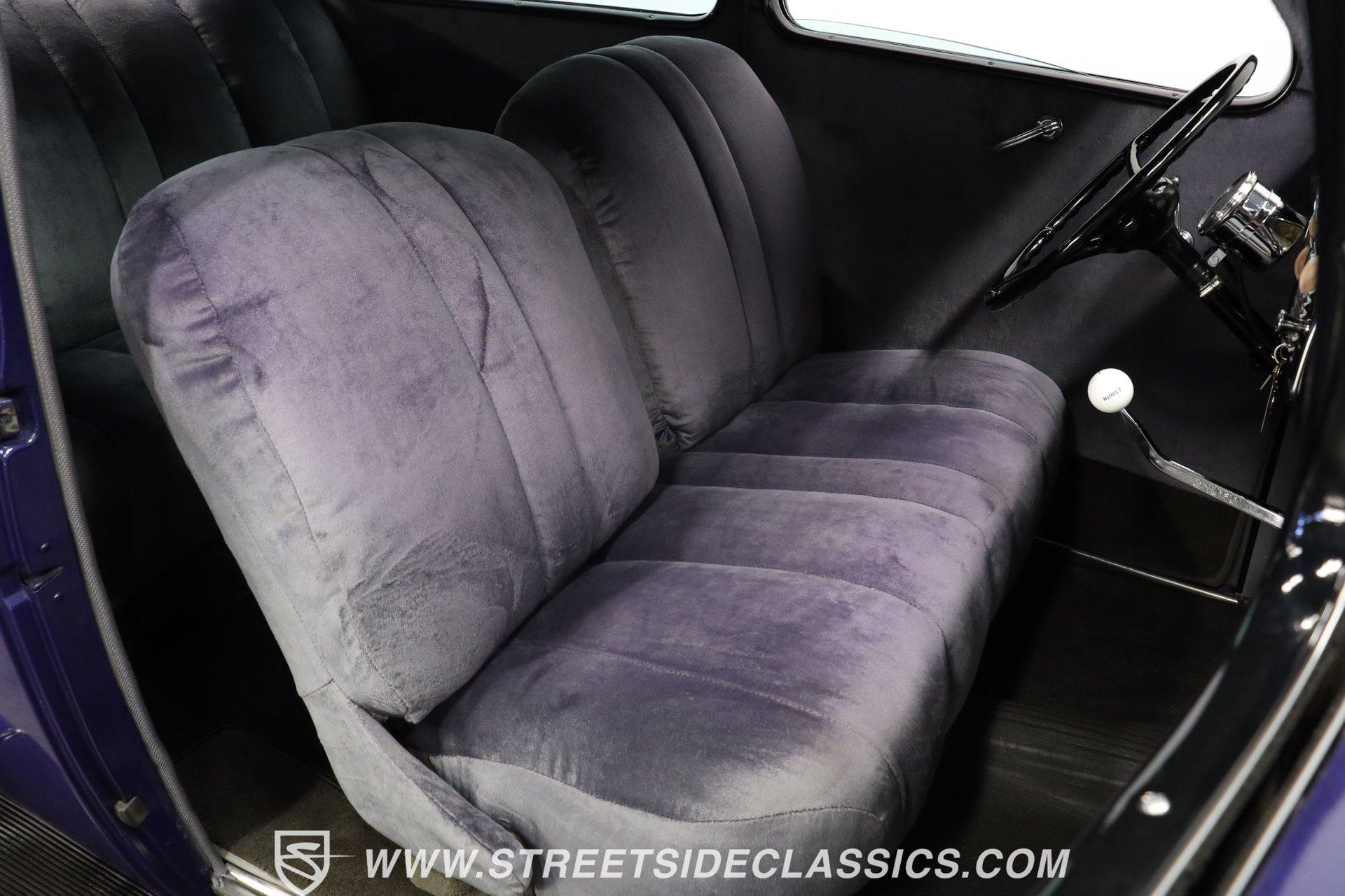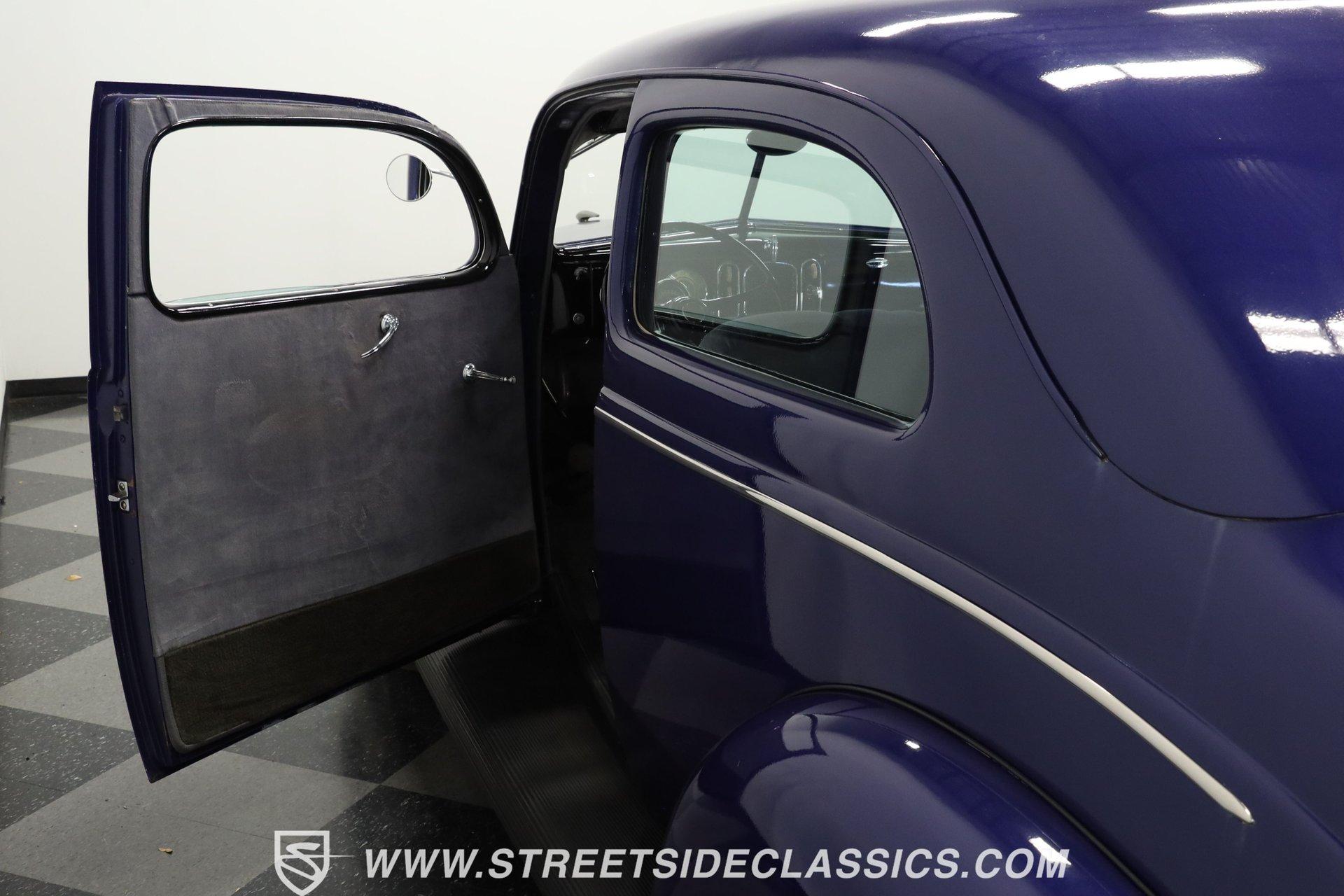 If you've been looking for a vehicle with a long heritage and timeless appeal, then this 1938 Ford Tudor Sedan deserves strong consideration. Fully repainted in a beautiful dark blue, this pre-war sedan sports curvaceous fenders, sleek lines, and a vertical-bar grille integrated into its pointed yacht-like nose. Inside, we find a cozy grey cloth interior, featuring a split bench seat in front and full bench in the rear. A classic three-spoke steering wheel sits just ahead of a column-mounted, 8,000 rpm 'Rocket Tach'. Behind the tachometer sits a large 100 mph speedometer and multi-readout gauge containing fuel level, temperature, oil pressure, and battery charge. Simple yet elegant controls take center stage on the dashboard, while a large glove compartment is positioned in front of the passenger seat. Under that steel hood, we find a classic 255 cubic-inch Flathead V-8 engine. While it still uses stock head and engine bolts, this motor has been upgraded to Tri-Power carburation along with an Offenhauser intake manifold and a performance-oriented camshaft. All told, this engine has gone from 125 horsepower to a stout 235 horsepower, and with just 23,000 miles on it, there is plenty of life left for you to enjoy. Those ponies are routed through a three-speed manual transmission before being sent out to a live axle rear, where they are transferred to the pavement via body color 16-inch wheels shod in throwback white-walled tires. *Full Dark Blue Repaint *Flathead V8 *Tri Power Carb *Offenhauser Intake *Upgraded Cam *Estimated 235 HP *Three Speed Manual *Hurst Competition Super Shifter and custom crafted boot *Dual Exhaust *Smithy's Mufflers *Body Color 16in Wheels *White Wall Tires This 1938 Ford Tudor Sedan rides on a straightforward leaf spring and shock suspension at both the front and rear. Unassisted drum brakes stand ready to scrub off speed whenever needed. If you've wanted something that stands out in a crowd everywhere it goes, this head-turning antique is precisely what you've been waiting for. Don't wait, call today! We can assist you with getting an Extended Vehicle Service Plan from Freedom Warranty, which provides comprehensive coverage that can save thousands of dollars on unexpected repairs. Inquire for more details and pricing!