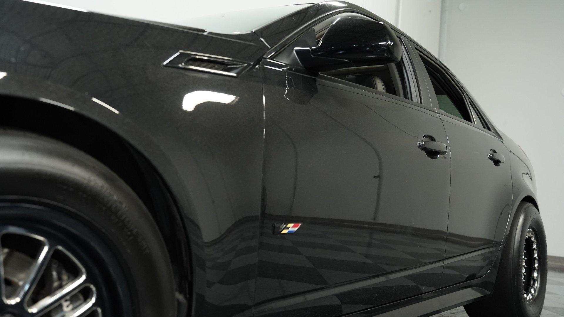 Combining extreme levels of both performance and luxury, the base CTS-V is a unique car in the history of the autoverse. But, when that posh interior is combined with a purpose-built Pro Street-level of power, this 2012 Cadillac CTS-V 427 is the equivalent of a unicorn riding Haley's Comet in terms of rarity on the road. With its fully blacked-out grille and trim to complement its Black Diamond paint and powder-coated Weld Belak wheels, this V is a streetable weekend track car that feels and drives like nothing else out there. Inside, this CTS-V retains its elite Ebony leather and suede interior. A center locking console separates the stock heated and ventilated Recaro seats, while a padded three-spoke steering wheel with thumb controls sits ahead of a three-pod gauge cluster. Power seats, windows, locks, and mirrors, combined with air conditioning, cruise control, navigation, power sunroof, and a backup camera, offer all the modern amenities anyone could ask for. An AM/FM/AUX/Satellite radio handles soundtrack duties, while the classic analog clock sits high atop the center stack, making this car feel like an Olympic sprinter dressed in a three-piece Armani suit. Under that aggressive hood, we find a massive Dart 427 stroker V-8 engine. This race-ready motor's build sheet reads like a car-crazed kid's wishlist: Dart block rated to 1,300 horsepower, Monster M311 heads, LS gasket kit, LS7 lifters and trays, Dart cam bearings, head stud kit, and windage tray. An LSXperts custom camshaft, RCR race blower, 102mm throttle-body, dual Walbro fuel pumps, Kooks headers, RCR mid-pipes, and dual exhaust round out the short list of power parts. This car has dynoed an insane 968 horsepower and 1,028 pound-feet of torque on 93 pump gas. That number can climb to over 1,200 hp when tuned to use high-octane race gas. That ridiculous power is routed through a built triple-disc 6L80E six-speed automatic transmission before being sent out to the 3.73-geared rear by way of a DSS aluminum driveshaft. *Luxury Racecar *Built Dart 427 CID V8 *968 HP on Pump Gas *1028 LB FT on Pump Gas *Over 1200 HP Potential *Moser Heads *Custom Cam *LS7 Lifters *102 mm Throttle Body *Dual Walbro Fuel Pumps *Triple Disc 6L60E Six Speed Auto *DSS Aluminum Driveshaft *3.73 Rear *Coilovers *Race Tires *Leather Interior *Heated and Vented Recaros *Power Sunroof *Navigation *Back Up Camera *Power Everything *AC *Cruise *Wilwood Brakes *Airbags *Receipts *One of a Kind The 2012 Cadillac CTS-V 427 is equipped with a modified suspension, featuring adjustable coilovers up front, while Weld Belak Series 02 wheels are fitted with race tires to produce maximum grip. Because adding a parachute would make this car decidedly less streetable, this CTS-V uses a set of four-wheel Wilwood power disc brakes to help rein in all of that prodigious power whenever called upon. While the base CTS-V is already an exceptional car in its own right, this 427-powered Caddy has created a new submarket of automobiles we are dubbing the 'Luxury Racecar', and as of now, this is the only car we've come across that fits into that category, making it truly one of a kind. Don't wait, because as expected and on-brand, this car will go fast. Call today!