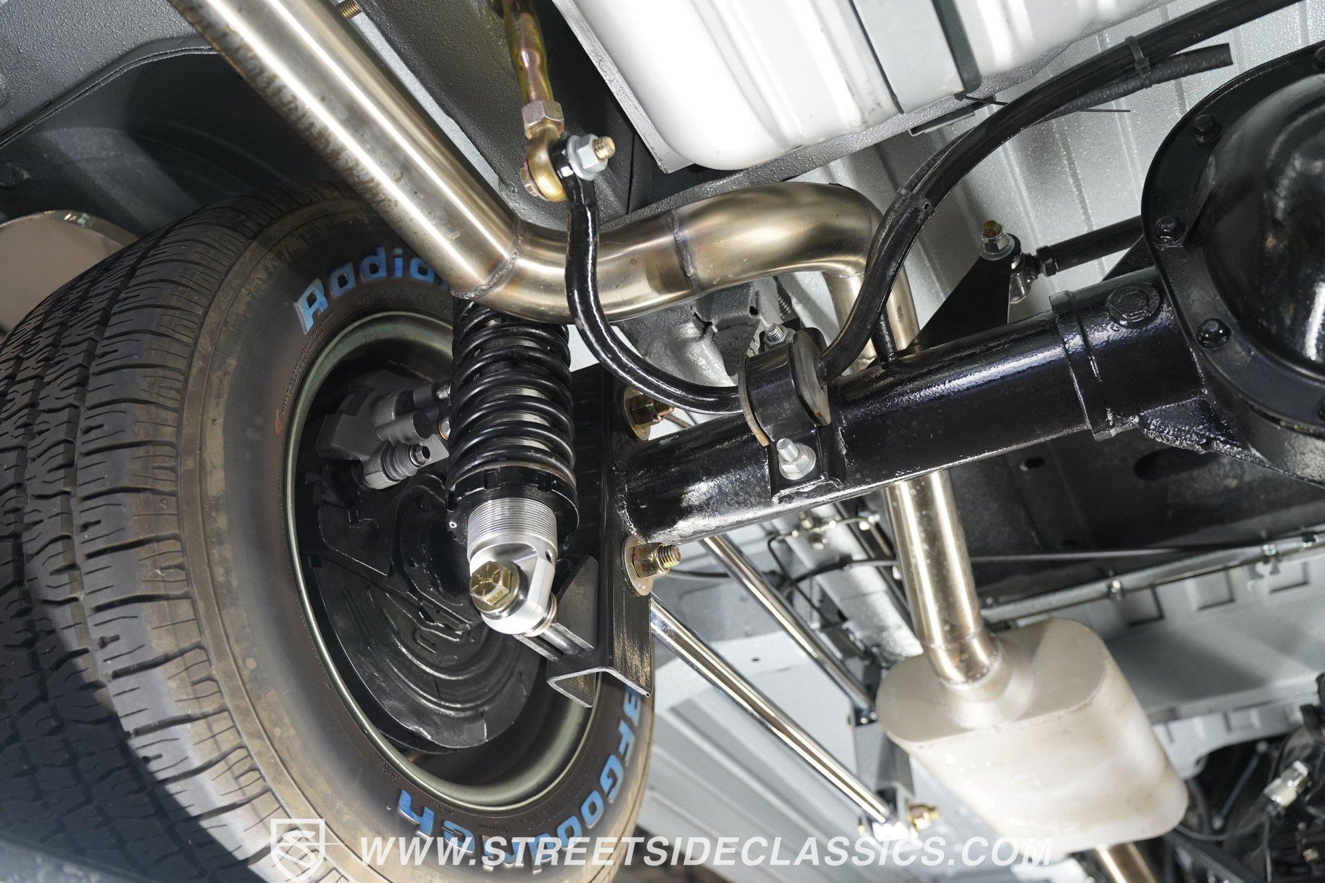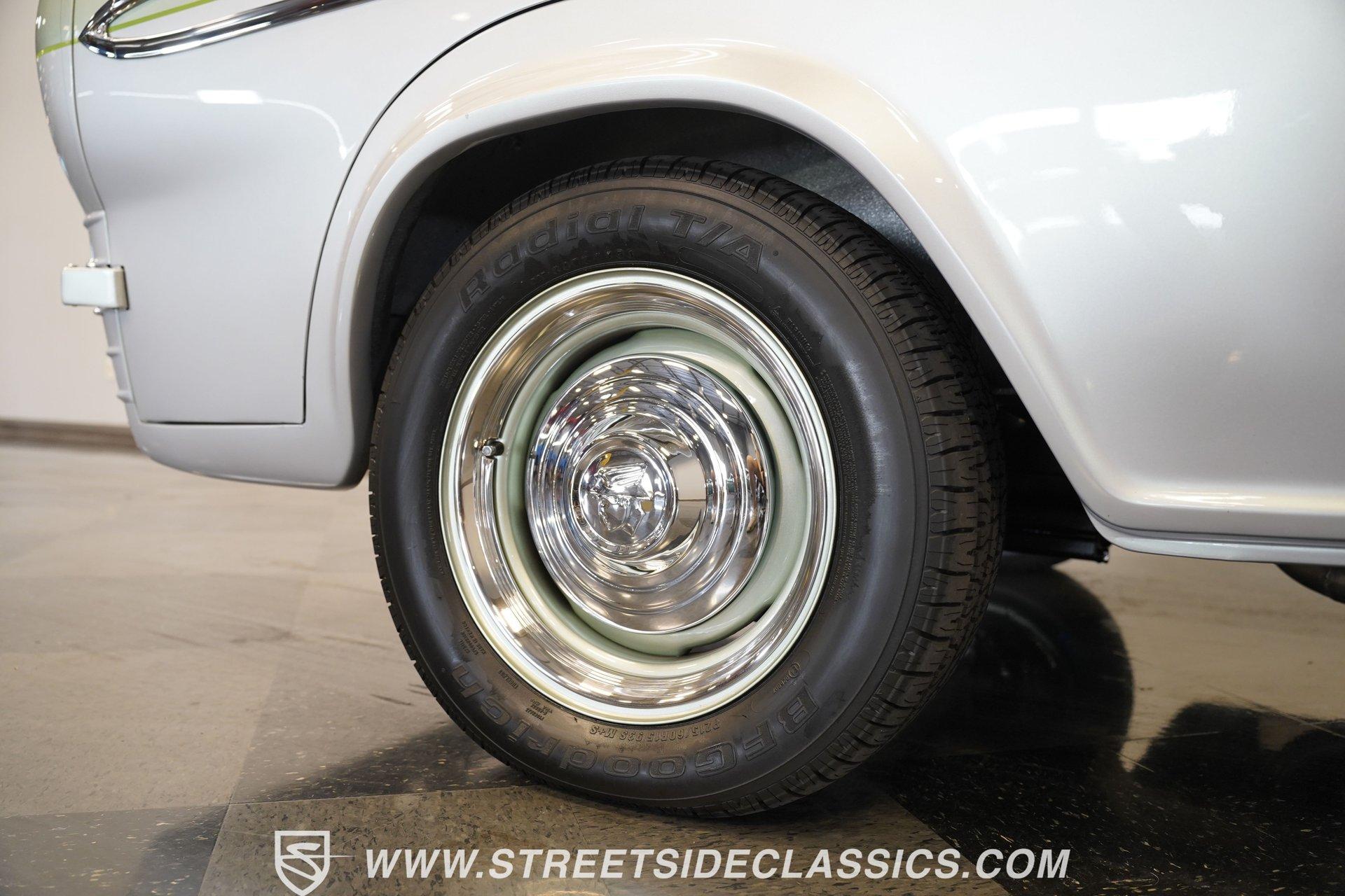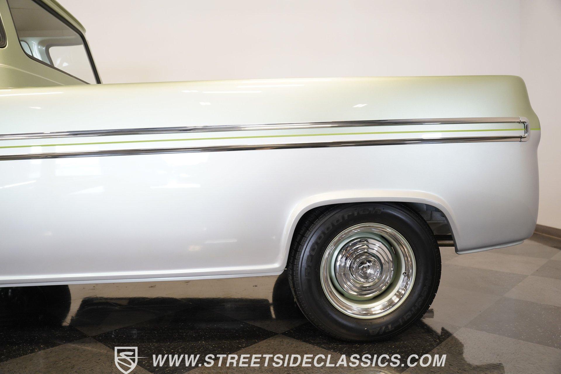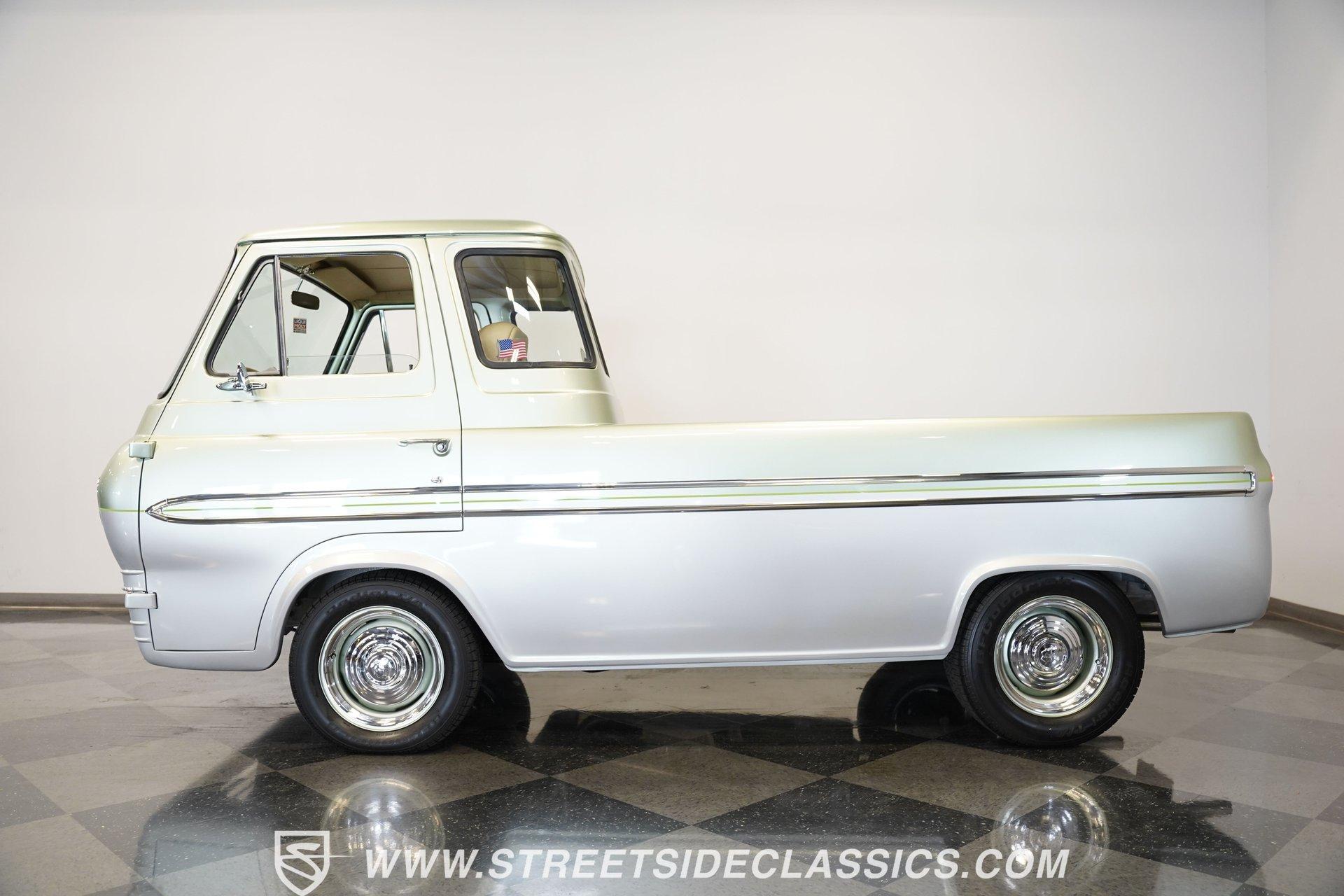 Here is a really different, yet cool-looking truck. These trucks were originally built for Canada, but this one resides here in the U.S. It's a fully restored 1965 Mercury M-1 Five-Window Econoline custom pickup truck with a short bed. The exterior top-half color is Kiwi Green Metallic, and the bottom-half is silver, with both colors separated by a painted green pinstripe. The wheels match the Kiwi Green color, with chrome-plated center pieces and outer beauty rings. The rear-end view finishes out well, as does the inside of the truck bed. The interior looks just as good as the exterior. Using Kiwi Green and tan colors with bright green pinstriping gives this cabin a fun and free look. Leather seats with dark brown diamond-stitched inlays add character. The center armrest is big enough for both passenger elbows, and the matching-colored door cards are in great shape. The steering column features tilt for the custom steering wheel and also hosts the gear select. The gold dashboard gauges look very retro and perfectly themed to the rest of the interior. In the center console, you'll find the heat, defrost, and air conditioning controls, cupholders, and a Pioneer head unit with AM/FM/CD/Aux and Bluetooth. Between the seats and under the armrest sits an insulated 302 cubic-inch V8 crate motor. An Edelbrock 4-barrel AVS2 Series carburetor feeds this engine plenty of fuel. Power is delivered to a 4-speed Ford Mustang automatic overdrive transmission, which then connects to a 2000 Ford Explorer 4x4 rear differential. Suspension duties are handled by an independent front suspension, with control arms, coilovers, a sway bar, and rack-and-pinion steering. The rear suspension uses factory trailing arms, coil springs, and air shocks. Stopping power comes from front and rear power disc brakes, and in front of those brakes are 15-inch color-matched steel wheels with center caps and beauty rings. BFG Radial T/A front 215/60R15 and 245/60R15 rear tires wrap those wheels for a great stance and solid traction. Highlights: Ford Mustang 5.0 Liter (302 Cubic-Inch) Crate Motor Edelbrock AVS2 4-Barrel Carburetor Ford Mustang 4-Speed Automatic Transmission W/Overdrive Shorty Headers, Dual Exhaust, And FlowMaster Mufflers Independent Front Suspension With Control Arms, Coilovers, And A Sway Bar Rack And Pinion Steering Rear Factory Trailing Arms, Coil Springs, And Air Shocks 15-Inch Color-Matched Steel Wheels With Center Caps, And Beauty Rings BFG Radial T/A Front 215/60R15 And 245/60R15 Rear Tires Front And Rear Power Disc Brakes Custom Gold Gauges Heat And Air Conditioning Custom Steering Wheel With Tilt Pioneer AM/FM/CD/Aux With Bluetooth This vehicle is a standout due to its uniqueness. Not many 1965 Mercury M-1 Five-Window Econoline trucks roam the streets any longer, so if you dare to be different, Call Today!