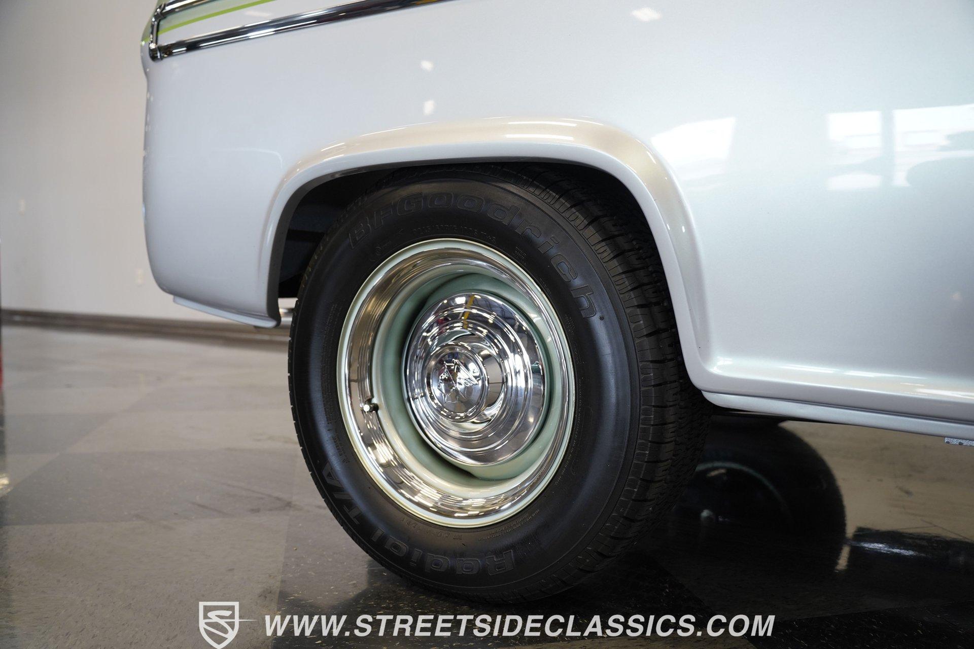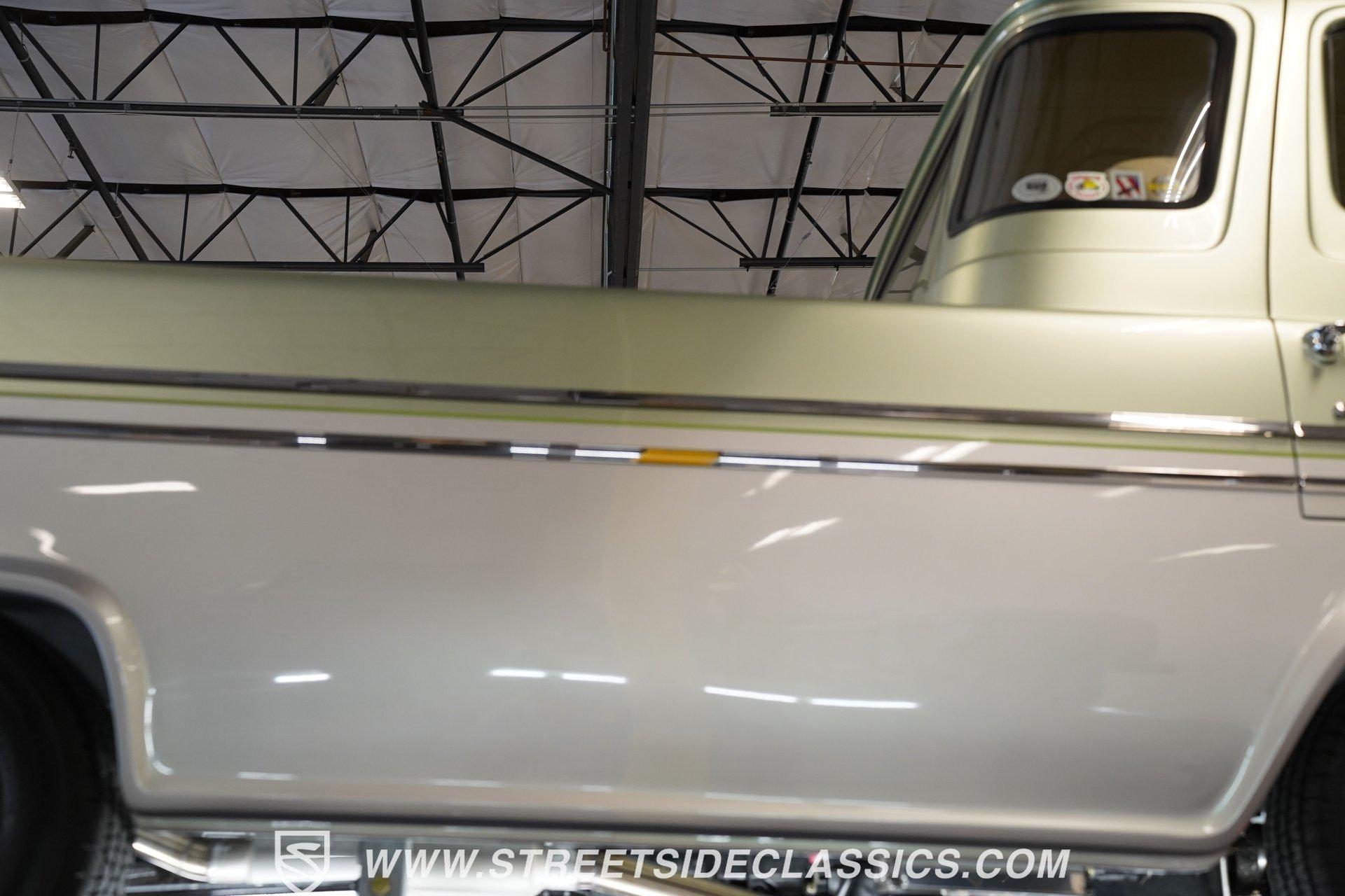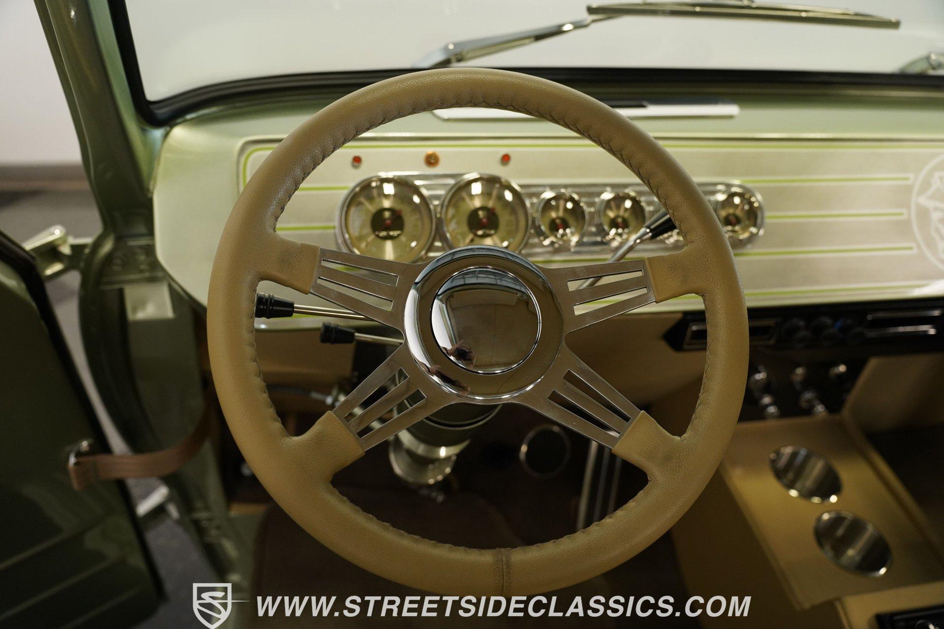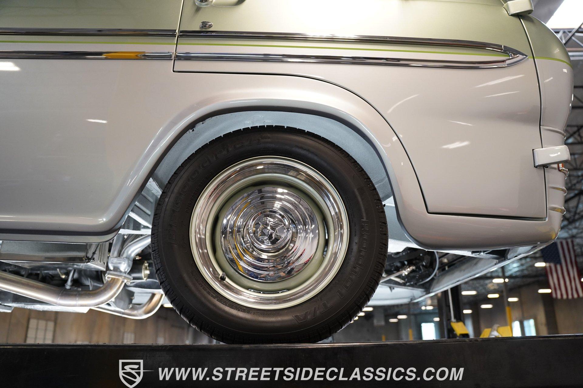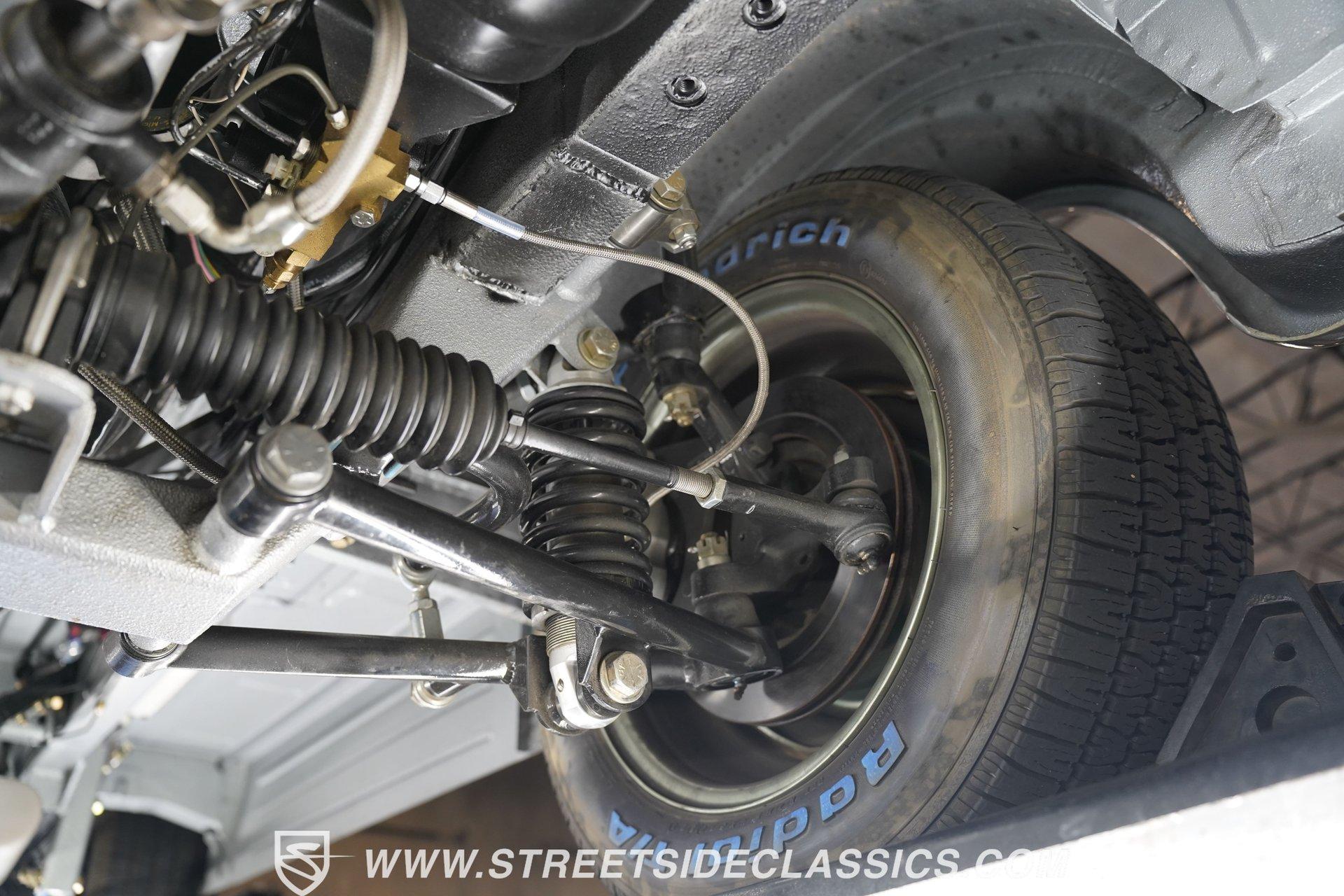 Here is a really different, yet cool-looking truck. These trucks were originally built for Canada, but this one resides here in the U.S. It's a fully restored 1965 Mercury M-1 Five-Window Econoline custom pickup truck with a short bed. The exterior top-half color is Kiwi Green Metallic, and the bottom-half is silver, with both colors separated by a painted green pinstripe. The wheels match the Kiwi Green color, with chrome-plated center pieces and outer beauty rings. The rear-end view finishes out well, as does the inside of the truck bed. The interior looks just as good as the exterior. Using Kiwi Green and tan colors with bright green pinstriping gives this cabin a fun and free look. Leather seats with dark brown diamond-stitched inlays add character. The center armrest is big enough for both passenger elbows, and the matching-colored door cards are in great shape. The steering column features tilt for the custom steering wheel and also hosts the gear select. The gold dashboard gauges look very retro and perfectly themed to the rest of the interior. In the center console, you'll find the heat, defrost, and air conditioning controls, cupholders, and a Pioneer head unit with AM/FM/CD/Aux and Bluetooth. Between the seats and under the armrest sits an insulated 302 cubic-inch V8 crate motor. An Edelbrock 4-barrel AVS2 Series carburetor feeds this engine plenty of fuel. Power is delivered to a 4-speed Ford Mustang automatic overdrive transmission, which then connects to a 2000 Ford Explorer 4x4 rear differential. Suspension duties are handled by an independent front suspension, with control arms, coilovers, a sway bar, and rack-and-pinion steering. The rear suspension uses factory trailing arms, coil springs, and air shocks. Stopping power comes from front and rear power disc brakes, and in front of those brakes are 15-inch color-matched steel wheels with center caps and beauty rings. BFG Radial T/A front 215/60R15 and 245/60R15 rear tires wrap those wheels for a great stance and solid traction. Highlights: Ford Mustang 5.0 Liter (302 Cubic-Inch) Crate Motor Edelbrock AVS2 4-Barrel Carburetor Ford Mustang 4-Speed Automatic Transmission W/Overdrive Shorty Headers, Dual Exhaust, And FlowMaster Mufflers Independent Front Suspension With Control Arms, Coilovers, And A Sway Bar Rack And Pinion Steering Rear Factory Trailing Arms, Coil Springs, And Air Shocks 15-Inch Color-Matched Steel Wheels With Center Caps, And Beauty Rings BFG Radial T/A Front 215/60R15 And 245/60R15 Rear Tires Front And Rear Power Disc Brakes Custom Gold Gauges Heat And Air Conditioning Custom Steering Wheel With Tilt Pioneer AM/FM/CD/Aux With Bluetooth This vehicle is a standout due to its uniqueness. Not many 1965 Mercury M-1 Five-Window Econoline trucks roam the streets any longer, so if you dare to be different, Call Today!