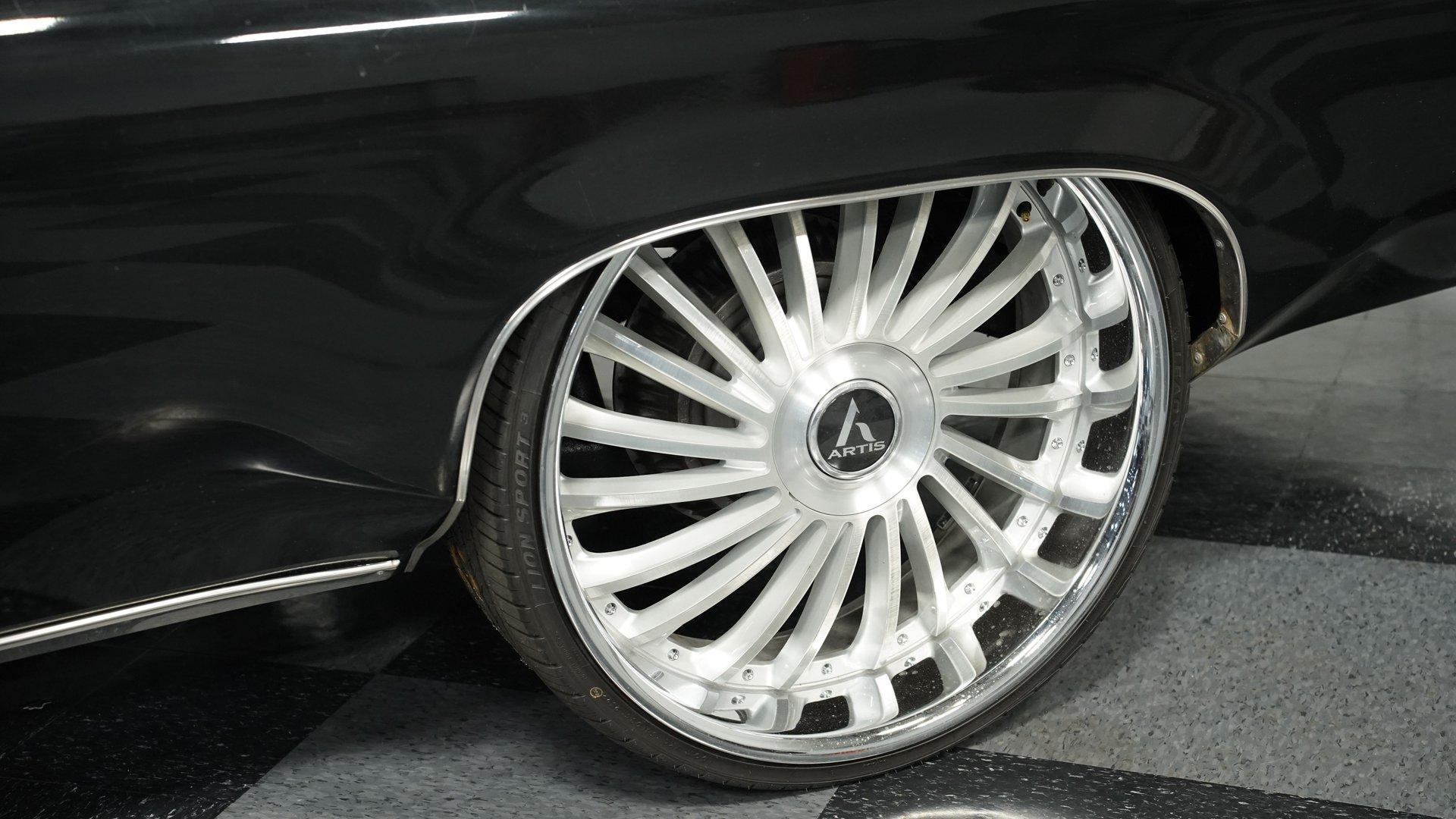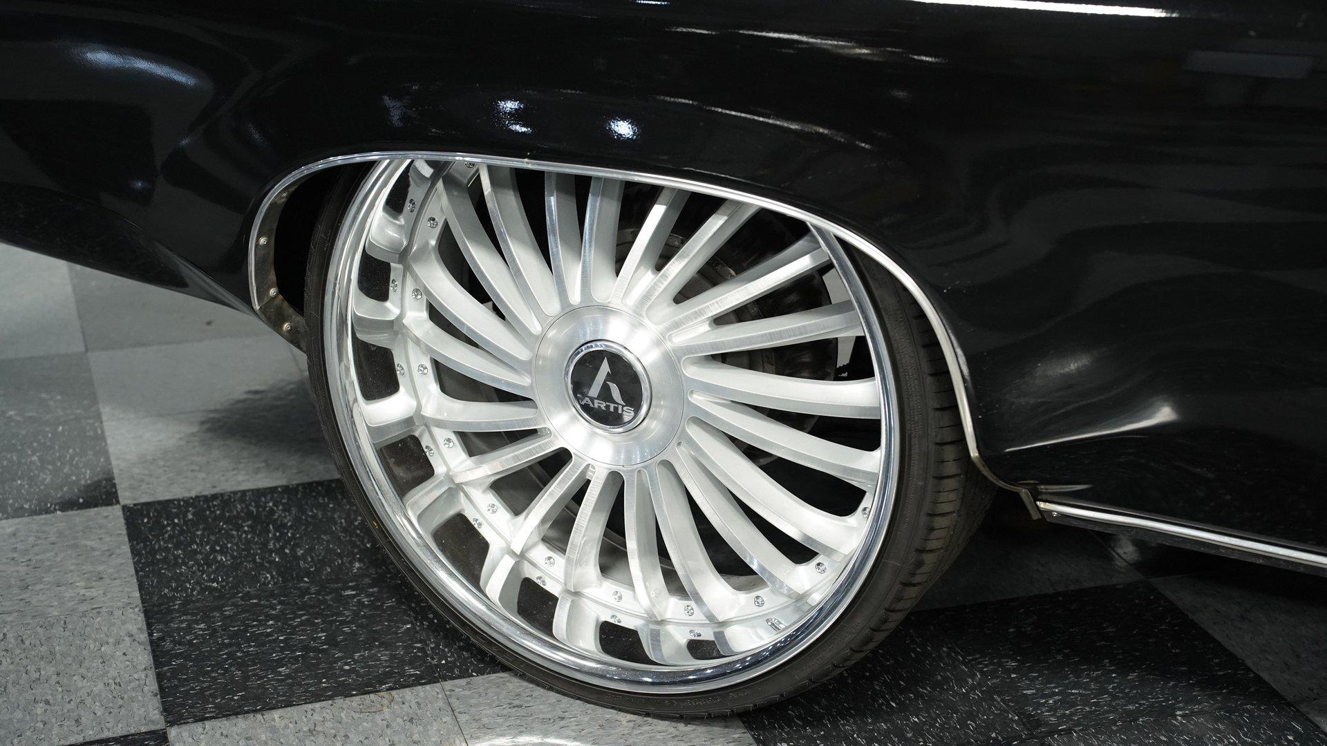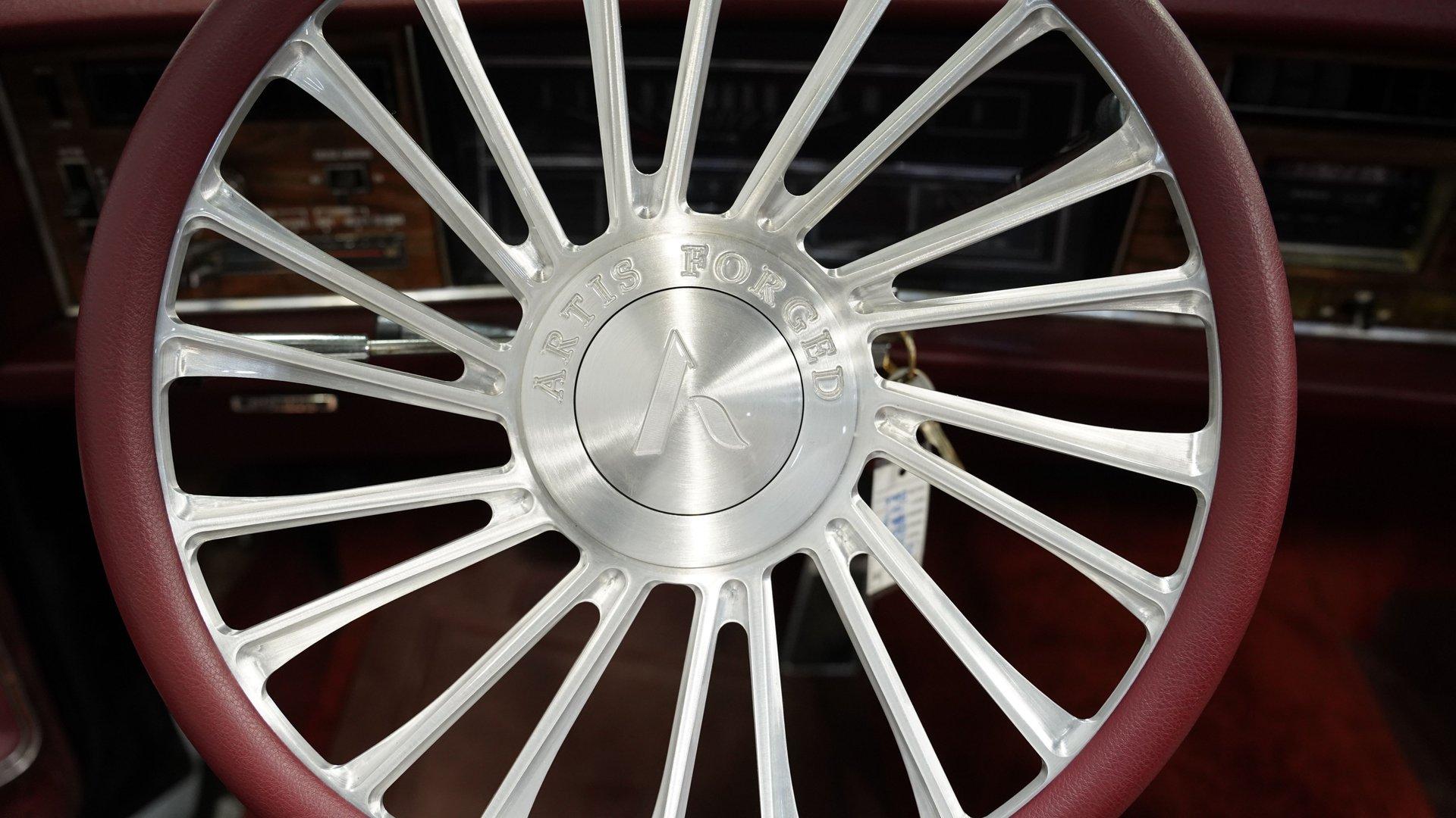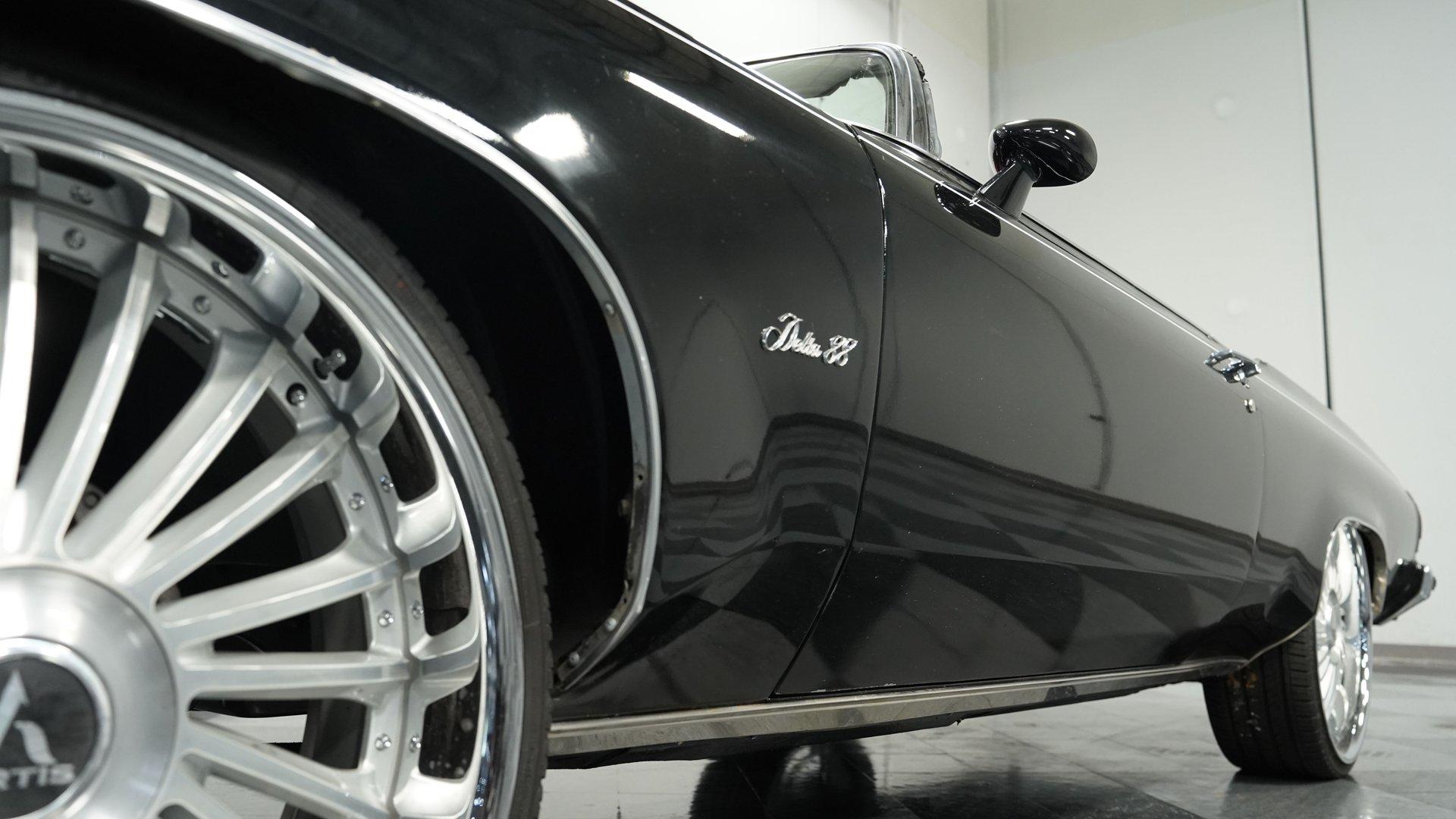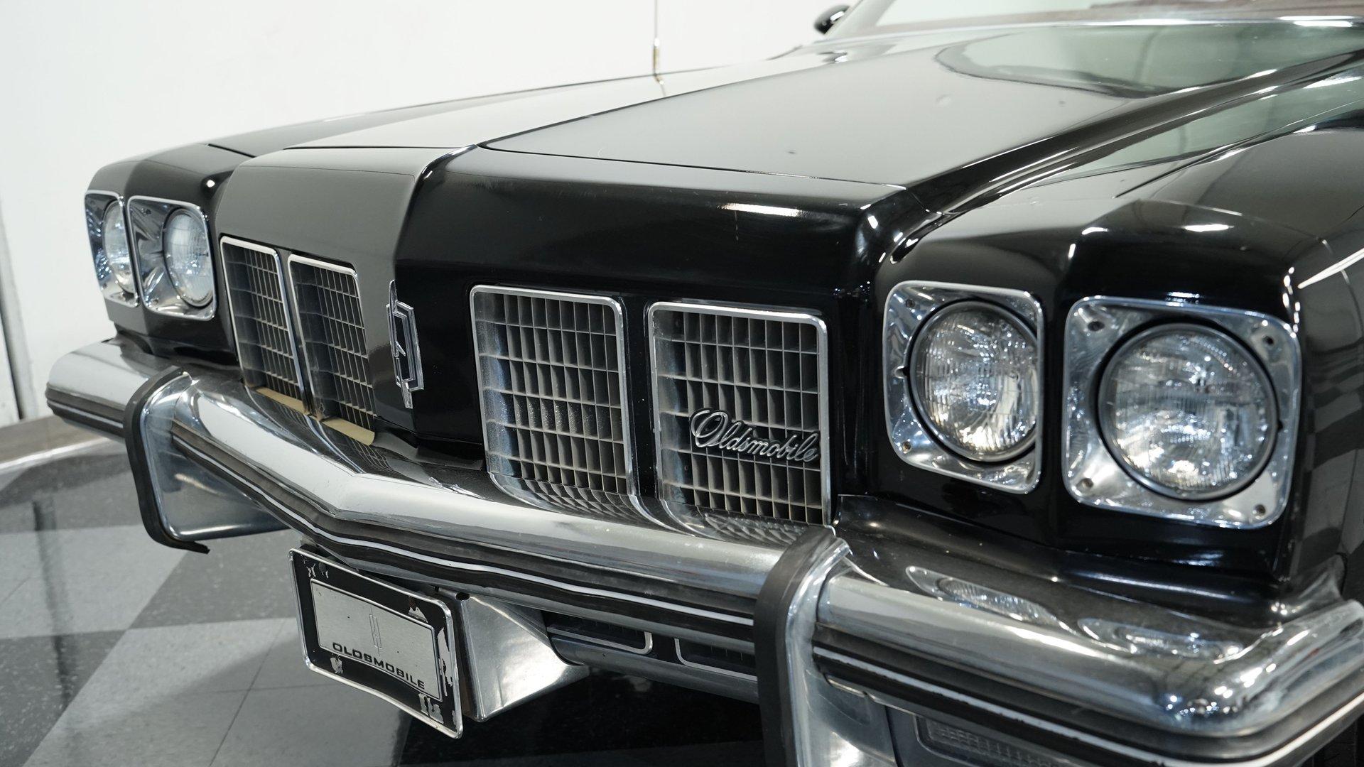 It's hard to beat the wind in your hair from behind the wheel of a full-sized American classic. The last drop-top Olds would produce for fifteen years (until the 1990 Cutlass Supreme), this 1975 Oldsmobile Delta 88 Royale Convertible represents the end of an era, and with its full Ebony Black repaint and complementing silver pinstripes, this car is as collectible as it is enjoyable. Inside, we find a captivating Dark Oxblood Red vinyl interior. A pair of plush bucket seats, each with a folding armrest, offers plenty of room for the front occupants, while a standard bench in the back doubles the available seating area. The custom Artis Forged wheel, created to tie it together with the same style wheels, stands as the center of attention. Beyond the wheel sits a horizontal 100 mph speedometer, fuel gauge, and drive indicator for the column-shifted transmission. To the left sits a set of simple toggle switches and sliding controls for HVAC activation. Under that expansive hood, we find a massive 455 cubic-inch V-8 engine. Topped with a single four-barrel carburetor, this big block typically made about 210 horsepower and 375 pound-feet of torque (both SAE net) when it as new. A single factory exhaust kept things civilized. Power is routed through a TH400 three-speed automatic transmission before being sent out to the 12-bolt rear, which transfers those ponies to the pavement via those colossal 26-inch Artis wheels shod in wide 275/25R-26 low-profile rubber. *Final Olds Drop Top Until 1990 *Only About 7,181 Made *Full Ebony Black Repaint *455 CID V8 *TH400 Three Speed Auto *Dark Oxblood Red Vinyl *Tilt Wheel *Cruise *Artis Custom Steering Wheel *26 Inch Artis Wheels *Low Profile Tires *Power Steering *Power Brakes *Front Discs This 1975 Oldsmobile Delta 88 Royale Convertible rides on a suspension consisting of an independent front that uses coil springs, shocks, along with upper and lower control arms. A live axle rear also uses coil springs and shocks tuned for comfort over sport. Not only serving as the final drop-top Oldsmobile would make for a decade and a half, only about 7,181 of these were ever produced, making it a relatively rare item to come across. So, if you want to feel the wind in your hair from behind the wheel of this comfortable cruiser, don't wait, call today!