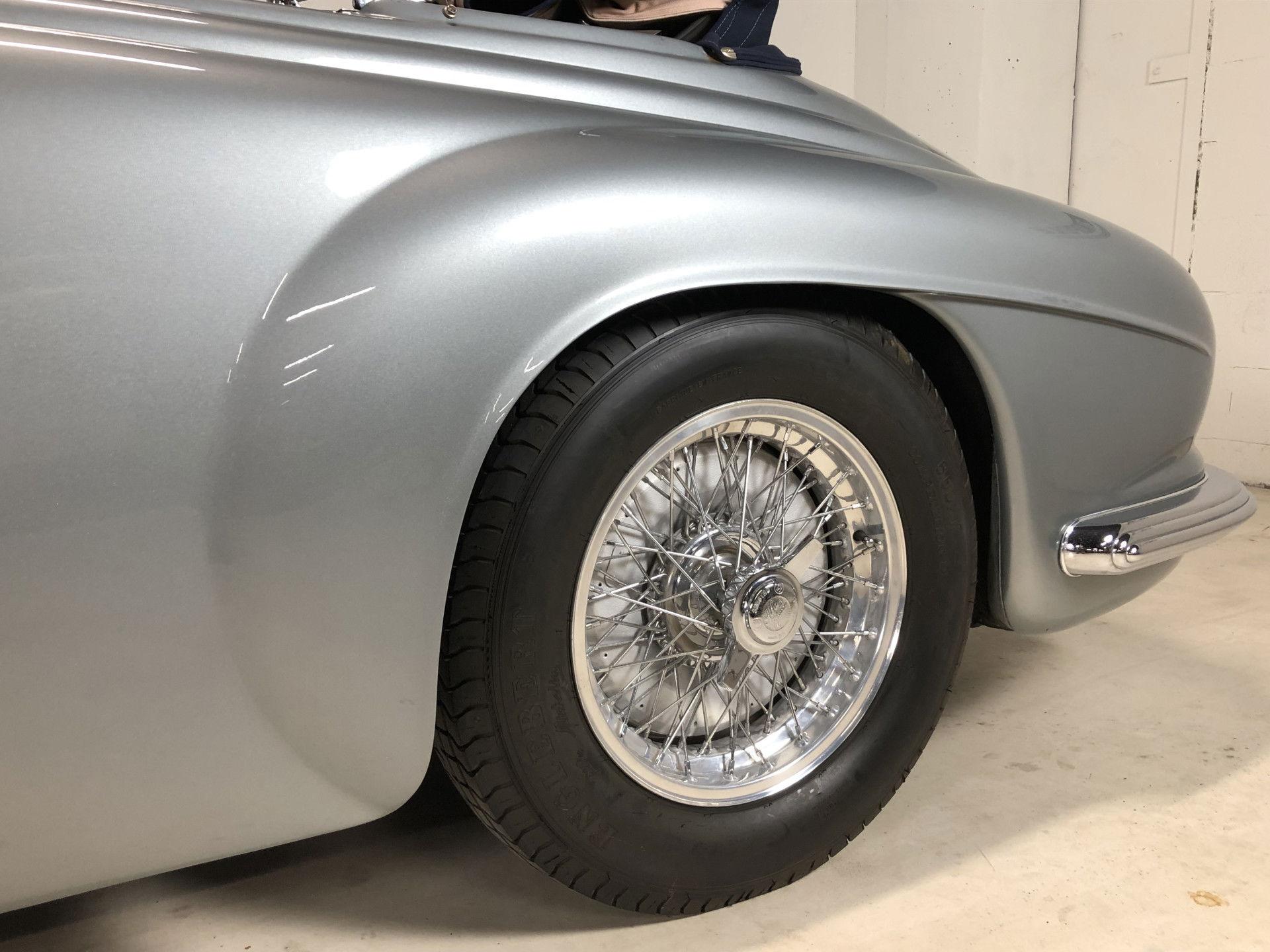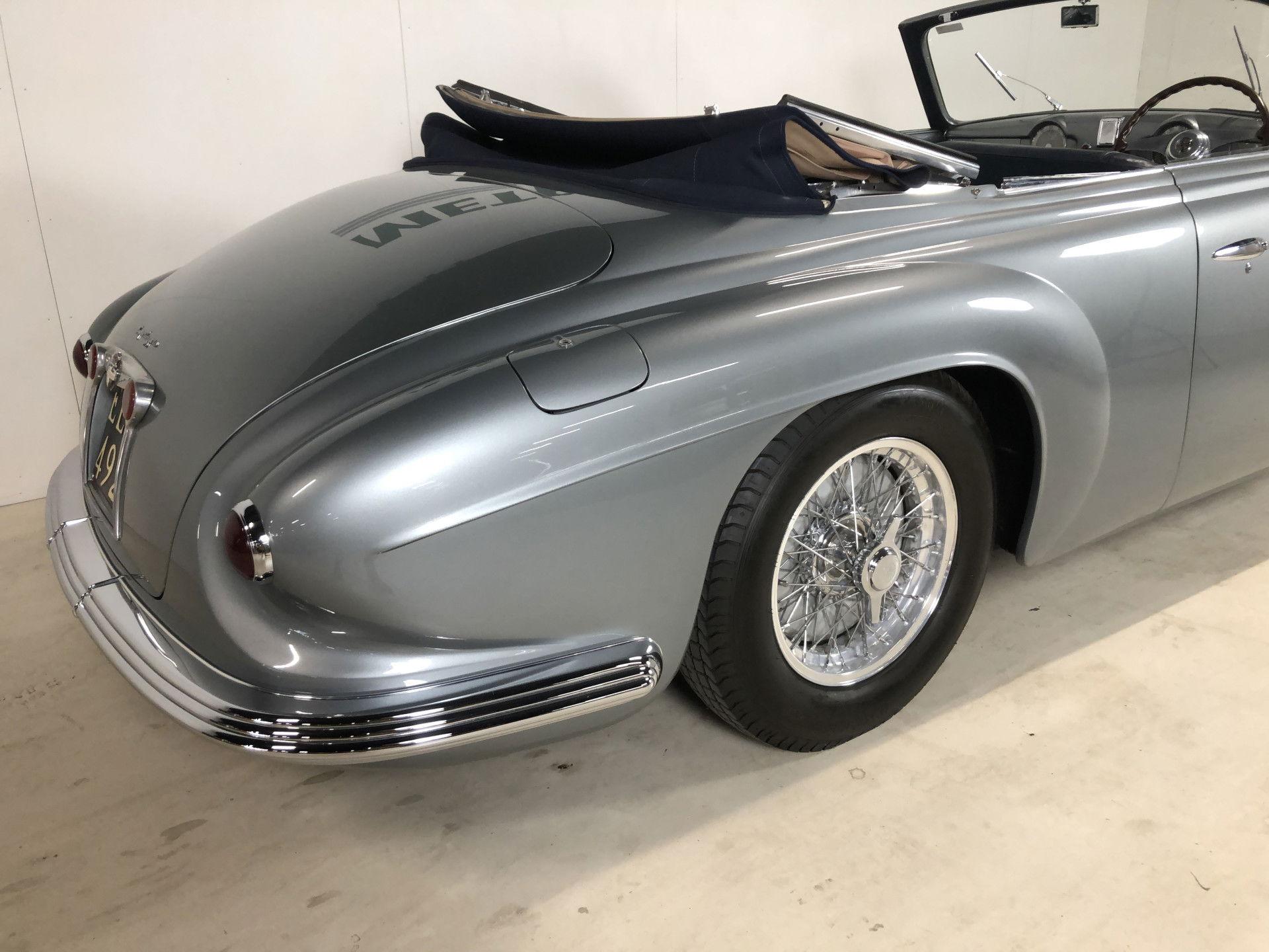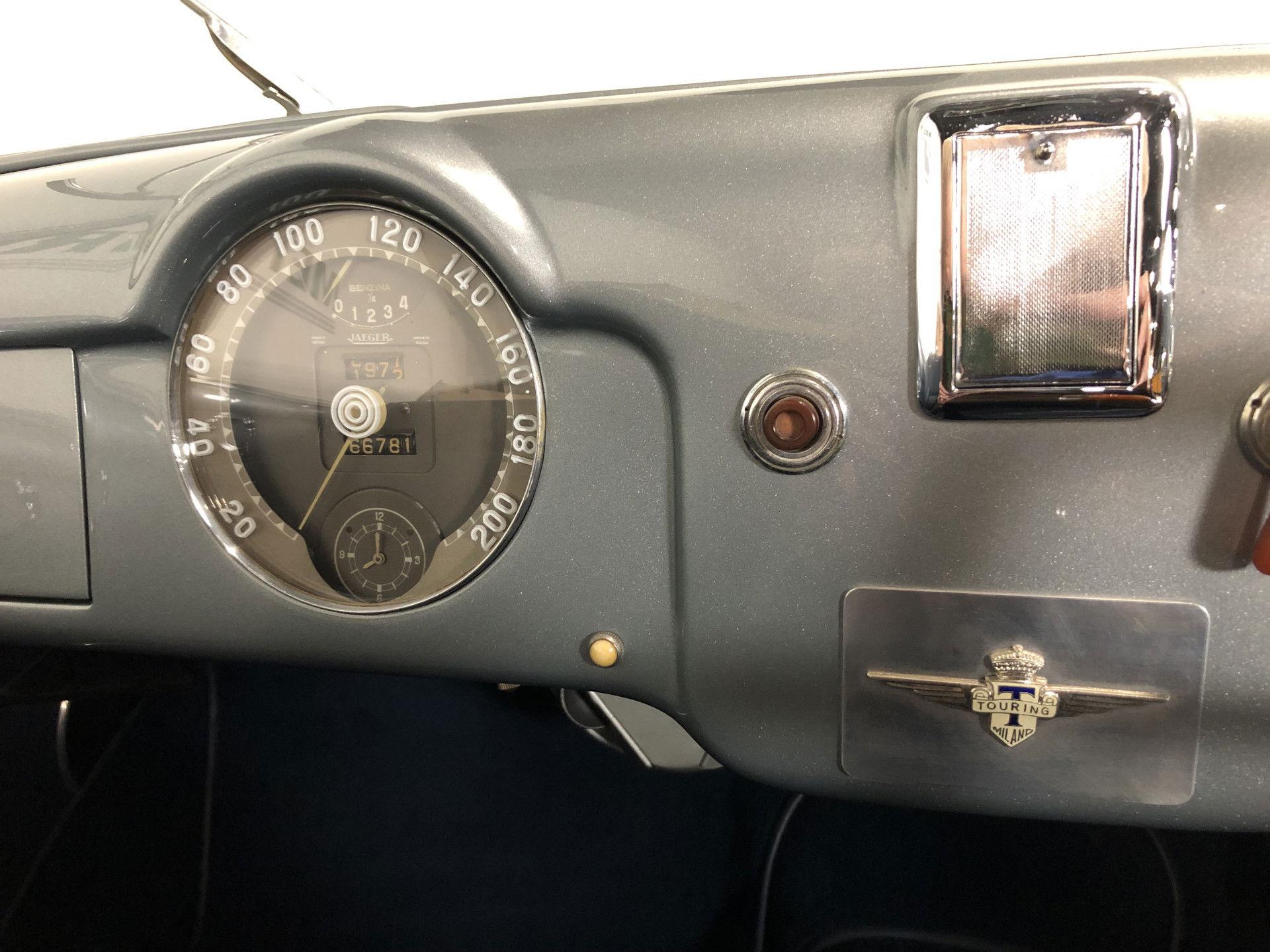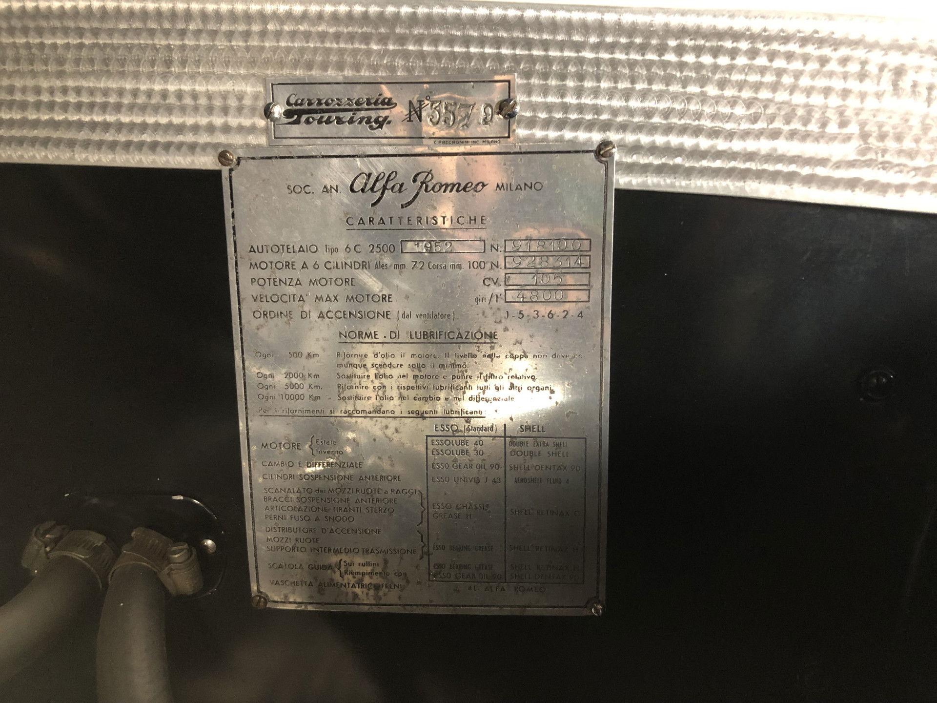 According to the 1989 correspondence in the file of Touring Superleggera designer Carlo Felice Bianchi Anderloni, the one offered here was "Experimental Sport Series Type IV, triple-carbureted touring (long) chassis 918100" completed on April 15, 1952 and covered in gray over blue leather with a matching convertible soft top. It was purchased new shortly thereafter by James Omar Radford of Abilene, Texas on factory tourist registration "EE 4926". A millionaire and heir to a vibrant grocery and real estate wholesale business, Radford lived most of the year in Hollywood and did business as a film producer. In June 1952 his mother died and his access to the family fortune was henceforth unrestricted; he appears to have celebrated this fact by purchasing a new 6C 2500 (chassis 918094) later that same month.
