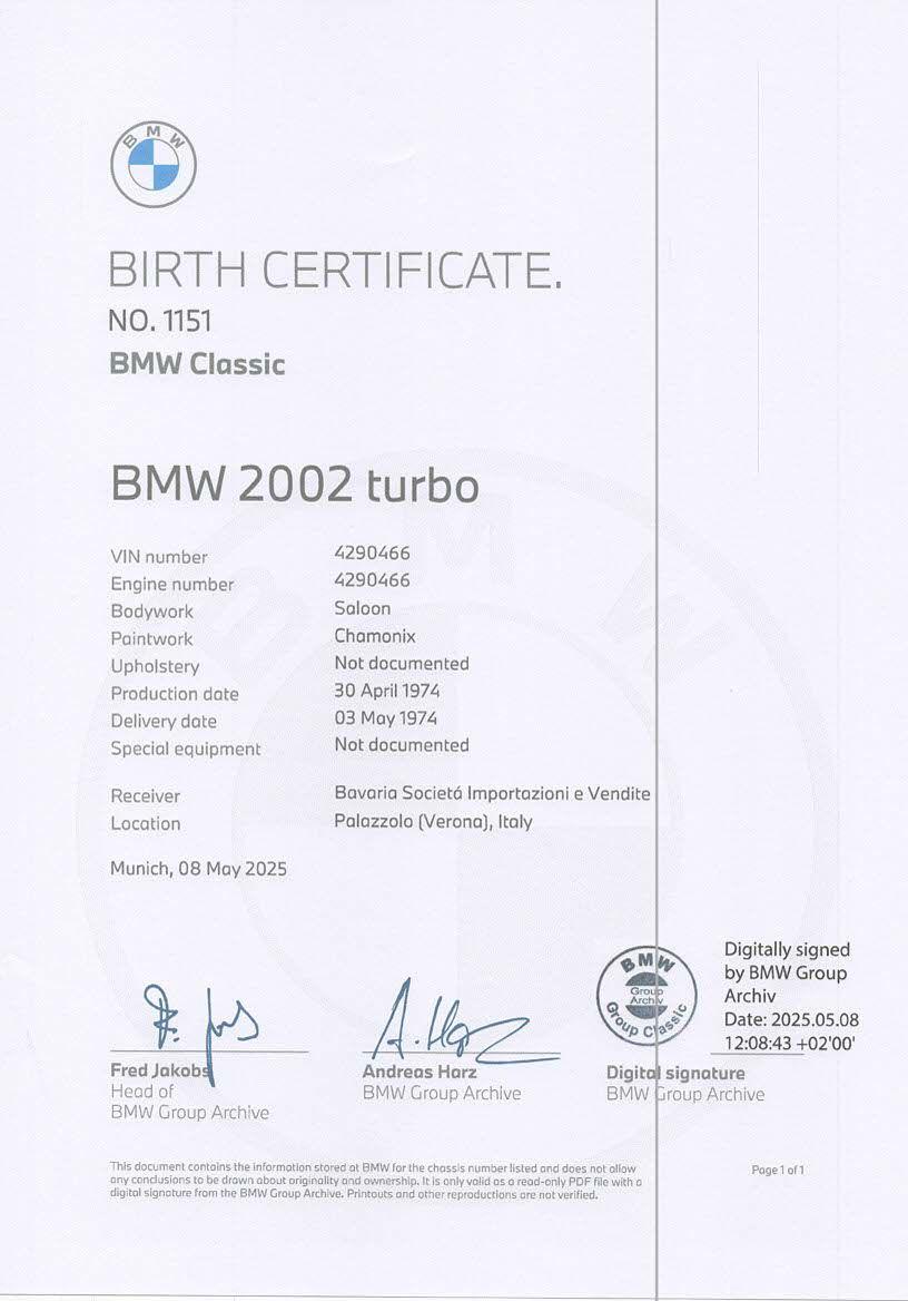 The fastest version of BMW's 02 series made its debut in September 1973 during the IAA in Frankfurt. The iconic 2002 turbo with its typical seventies striping features a KKK turbo - the first in a European production car. The turbo technology makes the injection engine of the 2002 tii an additional 40 hp stronger. The BMW 2002 turbo has a top speed of more than 210 km/h. But the model comes onto the market at exactly the wrong time. With the outbreak of the oil crisis, the gas-guzzling model was condemned to a role on the margins. Only 1974 examples were built from the spring of 1975 to the summer of 1672. They are only available in the colors white (Chamonix) and silver gray (Polaris metallic).