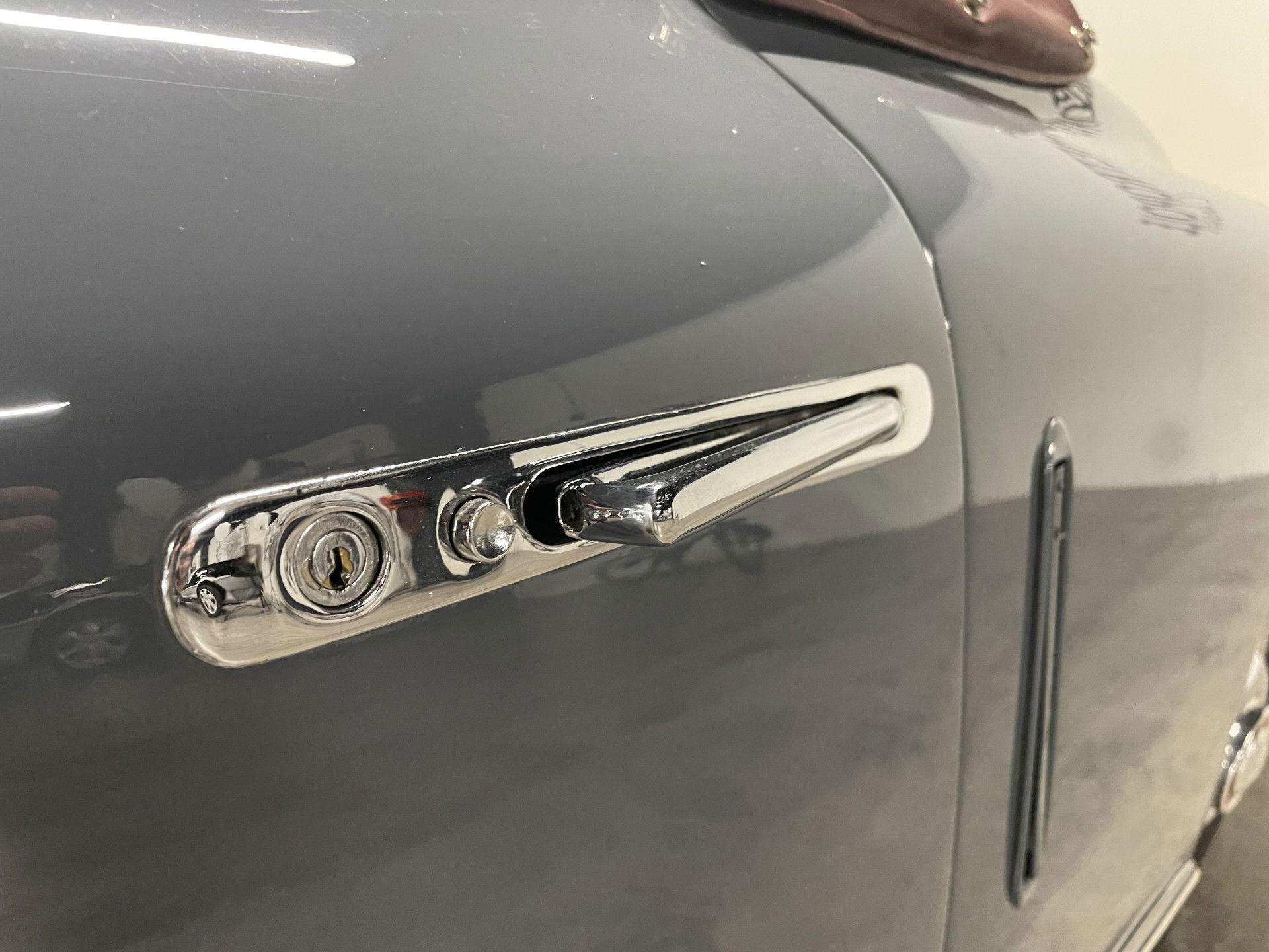 The driver and passenger have a dashboard that matches the upholstery and is set with a striking, unique composition in Bakelite and chrome. Because the spare tire took up most of the trunk, folding rear seats were necessary to provide adequate space for luggage.