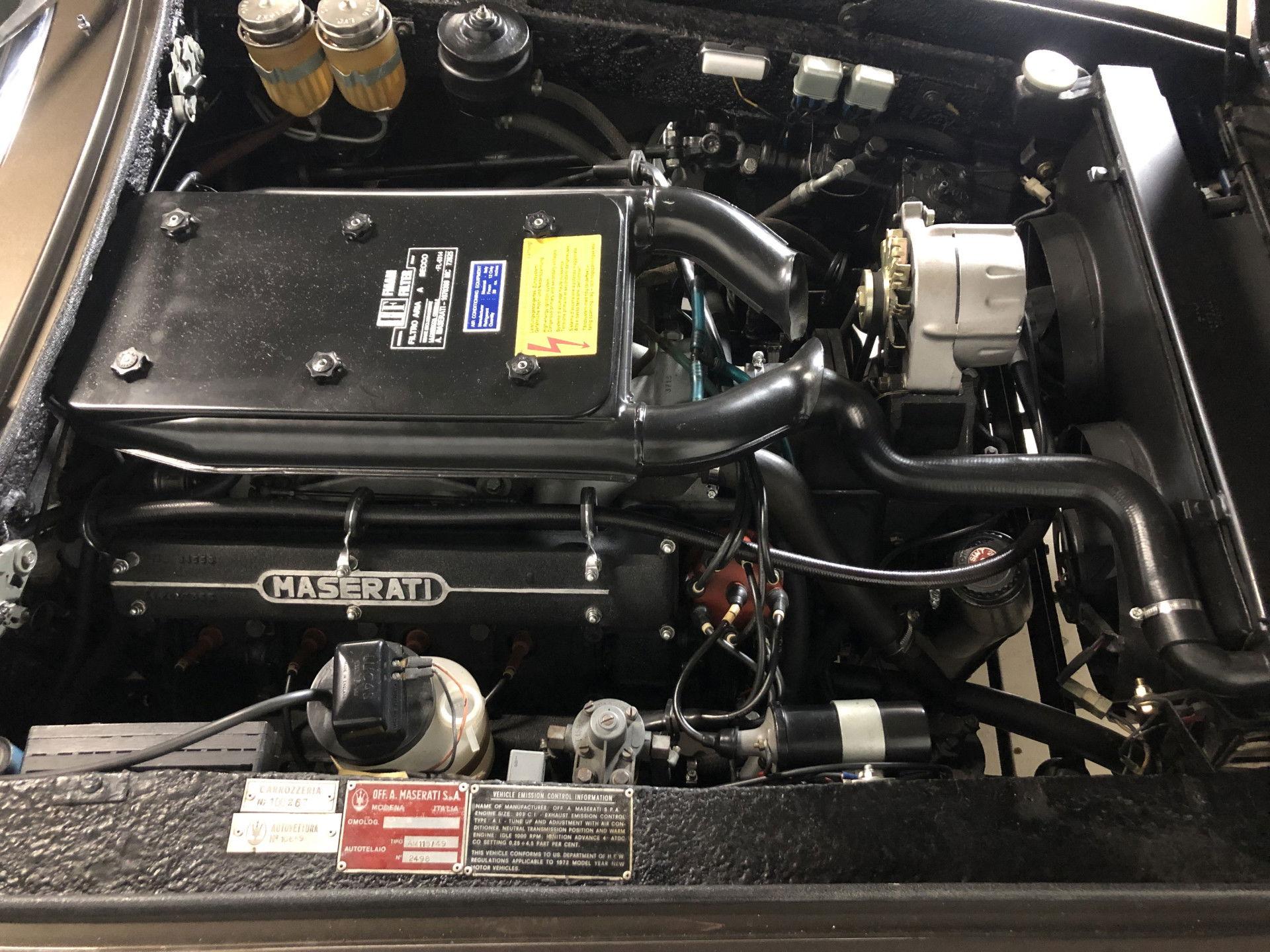The Ghibli SS was introduced in 1969. The new engine had a capacity of 4.930 cc and was rated at 335 PS (246 kW; 330 hp) at 5.500 rpm and 481 N⋅m of torque at 4.000 rpm. With a top speed of 280 km/h (174 mph), it was the fastest Maserati road car ever produced at the time. SS models have an additional /49 designation (e.g. AM115/49). A Spyder version was introduced the same year. Total production was 45 Spyders and 425 coupes.